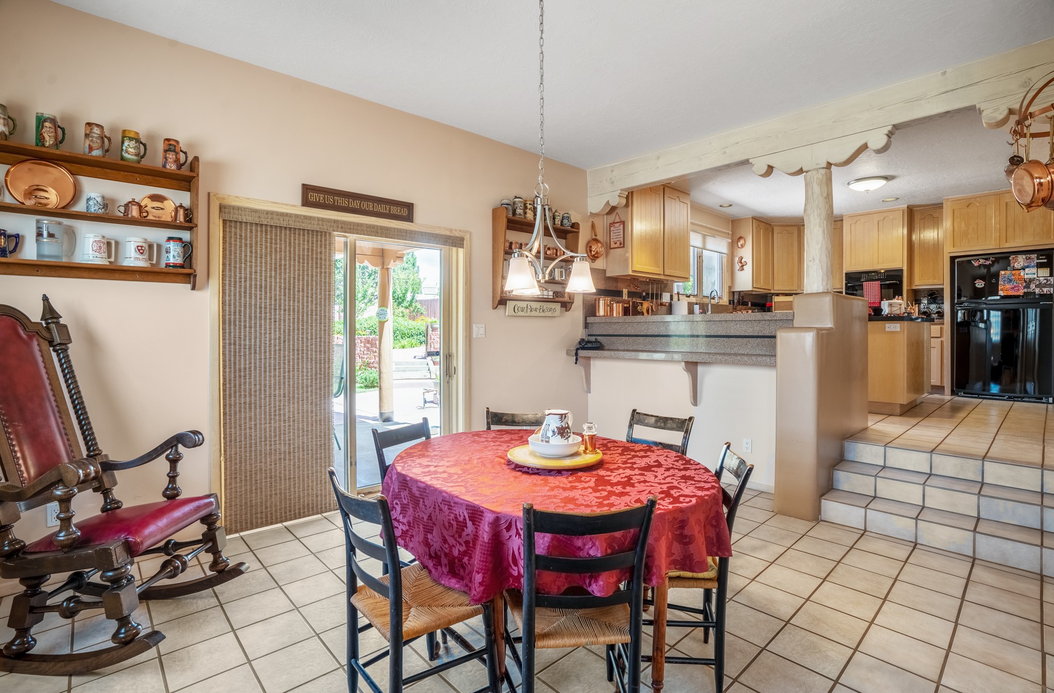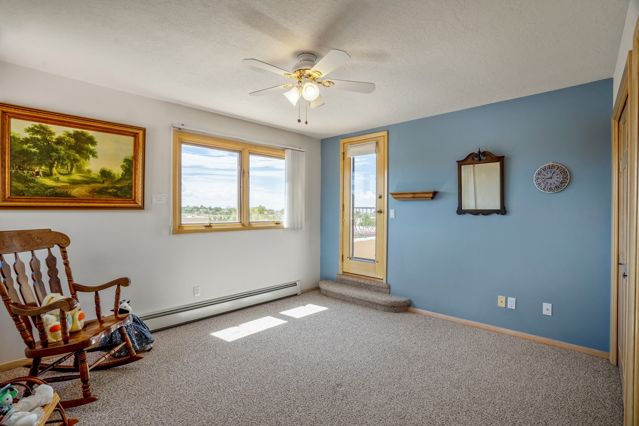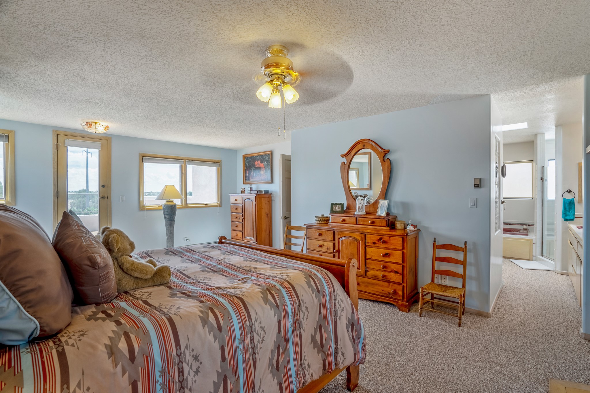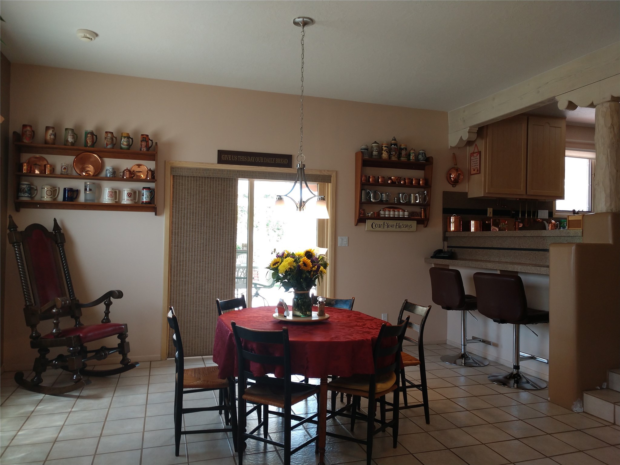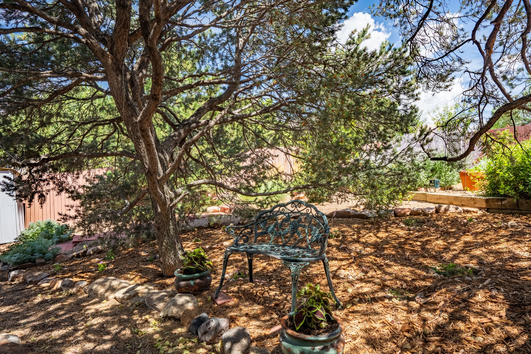 Experience Villa Caballero, a highly sought-after neighborhood known for quiet living, great location, and oversize lots. The area is particularly admired for its marvelous blend of natural beauty and charming residential spaces. One sweet gem is this multi-level home with a flexible floor plan featuring three bedrooms upstairs plus an office/den off the Primary Suite. An optional fourth bedroom is on the main level with access to the backyard pergola offering flexibility in living spaces. All bedrooms are spacious and feature stunning views. This Santa Fe style home is complete with beautiful vigas, nichos, and kiva fireplace on the main floor with plenty of space to entertain. The spacious primary bedroom suite offers a comfortable retreat, including a large bath with jetted tub and a separate office/sitting space and a view deck to enjoy sunsets and mountain views. The separated bedroom plan ensures privacy for everyone in the household and includes an additional view deck. The kitchen is spacious including an island and access to a huge utility/laundry room. A flexible family/dining/tv room with access to the back pergola is just off the kitchen in one direction and the formal dining and living room are off the other direction. This is truly a fabulous home for ease of entertaining. In addition, the views out virtually every window allow enjoyment of the breathtaking scenery and views, and invite you to soak in the surrounding beauty.Speaking of beauty, the lush and mature landscaping of this home boasts wonderful pathways meandering through multiple fruit trees, flowering beds, and shrubs. The thoughtful design creates a serene and inviting atmosphere. To add to the tranquility, there's even a large backyard pergola, perfect for peaceful entertaining and relaxation with wonderful architectural plays of shadow and light.Not only will you feel at peace in this home, but the lush landscaping will also attract birds and bees, creating a haven for wildlife enthusiasts and nature lovers alike. It truly is a wonderful environment to appreciate the harmony of nature and a great place to call home.