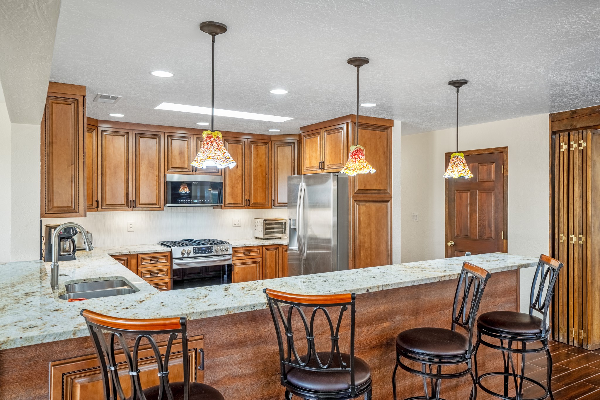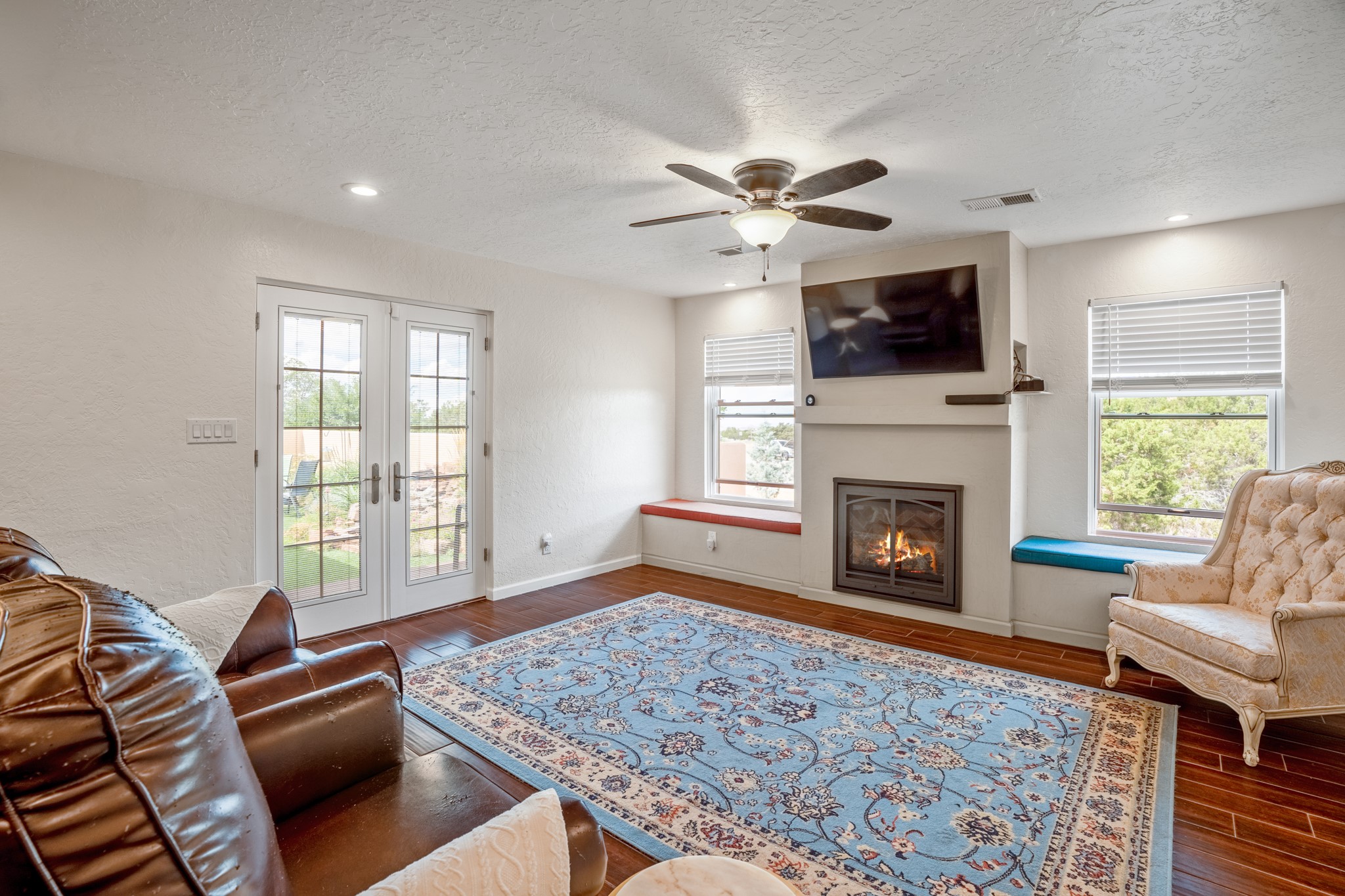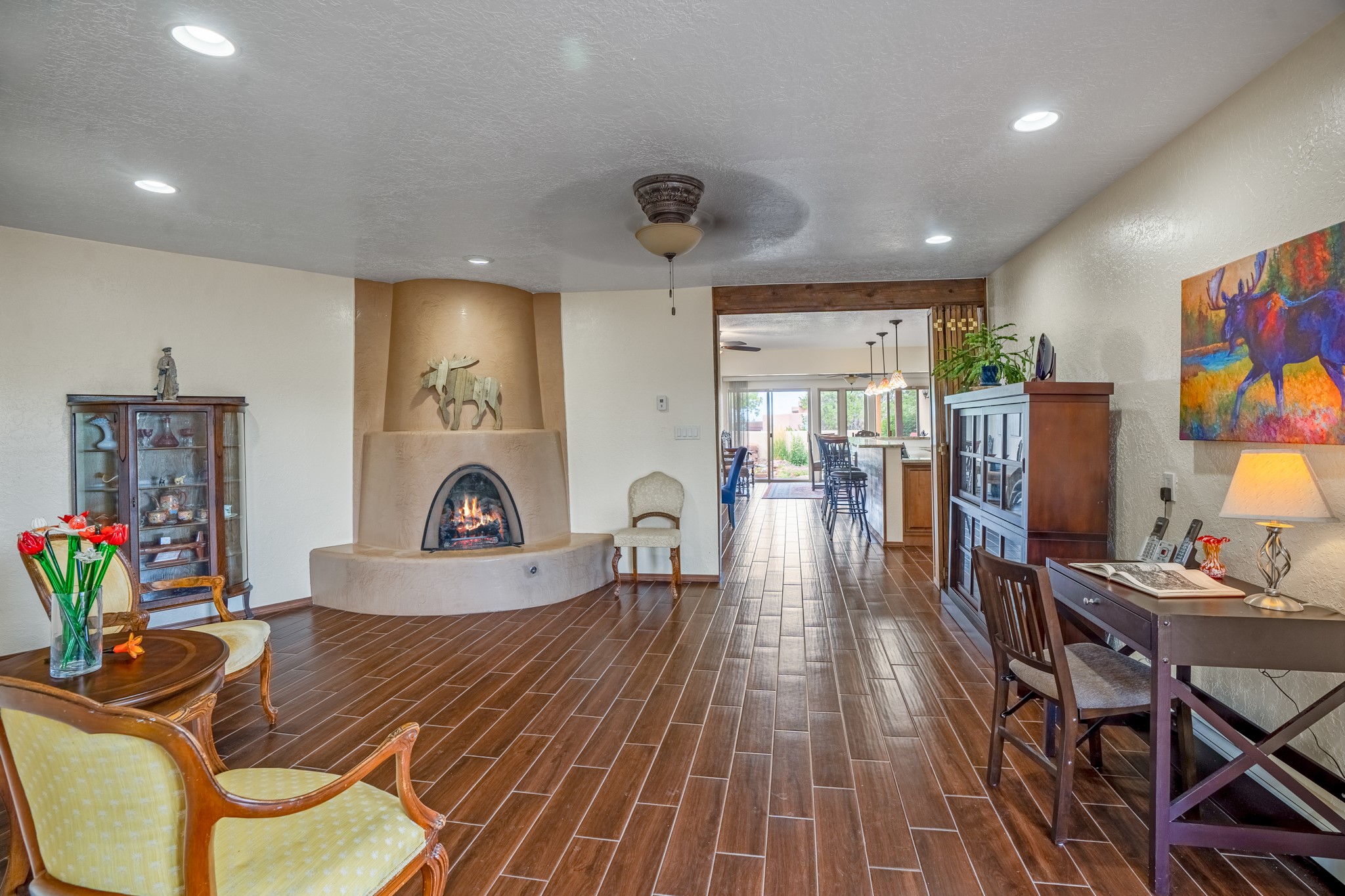 This diverse floor plan is perfect if you like to entertain, have a large family or work at home. Active solar system is approx. 3 years old! The kitchen was remodeled about 5 years ago and features stone counters, a large pantry and newer appliances. The primary bedroom was extended and now has a fireplace, room for a sitting area and you be amazed at the size of the primary closet. The primary bathroom was also totally remodeled, and you will feel like you are at a luxury spa! Two living/ public areas including the living room at the front of the home and the den to the side of the kitchen. The den space would also make a wonderful formal dining area. A lot of thought was put into the remodel of the kitchen, primary bedroom, utility room which has marvelous storage. No lack of storage here. Do you cherish your privacy while working at home? You will absolutely love the "hidden" office feature. Fabulous circular driveway with an island of mature trees in the middle. No need to worry about the maintenance of your driveway! Three car garage with a separate storage area! Intimate garden and yard space off the kitchen. The current den has a portal and fenced yard space with views of the foothills to the east. Whole house water softener and 2 separate whole house air conditioning units.