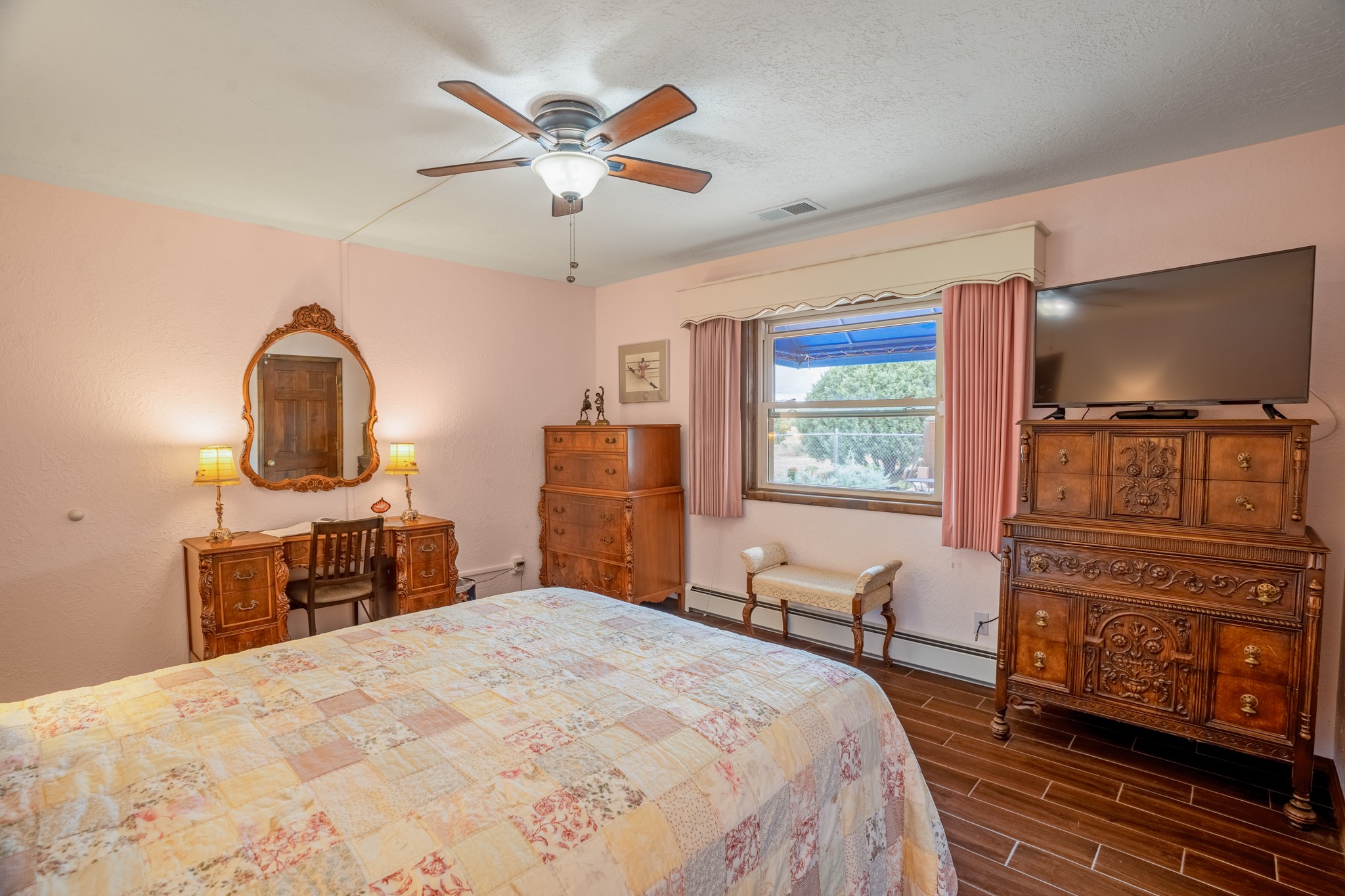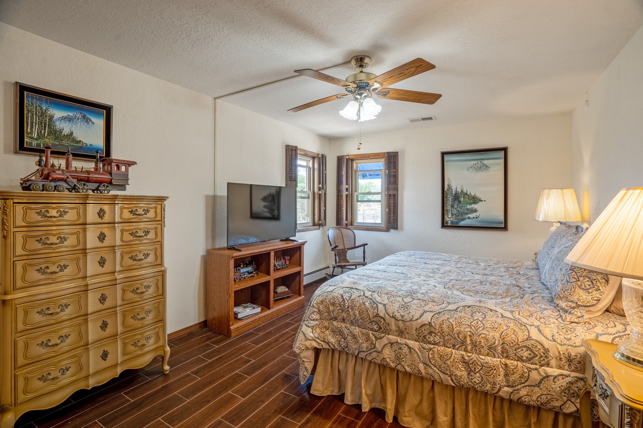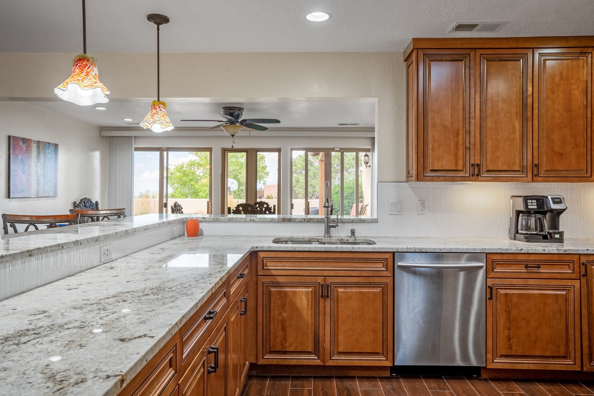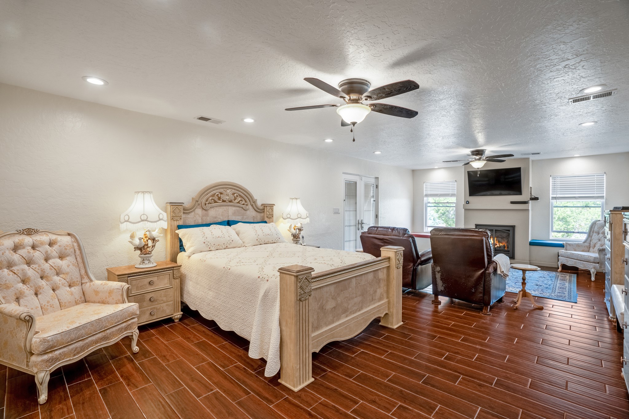 This diverse floor plan is perfect if you like to entertain, have a large family or work at home. Active solar system is approx. 3 years old! The kitchen was remodeled about 5 years ago and features stone counters, a large pantry and newer appliances. The primary bedroom was extended and now has a fireplace, room for a sitting area and you be amazed at the size of the primary closet. The primary bathroom was also totally remodeled, and you will feel like you are at a luxury spa! Two living/ public areas including the living room at the front of the home and the den to the side of the kitchen. The den space would also make a wonderful formal dining area. A lot of thought was put into the remodel of the kitchen, primary bedroom, utility room which has marvelous storage. No lack of storage here. Do you cherish your privacy while working at home? You will absolutely love the "hidden" office feature. Fabulous circular driveway with an island of mature trees in the middle. No need to worry about the maintenance of your driveway! Three car garage with a separate storage area! Intimate garden and yard space off the kitchen. The current den has a portal and fenced yard space with views of the foothills to the east. Whole house water softener and 2 separate whole house air conditioning units.