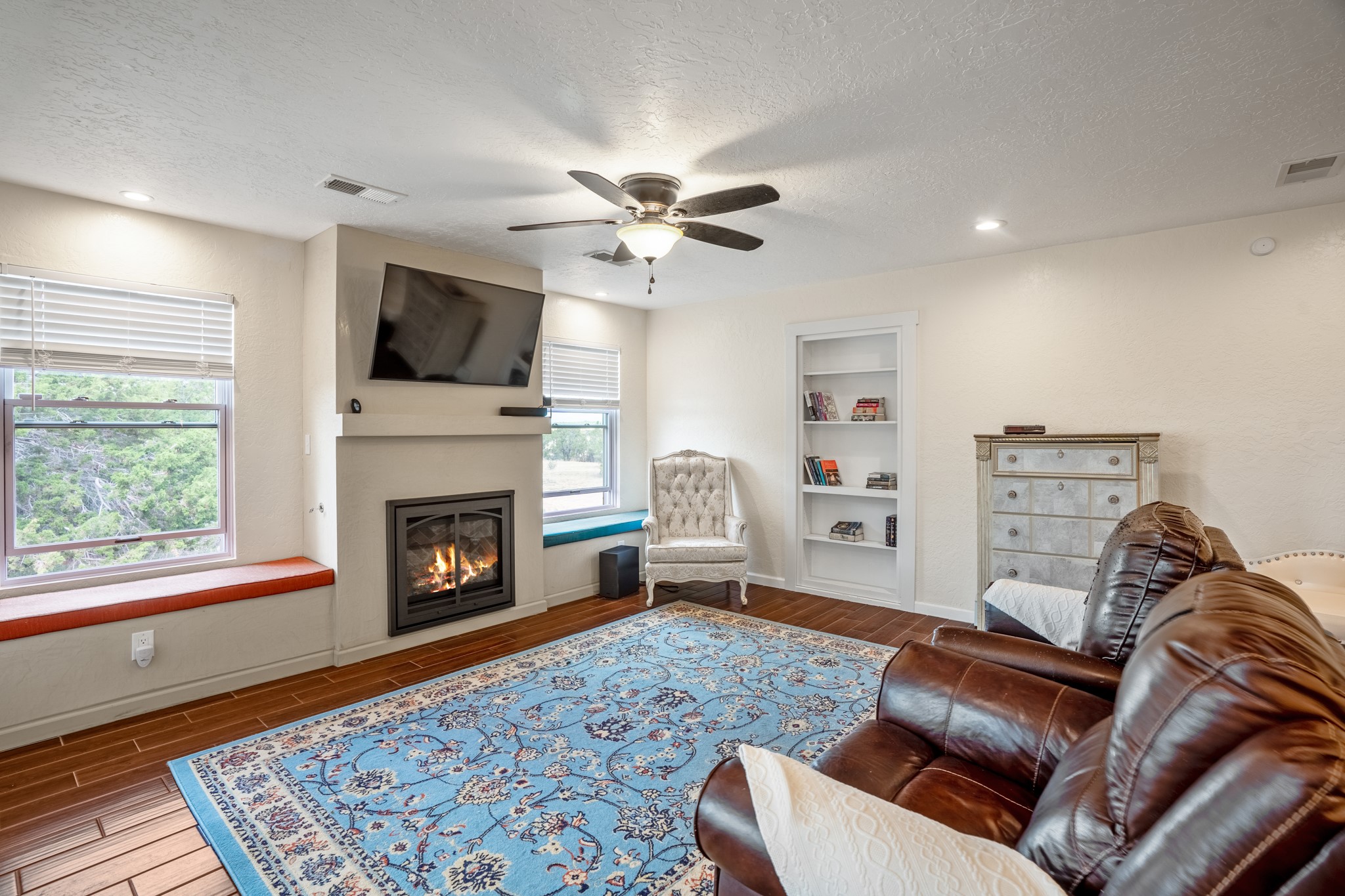 - Fireplace FeaturesGas, Kiva, Blower Fan