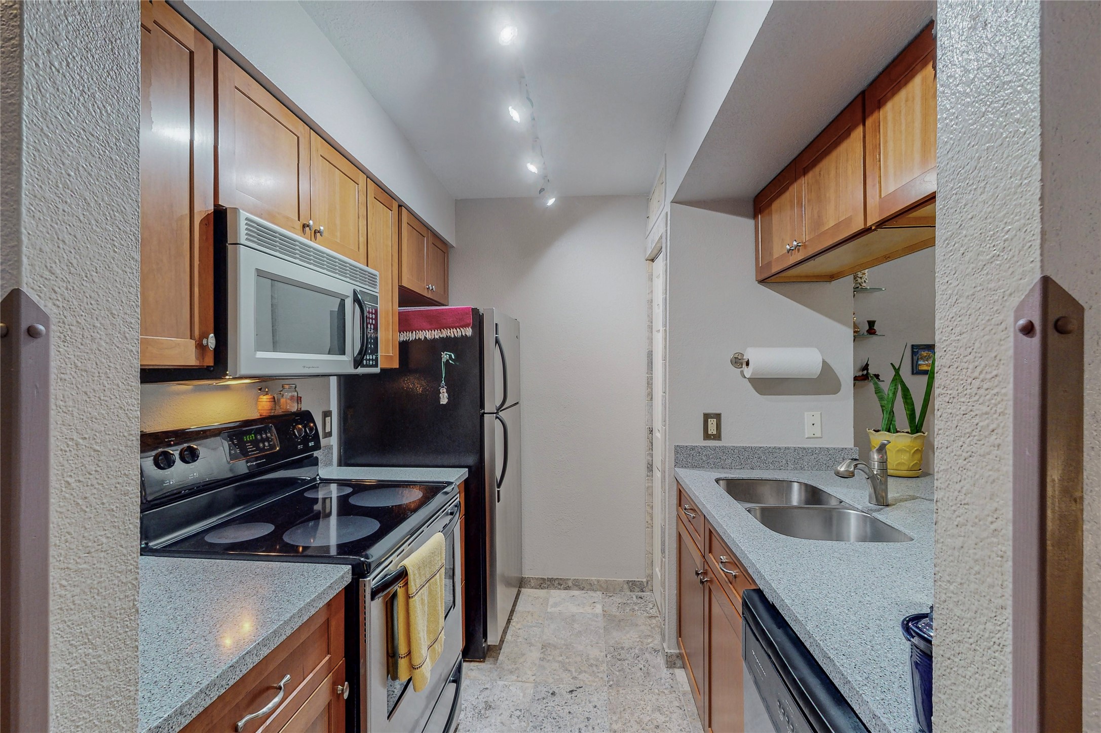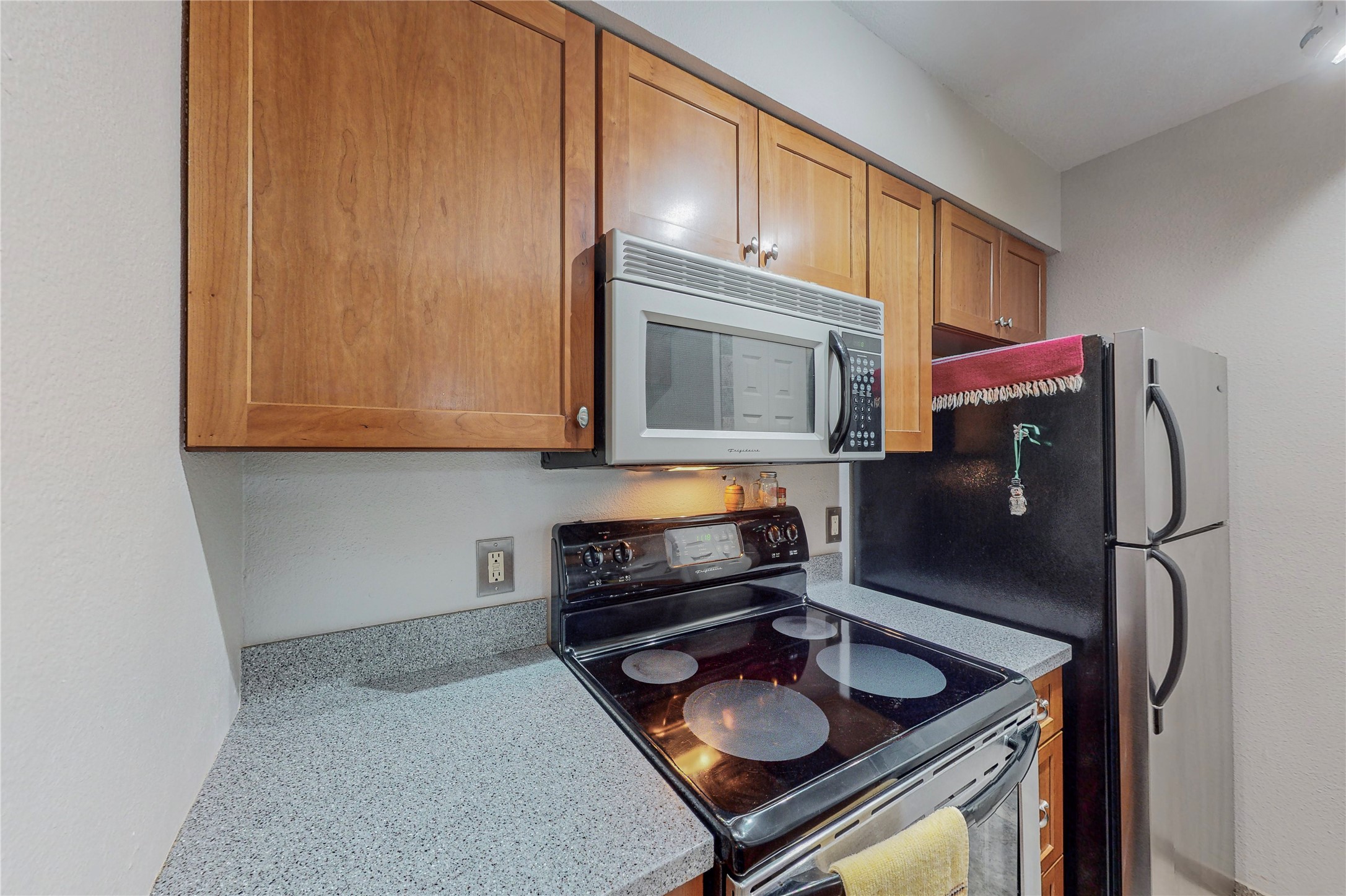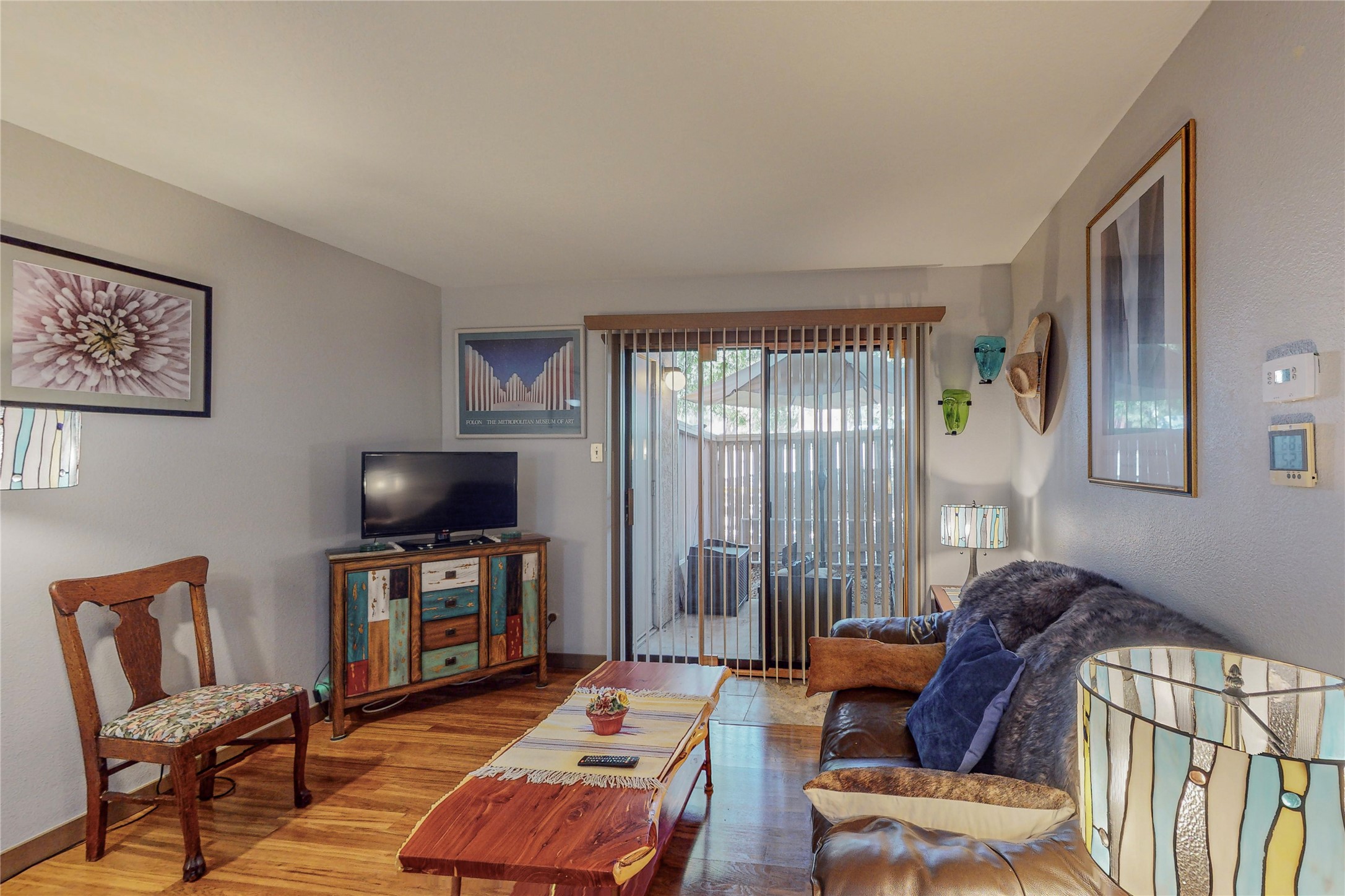 Skillfully maintained ground floor 2 bedroom, 2 bath unit with private patio. The gated community@ The Reserve at Santa Fe offers a year-round heated Pool, hot tub, fitness center, community room, laundry room, mail center, BBQ areas & all-night onsite security. Enjoy the sweet life living in the Heart of 'Santa Fe Style' which is minutes away from the Historic Santa Fe Plaza, the De Vargas Mall and multitudes of renowned restaurants, shopping, museums and famous landmarks. Easy highway access to Los Alamos, Tesuque, Taos & the 599 bypass to Albuquerque. The roof, stucco, and landscaping are maintained by the HOA. Be a Santa Fe Condo owner today!!
