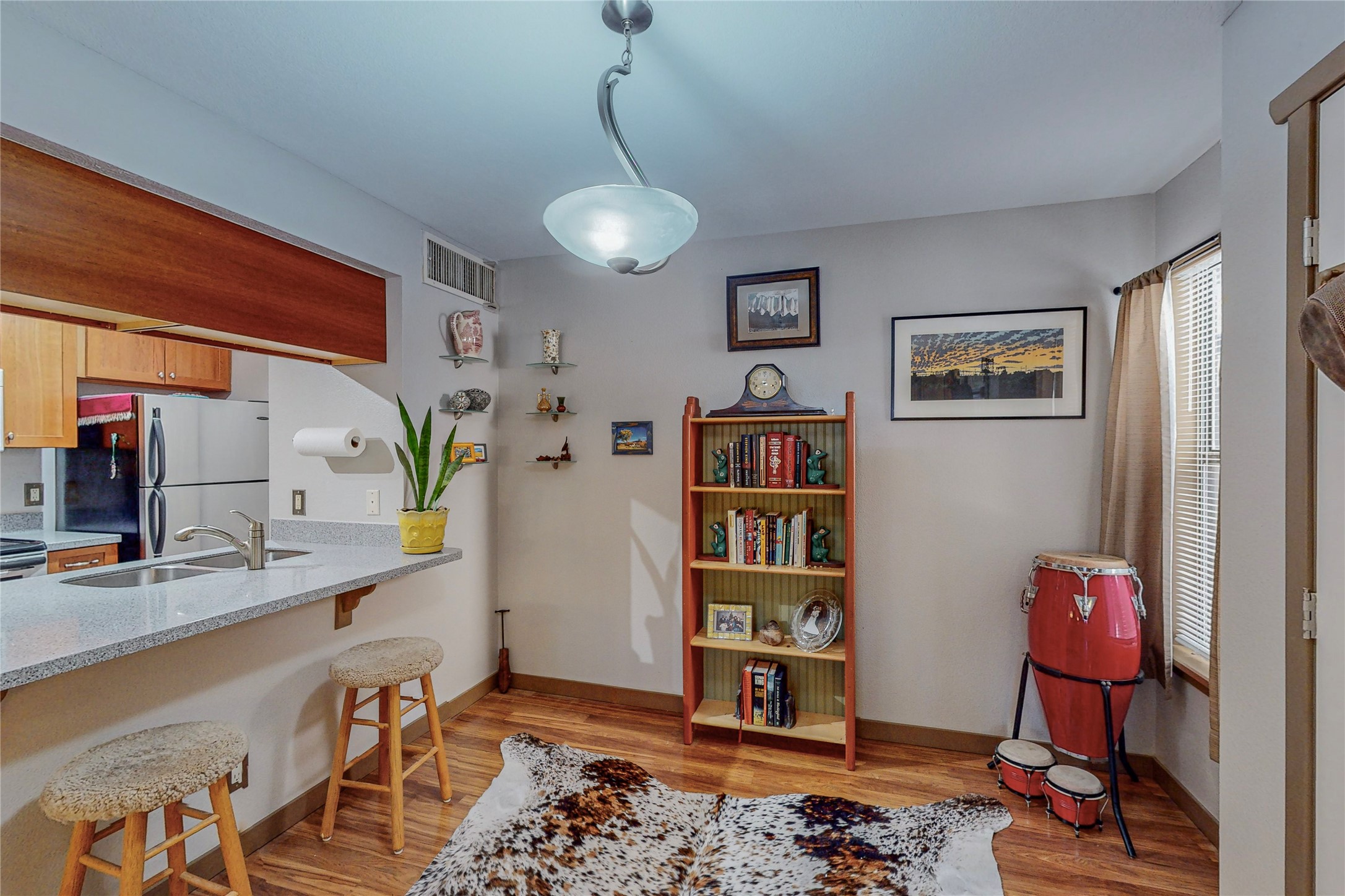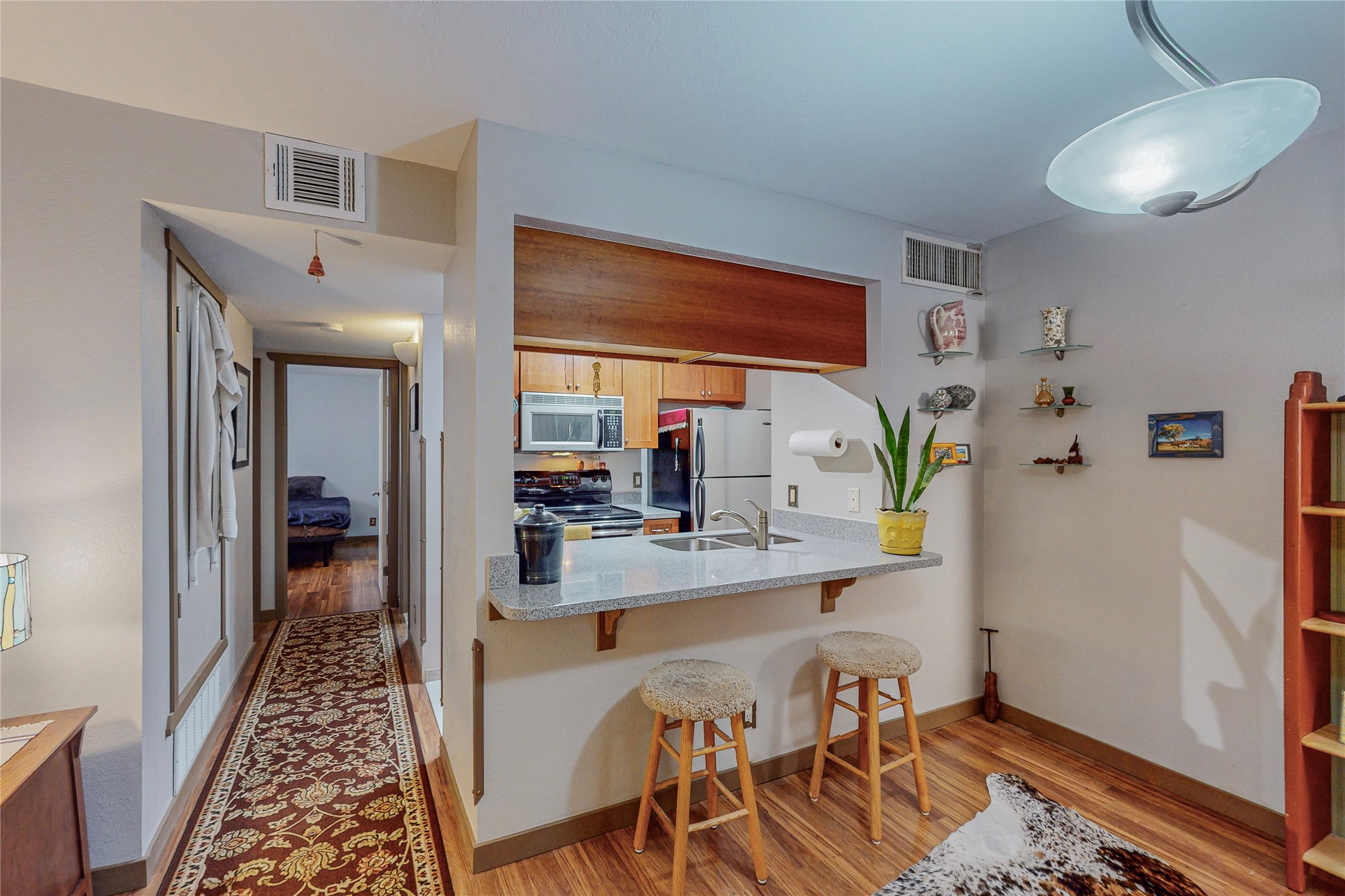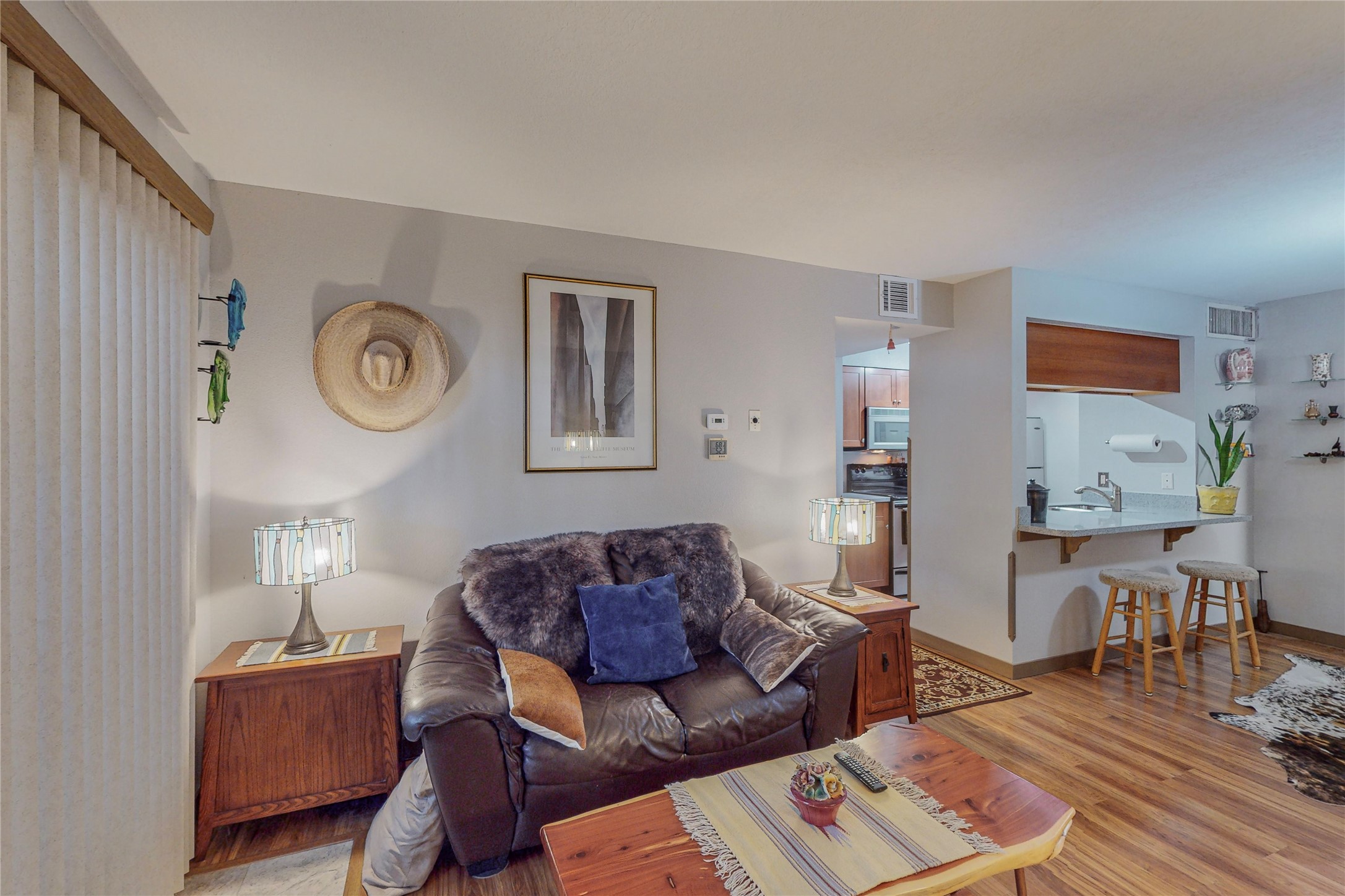 Skillfully maintained ground floor 2 bedroom, 2 bath unit with private patio. The gated community@ The Reserve at Santa Fe offers a year-round heated Pool, hot tub, fitness center, community room, laundry room, mail center, BBQ areas & all-night onsite security. Enjoy the sweet life living in the Heart of 'Santa Fe Style' which is minutes away from the Historic Santa Fe Plaza, the De Vargas Mall and multitudes of renowned restaurants, shopping, museums and famous landmarks. Easy highway access to Los Alamos, Tesuque, Taos & the 599 bypass to Albuquerque. The roof, stucco, and landscaping are maintained by the HOA. Be a Santa Fe Condo owner today!!