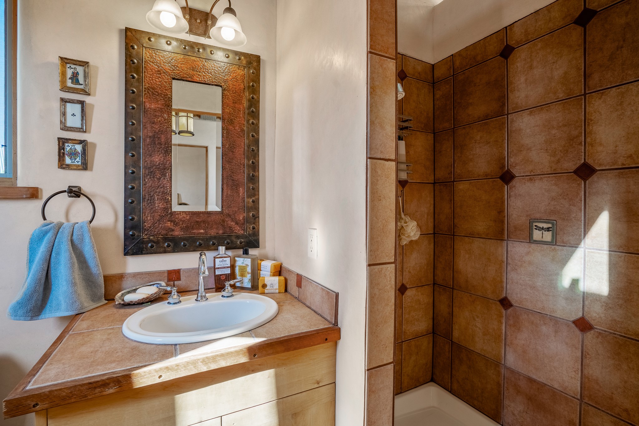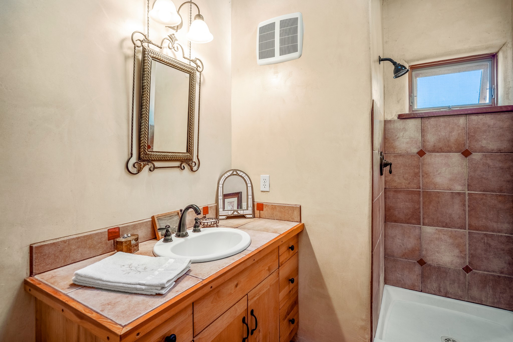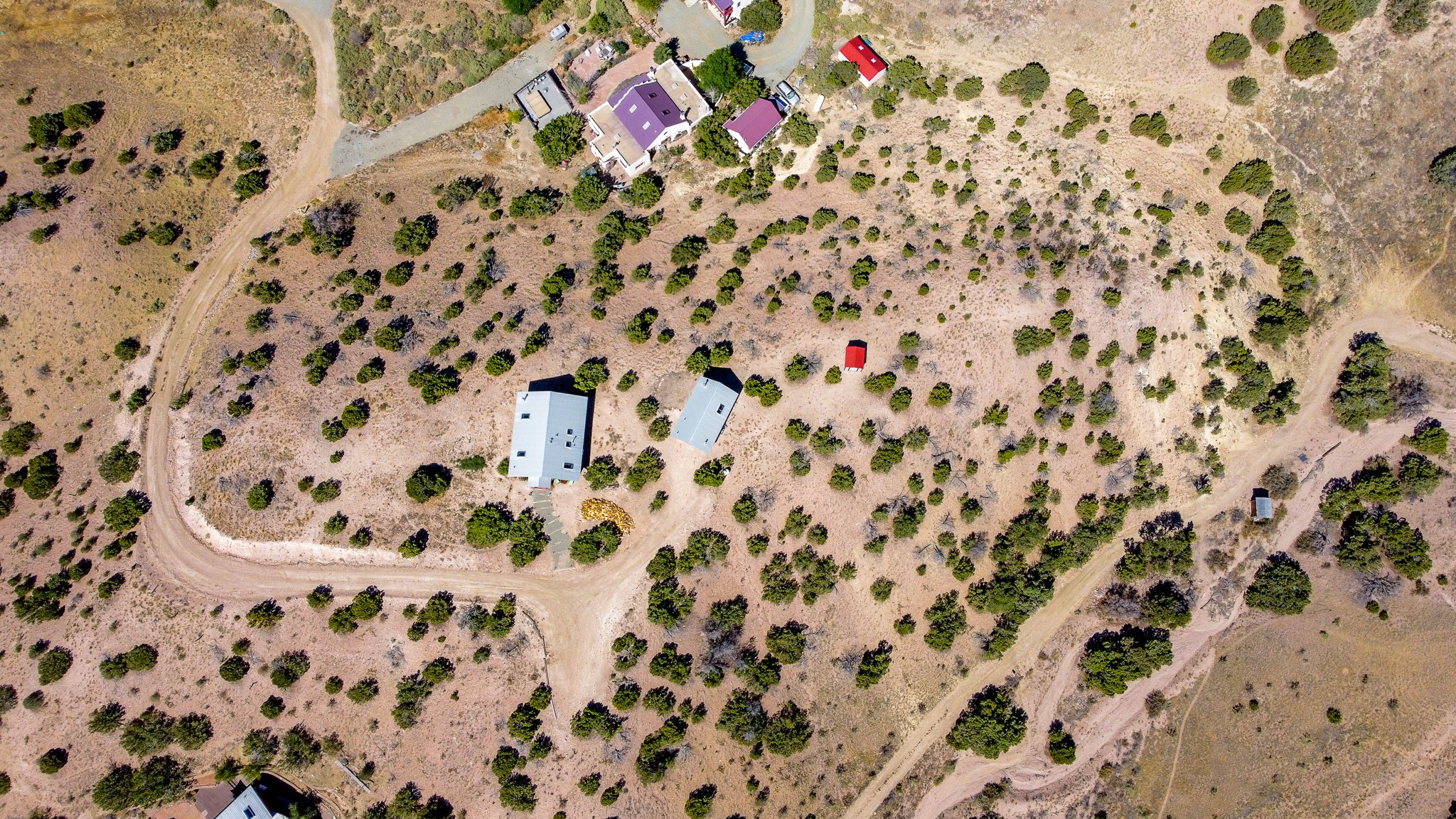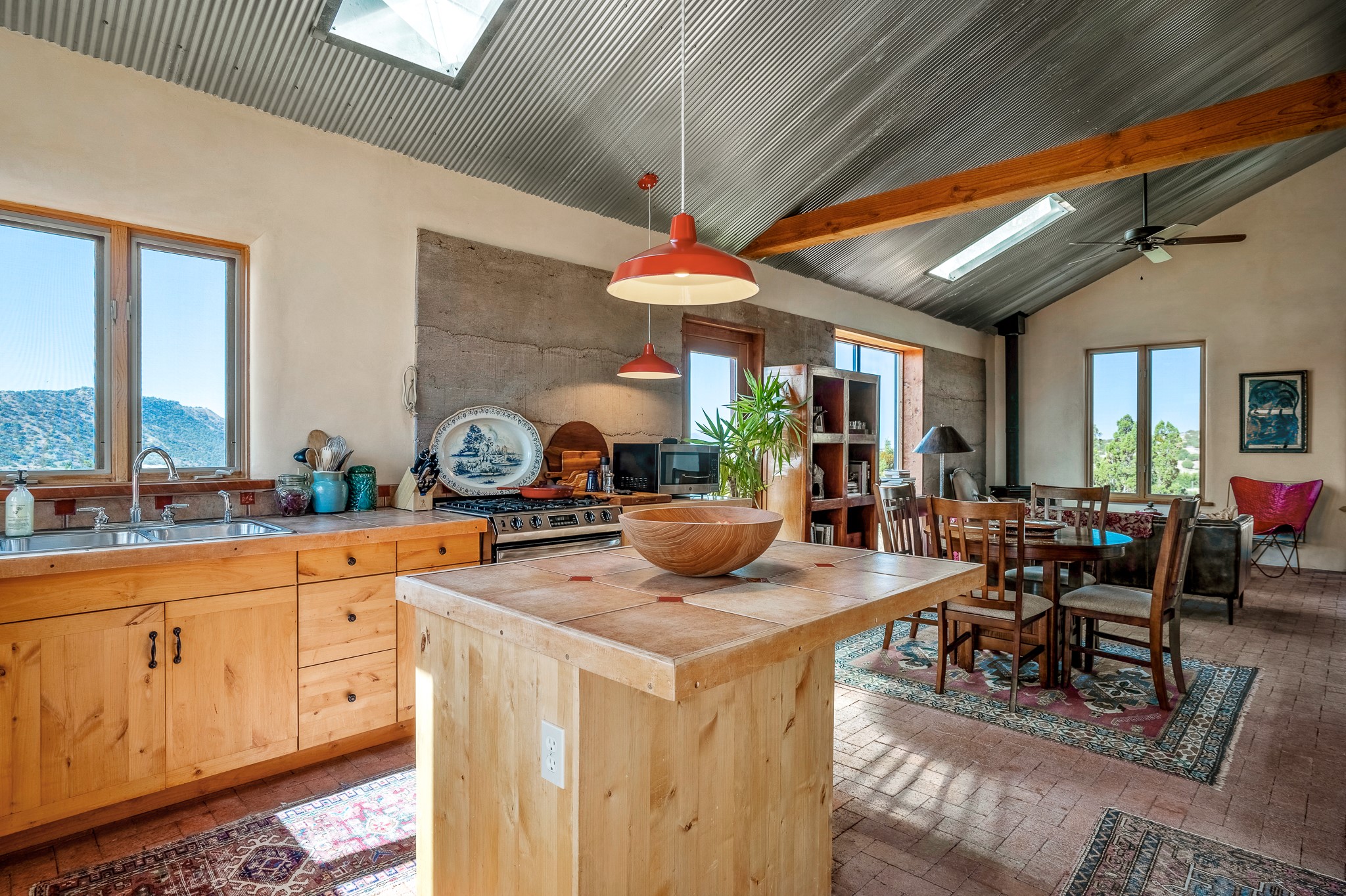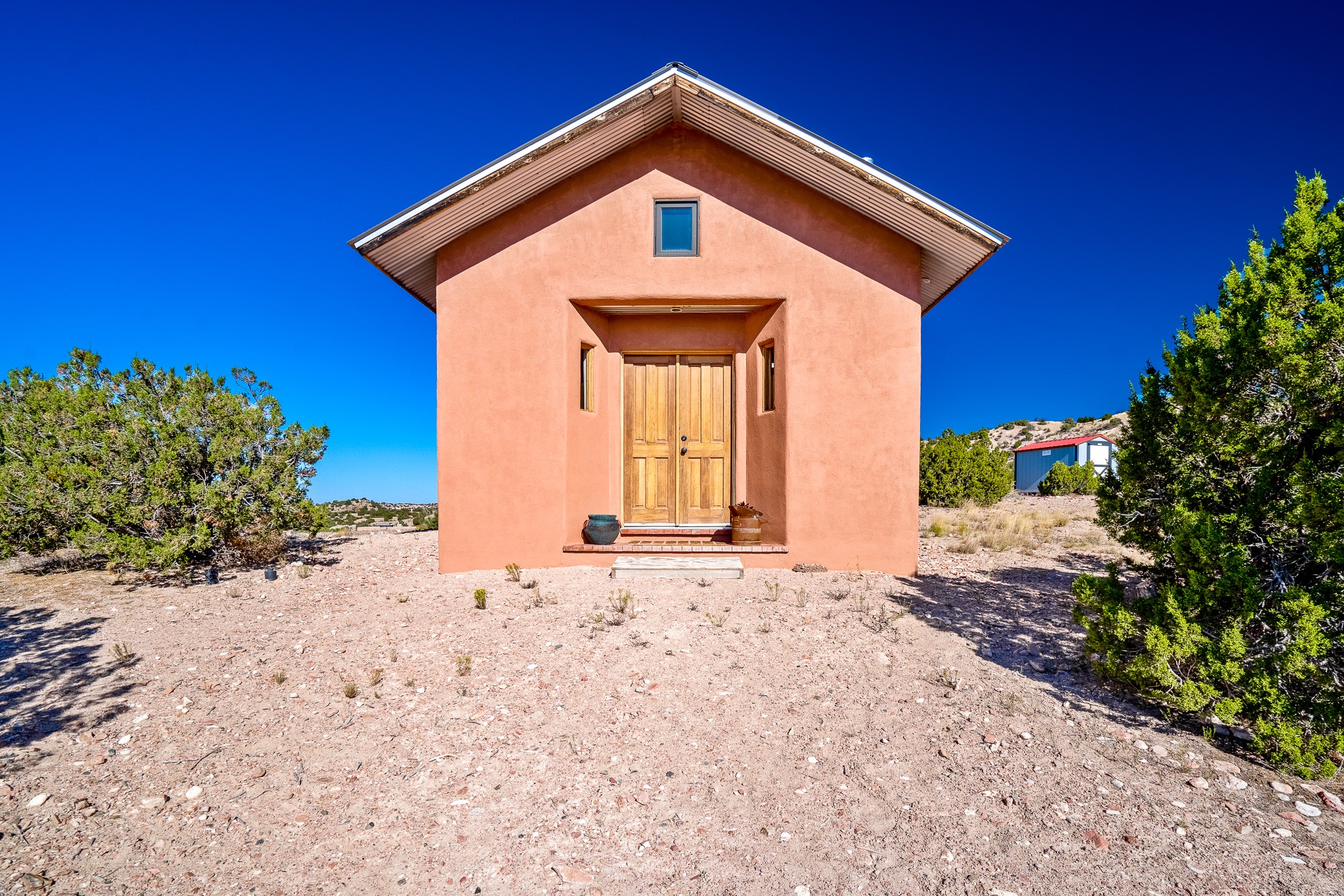 Panoramic views from a beautiful house and casita in Lamy! Located just minutes fromThe Agora shopping area in Eldorado and sited atop a picturesque hill, this uniqueproperty boasts a charming 1044 sq. ft. 2-bedroom, 2-bathroom E-crete home with a pitched roof,along with a detached 436 sq. ft. casita featuring a pitched roof and a 3/4 bathroom. Sited on 3acres with community water and constructed in 2006 by famed local builder Karen Terry, known as a pioneer in passive solar and eco-conscious design. Both structures incorporate Trombe walls - these walls collect heat from the sun and radiate it into the interior. Heat is further supplemented by gas wall heaters and cozy wood-burning stoves. The many 6' and floor to ceiling insulated double panewindows are highly energy efficient and provide an abundance of natural light.Impeccably styled with sleek, modern aesthetics, this property exudes the authenticNorthern New Mexico atmosphere, showcasing beautiful brick flooring and plasteredwalls. A true Lamy gem.