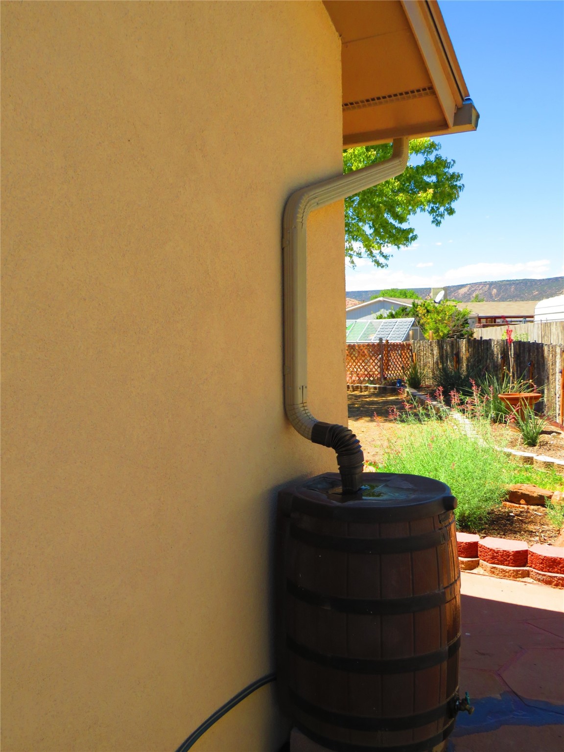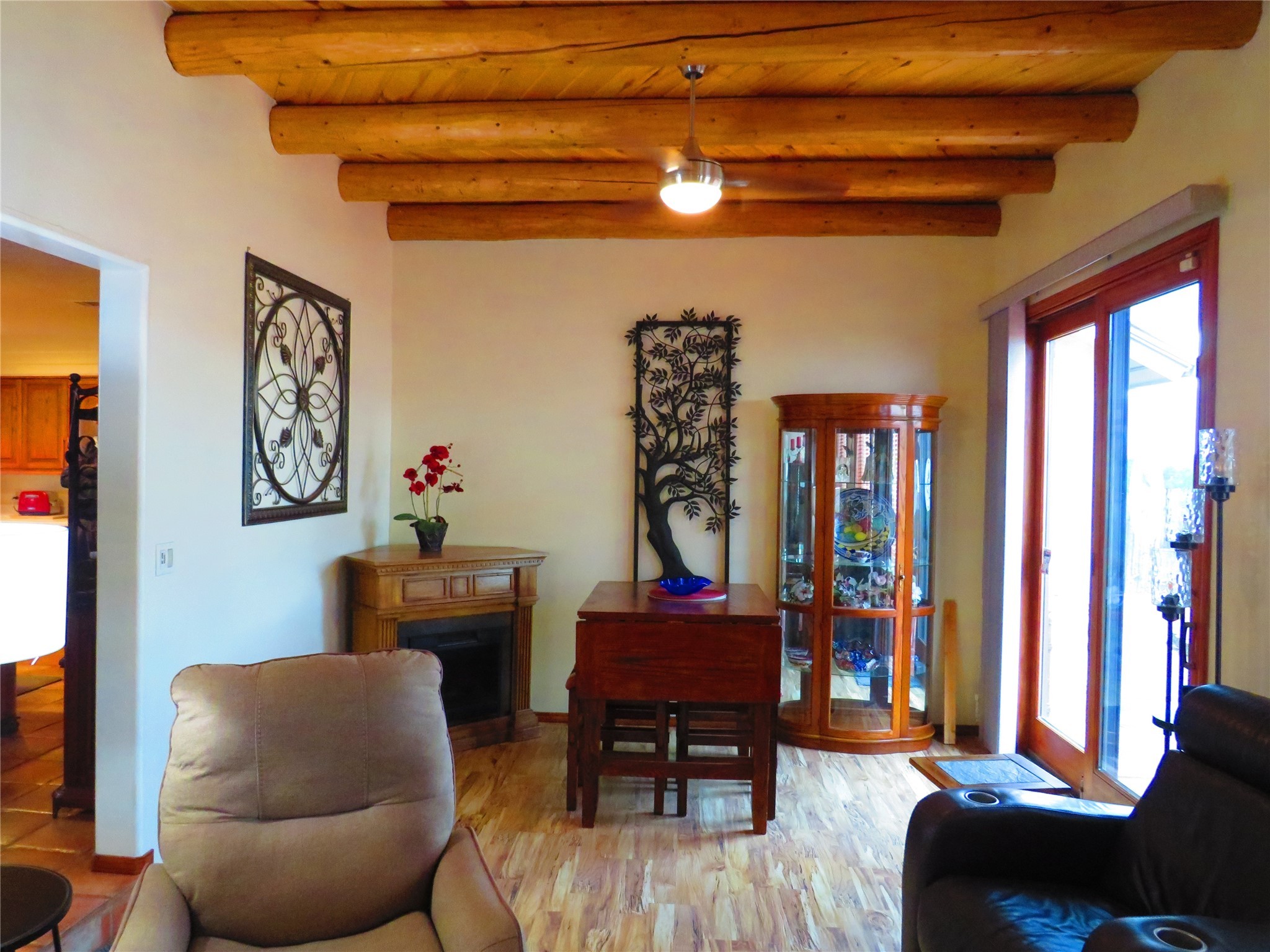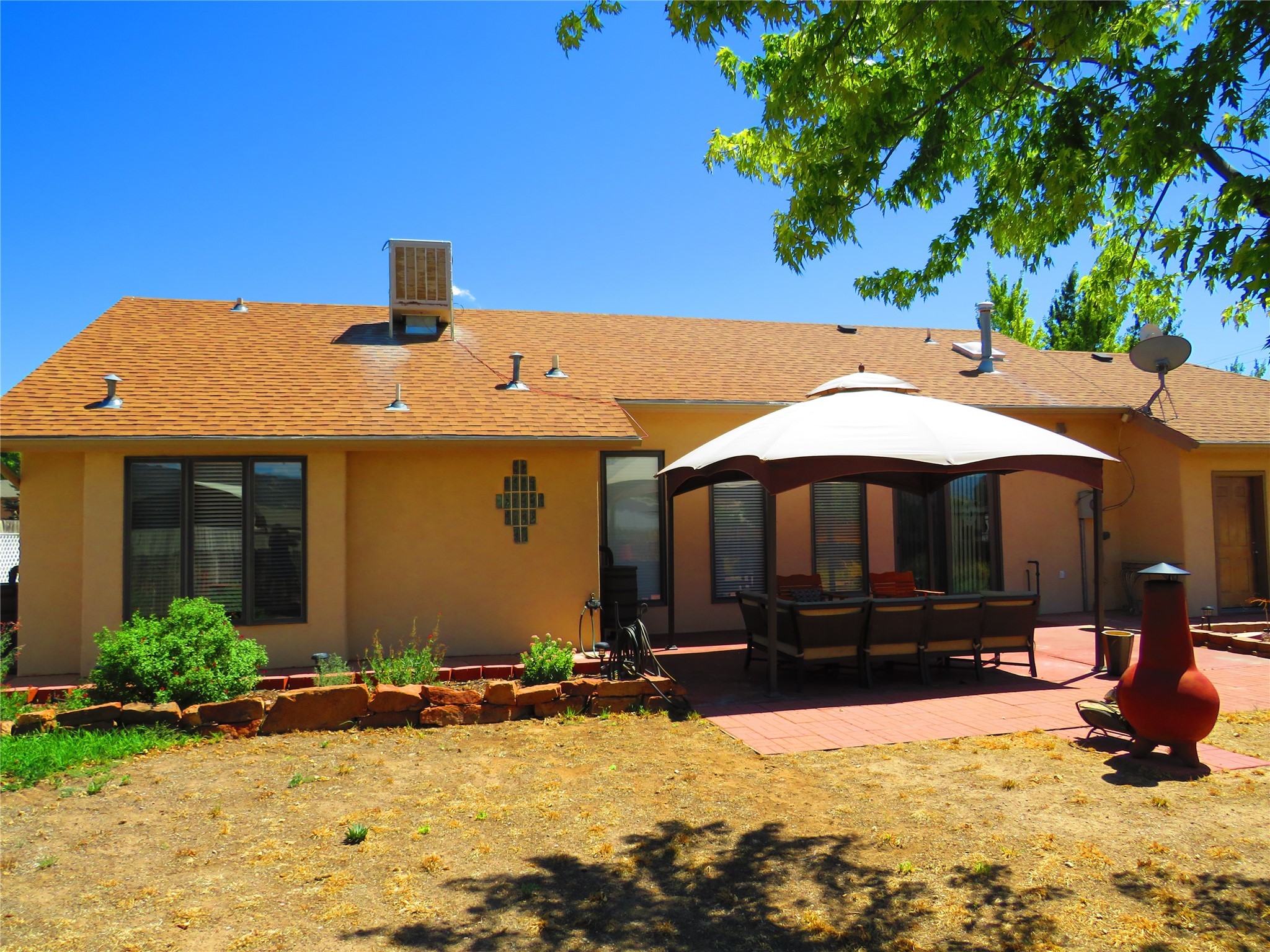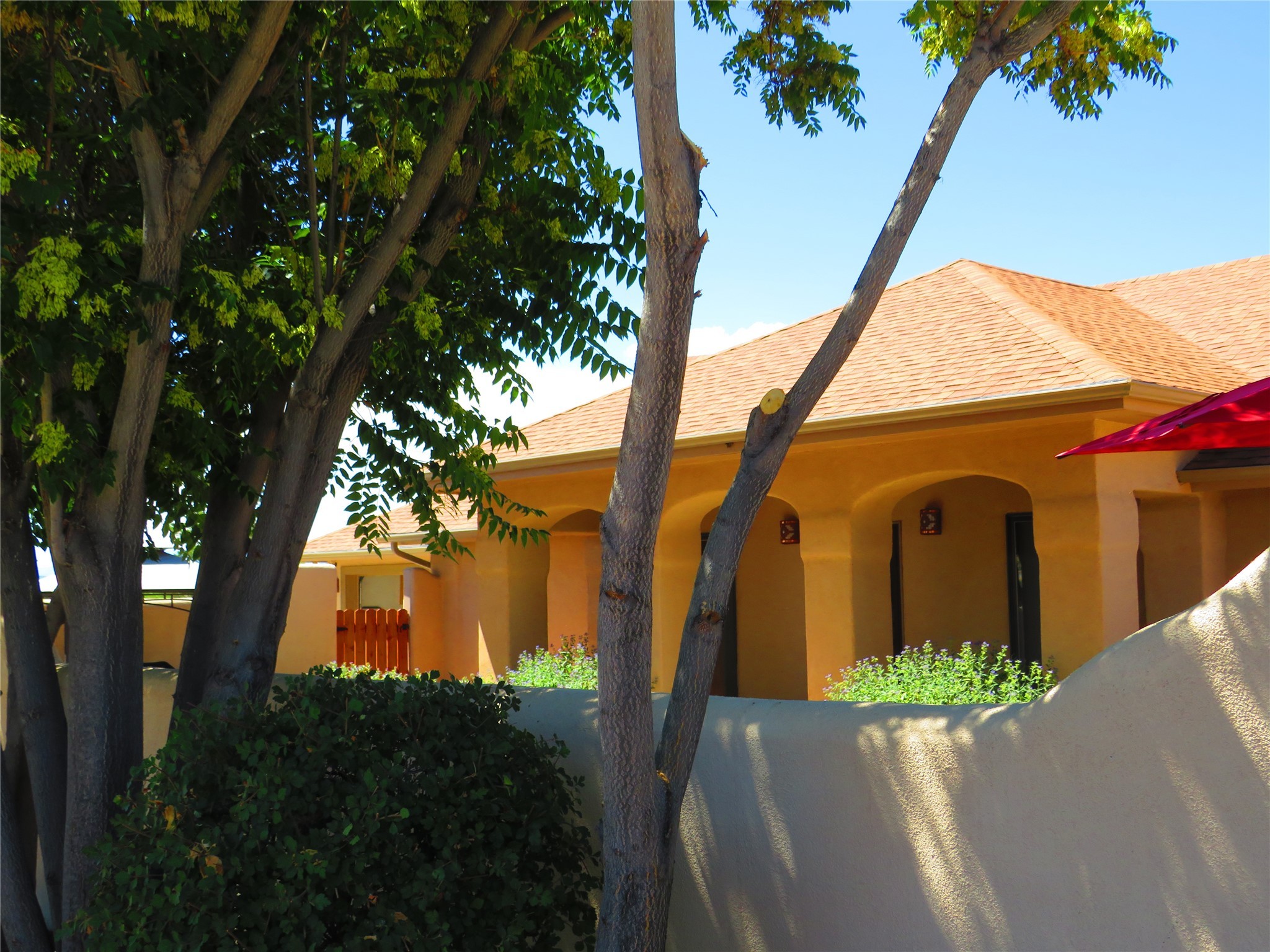 This beautifully designed home is set on .78 acres in a quiet, private, rural location. Design features include a walled courtyard, glass block accents, vigas and herringbone decking, and lots of light. The kitchen is spacious and well-appointed with stone counters and stainless appliances. The bathrooms are nicely updated. Outside, there are lots of trees, including a variety of fruit trees, and easy to care for plantings of native and water hardy perennials. There is a nice storage shed, a greenhouse, water catchment, and raised beds for the garden lover. The back yard includes a spacious sunny patio and the front offers shady walled-in seclusion. The entire property is fully fenced and there is an electric gate. This is an easy commute to Los Alamos, Espanola, and Santa Fe. Endless outdoor adventure is minutes away, offering the best that beautiful Northern New Mexico has to offer. All canopies and patio furniture convey.