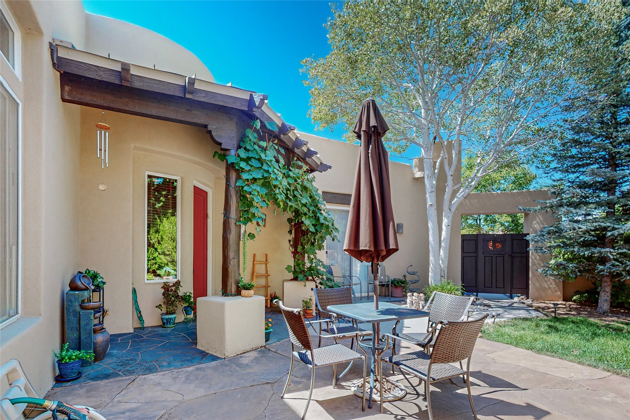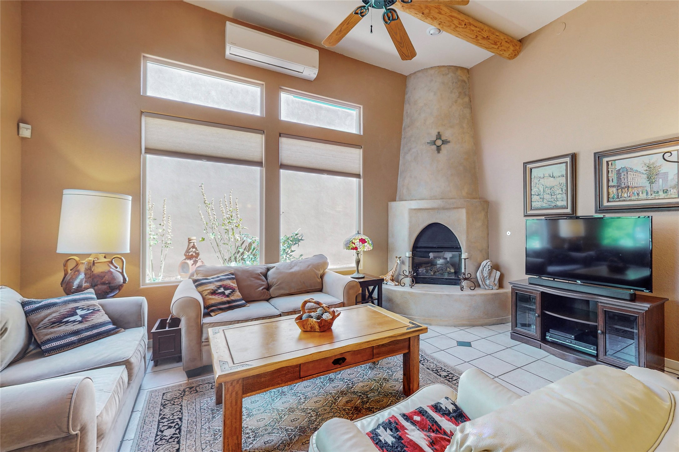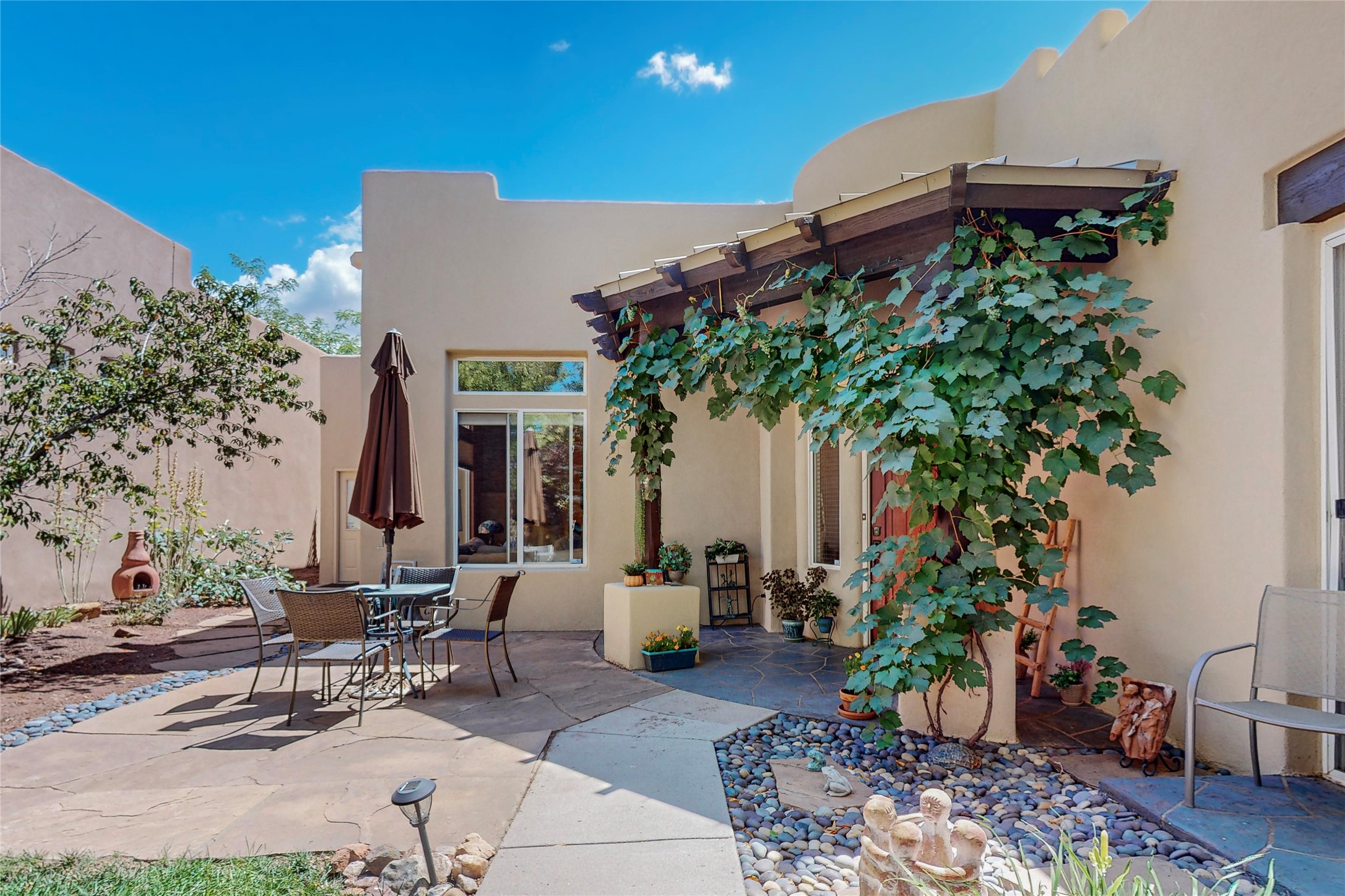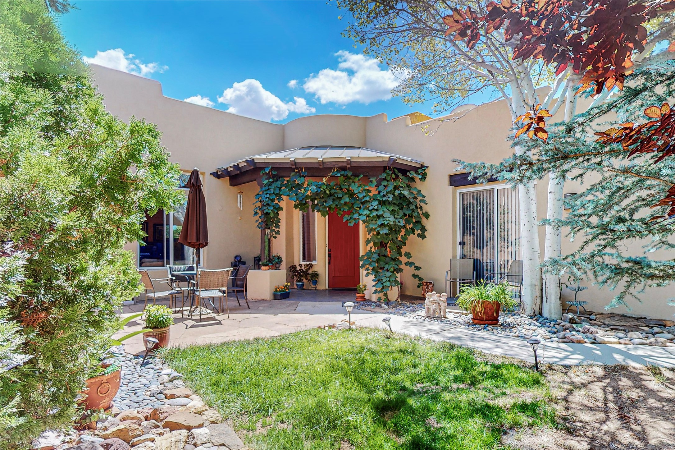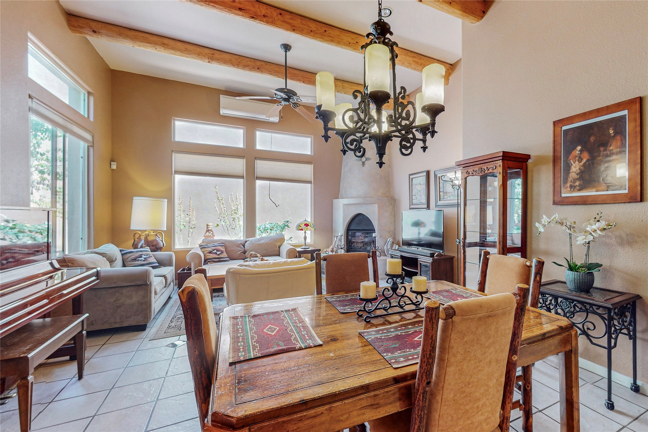 Back on market! Motivated Seller! This extraordinary home, nestled inside the popular neighborhood of Rancho Viejo, has everything you are looking for! Throughout the home, you will find beautiful Southwest touches that make it quintessential Santa Fe. The high ceilings with traditional vigas, large kiva fireplace, and the front circular foyer with its beautiful tiles will delight you. This beautiful home has a sizable kitchen with ample cupboard space, and the open floor plan makes a perfect space for entertaining. The master bedroom is spacious, complete with an ensuite with a large soaking tub and a generous walk-in closet. The quaint backyard comes with two stately trees and the large front courtyard is completely private and beautifully landscaped. The neighborhood is quiet, scenic and has multiple parks. This home is conveniently located near an extensive network of hiking trails and provides easy access to anything you could need in Santa Fe or an easy commute to Albuquerque. What a gem! This house is priced to sell!