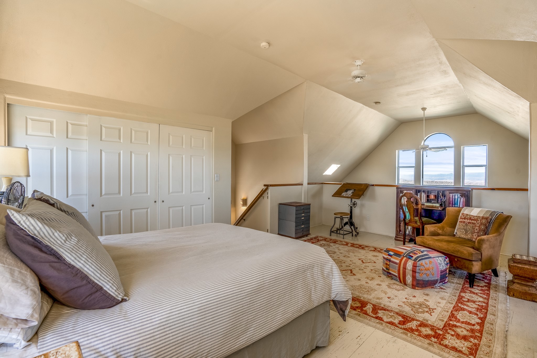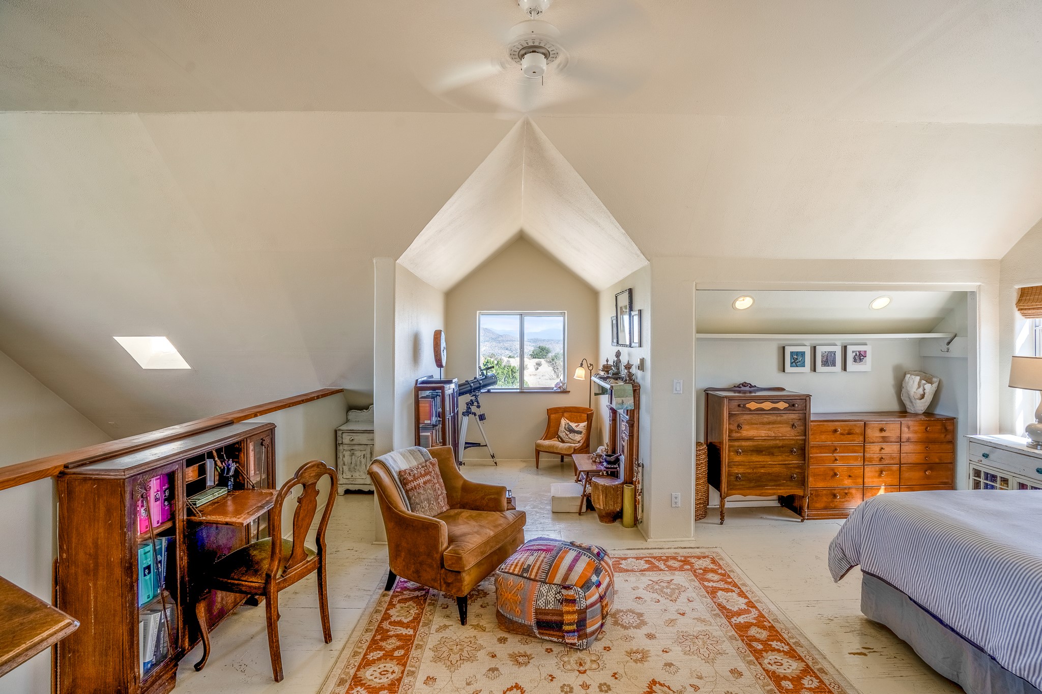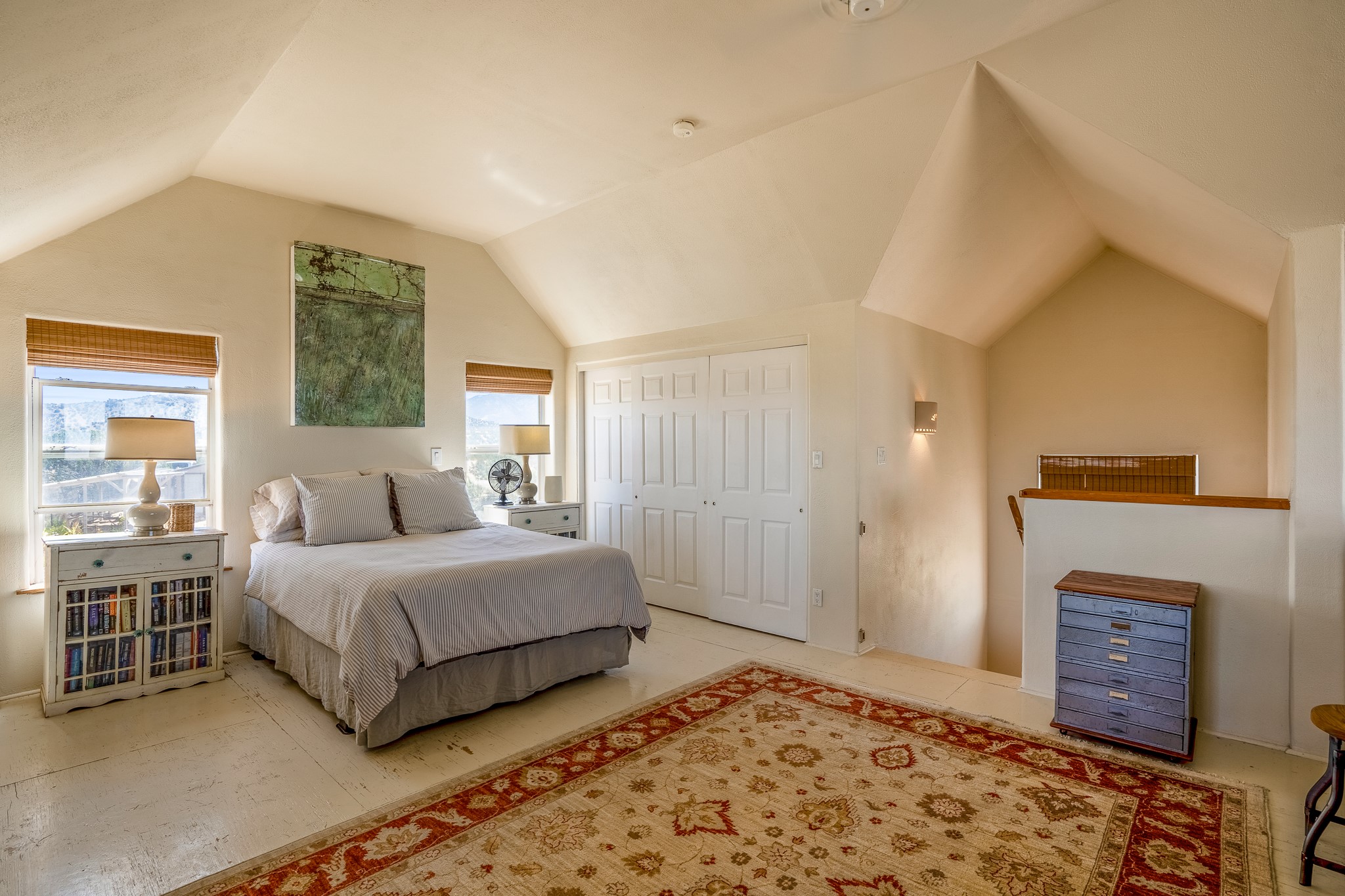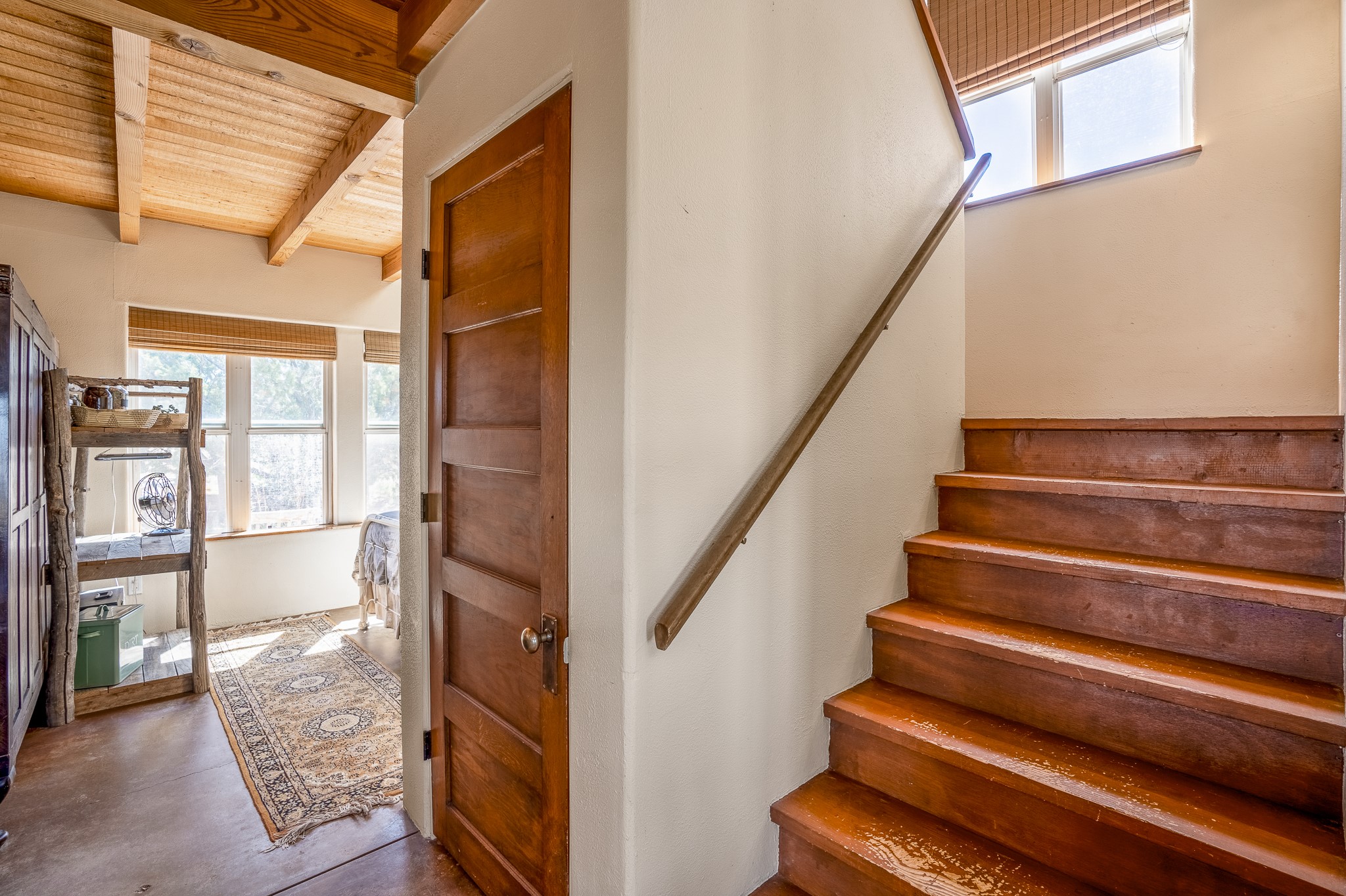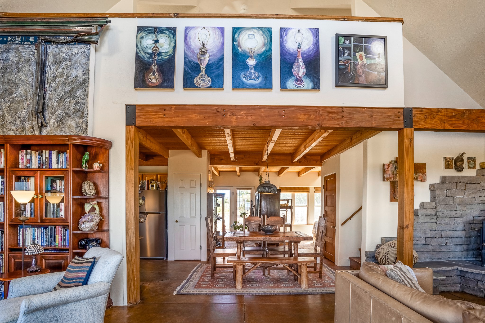 You'll find this high-desert homestead perched on a mesa's edge, with jaw-dropping views in every direction. A high-ceilinged, 1259 square foot home, with one bedroom and one bathroom, sits on 40 acres. This open floor plan home gives many configuration options- a roomy yet cozy space. Property has abundant, thriving gardens, a shed and chicken coop, as well as a corral and space for horses. Water is supplied by a private well, and electricity by the sun. Sellers have recently invested nearly $50,000 in the property, including new solar panels, charge controller, inverters, and batteries, 5600 gallons of water storage (in addition to 3100 gallons of rain catchment), new well pump, booster pump and whole house water filtration system. 3.5 miles from highway 14. Come experience the profound privacy, and quiet this property provides while only being a short hop to the thriving artist community of Madrid and a 45 min drive to Santa Fe. Excellent off the grid property with expansive vistas of the Cerrillos Hills and the Jemez, Sangre de Cristo, Ortiz, and Sandia Mountains.