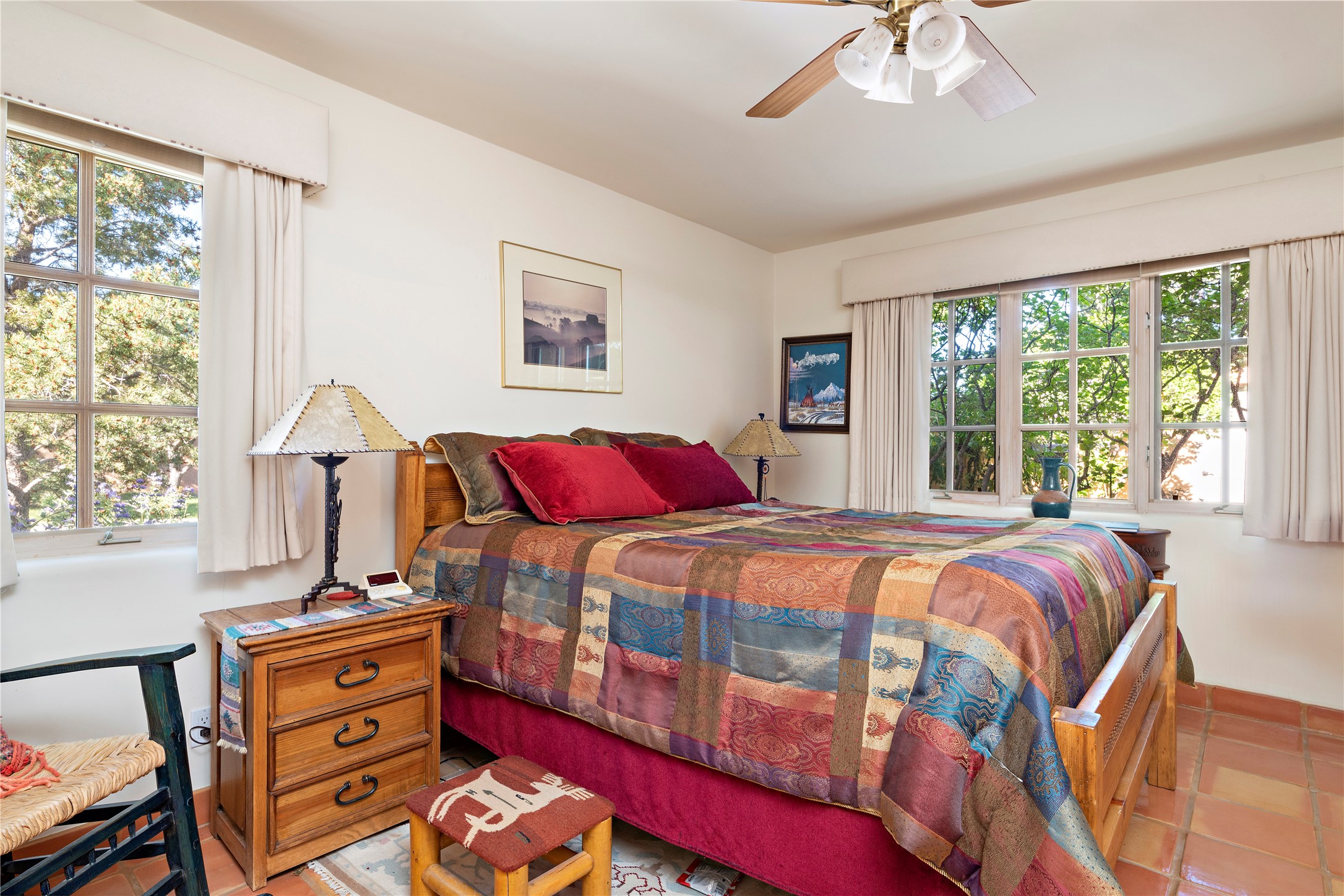 One of the most desirable floor plans in Quail Run the Pinon C features 2 bedrooms + Den or a potential 3rd bedroom. Pride of ownership throughout. Located in a private interior location adjacent to green space adds to the privacy. The interior has all the famous Quail Run design touches with an additional skylight in the living room to wash the wall with ambient light. 2 kiva fireplaces and nice separation of bedrooms with ensuite baths. Outdoor portals and patios are sanctuaries of lush gardens with access from different locations. Perfect for entertaining or just enjoying a peaceful retreat. Easy walking distance to the club house and all the amenities. 24 hour gated hosted security and just 3 miles to the Santa Fe Plaza. The owners request 24 hour notice for showings.