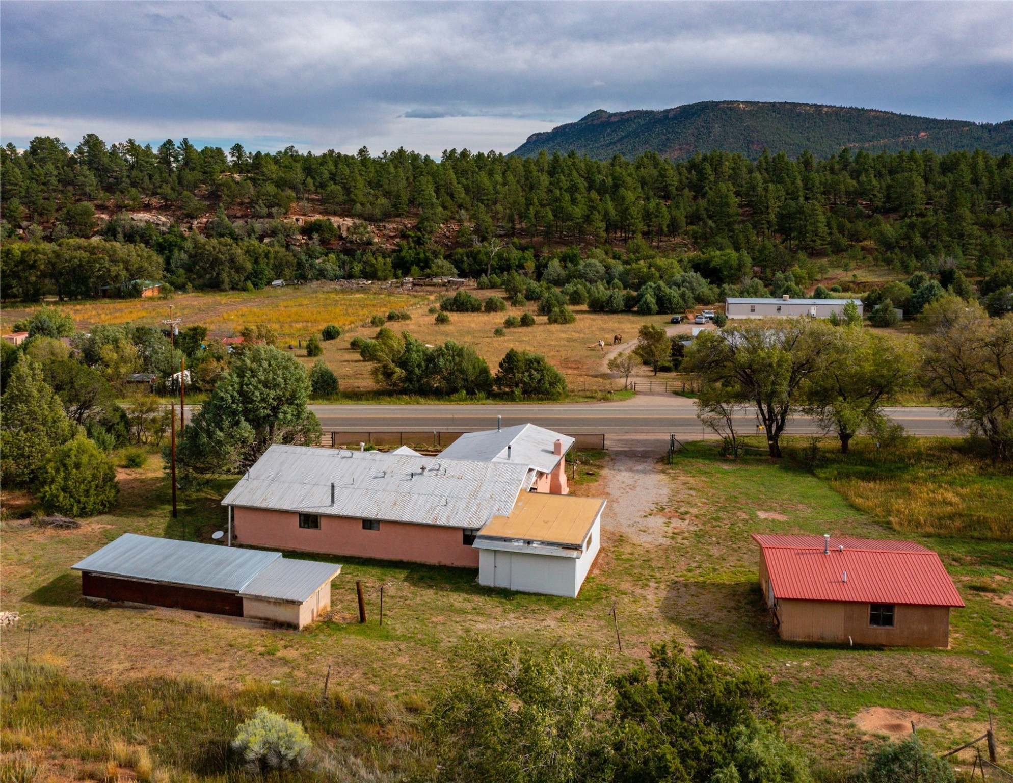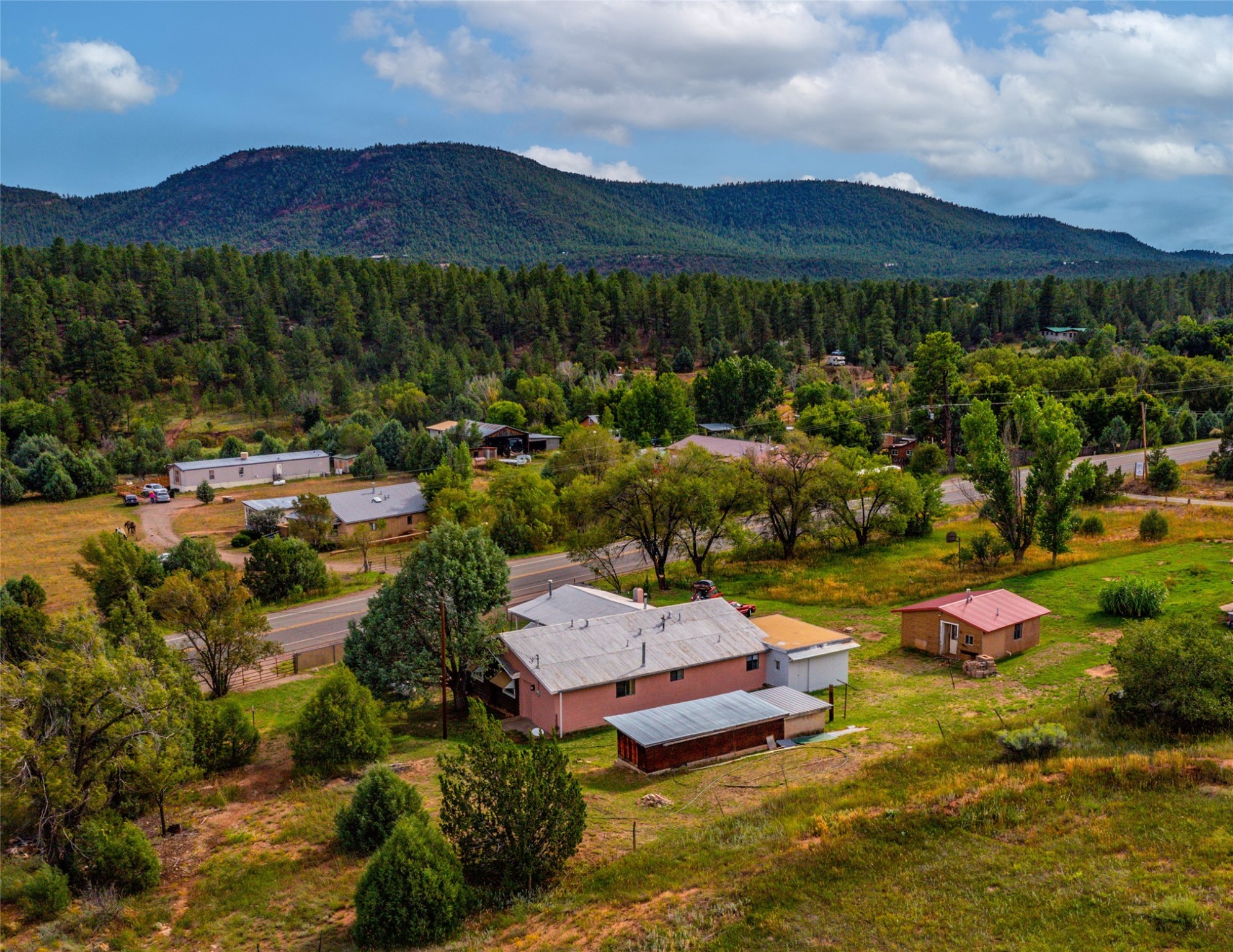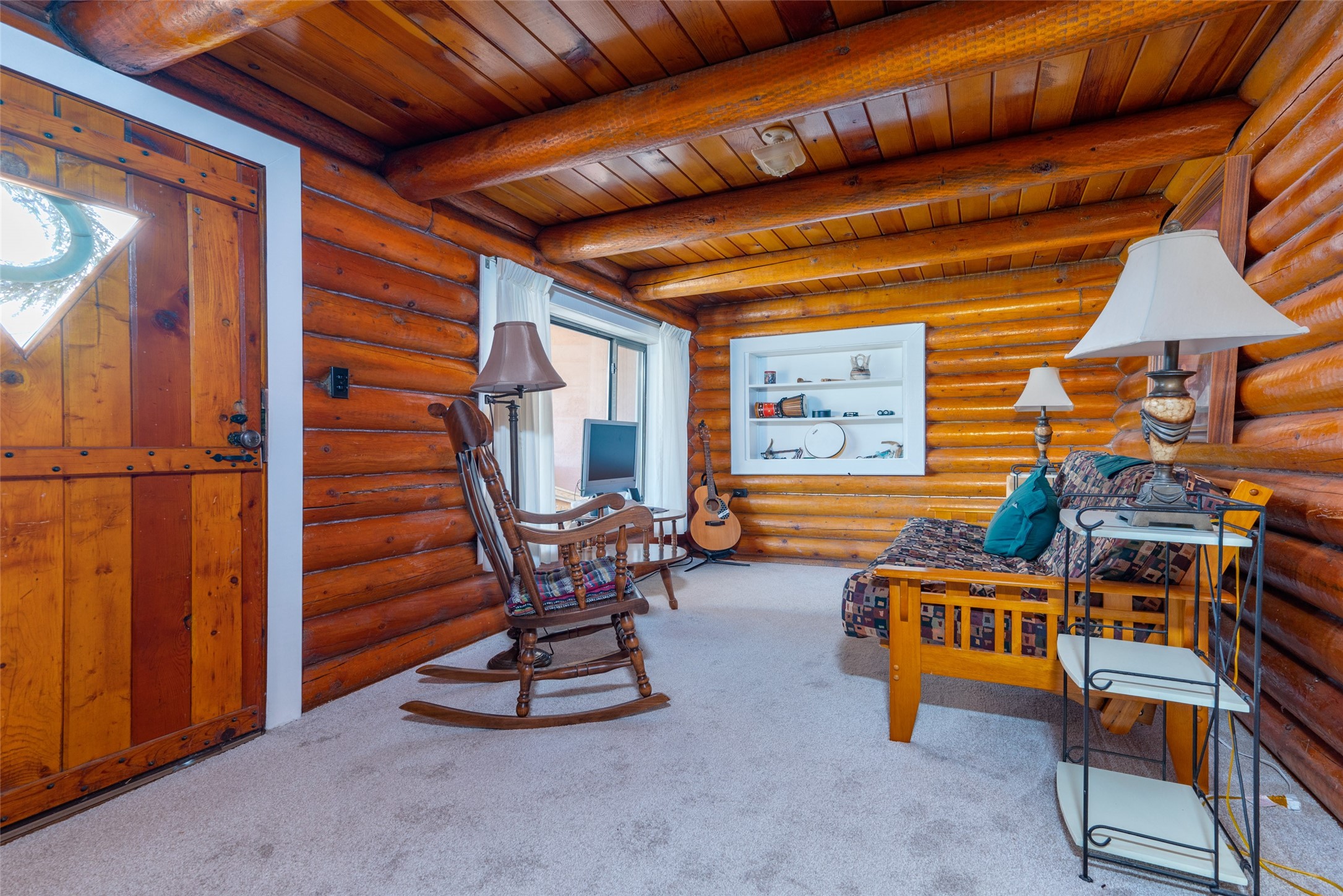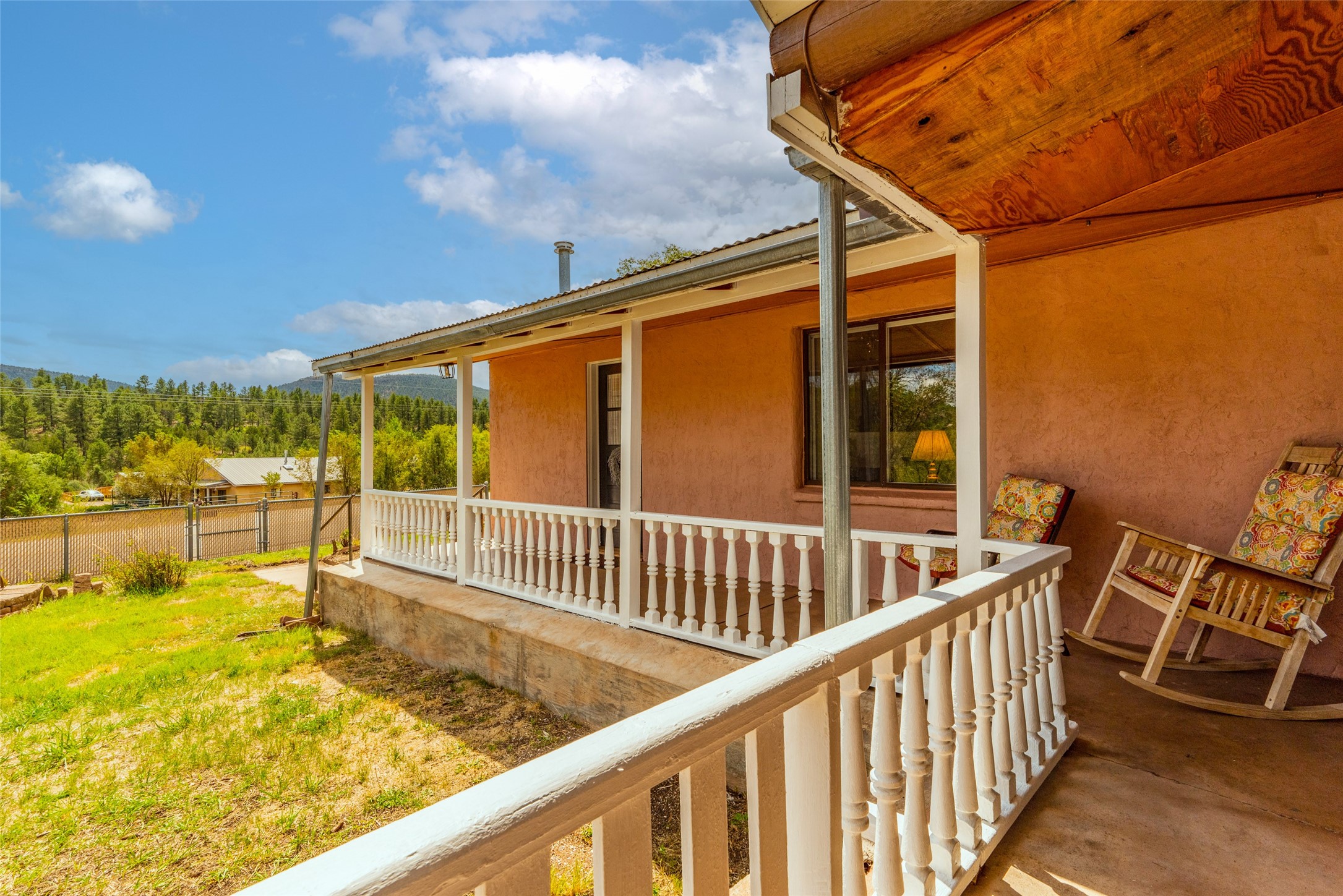 Beautiful recently updated. 2 br, +Den, 2 baths, great room, breakfast room. Huge country kitchen, pantry, utility room, and outbuildings. Conveniently located on the Santa Fe Trail between Glorieta and Pecos in Santa Fe County. This property began in 1940 as an authentic 416-square-foot Log Cabin. Over the years it has been thoughtfully expanded to this large comfortable family home. The original exterior front and side of the original cabin still boast exterior original logs! The interior is freshly painted with new luxury vinyl and carpet flooring. Enter the front door from the large L-shaped covered porch. Brightly lit great room with a formal dining area, and a comfortable sitting area complete with built-ins and a cozy fireplace with insert. The original curved hardwood stained ceiling. Storage is plentiful in the attached kitchen with its own original curved ceiling and over 25 cabinets, plenty of work areas, a new sink and faucet, a brand new stainless refrigerator, a gas oven/range with a new range hood, and a newer dishwasher. Continue through to what was the original log cabin kitchen now used as a pantry area with a large coat closet and room for future library shelving and storage. The property also has a storage shed that was once a casita perhaps destined for a remodel to become a workshop/study. Another outbuilding contains the well house and tool and equipment storage. Must See!
