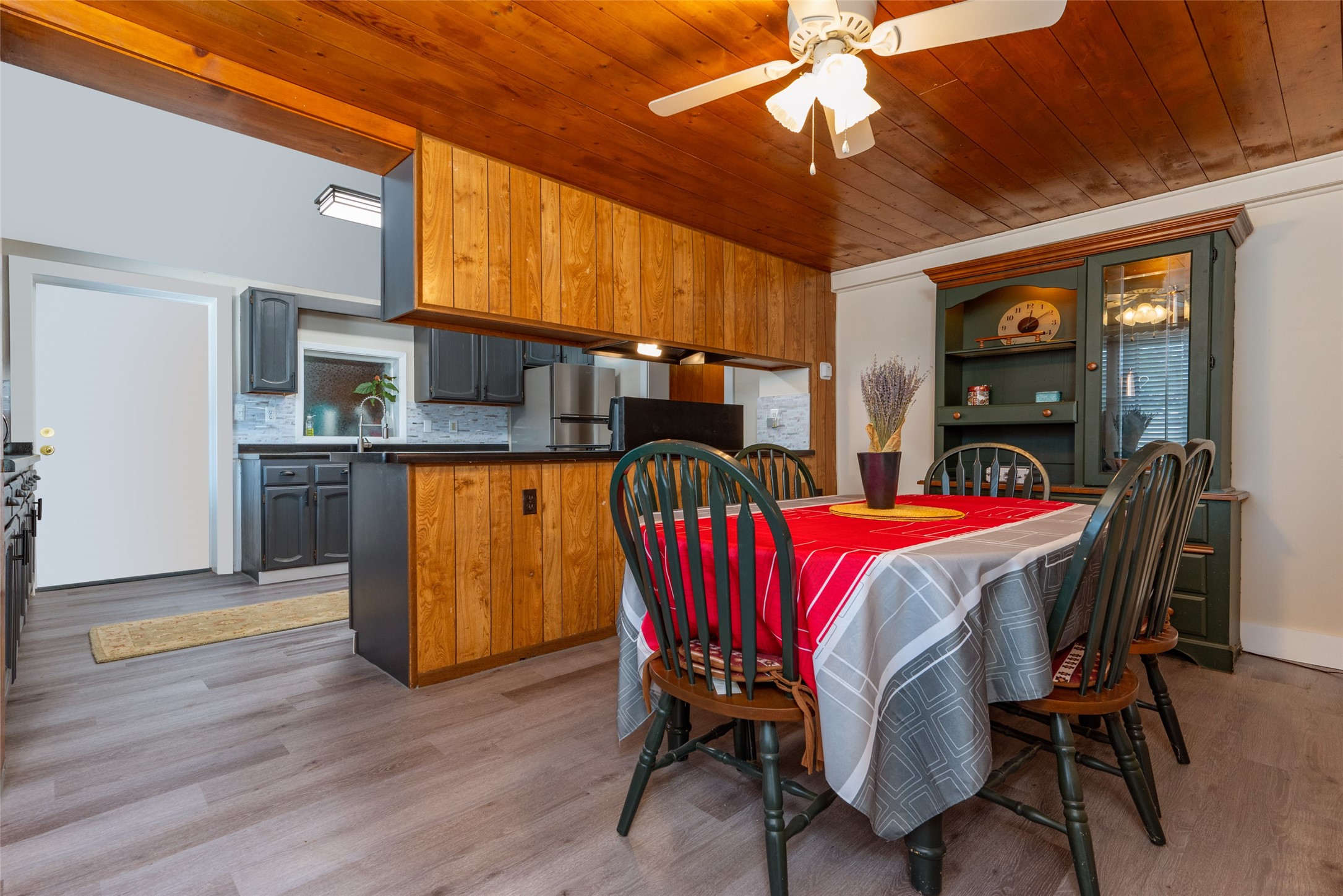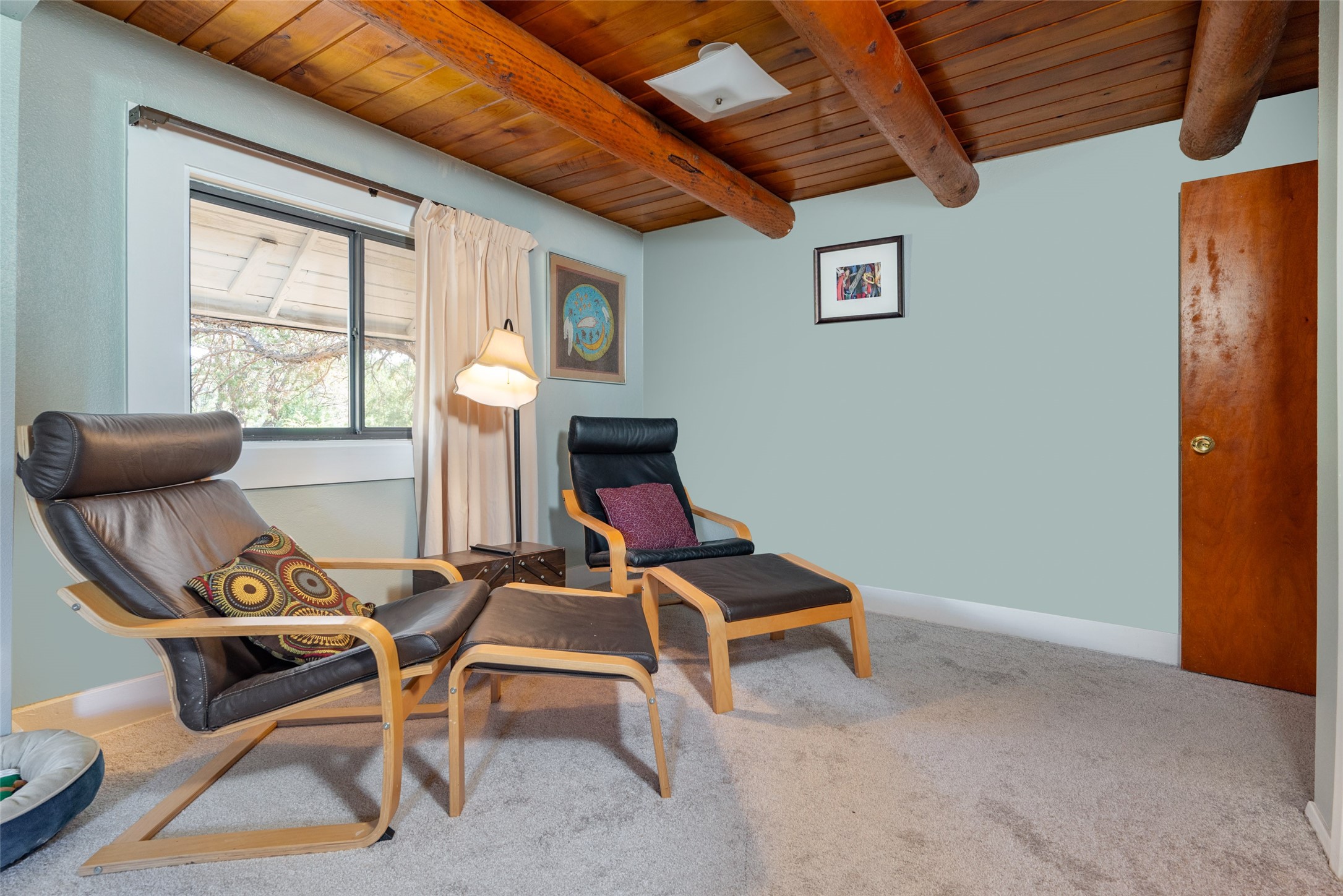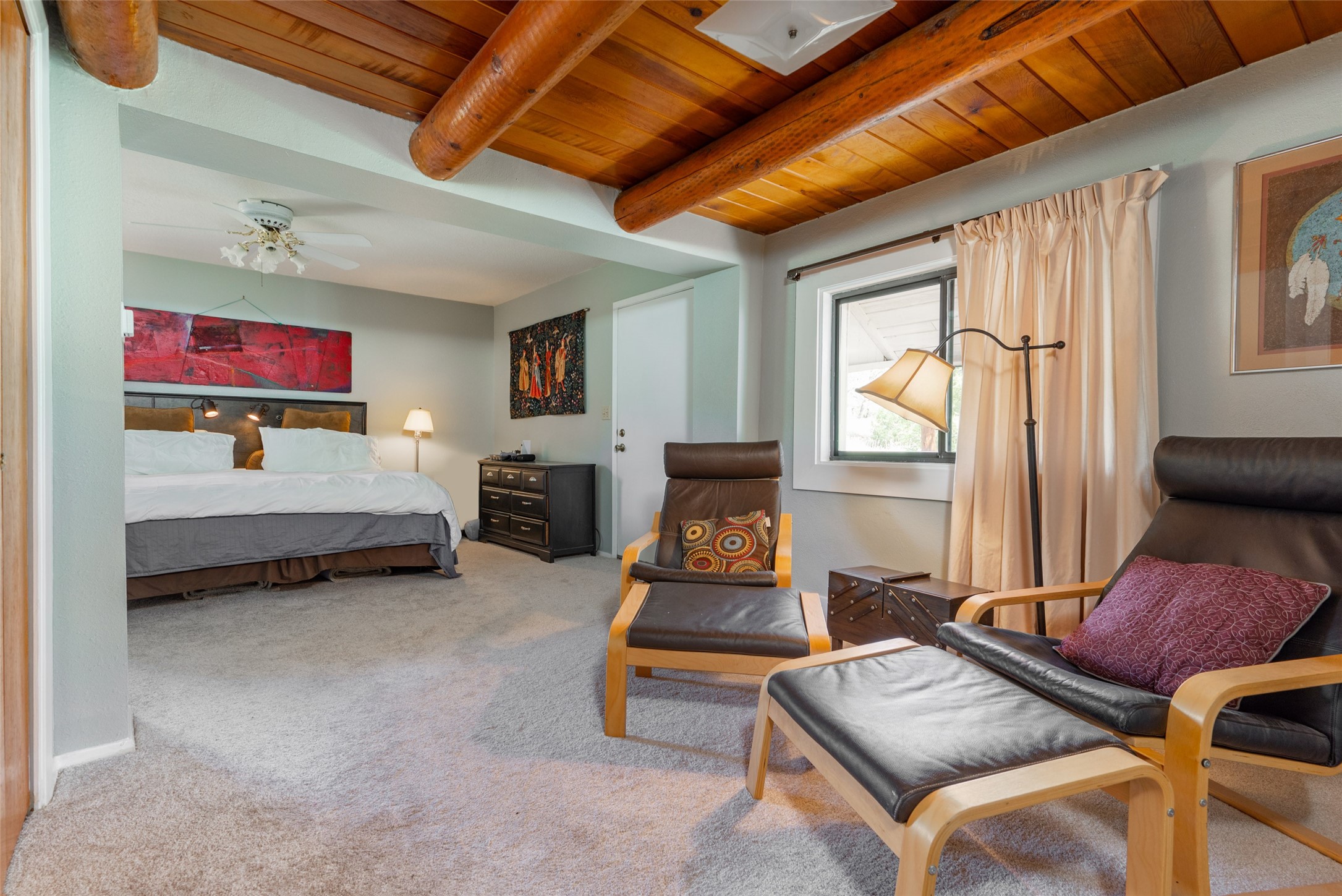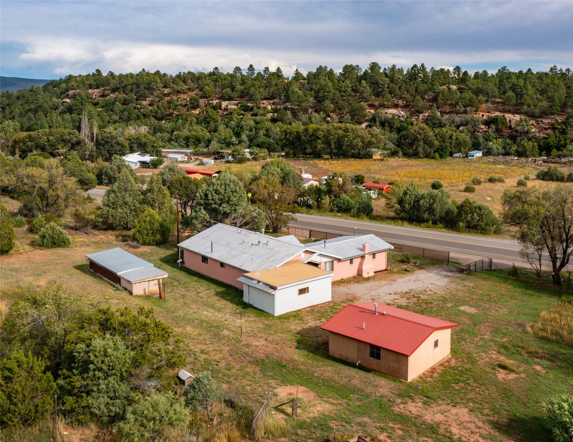 Beautiful recently updated. 2 br, +Den, 2 baths, great room, breakfast room. Huge country kitchen, pantry, utility room, and outbuildings. Conveniently located on the Santa Fe Trail between Glorieta and Pecos in Santa Fe County. This property began in 1940 as an authentic 416-square-foot Log Cabin. Over the years it has been thoughtfully expanded to this large comfortable family home. The original exterior front and side of the original cabin still boast exterior original logs! The interior is freshly painted with new luxury vinyl and carpet flooring. Enter the front door from the large L-shaped covered porch. Brightly lit great room with a formal dining area, and a comfortable sitting area complete with built-ins and a cozy fireplace with insert. The original curved hardwood stained ceiling. Storage is plentiful in the attached kitchen with its own original curved ceiling and over 25 cabinets, plenty of work areas, a new sink and faucet, a brand new stainless refrigerator, a gas oven/range with a new range hood, and a newer dishwasher. Continue through to what was the original log cabin kitchen now used as a pantry area with a large coat closet and room for future library shelving and storage. The property also has a storage shed that was once a casita perhaps destined for a remodel to become a workshop/study. Another outbuilding contains the well house and tool and equipment storage. Must See!
