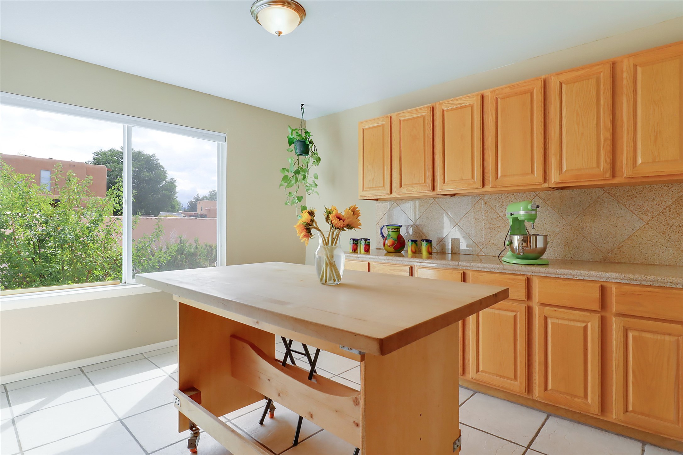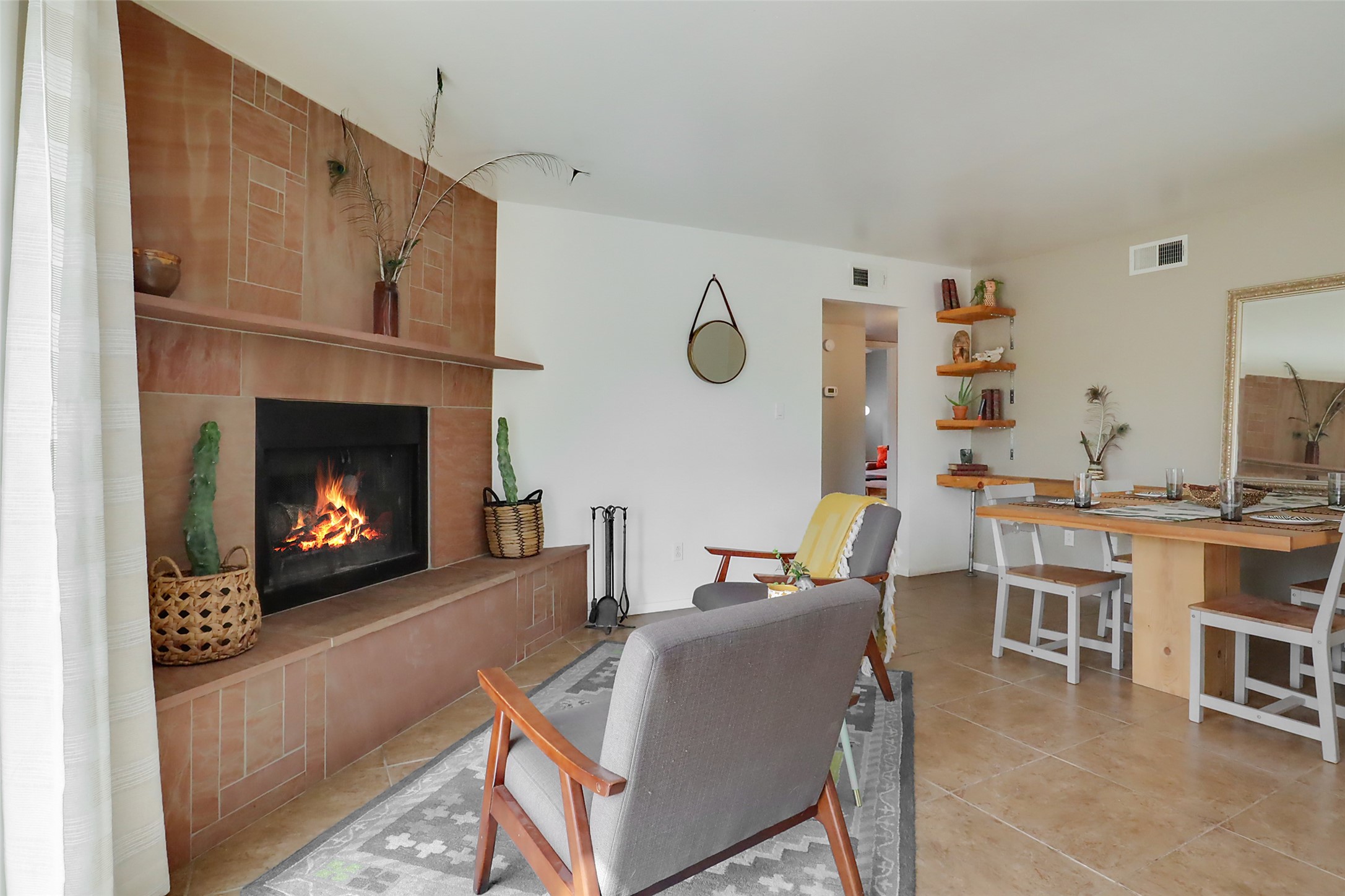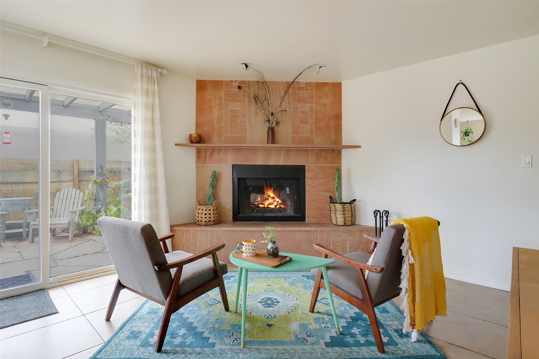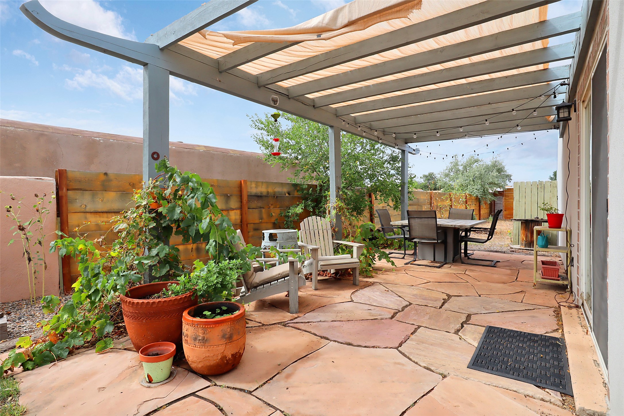 Calling all outdoor gardening enthusiasts! So much character abounds in this centrally-located bungalow. From the fully walled front yard to the freshly stucco'd calming sage green of the home, this place will quickly become your everyday oasis or home away from home. You'll love the tile accents embedded into the home's outside walls, the picture window from the spacious kitchen to the courtyard, and the mature grapevines and landscaping. A paved patio with pergola provides perfect indoor-outdoor living just off the living room - perfect for your morning coffee time. The back yard fire pit is ready for the chilly Fall evenings, and there's so much room for future gardening possibilities.Immediately upon entering the living room, you'll appreciate the wood-burning fireplace as the centerpiece to the home. The built-in wooden shelving and sturdy wooden table provide a high quality utilitarian space, while remaining easily removable if someone desires a larger living space and smaller dining area. The open floor plan allows versatility in the way you'd like to set it up! What a kitchen! Ample counter space, and plenty of room to make this a dining-in kitchen. The two bedrooms are adorned with warm wood-plank flooring, with one of the two having a door directly to the bathroom. The primary bedroom can easily host a king-sized bed along with a sitting area and other furniture. The second bedroom is also adequately-sized.A half-mile to tons of shopping and dining, and a quick 10 minute drive to the Plaza, Railyards, and Canyon Road - this home's location is truly ideal for ease of reaching the best of Santa Fe and beyond.