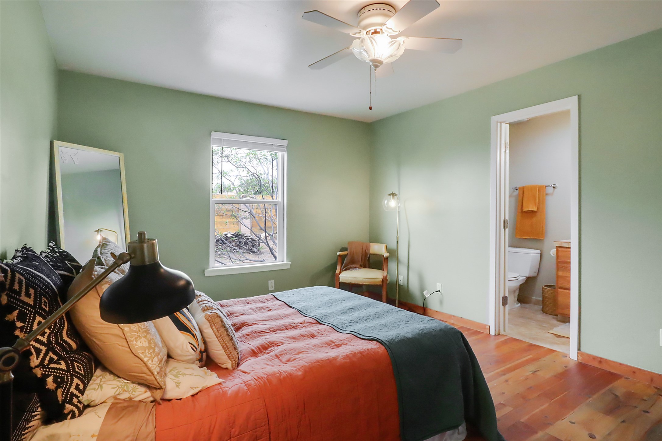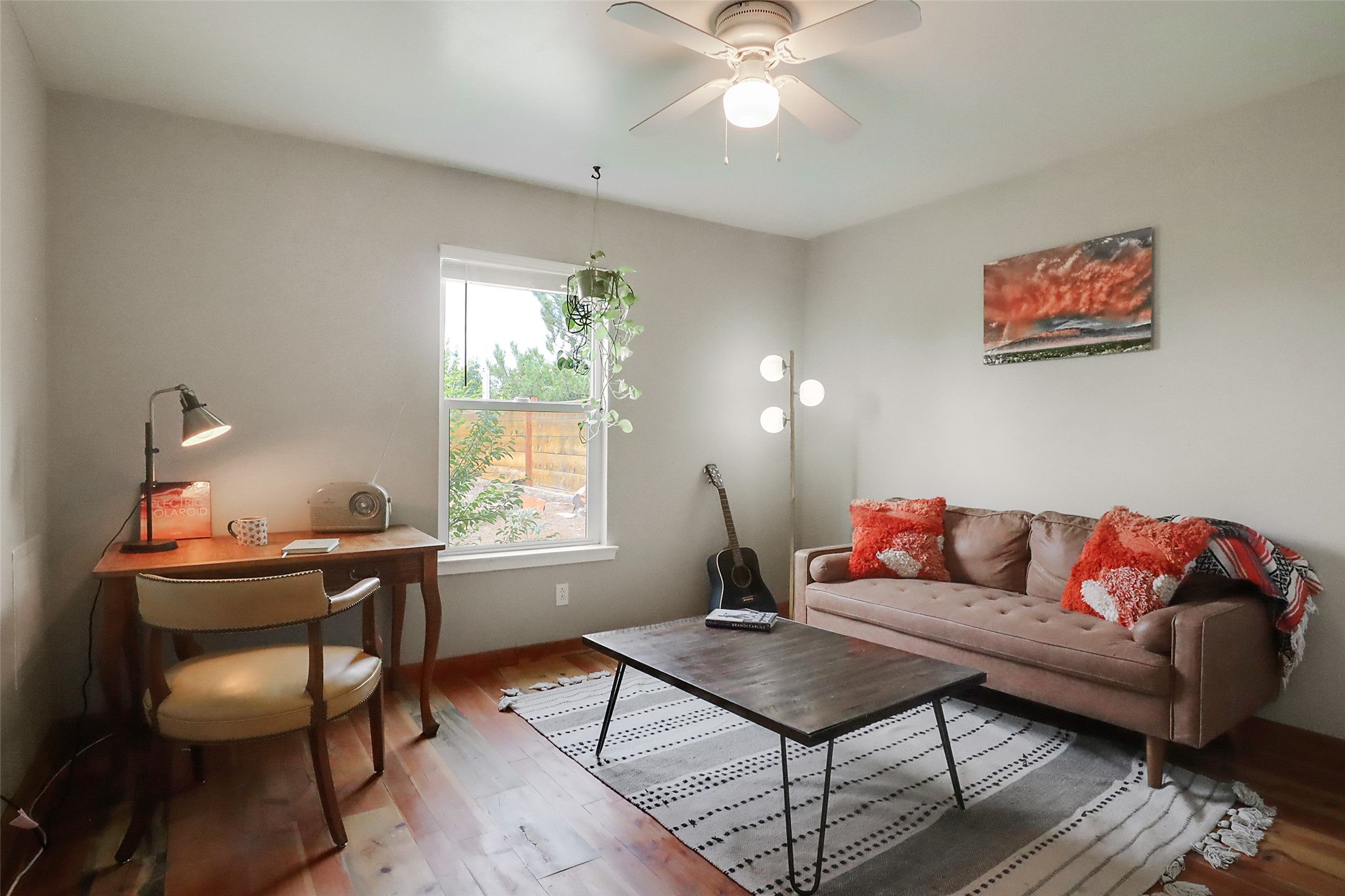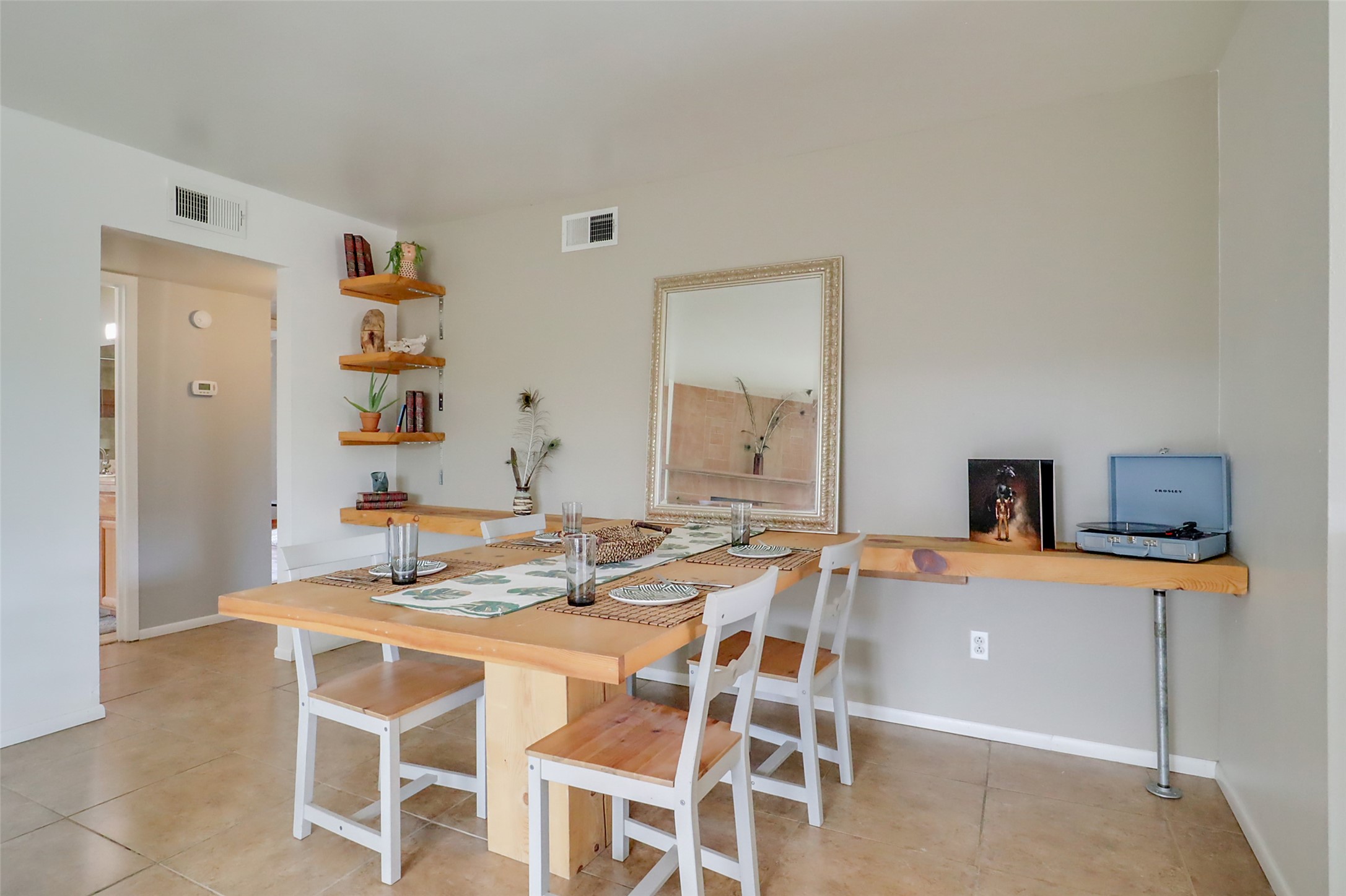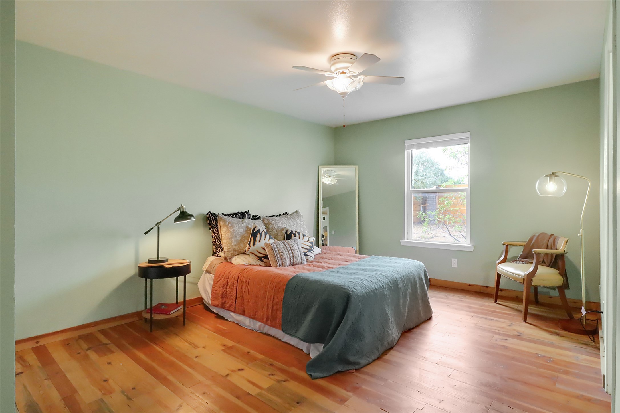 Calling all outdoor gardening enthusiasts! So much character abounds in this centrally-located bungalow. From the fully walled front yard to the freshly stucco'd calming sage green of the home, this place will quickly become your everyday oasis or home away from home. You'll love the tile accents embedded into the home's outside walls, the picture window from the spacious kitchen to the courtyard, and the mature grapevines and landscaping. A paved patio with pergola provides perfect indoor-outdoor living just off the living room - perfect for your morning coffee time. The back yard fire pit is ready for the chilly Fall evenings, and there's so much room for future gardening possibilities.Immediately upon entering the living room, you'll appreciate the wood-burning fireplace as the centerpiece to the home. The built-in wooden shelving and sturdy wooden table provide a high quality utilitarian space, while remaining easily removable if someone desires a larger living space and smaller dining area. The open floor plan allows versatility in the way you'd like to set it up! What a kitchen! Ample counter space, and plenty of room to make this a dining-in kitchen. The two bedrooms are adorned with warm wood-plank flooring, with one of the two having a door directly to the bathroom. The primary bedroom can easily host a king-sized bed along with a sitting area and other furniture. The second bedroom is also adequately-sized.A half-mile to tons of shopping and dining, and a quick 10 minute drive to the Plaza, Railyards, and Canyon Road - this home's location is truly ideal for ease of reaching the best of Santa Fe and beyond.