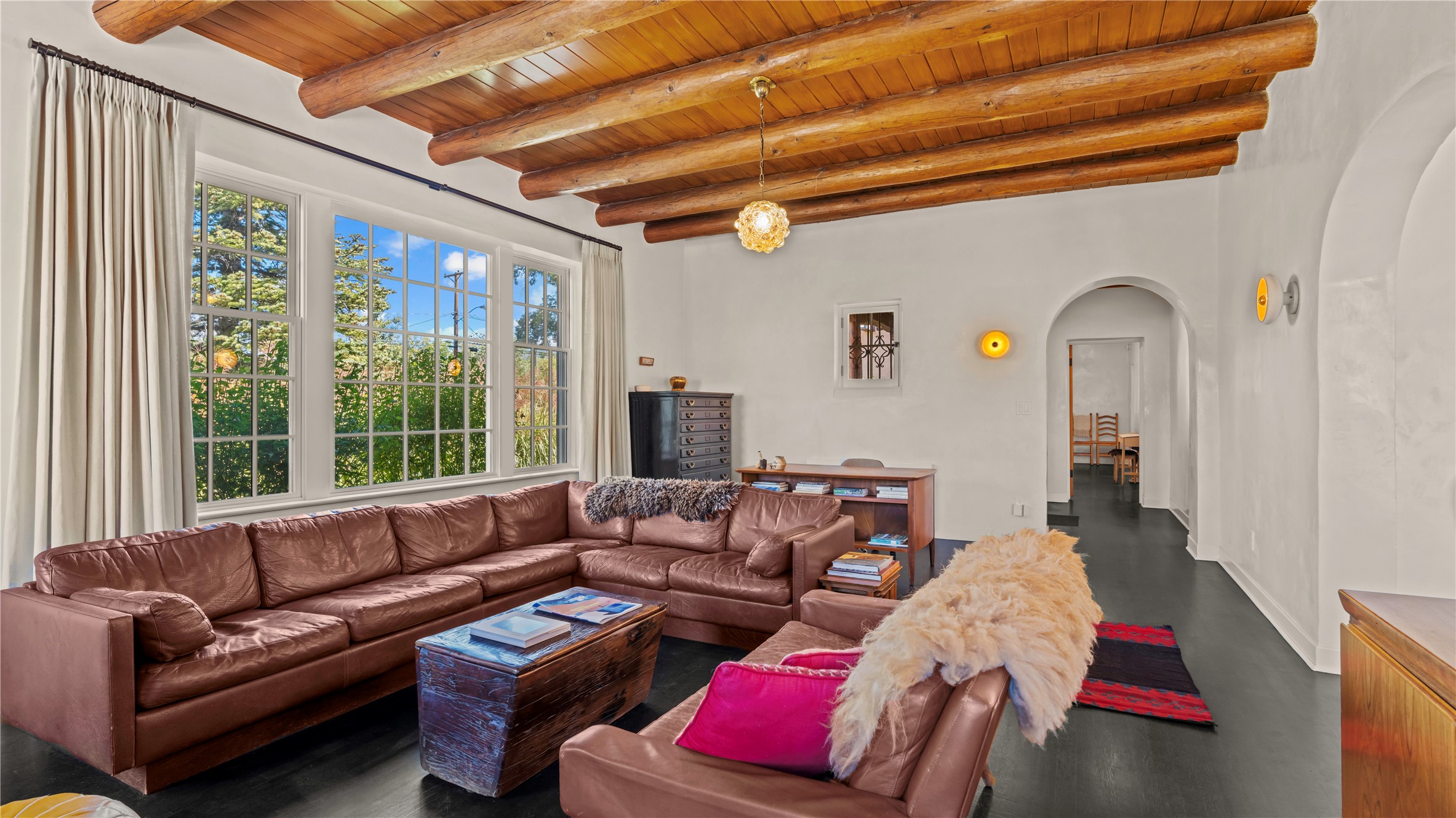 A rare historic offering in the sought-after South Capitol neighborhood, this 1929 home, designed by renowned Santa Fe architect John Gaw Meem, envelops you in traditional elegance with many modern upgrades. The large lot (.83 acre +/-) can likely be split, and the property has a water well in addition to city water. Recent improvements include updated heating and water systems and kitchen and bath renovations. This property has been designated as historically "contributing" and has a perfect central location, minutes from all the things and places Santa Fe is famous for. The original carriage house can be utilized for cars or storage. Meem's vision remains intact for the discriminating buyer. Features include hardwood floors, diamond finish plaster, steam shower in master bath, 2 fireplaces, 2 mini-splits, apricot and cherry trees as well as ample off-street parking. Basement of 292 sq ft has plastered walls and a half-bath and is in ADDITION to the stated sq ft. Property is historically "contributing".