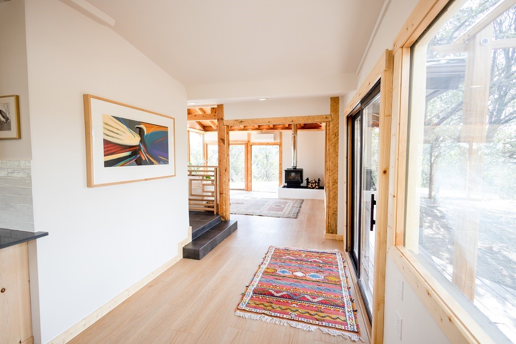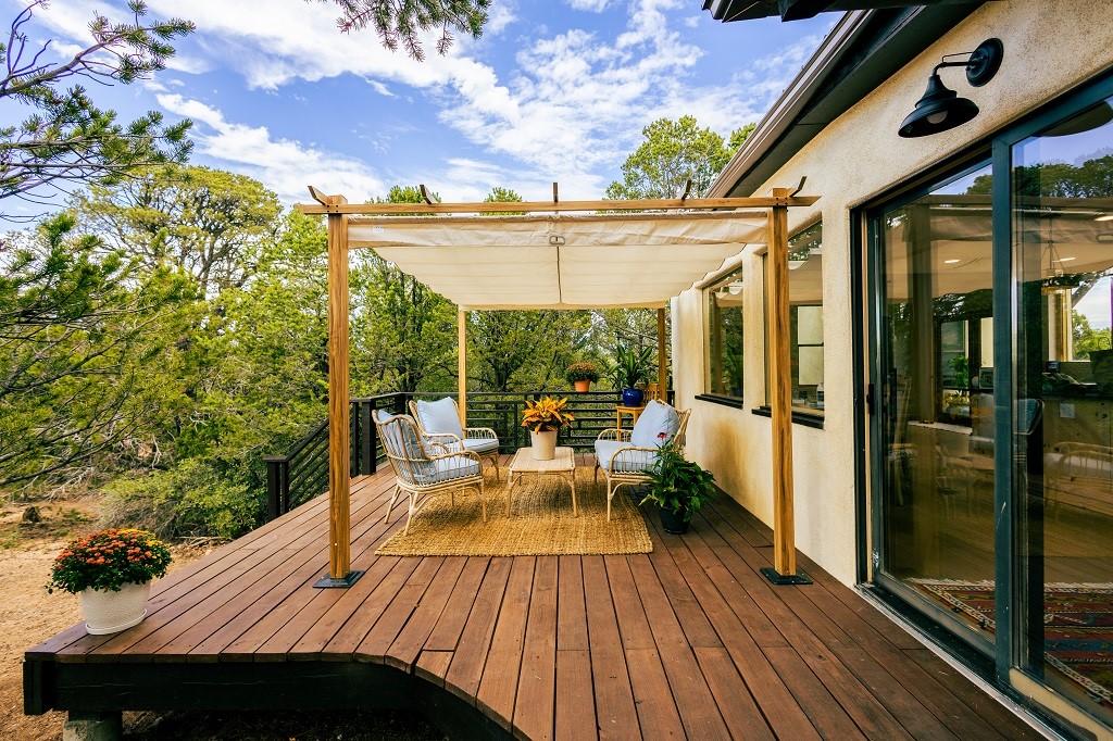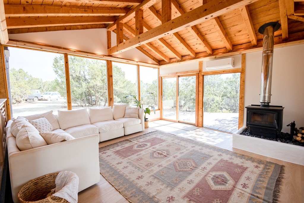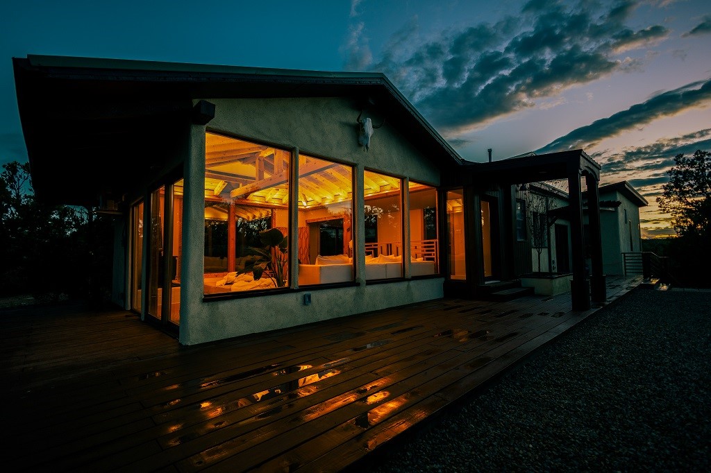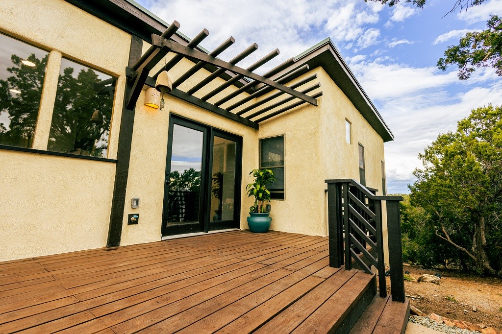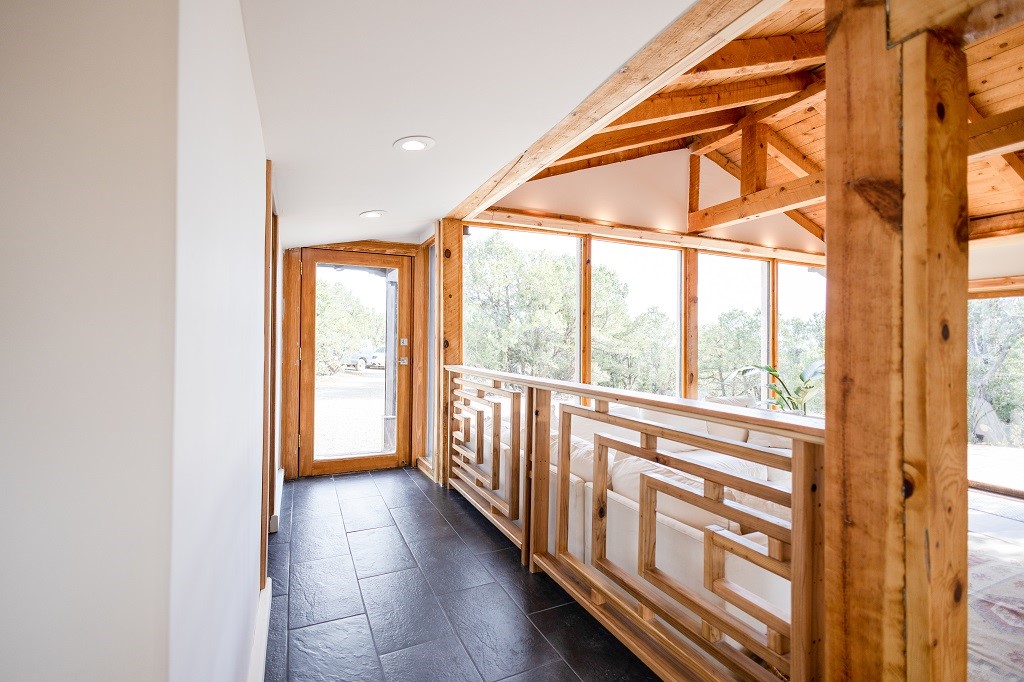 Beautifully remodeled hilltop oasis! Enjoy your personal getaway nestled in 6.4 acres of pristine land in the foothills of the Sangre de Cristo mountains. This elegantly and completely remodeled home integrates seamlessly into the natural landscape of mature junipers, ponderosas and pinons. Over 800 square feet of deck space, large windows on every wall, vaulted timber ceilings and custom woodworking throughout, make for true sleek southwestern and zen style home. With an updated kitchen and bathrooms, 200 amp electrical system, brand new mini splits heating/cooling system, new wood stove, radiant heated bathroom floors, luxury vinyl plank, new on-demand water heater, fresh stucco and high-end finishes, this overhauled renovation spared no expense. A mere 15 minutes from the historic Santa Fe plaza, in the desirable Apache Ridge neighborhood, there is no HOA and plenty of room to continue growing this gorgeous property. Owner is NMREL