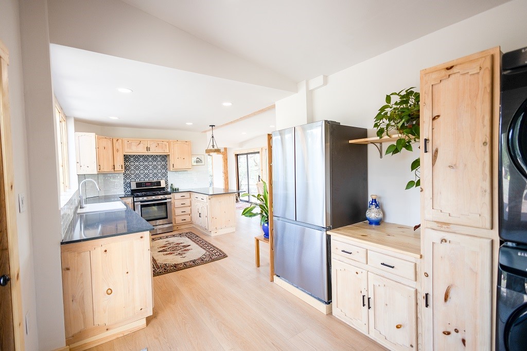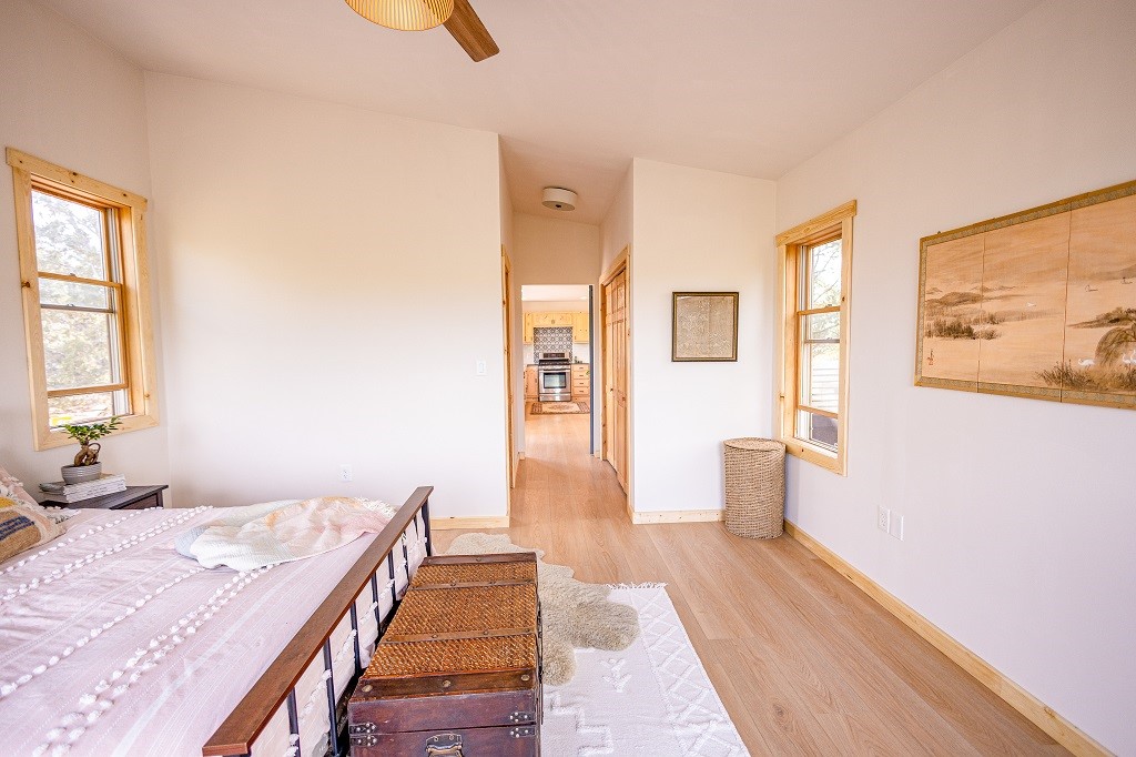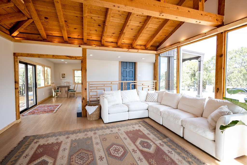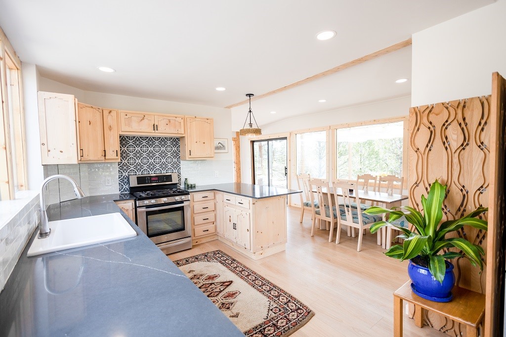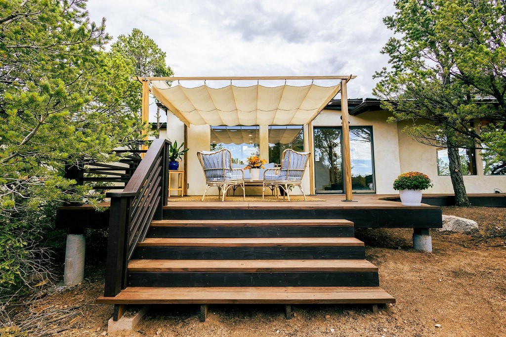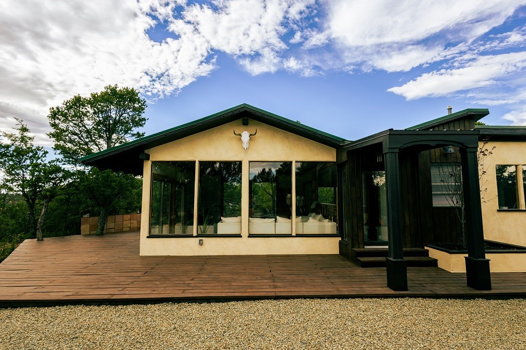 Beautifully remodeled hilltop oasis! Enjoy your personal getaway nestled in 6.4 acres of pristine land in the foothills of the Sangre de Cristo mountains. This elegantly and completely remodeled home integrates seamlessly into the natural landscape of mature junipers, ponderosas and pinons. Over 800 square feet of deck space, large windows on every wall, vaulted timber ceilings and custom woodworking throughout, make for true sleek southwestern and zen style home. With an updated kitchen and bathrooms, 200 amp electrical system, brand new mini splits heating/cooling system, new wood stove, radiant heated bathroom floors, luxury vinyl plank, new on-demand water heater, fresh stucco and high-end finishes, this overhauled renovation spared no expense. A mere 15 minutes from the historic Santa Fe plaza, in the desirable Apache Ridge neighborhood, there is no HOA and plenty of room to continue growing this gorgeous property. Owner is NMREL