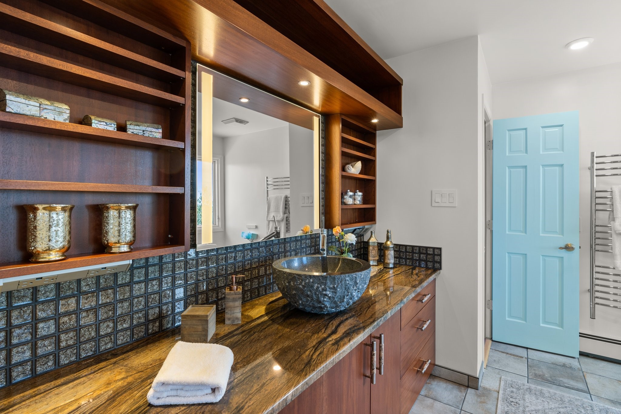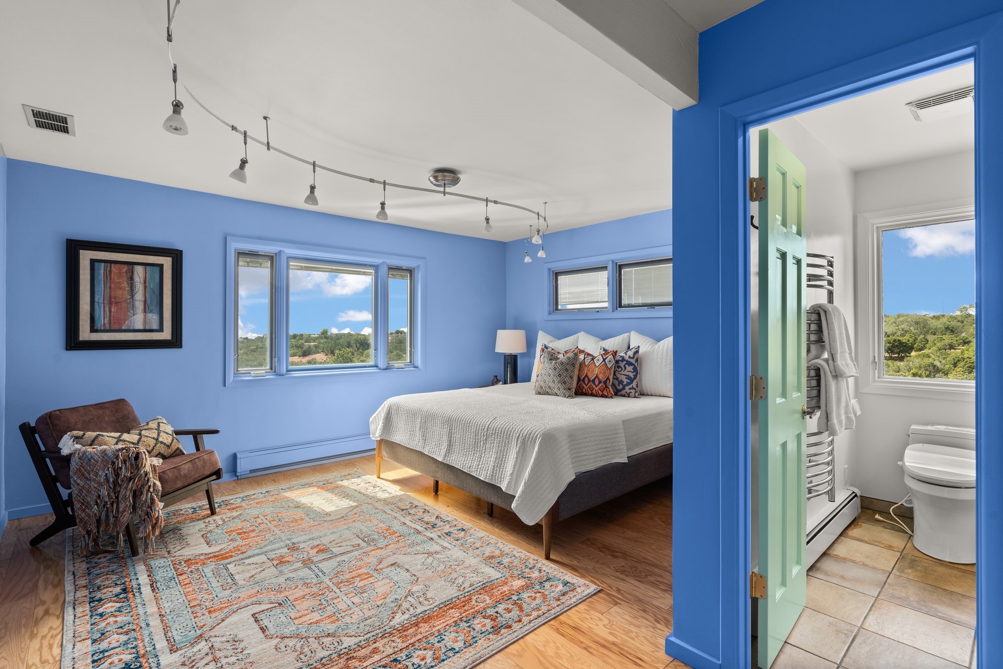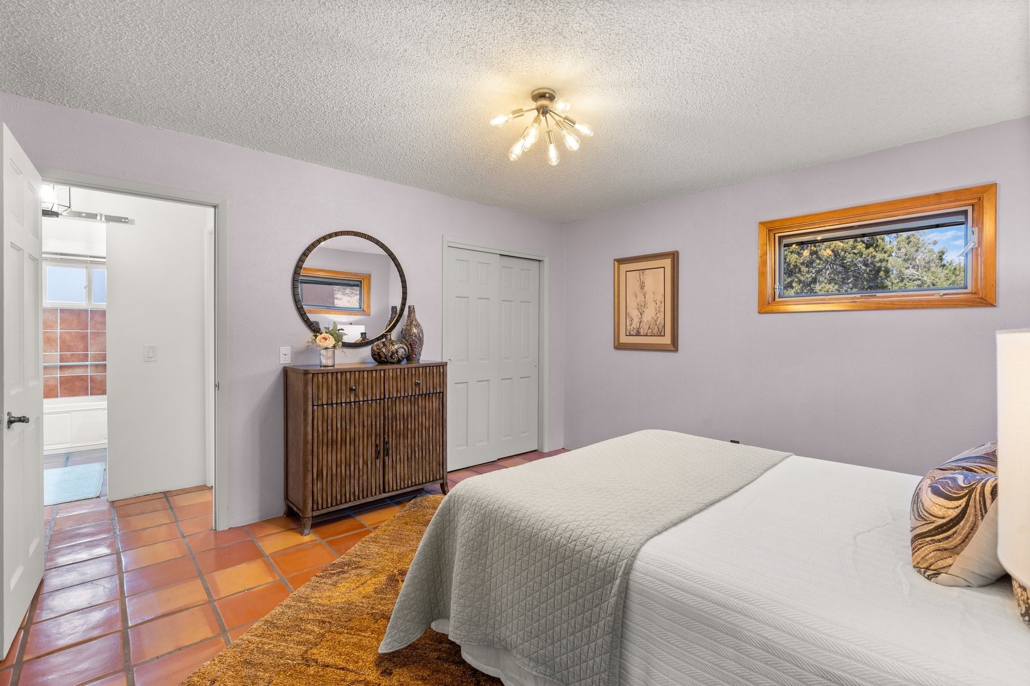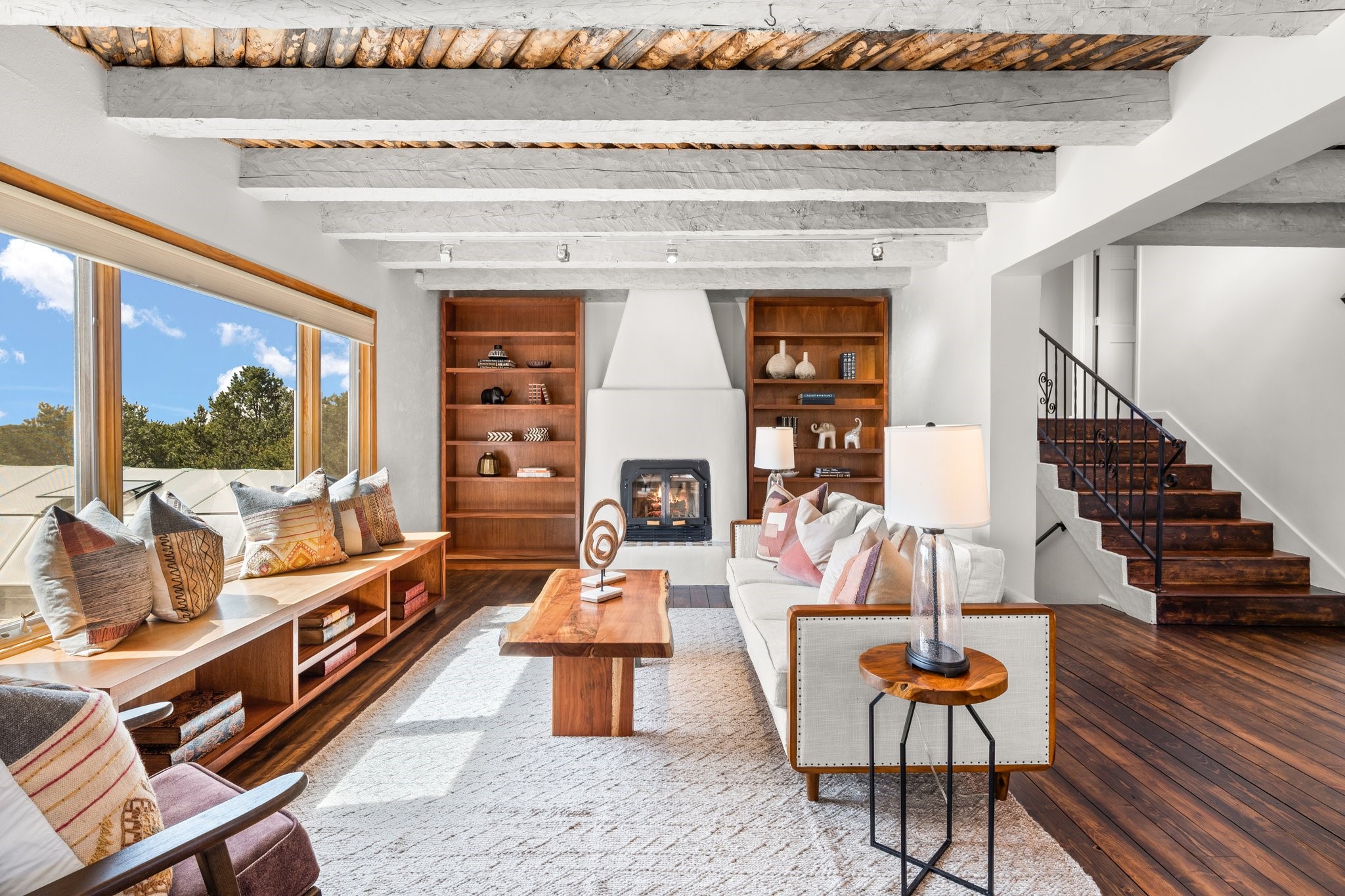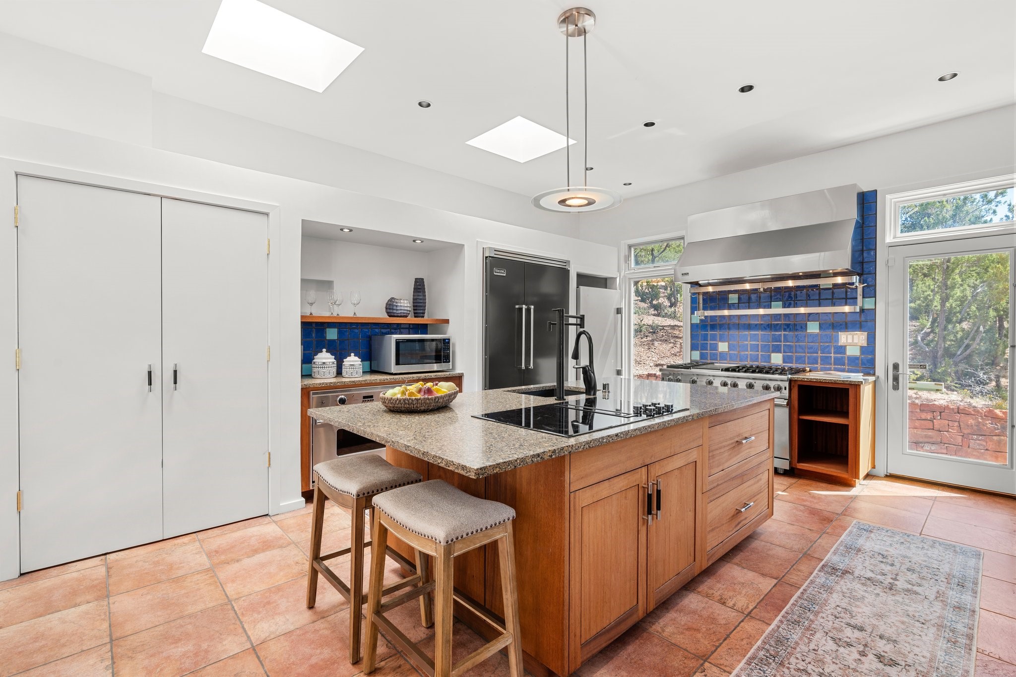 This stunning 4,000 +/- sq. ft home boasts 2 full bedroom suites, each with its own bathroom and sitting room. The upstairs suite additionally has an office while the downstairs bedroom suite with direct entry from the outside has a kitchenette. Nestled in the serene Santa Fe mountains and surrounded by magnificent views, this meticulously maintained home sitting on 1.9 acres is but minutes from downtown Santa Fe and its many amenities. Ideal for year-round entertaining, the generous great-room (living, dining, kitchen), offers easy access to the 900 sq. ft. Trex deck from which to enjoy amazing sunset views. The bespoke chef's-kitchen boasts a full range of top-of-the-line, Energy-Star, stainless steel appliances -- two stove tops, one electric with downdraft, and one gas; three ovens, one electric and two gas; two dishwashers, a wine cooler, microwave, a Viking fridge/freezer combo as well as a separate upright freezer, two sinks, and a very generous island. Quartz countertops and custom cabinetry complete the kitchen. The adjoining studio with storage for paintings can double as a family room or be built out into a stunning main bedroom suite. A 20 x 8 ft greenhouse and a garden shed allow you to give flight to all your gardening dreams. Paid off solar panels on the roof keep the electric bills to a minimum. A composite roof slopes gently to allow for drainage. The house is protected with lightning rods around the perimeter of the roof. This home offers so many more extras that it is impossible to list them all here. Please see additional info in document section of listing. All measurements are estimates and if of material interest, Buyer to independently verify. Neither Seller nor Listing Broker warrant house or lot size.