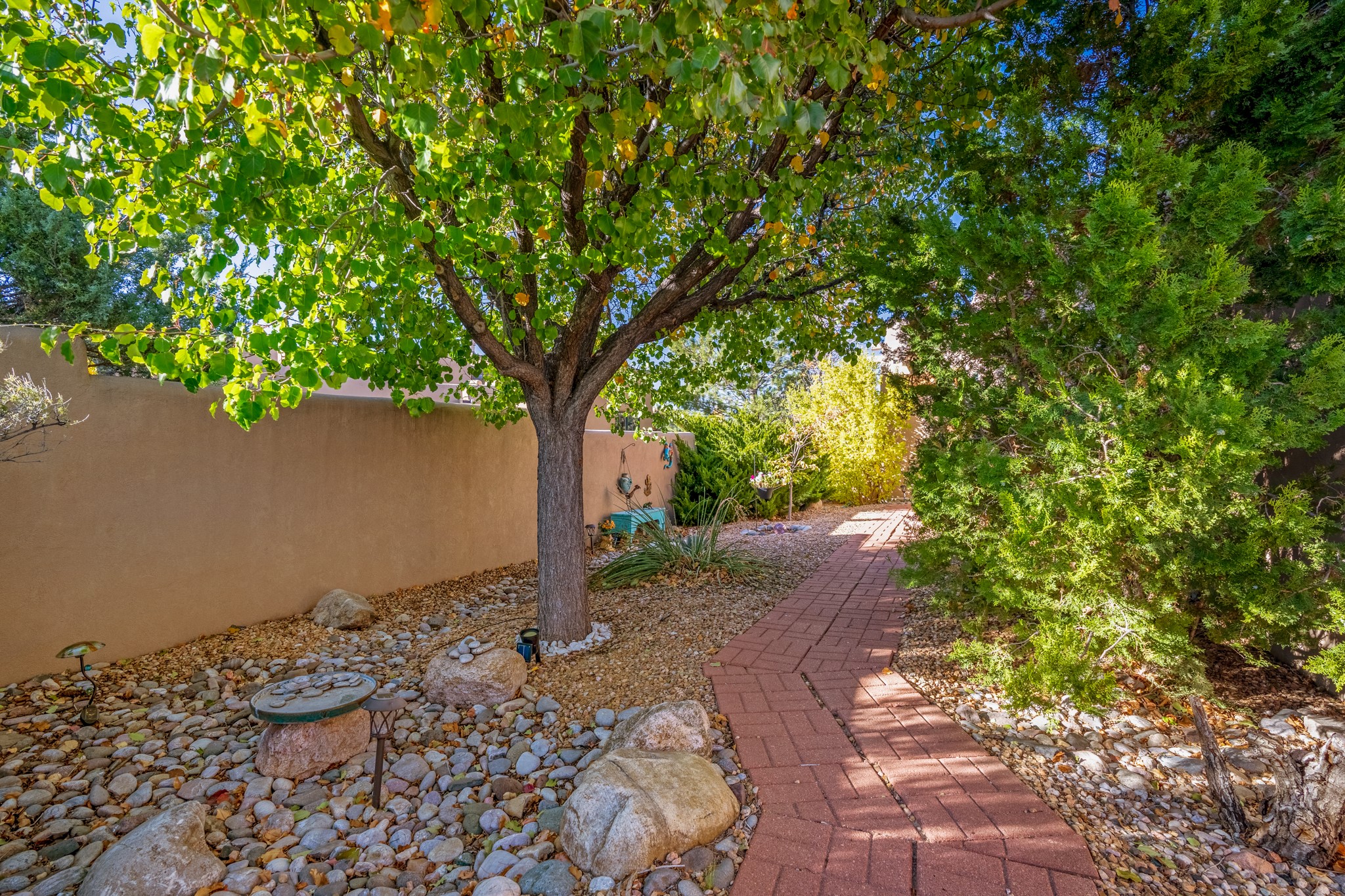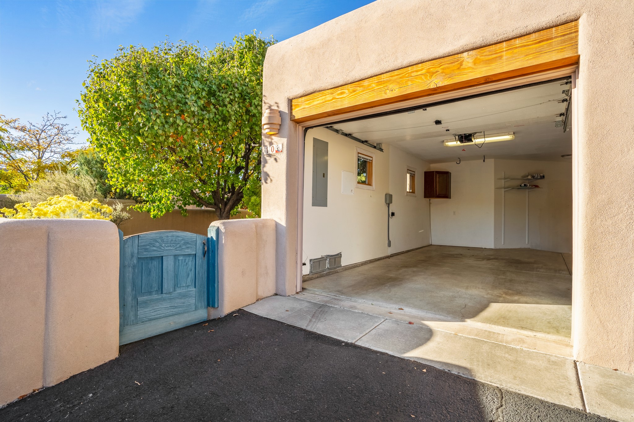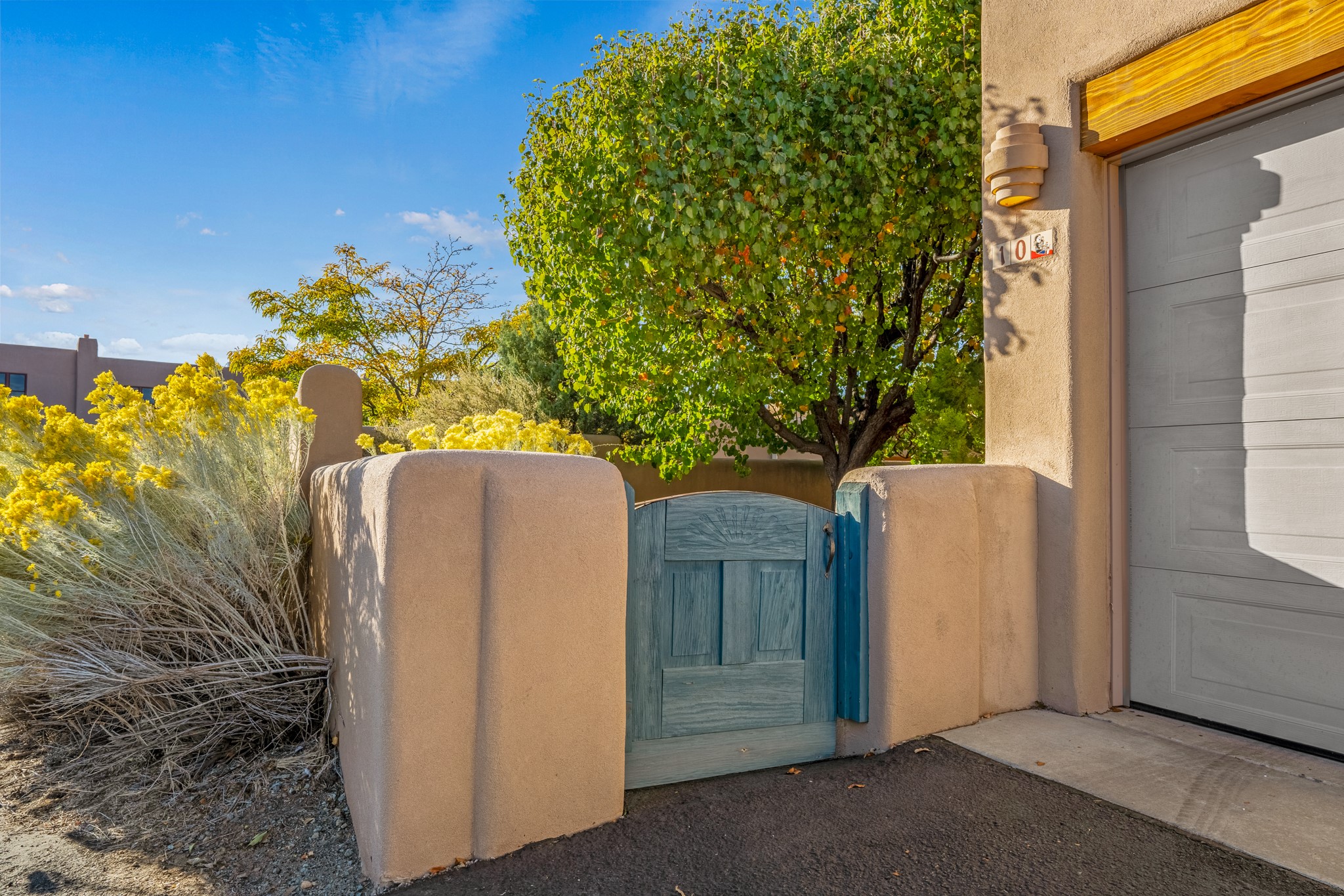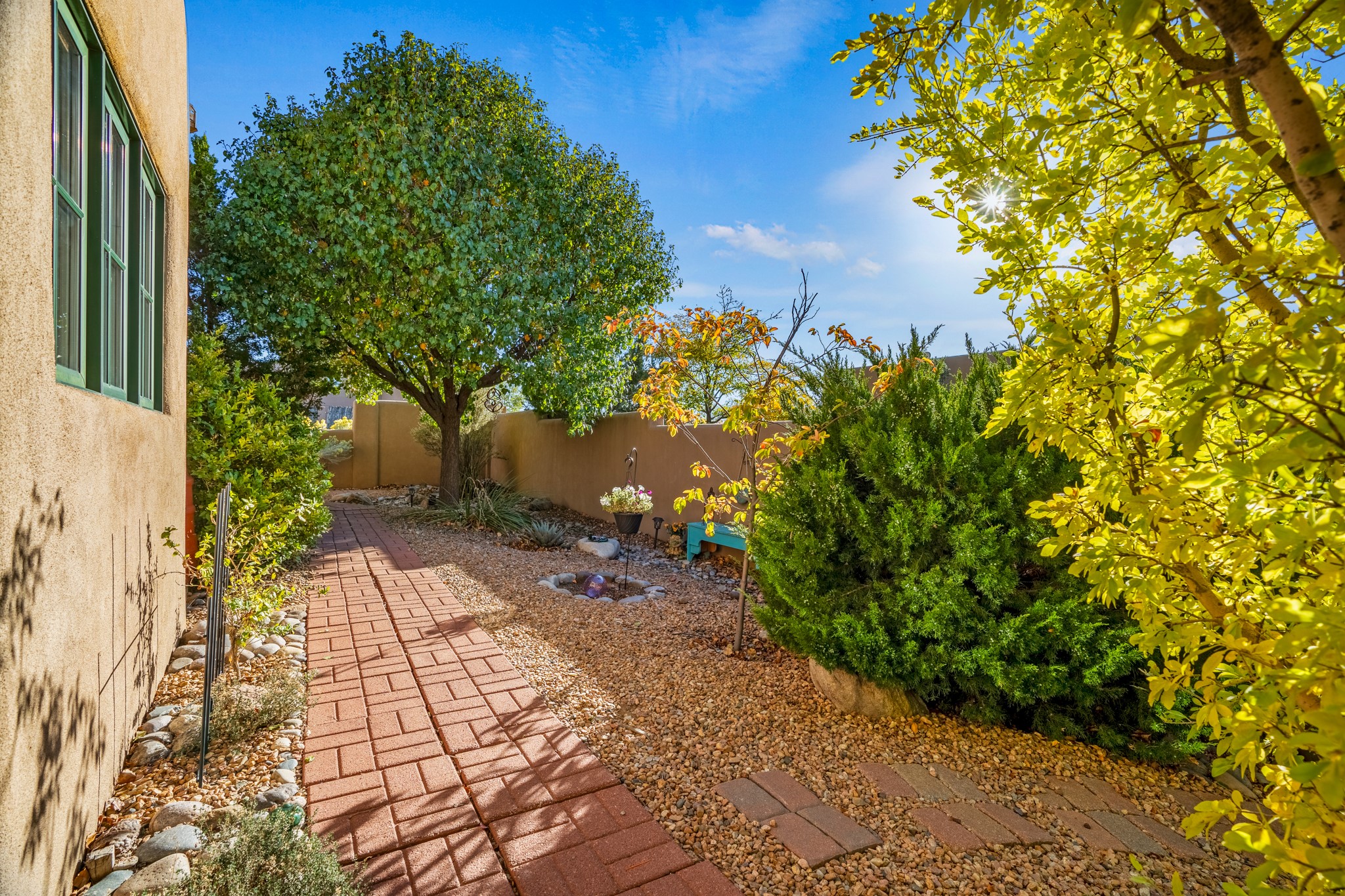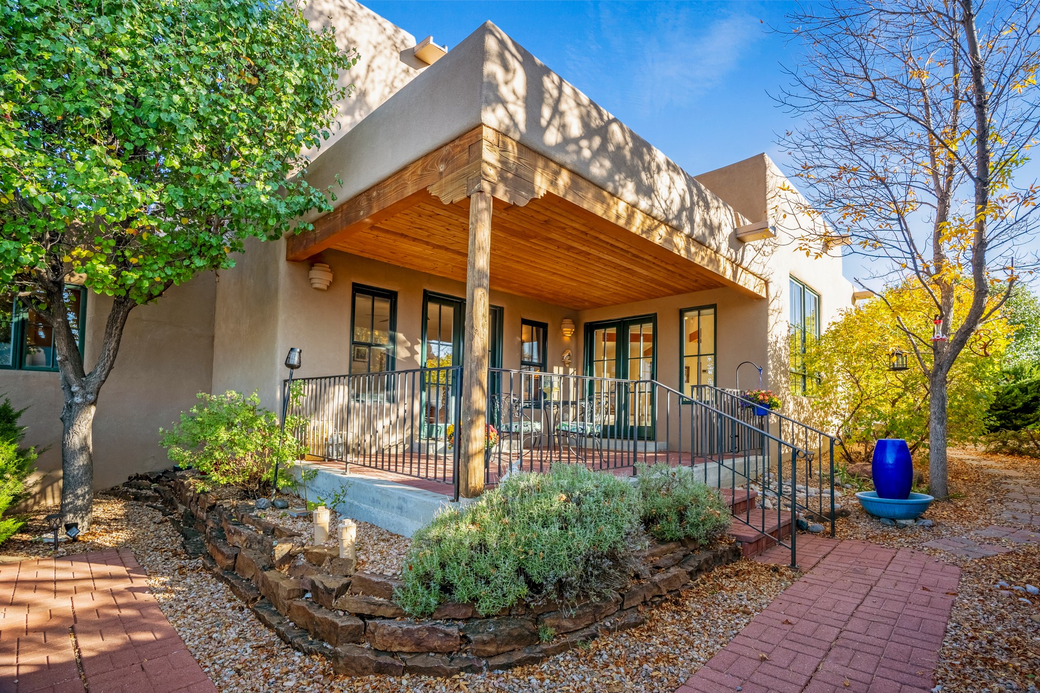 Bright, airy, contemporary patio home located in the heart of Aldea de Santa Fe. This light filled home features an open concept floor plan, first floor master suite, attached garage, radiant in floor heat, evaporative cooling, beautiful landscaping, drip irrigation and a large, covered patio with Jemez mountain views. The main living area has a high ceiling, vigas, large windows, faux paint and wood burning kiva fireplace. Kitchen features spacious pantries, maple cabinets, a center island and stainless Bosch and Amana appliances. The master suite includes a walk-in closet, jetted tub and large shower. French doors with screens in both the living room and master suite open directly to the patio. Two spacious, carpeted bedrooms and full bath are located on the second floor. The lovely and peaceful yard is completely walled for your furry friends. The front of the house faces Aldea open space, offering stunning mountain views and the serenity of a walkable community with fitness amenities, parks, and miles of walking trails. The home backs up to a large parking area for guests. Great location with easy access to NM 599, Los Alamos, downtown Santa Fe. Aldea de Santa Fe is a new urbanist subdivision that offers 13 miles of walking trails, community center, Bocci ball, tennis and basket-ball courts. Just steps away from Aldea plaza and specialty shops, caf, and businesses. community is great place to meet new friends with many special interest clubs in place.