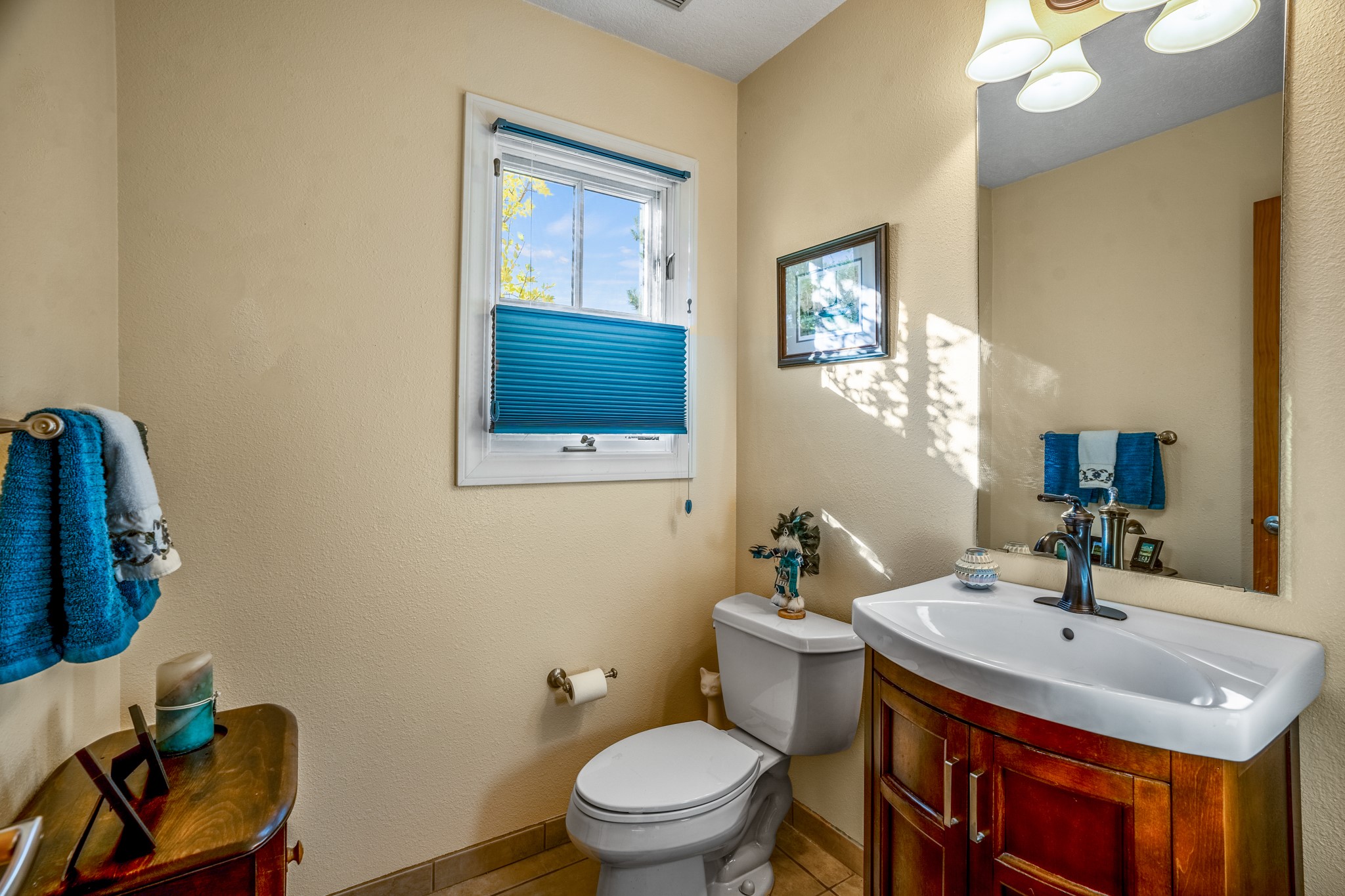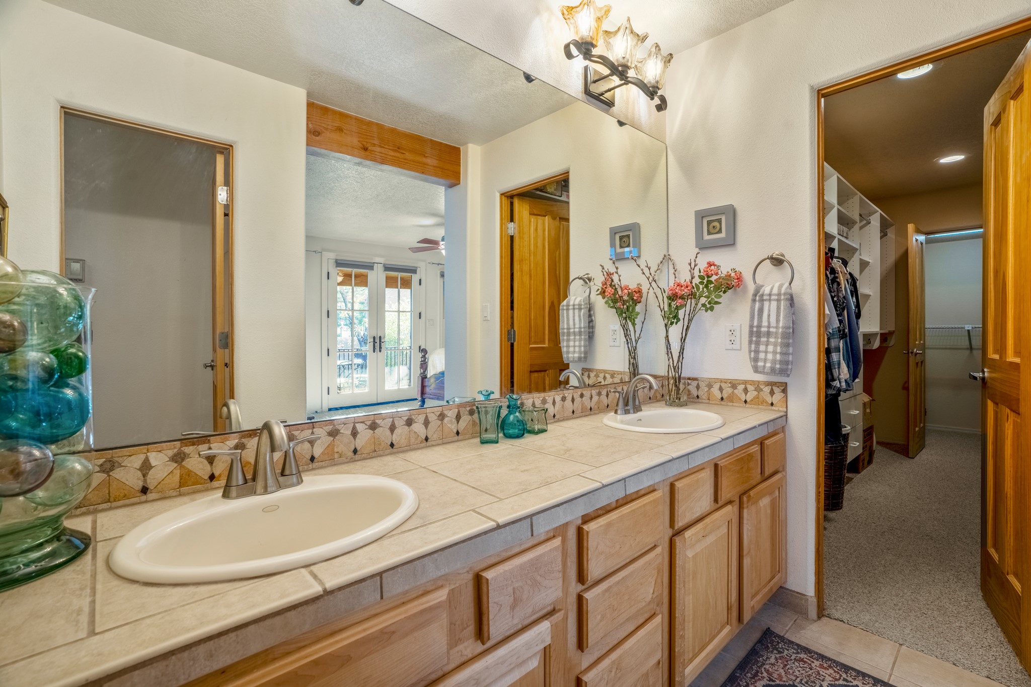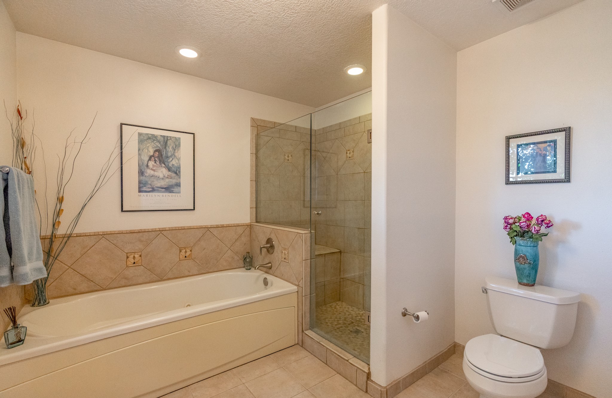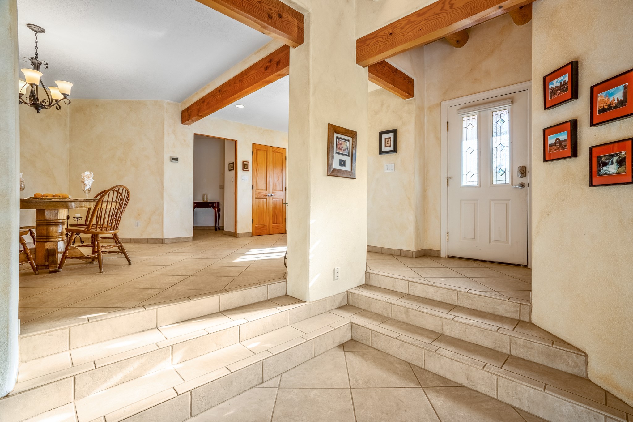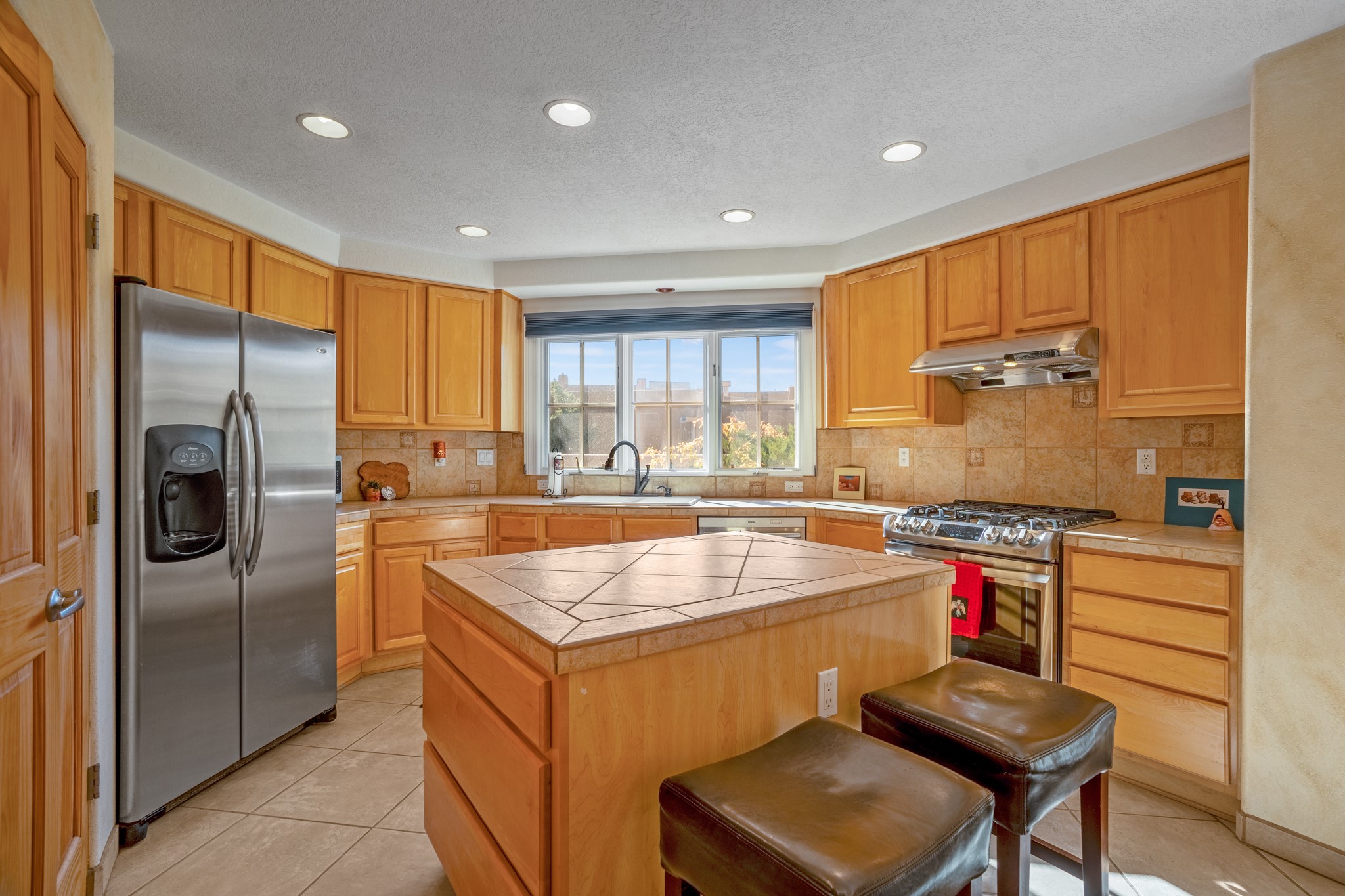 Bright, airy, contemporary patio home located in the heart of Aldea de Santa Fe. This light filled home features an open concept floor plan, first floor master suite, attached garage, radiant in floor heat, evaporative cooling, beautiful landscaping, drip irrigation and a large, covered patio with Jemez mountain views. The main living area has a high ceiling, vigas, large windows, faux paint and wood burning kiva fireplace. Kitchen features spacious pantries, maple cabinets, a center island and stainless Bosch and Amana appliances. The master suite includes a walk-in closet, jetted tub and large shower. French doors with screens in both the living room and master suite open directly to the patio. Two spacious, carpeted bedrooms and full bath are located on the second floor. The lovely and peaceful yard is completely walled for your furry friends. The front of the house faces Aldea open space, offering stunning mountain views and the serenity of a walkable community with fitness amenities, parks, and miles of walking trails. The home backs up to a large parking area for guests. Great location with easy access to NM 599, Los Alamos, downtown Santa Fe. Aldea de Santa Fe is a new urbanist subdivision that offers 13 miles of walking trails, community center, Bocci ball, tennis and basket-ball courts. Just steps away from Aldea plaza and specialty shops, caf, and businesses. community is great place to meet new friends with many special interest clubs in place.