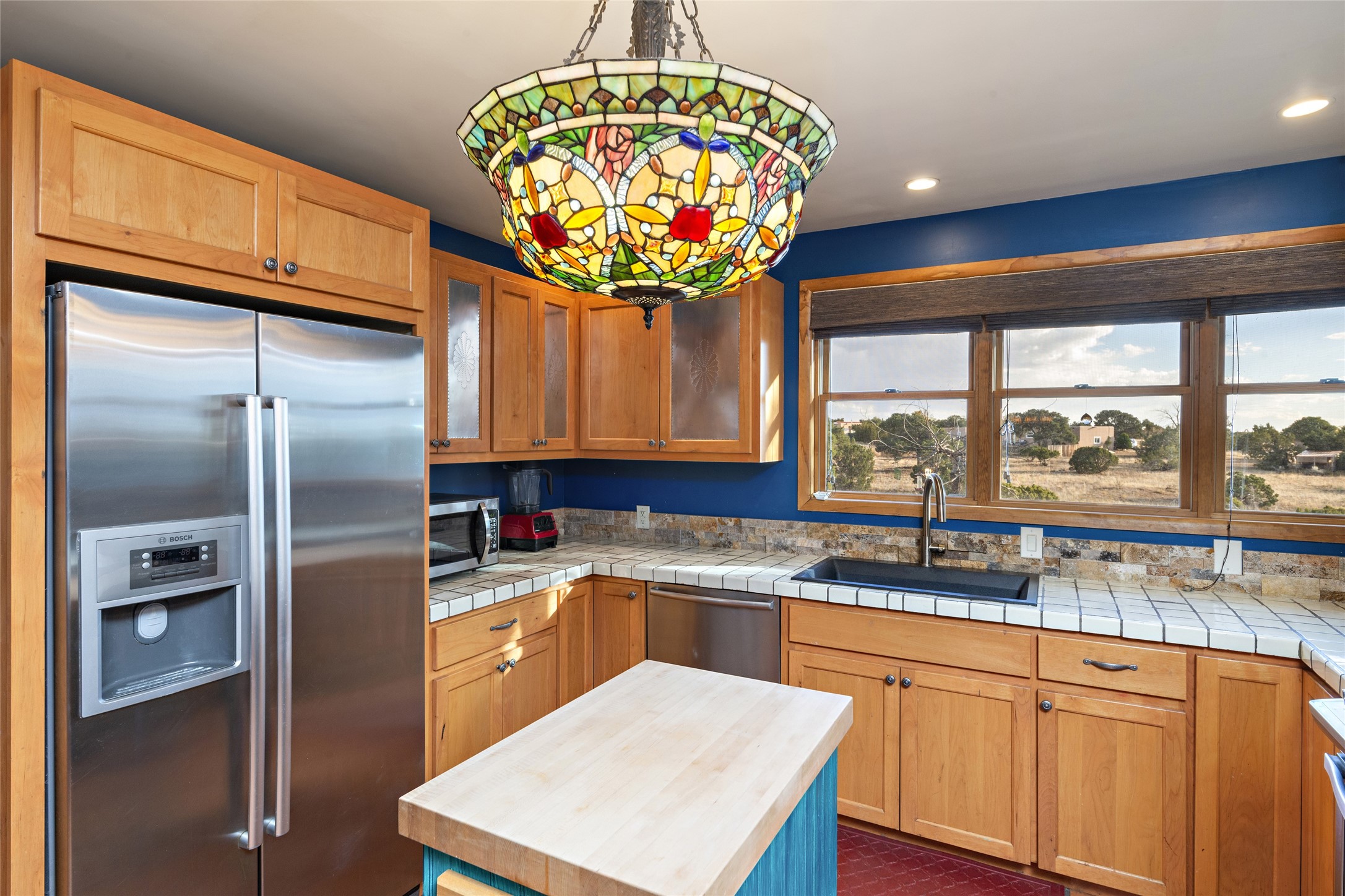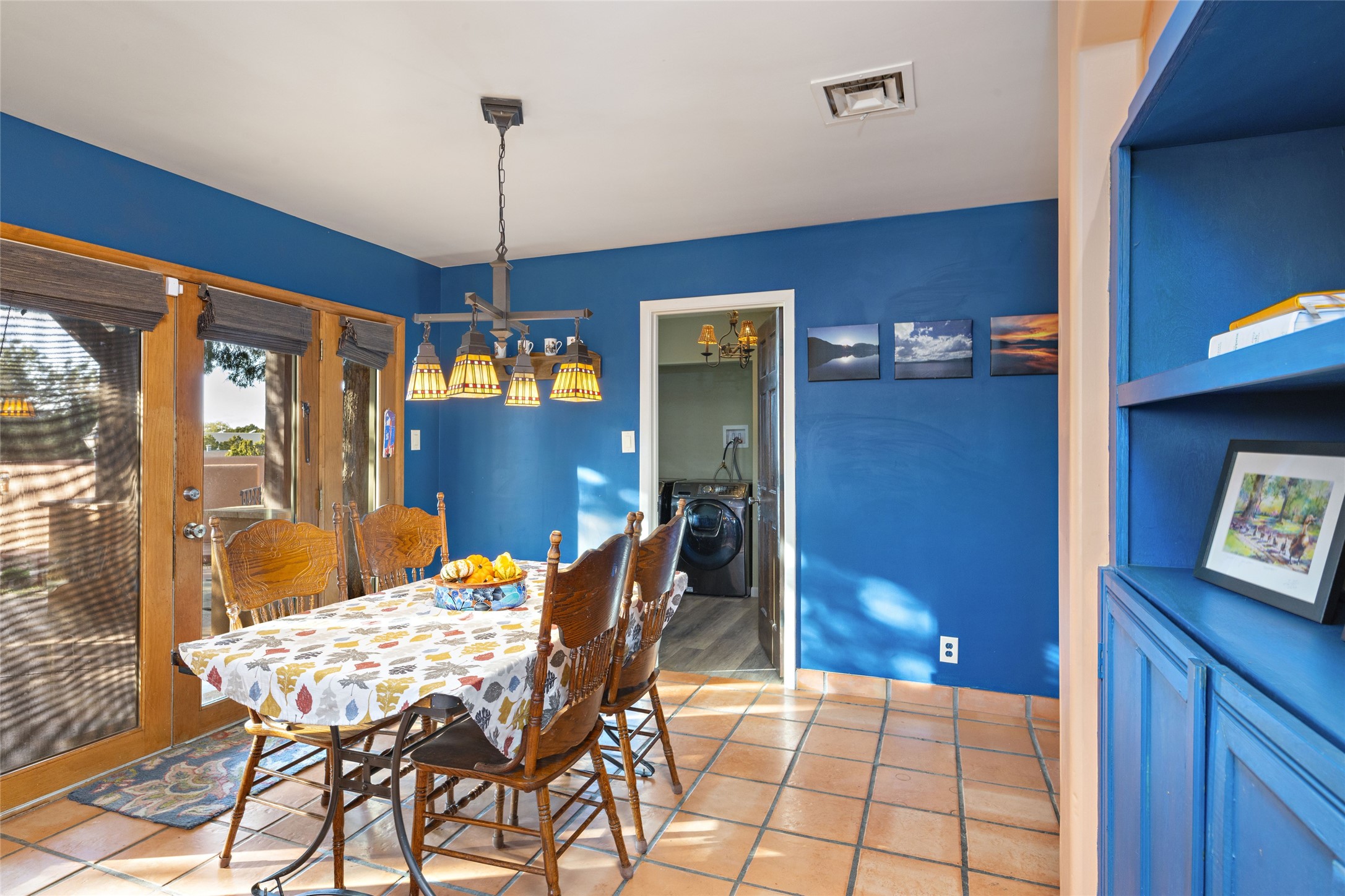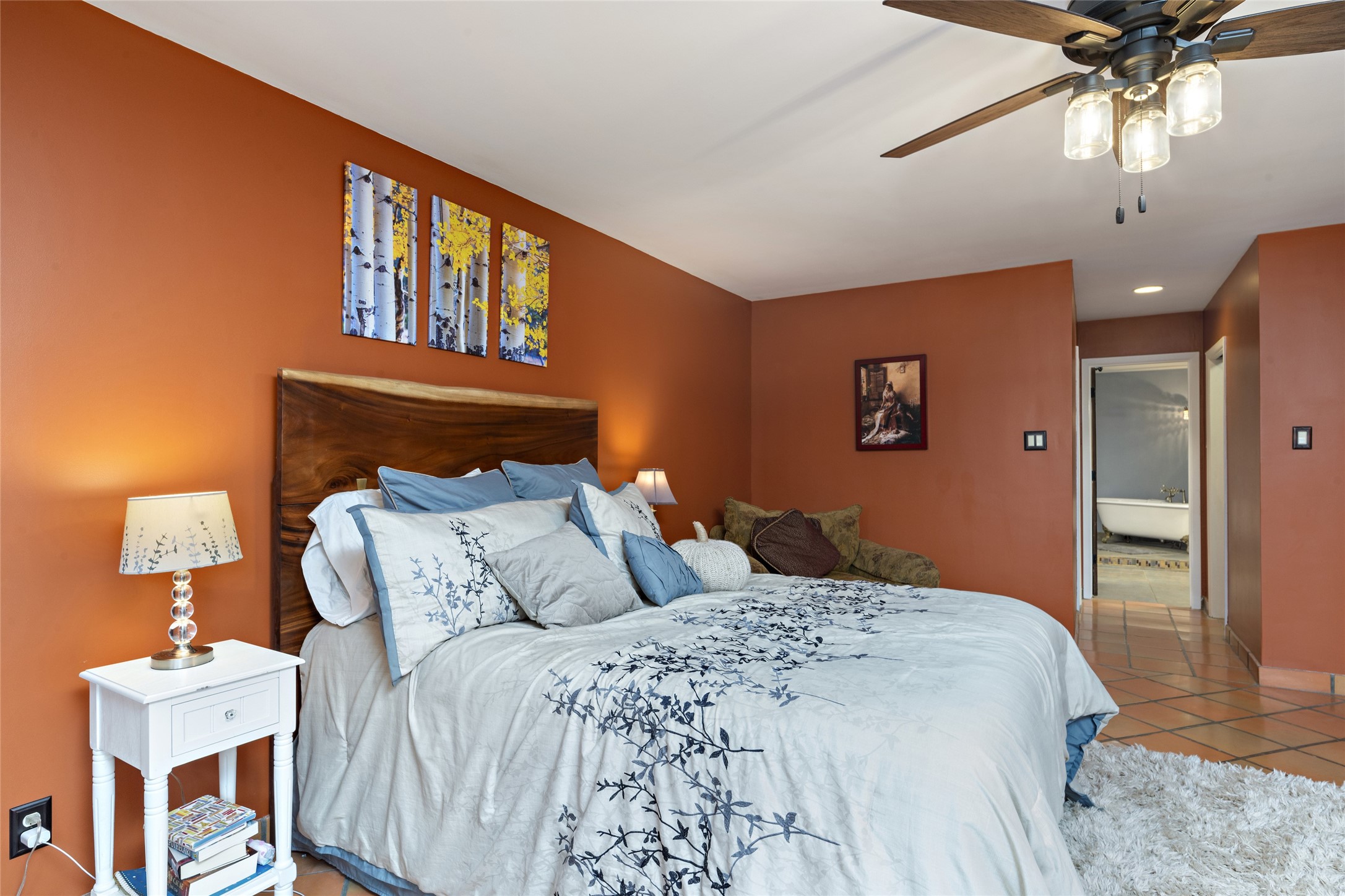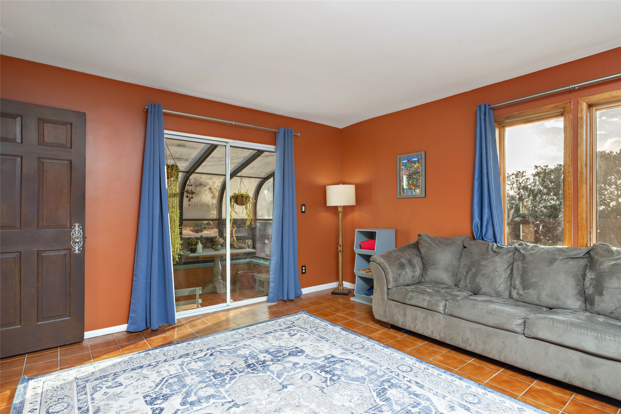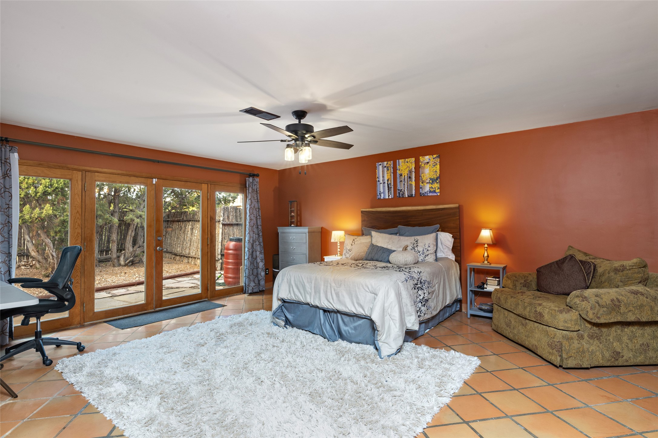 Attractive home in Eldorado with plenty of living and outdoor spaces for family & friends to gather. Circular drive & front courtyard with lovely fountain welcomes you to this well cared for property. From the main entry, the living/dining areas have vaulted T&G ceilings & beams. An impressive wood burning fireplace with stacked rock hearth and wood mantle is the focal point of this living space. Glass doors lead to multiple outdoor entertaining areas. The dining room has a wet bar with sink & built-in ice maker. The kitchen is ideal for entertaining, & features an expansive wall of windows with beautiful Eldorado views, plus an eat-in kitchen area. Pantry & laundry are nearby the kitchen. The spacious bedrooms & baths are located down the hallway. The primary suite has dual closets & sinks, a clawfoot tub, & private access to an outdoor area. The bedroom at the end of the hallway adjoins a greenhouse with access to outdoor spaces. Doors from the kitchen open to a covered patio with Kiva fireplace nearby & impressive built-in grill. Enclosed area with masterful hardscaping with plants, rock borders and amazing water feature. Oversized 2 car garage. Owners recently replaced two furnaces (w/warranty), and water heater. Garage roof was replaced approximately 3 years ago. Pristine home in a beautiful & peaceful location. Property has direct access to the rail trail & is nearby the community center with pickle ball, tennis courts, pool, dog park & more! Eldorado K-8 nearby too!