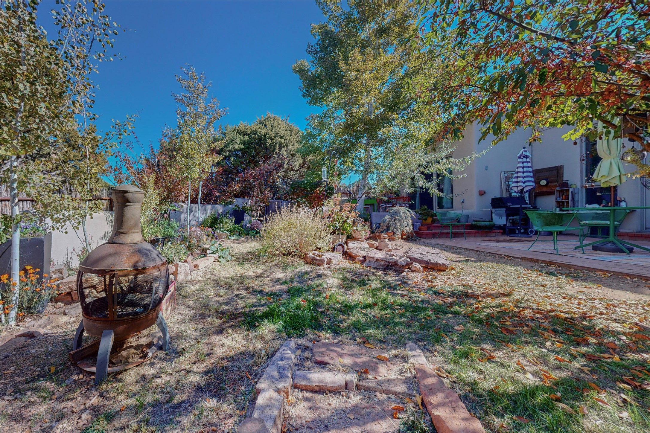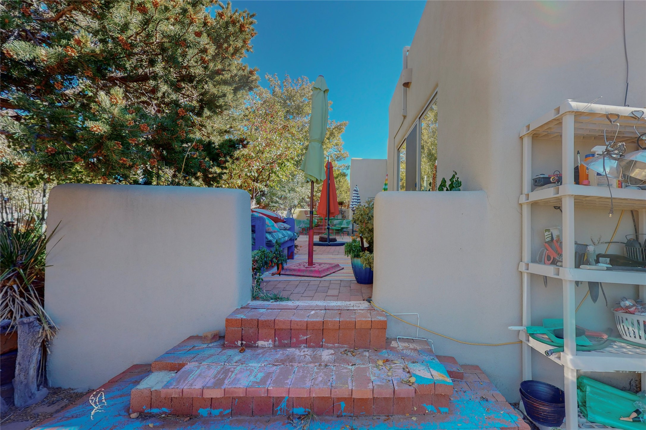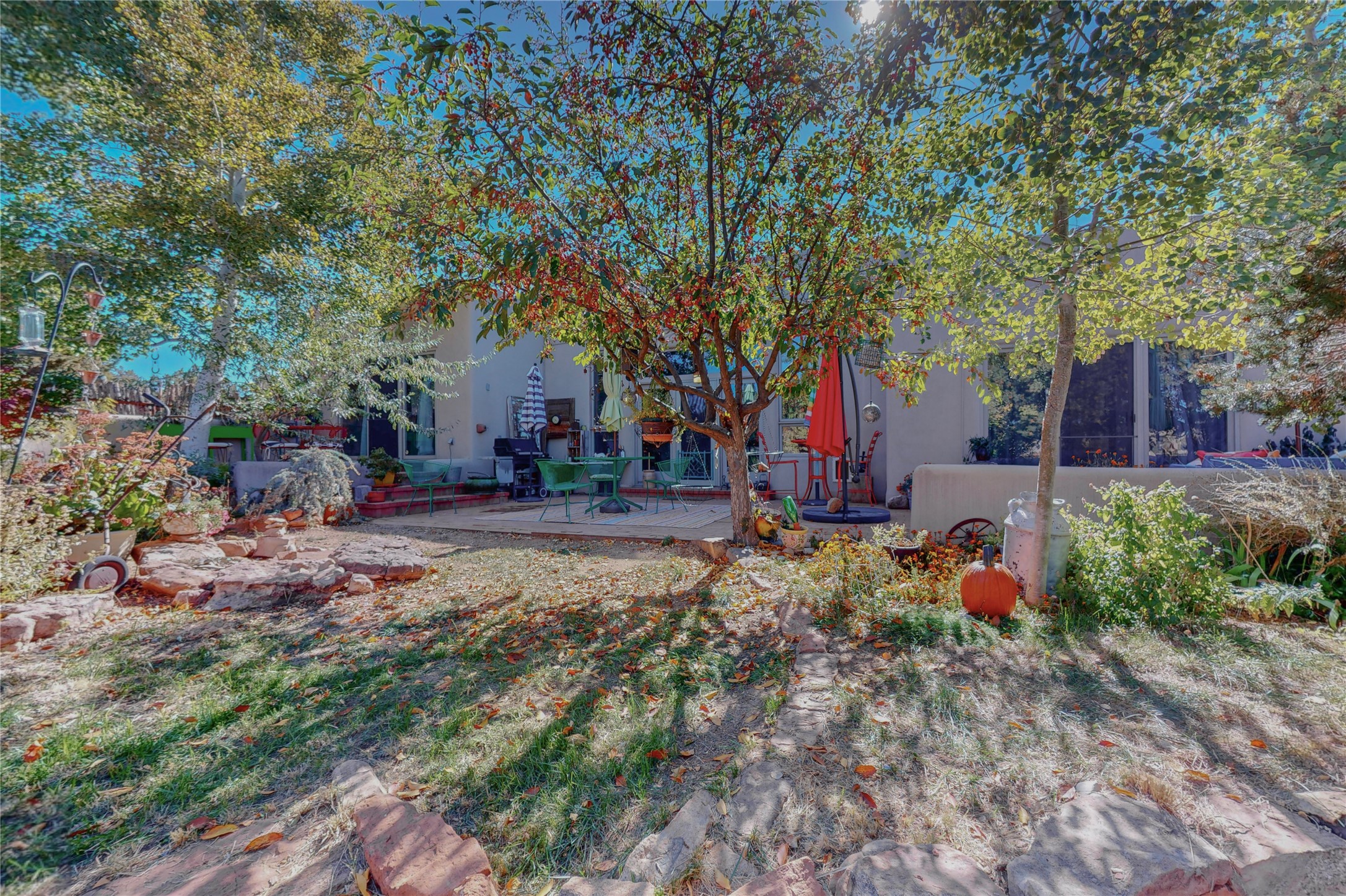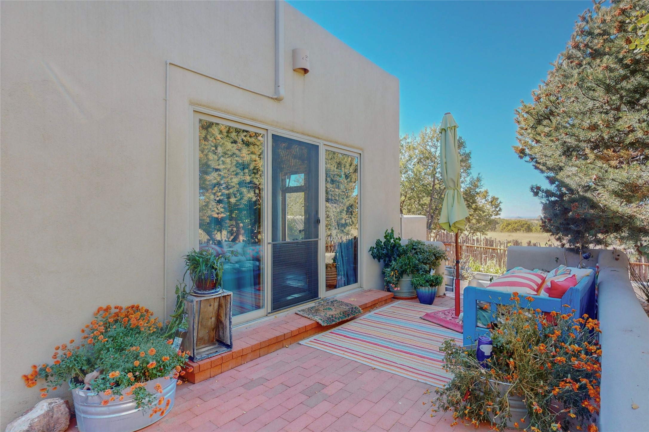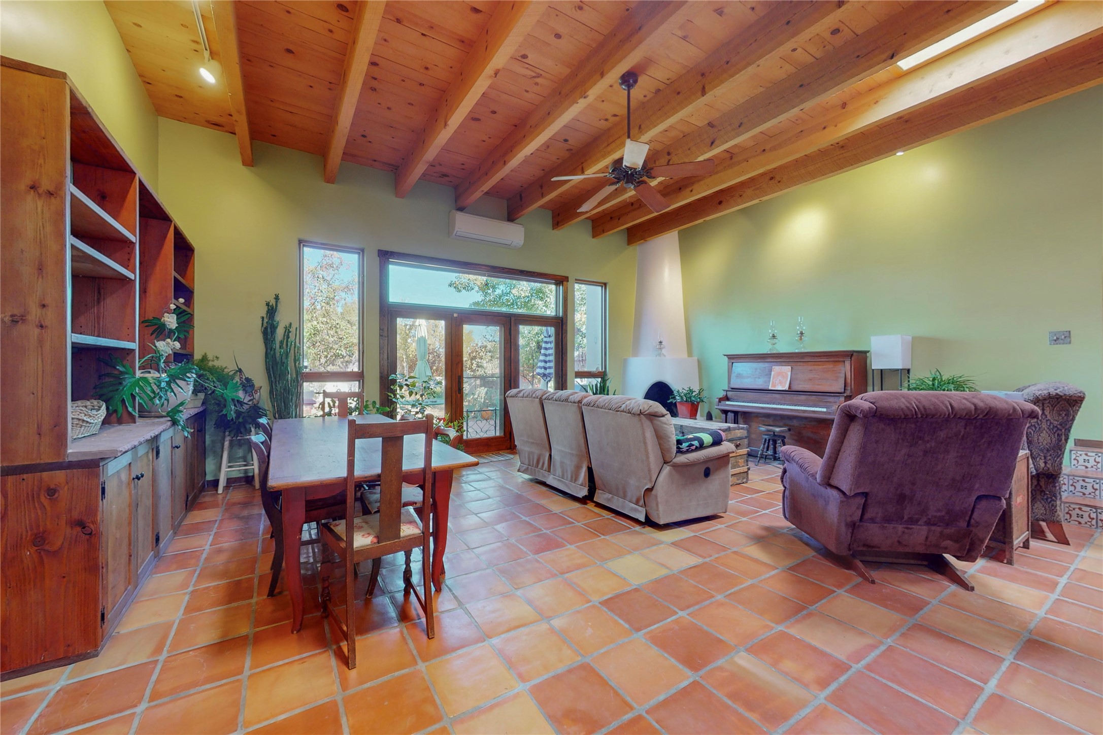 A wonderful home to come home to, custom built by Tom Yoder and lovingly looked after both inside and the surrounding gardens. A privately walled landscaped courtyard entry beckons you in to an impressive foyer, mind the step - you may not look down awed by the Santa Fe style architectural features that delight the eye. A large country kitchen equipped with a professional Thermador cooktop, double ovens and a farmhouse sink and wow what a lovely bay window kitchen view. Gleaming Saltillo tile floors and high ceilings throughout add to a spaciousness yet cosy feel. In 2014 a new roof which was upgraded with a 2 year warranty in 2023. In 2015 the boiler was replaced, in 2017 a new hot water heater, and in 2022 mini splits were added. The natural gas radiant heating system has been inspected, found to be Entran 3 and currently working fine. This year the stucco, canales, and windows all repaired. Washer and dryer replaced in 2016 and kitchen appliances were upgraded in 2021. Even the drip irrigation system was upgraded in 2013, 2 car garage plus a side approved parking area for an RV. Sitting on almost 1.5 acres bordered by a large greenbelt yet close to paved road with easy access to Eldorado amenities and local shopping this home is hard to beat.