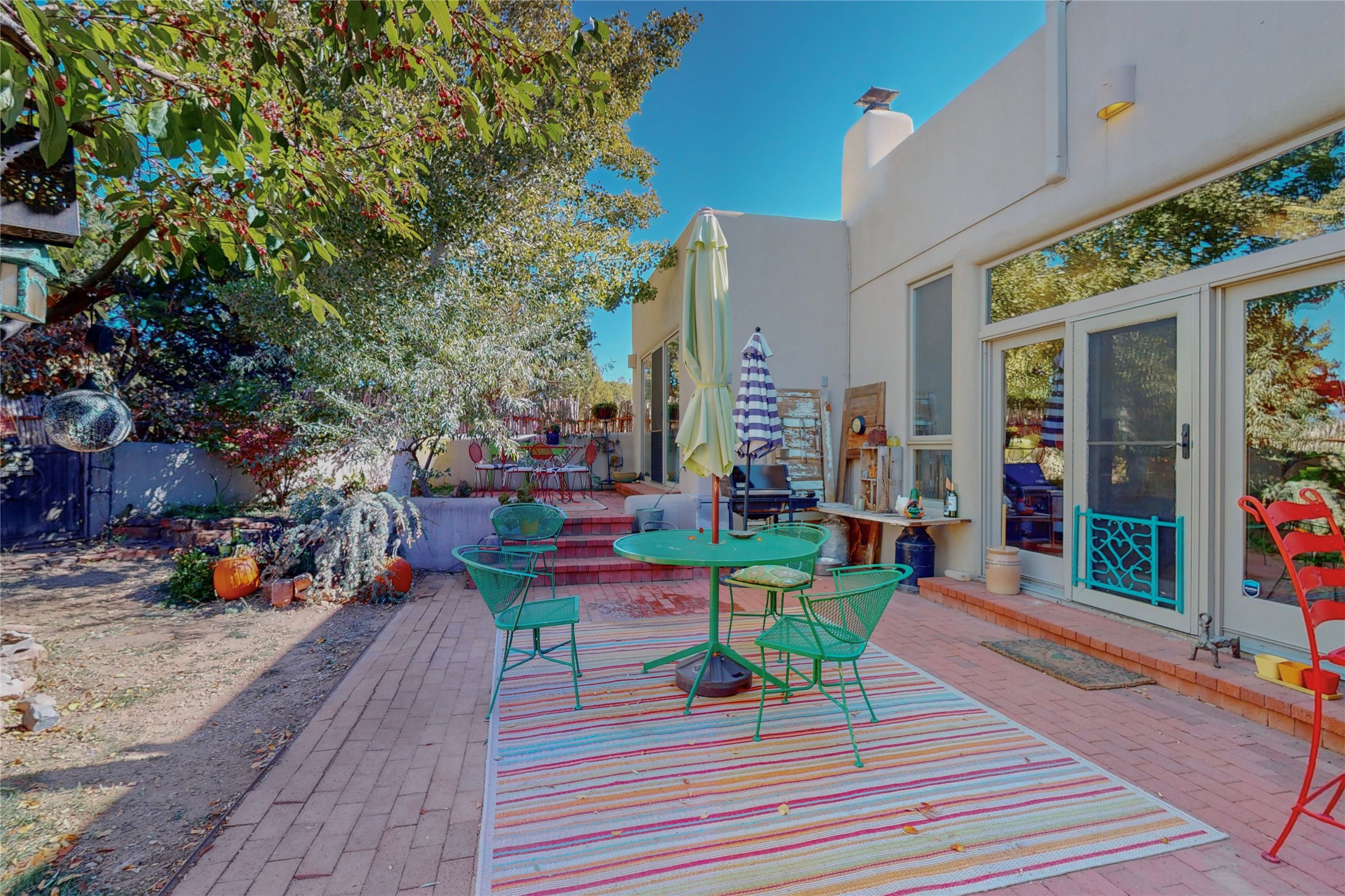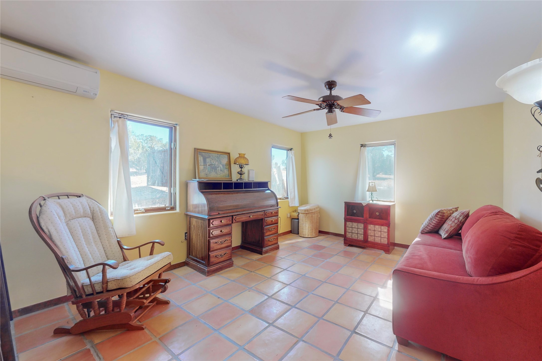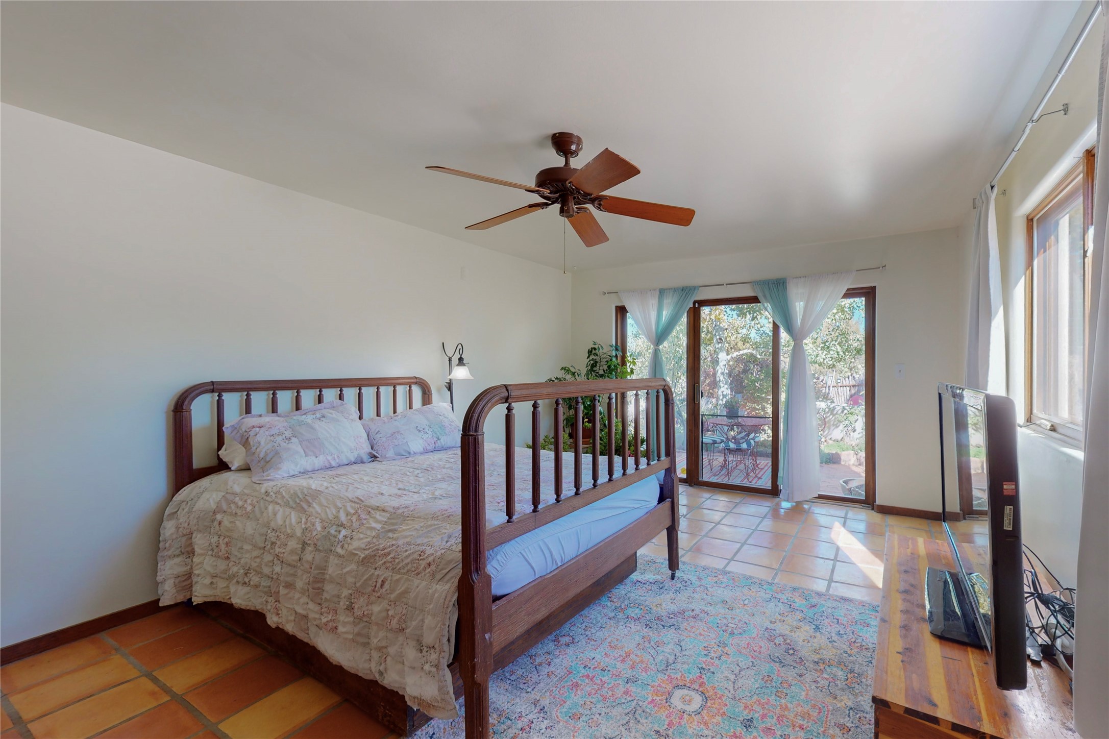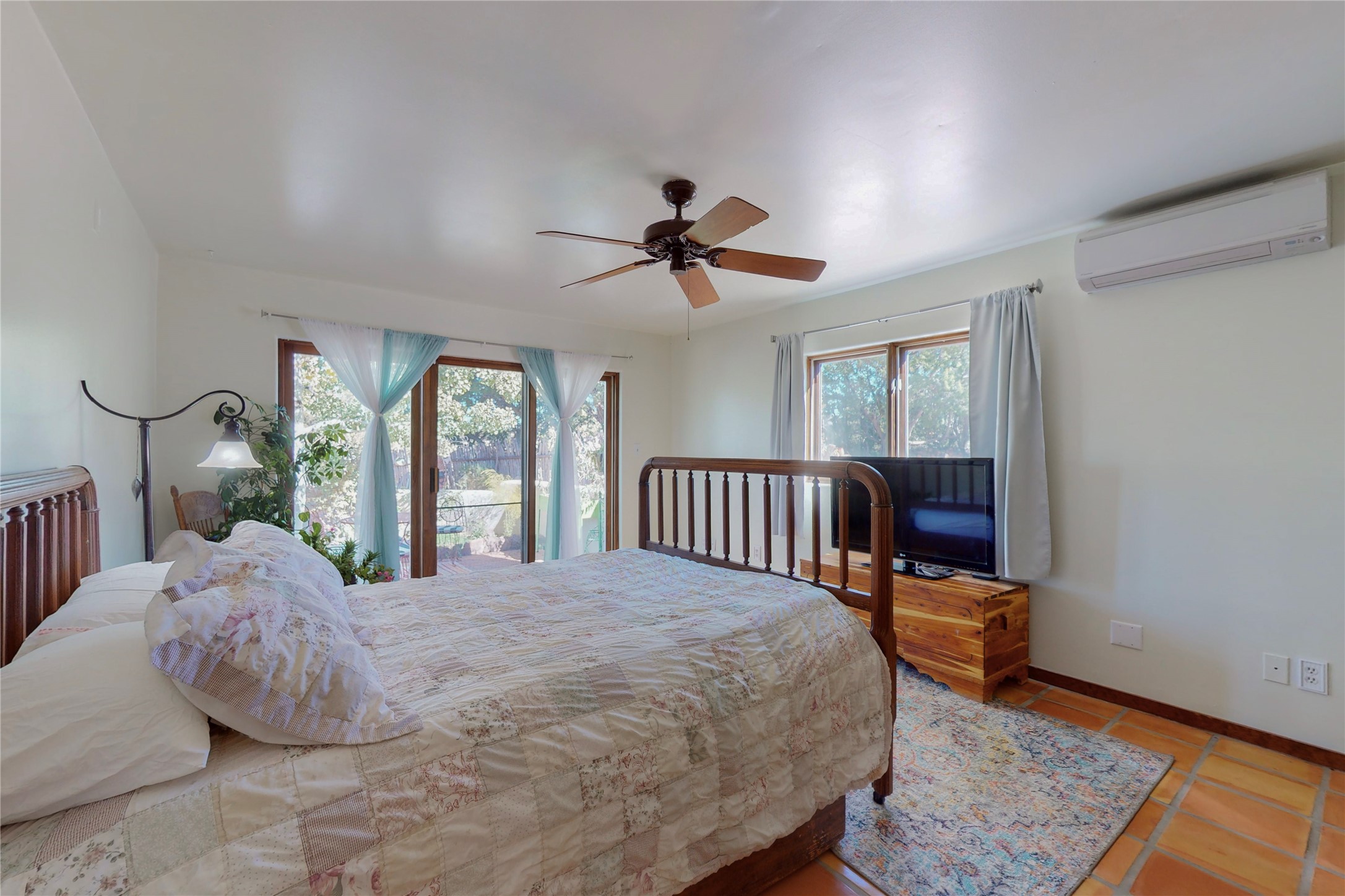 A wonderful home to come home to, custom built by Tom Yoder and lovingly looked after both inside and the surrounding gardens. A privately walled landscaped courtyard entry beckons you in to an impressive foyer, mind the step - you may not look down awed by the Santa Fe style architectural features that delight the eye. A large country kitchen equipped with a professional Thermador cooktop, double ovens and a farmhouse sink and wow what a lovely bay window kitchen view. Gleaming Saltillo tile floors and high ceilings throughout add to a spaciousness yet cosy feel. In 2014 a new roof which was upgraded with a 2 year warranty in 2023. In 2015 the boiler was replaced, in 2017 a new hot water heater, and in 2022 mini splits were added. The natural gas radiant heating system has been inspected, found to be Entran 3 and currently working fine. This year the stucco, canales, and windows all repaired. Washer and dryer replaced in 2016 and kitchen appliances were upgraded in 2021. Even the drip irrigation system was upgraded in 2013, 2 car garage plus a side approved parking area for an RV. Sitting on almost 1.5 acres bordered by a large greenbelt yet close to paved road with easy access to Eldorado amenities and local shopping this home is hard to beat.