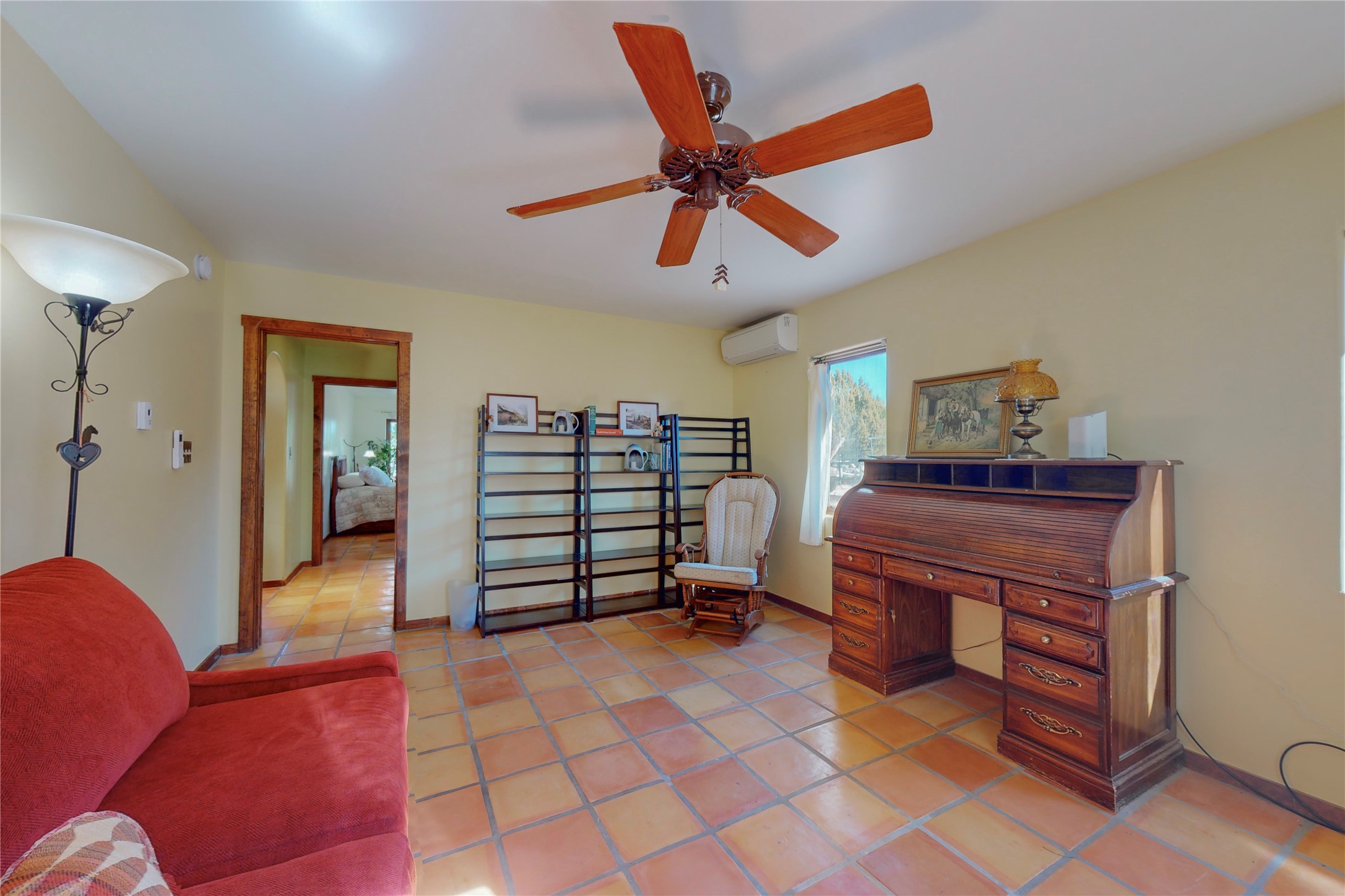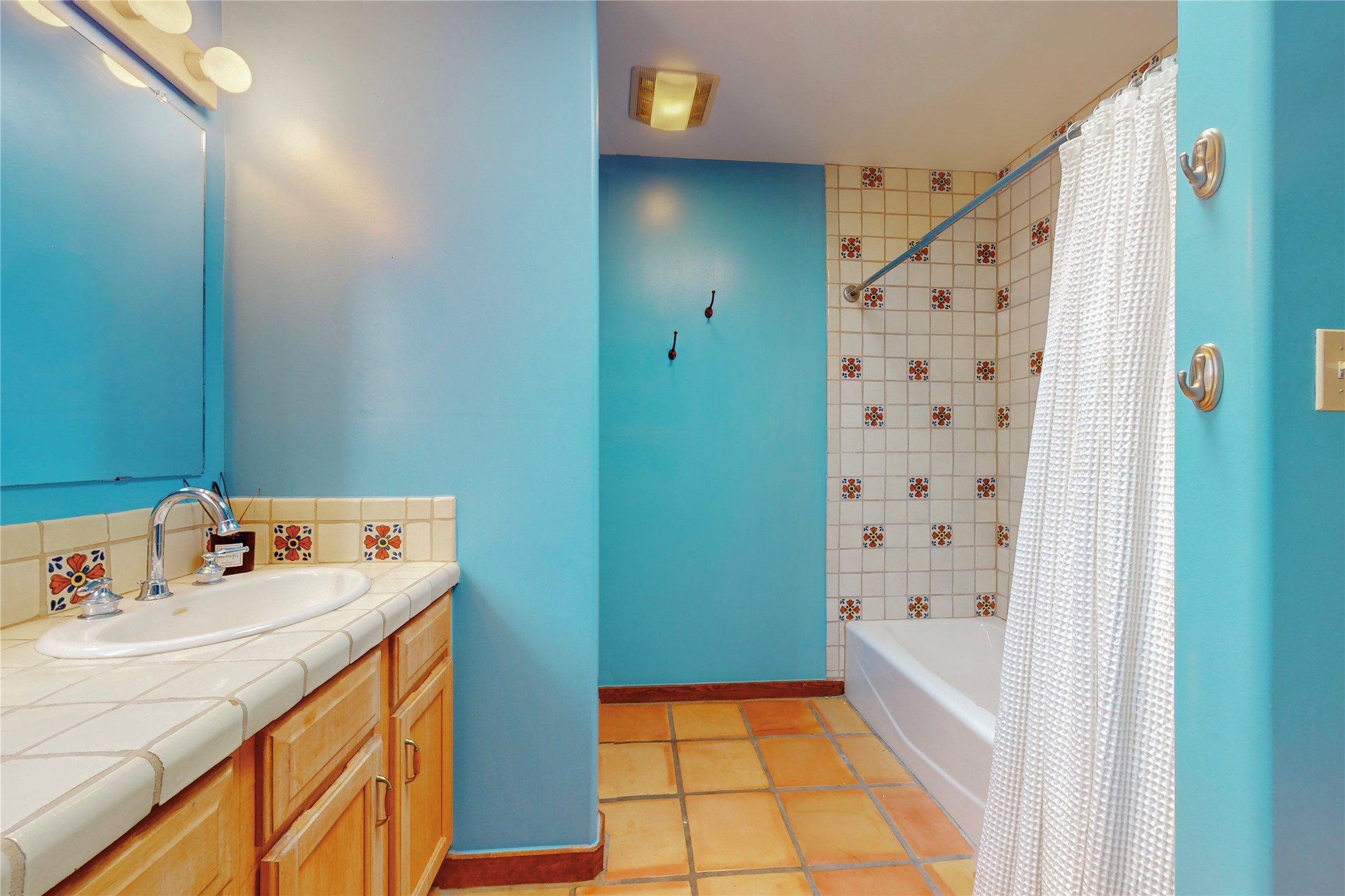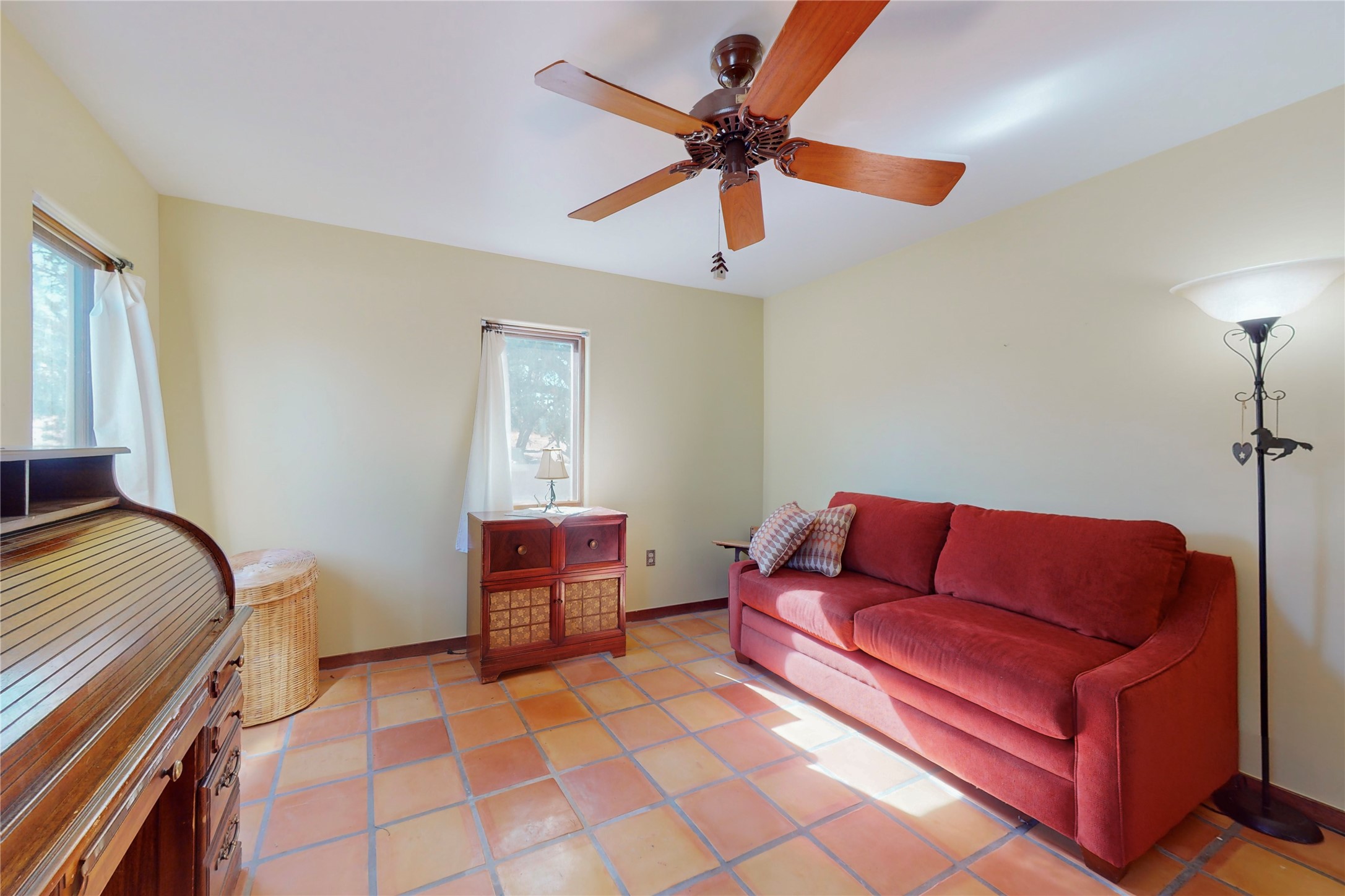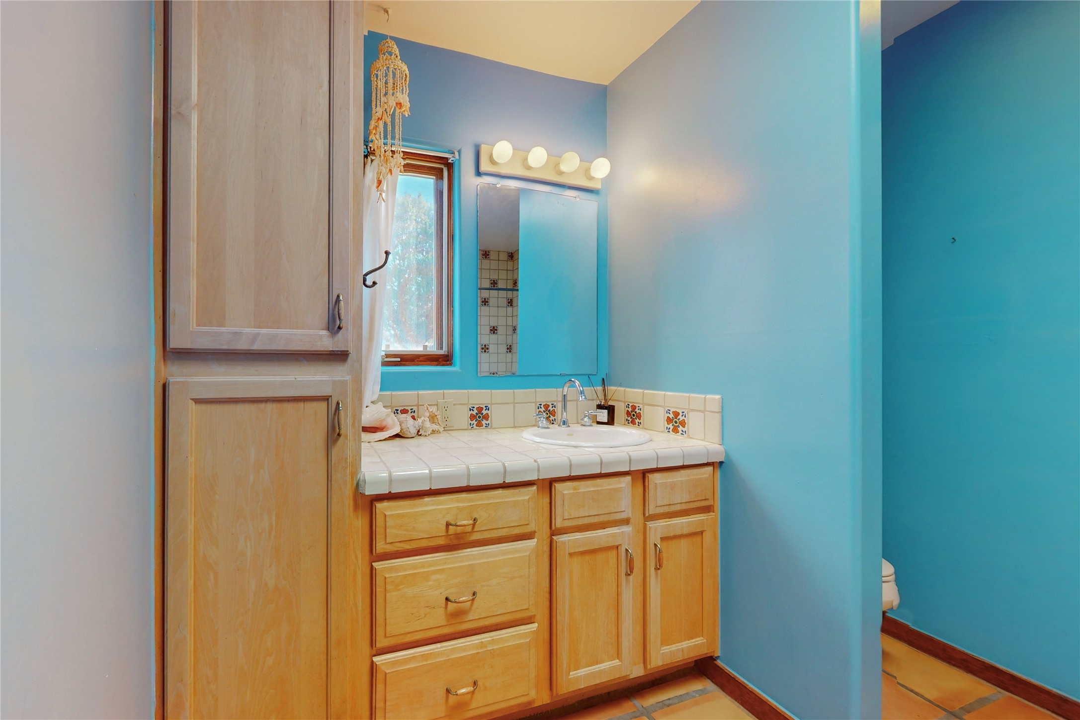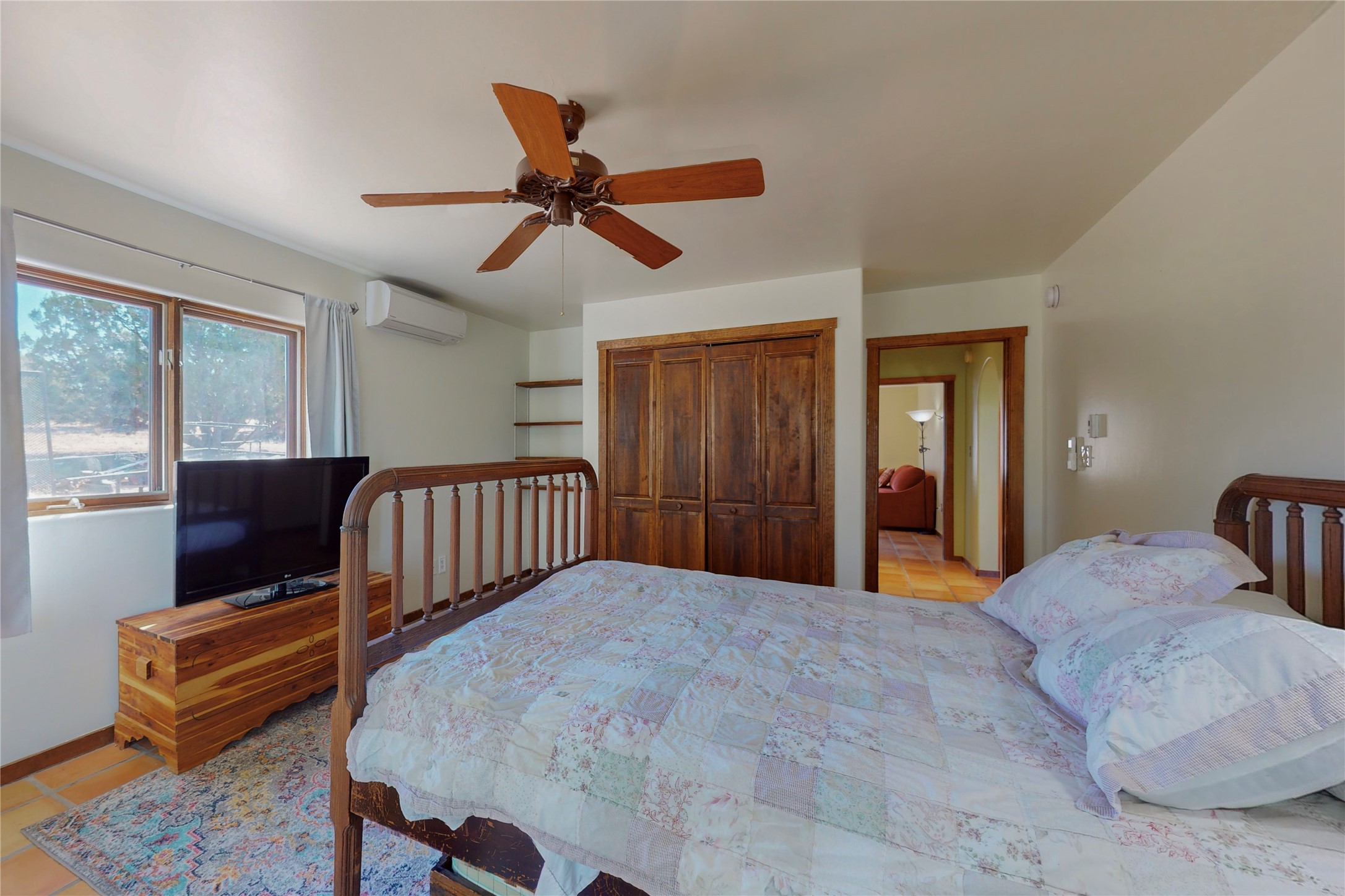 A wonderful home to come home to, custom built by Tom Yoder and lovingly looked after both inside and the surrounding gardens. A privately walled landscaped courtyard entry beckons you in to an impressive foyer, mind the step - you may not look down awed by the Santa Fe style architectural features that delight the eye. A large country kitchen equipped with a professional Thermador cooktop, double ovens and a farmhouse sink and wow what a lovely bay window kitchen view. Gleaming Saltillo tile floors and high ceilings throughout add to a spaciousness yet cosy feel. In 2014 a new roof which was upgraded with a 2 year warranty in 2023. In 2015 the boiler was replaced, in 2017 a new hot water heater, and in 2022 mini splits were added. The natural gas radiant heating system has been inspected, found to be Entran 3 and currently working fine. This year the stucco, canales, and windows all repaired. Washer and dryer replaced in 2016 and kitchen appliances were upgraded in 2021. Even the drip irrigation system was upgraded in 2013, 2 car garage plus a side approved parking area for an RV. Sitting on almost 1.5 acres bordered by a large greenbelt yet close to paved road with easy access to Eldorado amenities and local shopping this home is hard to beat.