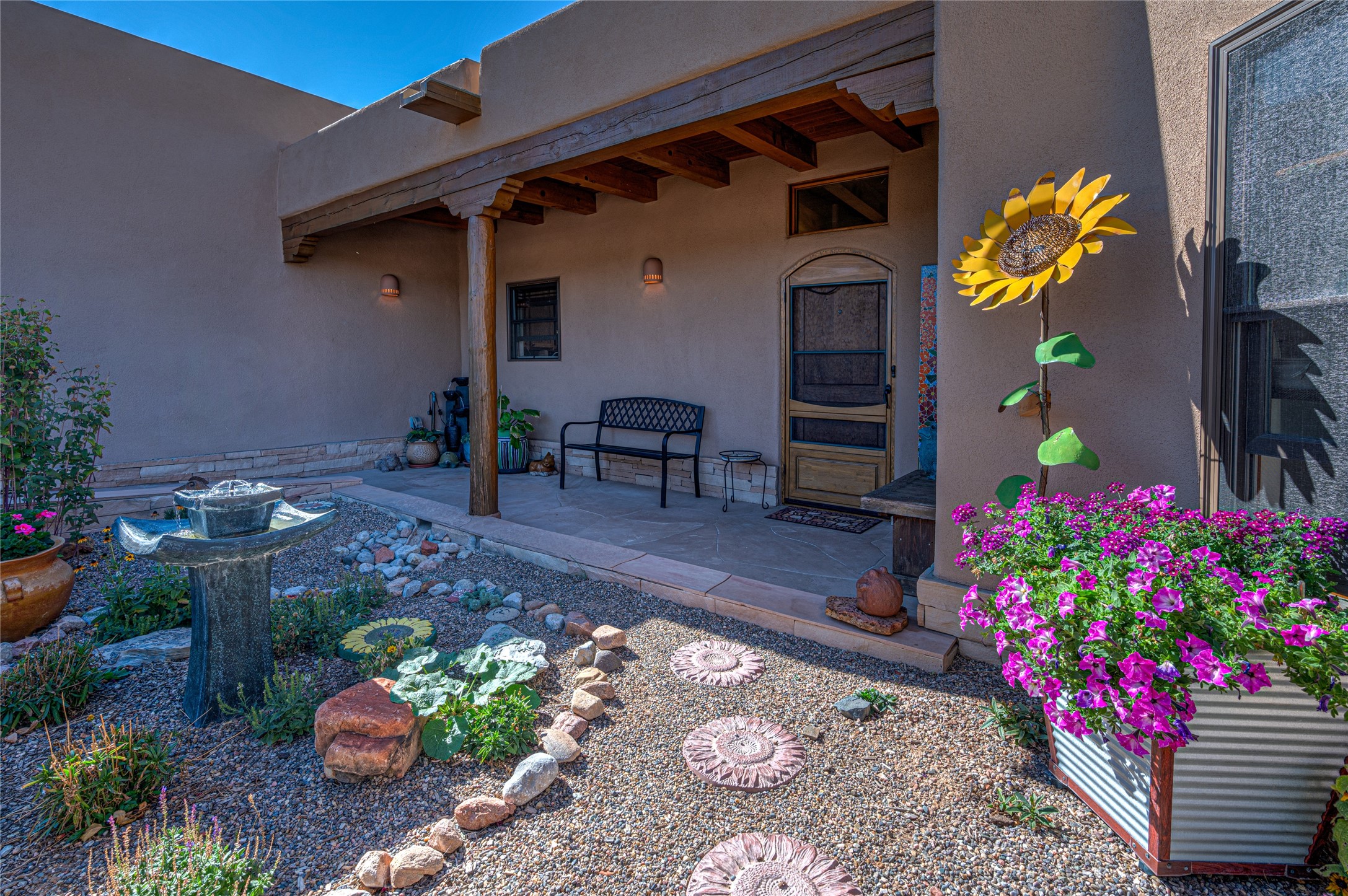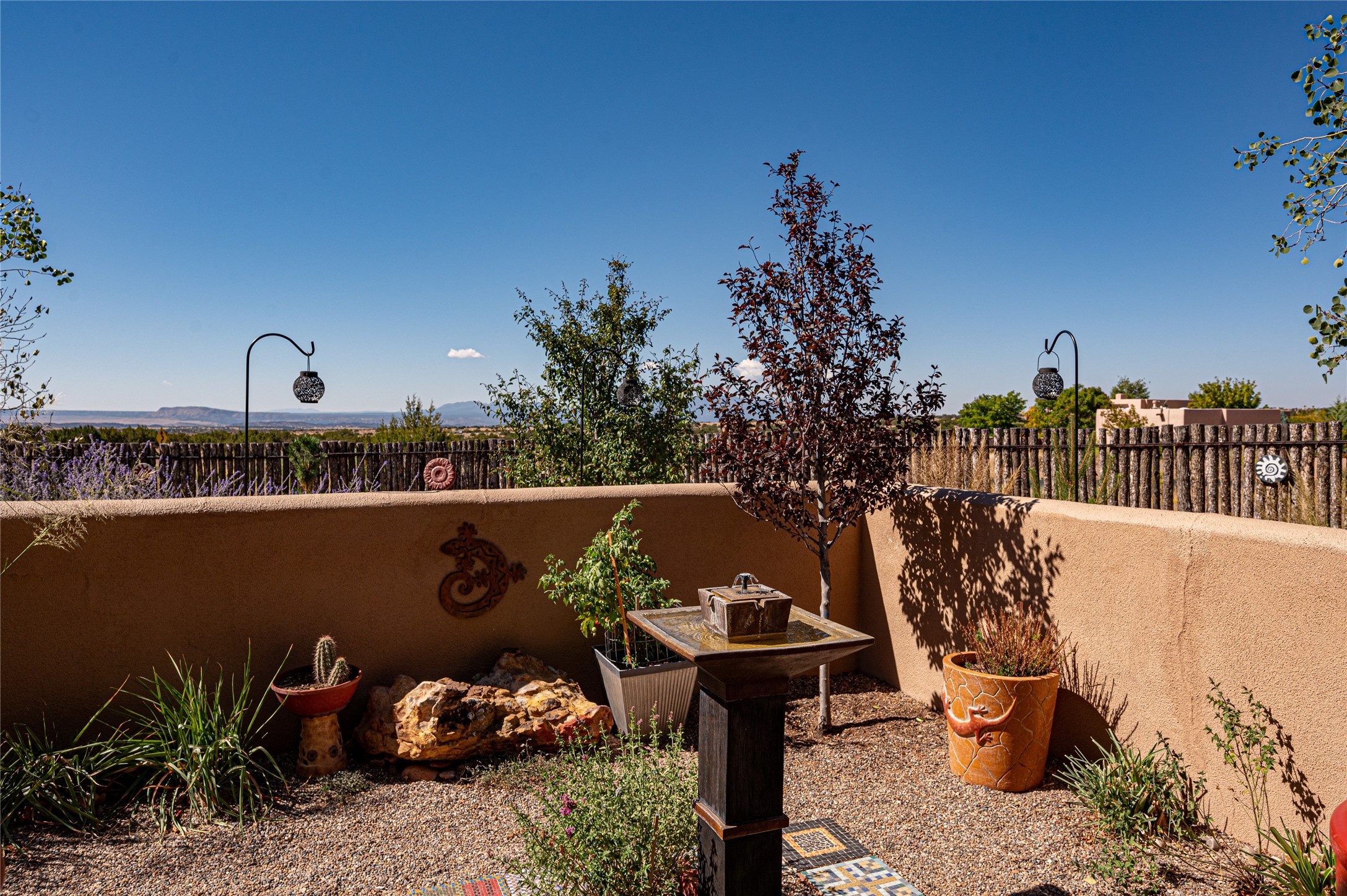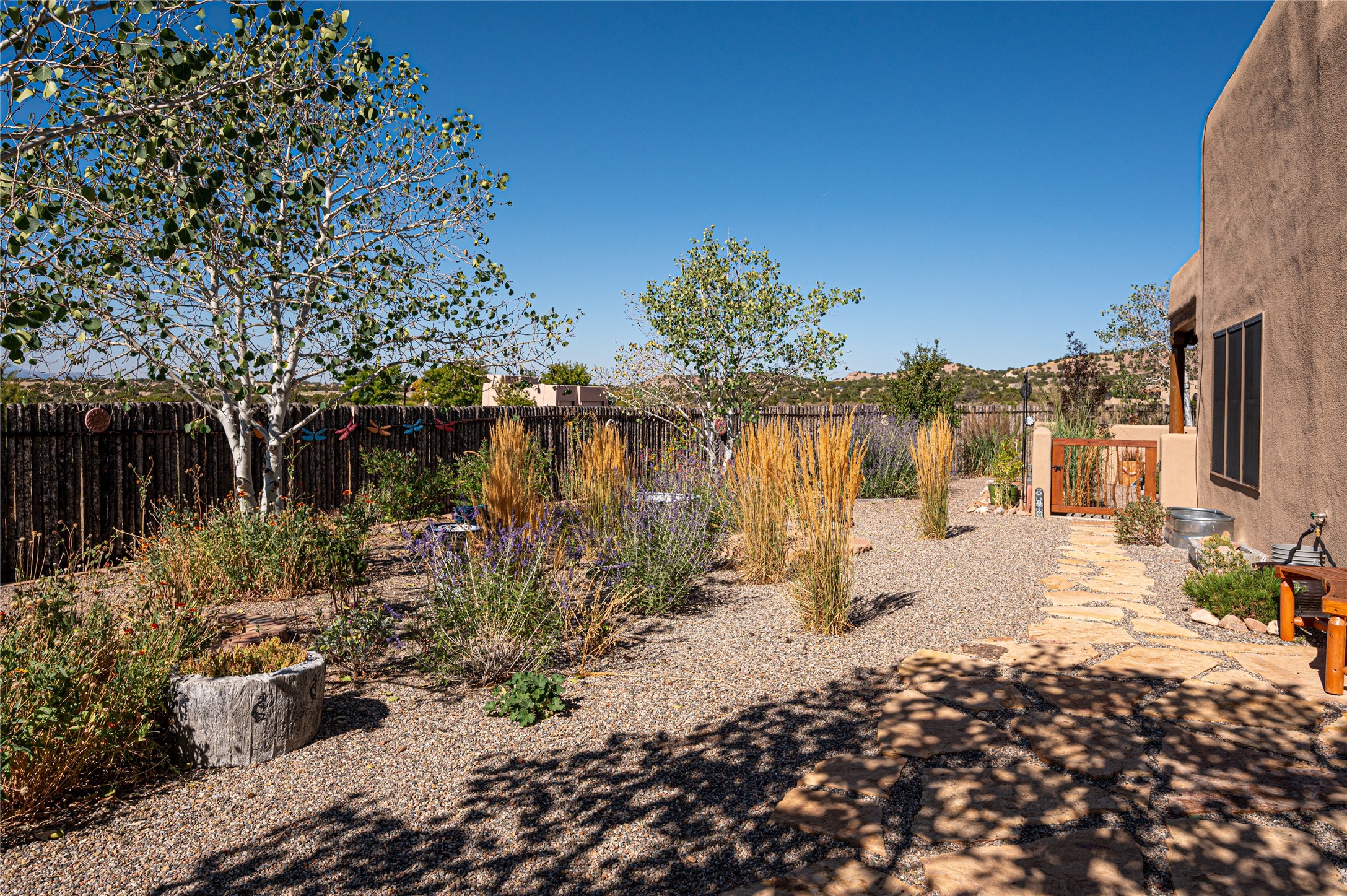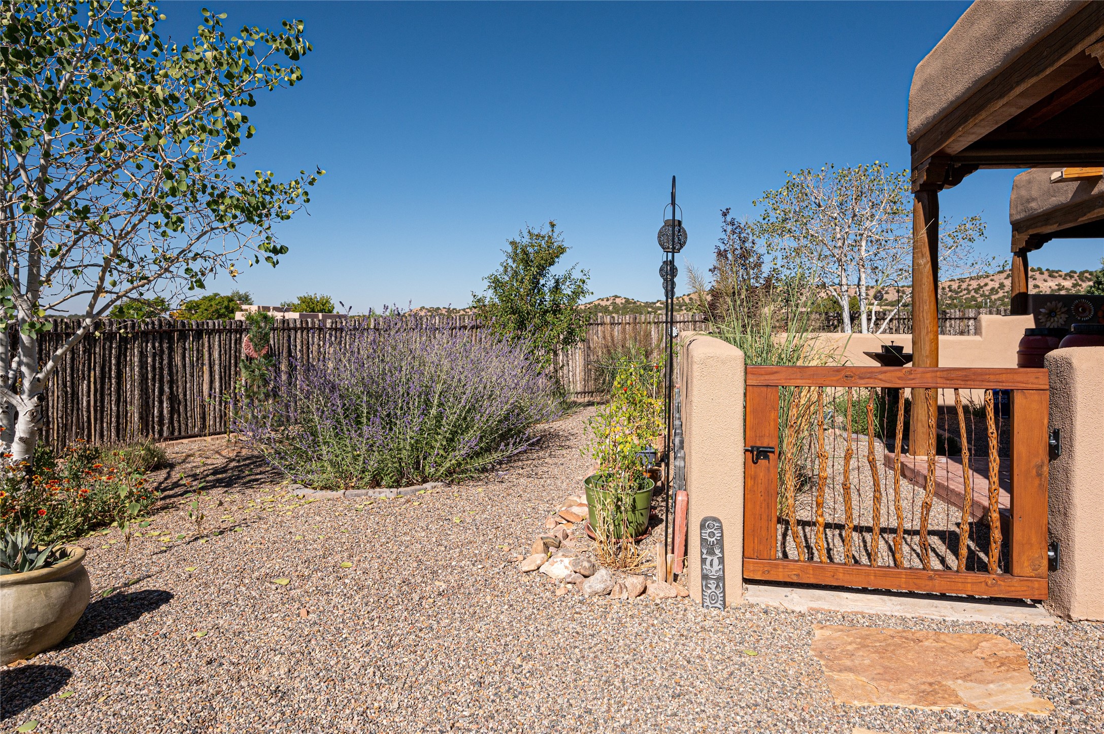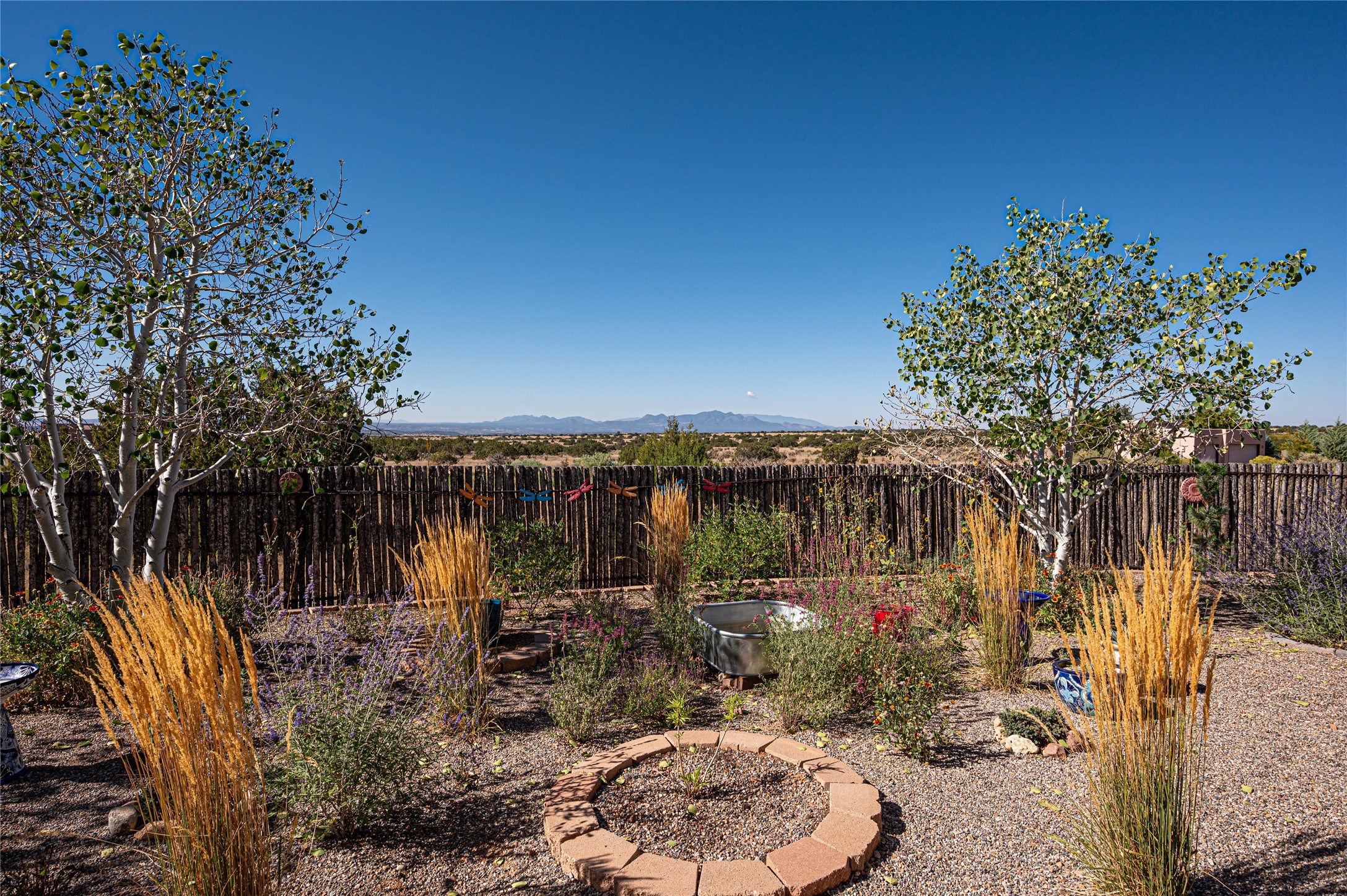 Enjoy the views of the mountains and Cerro Colorado, and the nearby trails of the Galisteo Basin from this perfect 4 bedroom/3 bathroom home situated on 3.5 lovely acres. The windows offer picturesque views from each room. The open concept living is spacious and grand. The home has high ceilings, and nice separation of the primary suite and guest bedrooms. The gourmet kitchen is a delight. The home features New Mexican accents throughout. The vigas, fireplaces, doors, and picture windows lend to the charm of this home. There is a 12X16 Tuff Shed with power and a two car garage. Many items have been upgraded throughout the home to include; a new TPO roof, Kuma wood stove, mini-splits, new refrigerator, water softener, irrigation, 50 trees and drought tolerant plants. These are just some of the wonderful offerings of this property. The portals, patios, and outdoor spaces surrounding the home are divine places to enjoy the beautiful New Mexico blue skies. Close to shopping, restaurants and Santa Fe, but with the serene country feel of your own paradise. Come see what this unique property has to offer in Lamy, which is a close-by Gem. This property truly has it all!