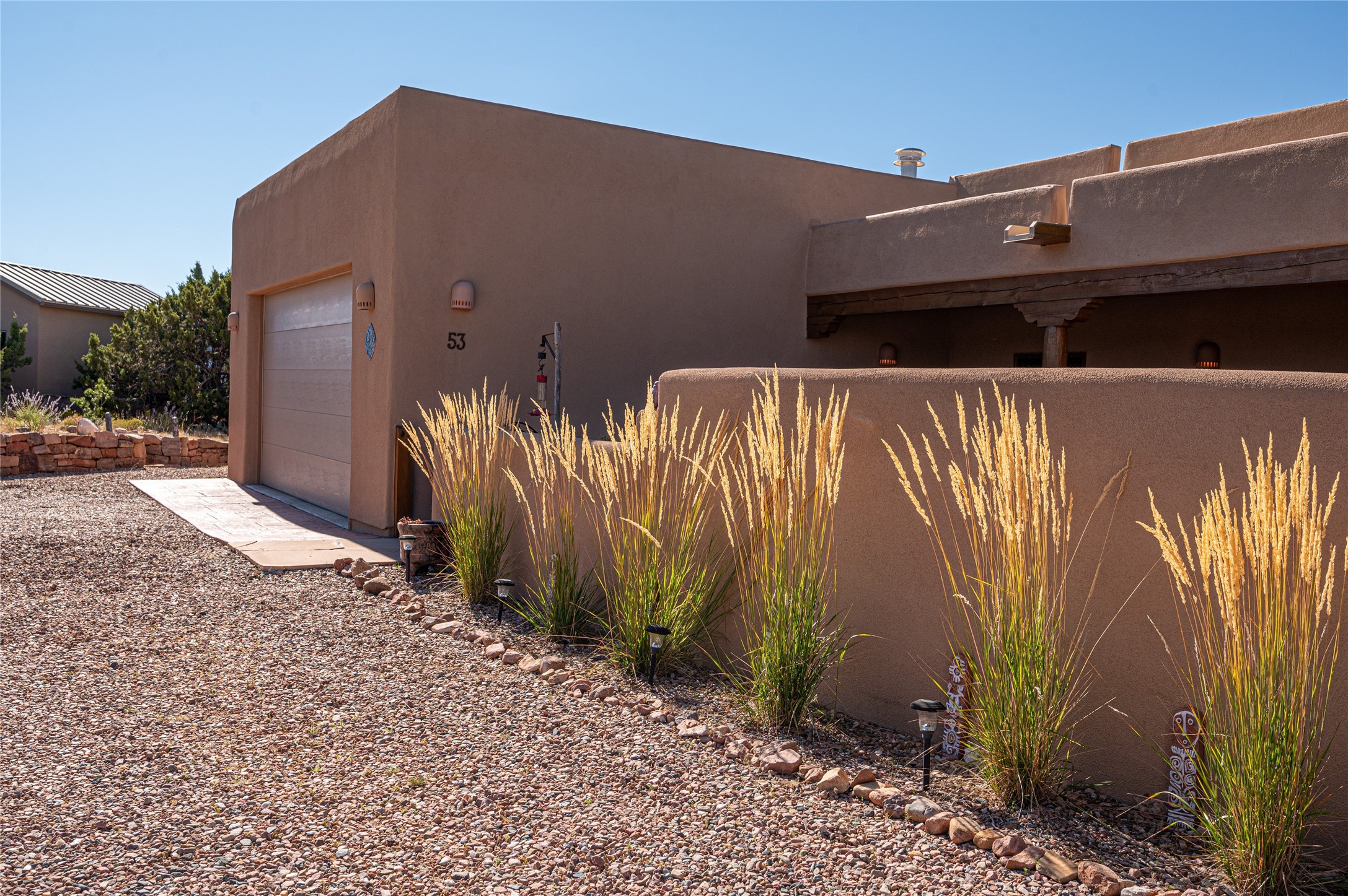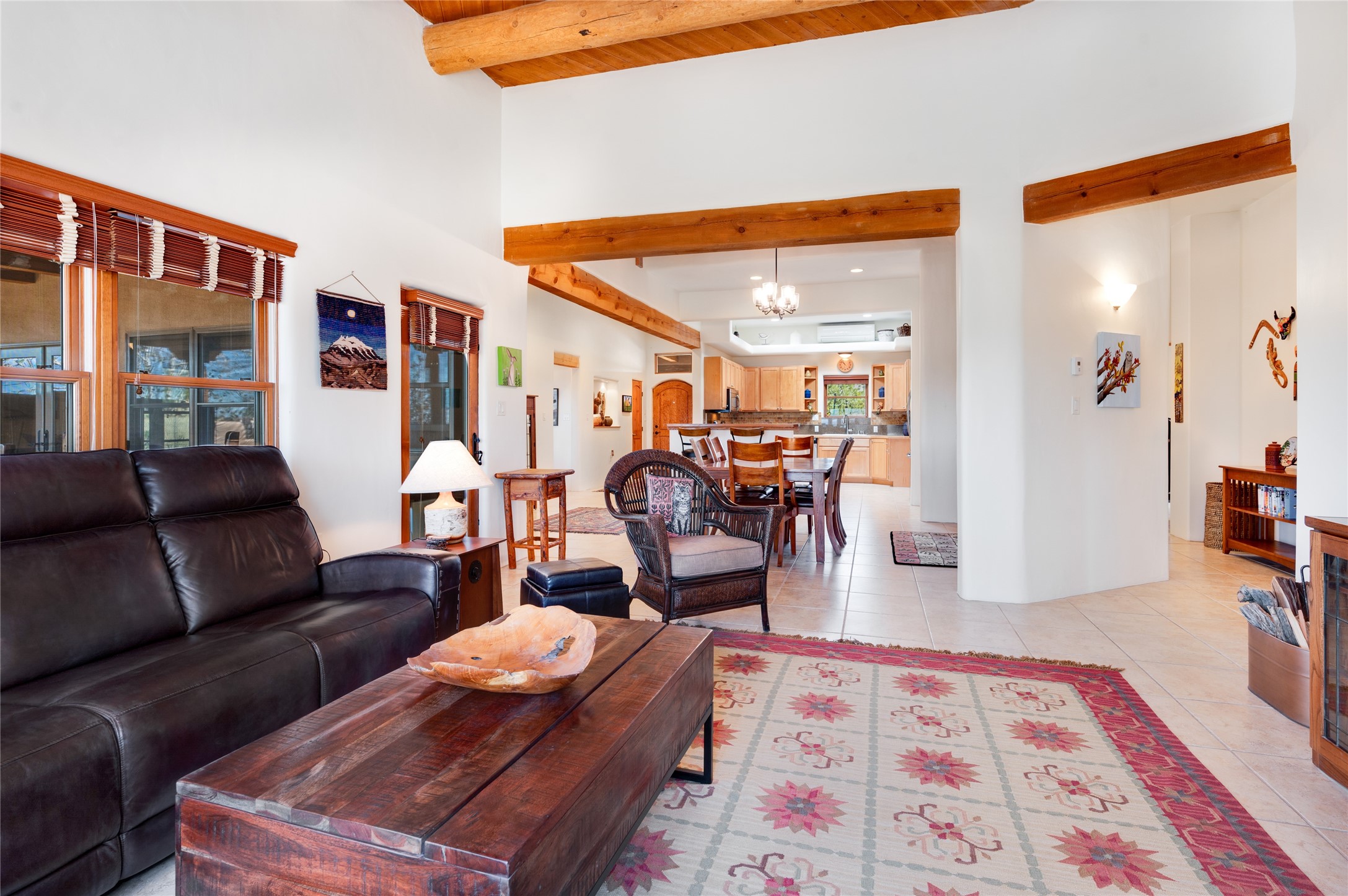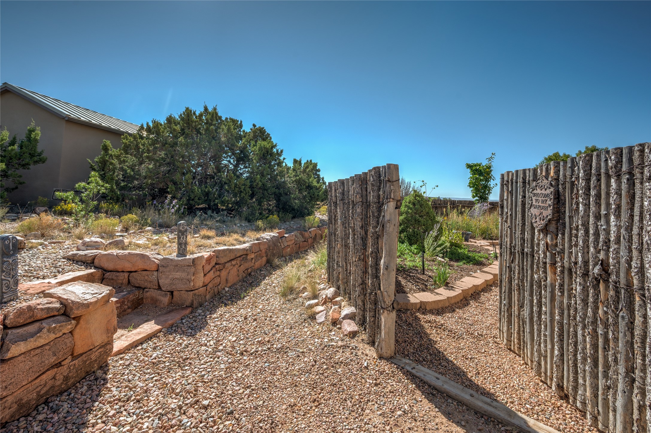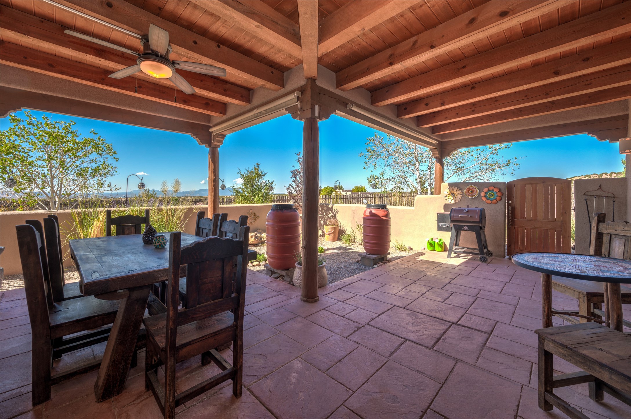 Enjoy the views of the mountains and Cerro Colorado, and the nearby trails of the Galisteo Basin from this perfect 4 bedroom/3 bathroom home situated on 3.5 lovely acres. The windows offer picturesque views from each room. The open concept living is spacious and grand. The home has high ceilings, and nice separation of the primary suite and guest bedrooms. The gourmet kitchen is a delight. The home features New Mexican accents throughout. The vigas, fireplaces, doors, and picture windows lend to the charm of this home. There is a 12X16 Tuff Shed with power and a two car garage. Many items have been upgraded throughout the home to include; a new TPO roof, Kuma wood stove, mini-splits, new refrigerator, water softener, irrigation, 50 trees and drought tolerant plants. These are just some of the wonderful offerings of this property. The portals, patios, and outdoor spaces surrounding the home are divine places to enjoy the beautiful New Mexico blue skies. Close to shopping, restaurants and Santa Fe, but with the serene country feel of your own paradise. Come see what this unique property has to offer in Lamy, which is a close-by Gem. This property truly has it all!