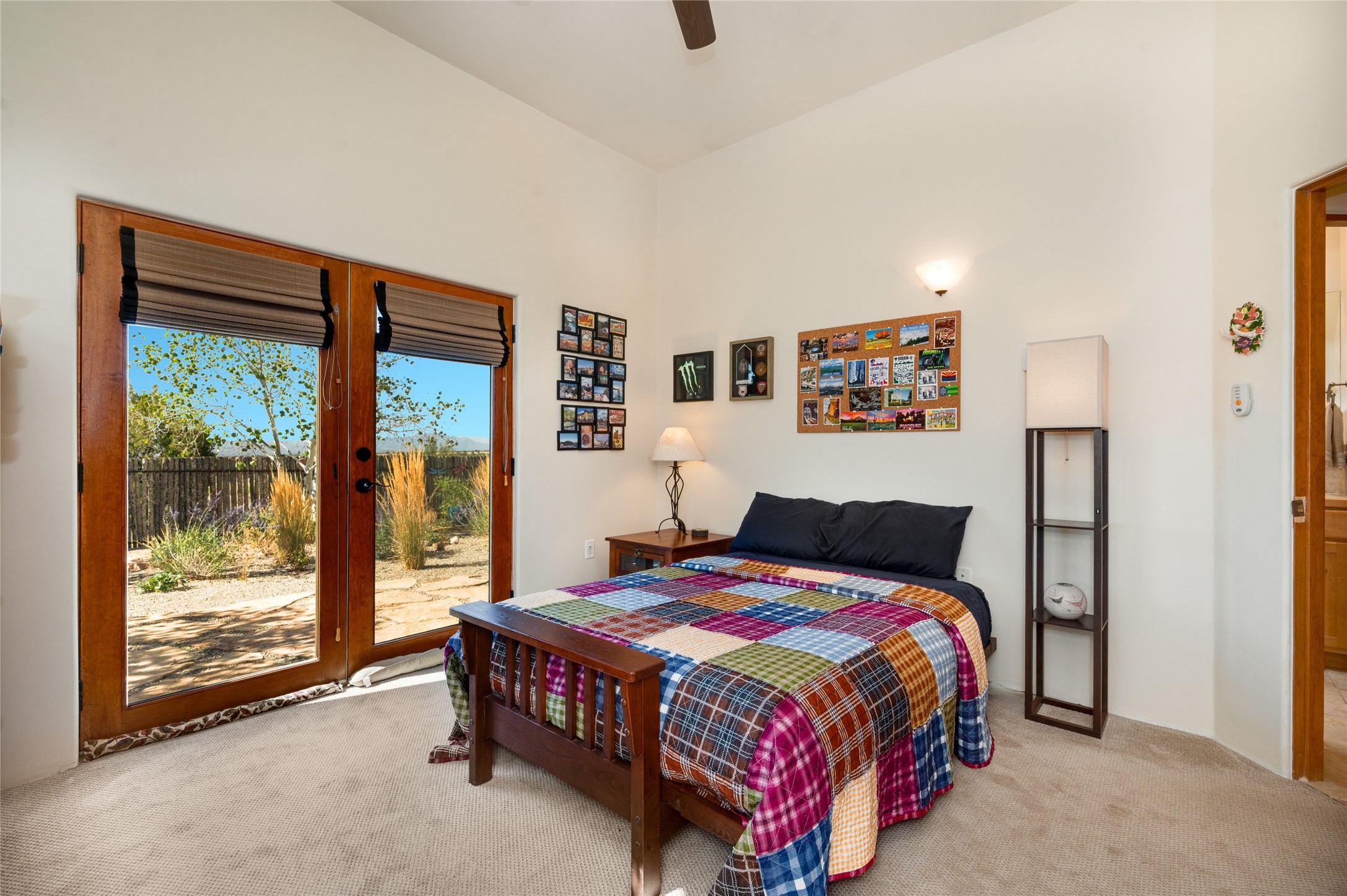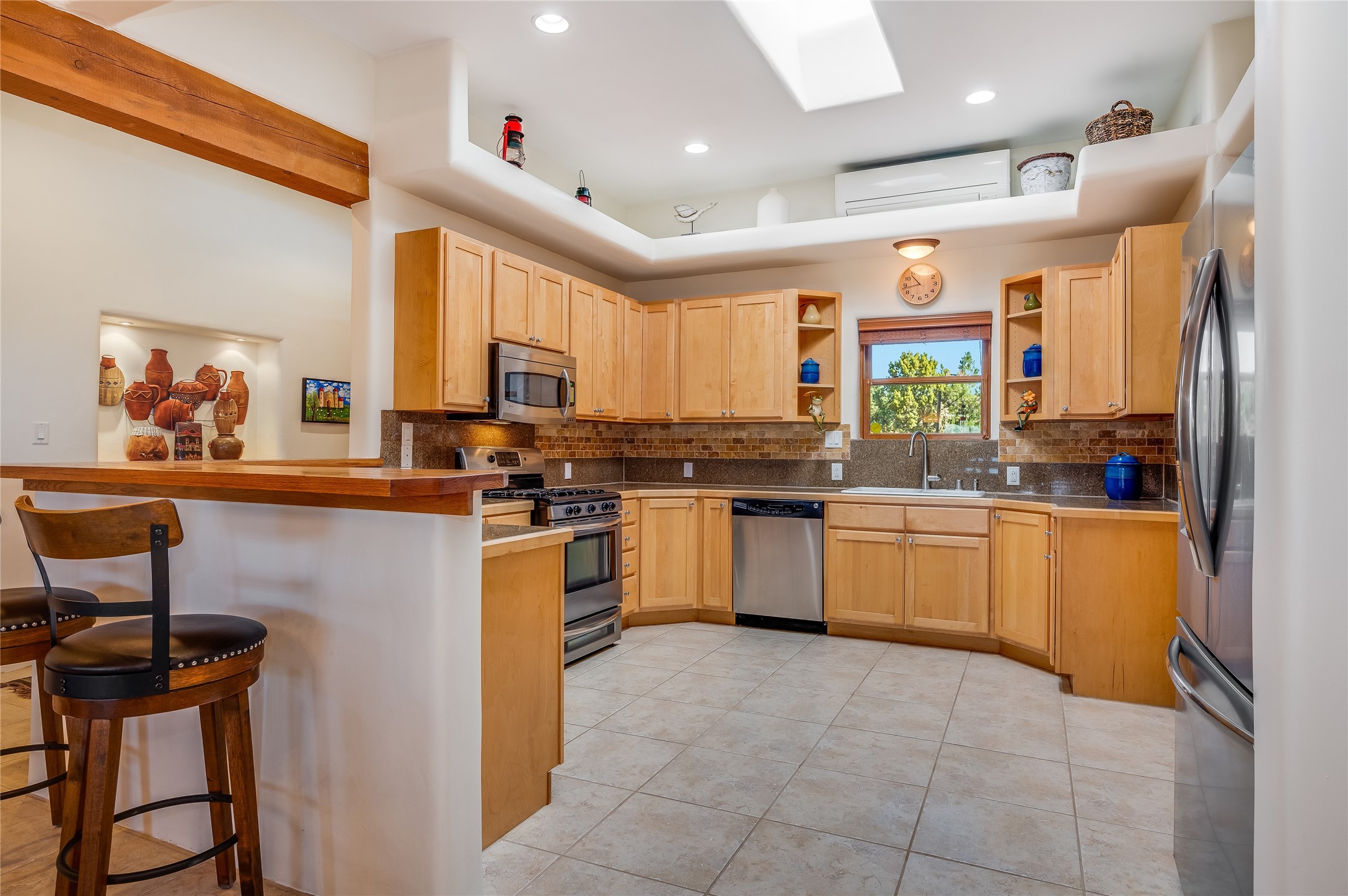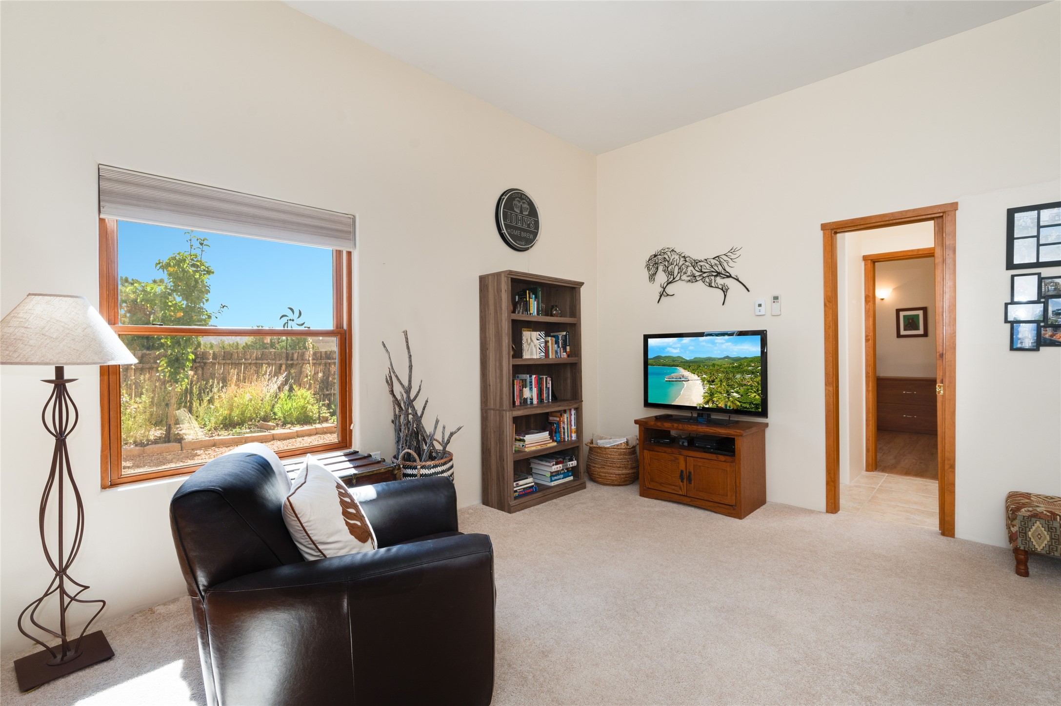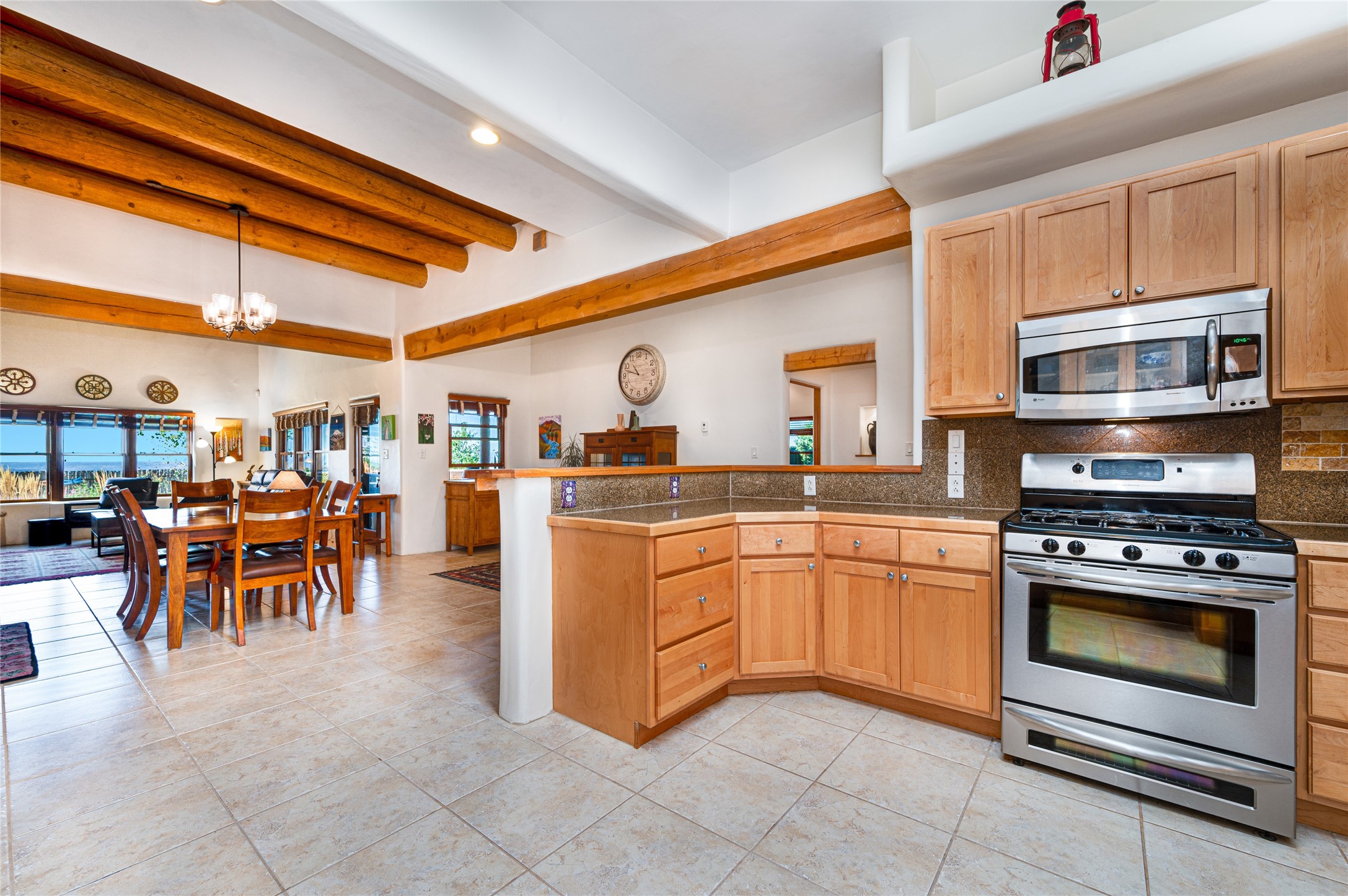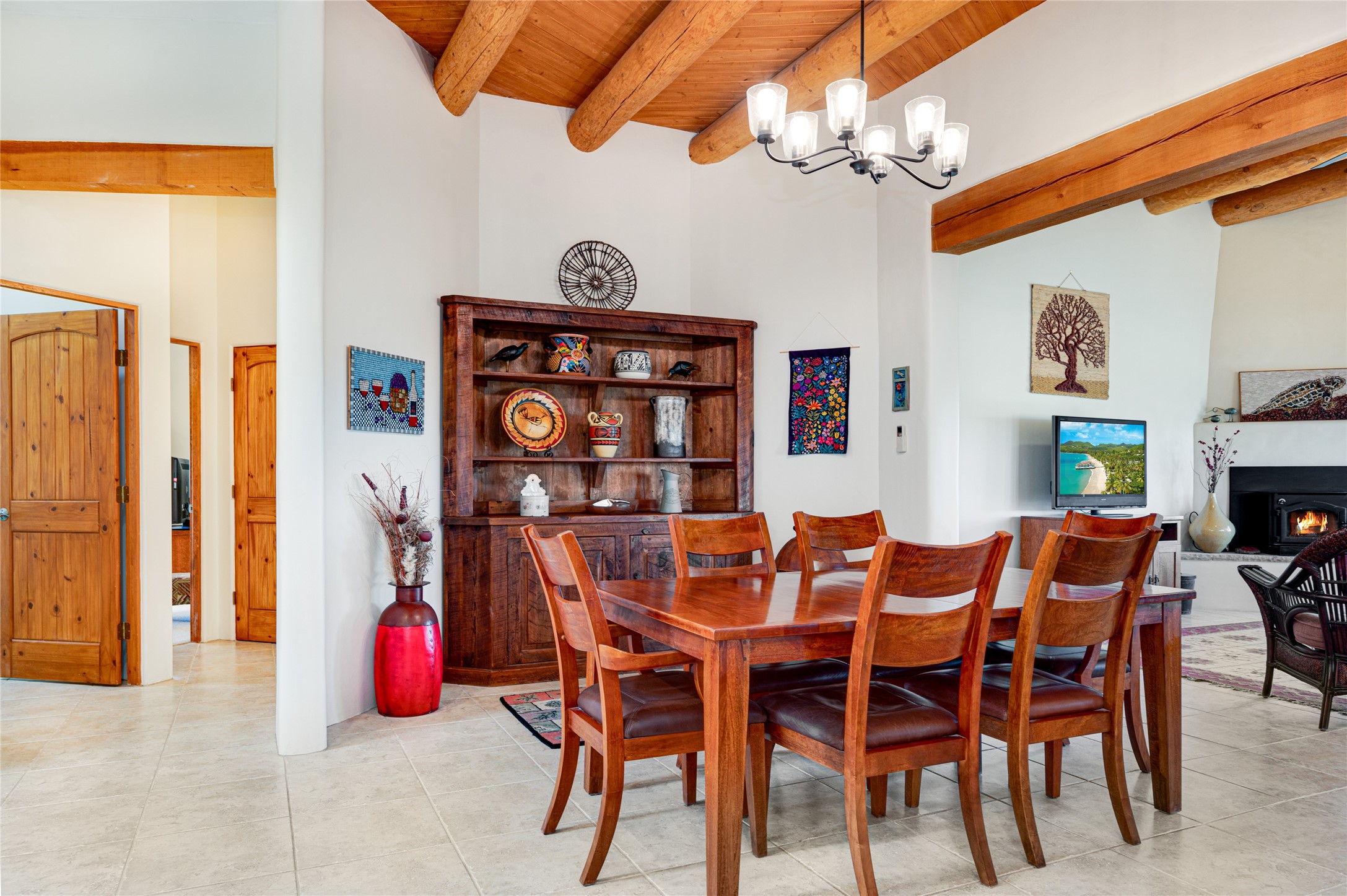 Enjoy the views of the mountains and Cerro Colorado, and the nearby trails of the Galisteo Basin from this perfect 4 bedroom/3 bathroom home situated on 3.5 lovely acres. The windows offer picturesque views from each room. The open concept living is spacious and grand. The home has high ceilings, and nice separation of the primary suite and guest bedrooms. The gourmet kitchen is a delight. The home features New Mexican accents throughout. The vigas, fireplaces, doors, and picture windows lend to the charm of this home. There is a 12X16 Tuff Shed with power and a two car garage. Many items have been upgraded throughout the home to include; a new TPO roof, Kuma wood stove, mini-splits, new refrigerator, water softener, irrigation, 50 trees and drought tolerant plants. These are just some of the wonderful offerings of this property. The portals, patios, and outdoor spaces surrounding the home are divine places to enjoy the beautiful New Mexico blue skies. Close to shopping, restaurants and Santa Fe, but with the serene country feel of your own paradise. Come see what this unique property has to offer in Lamy, which is a close-by Gem. This property truly has it all!