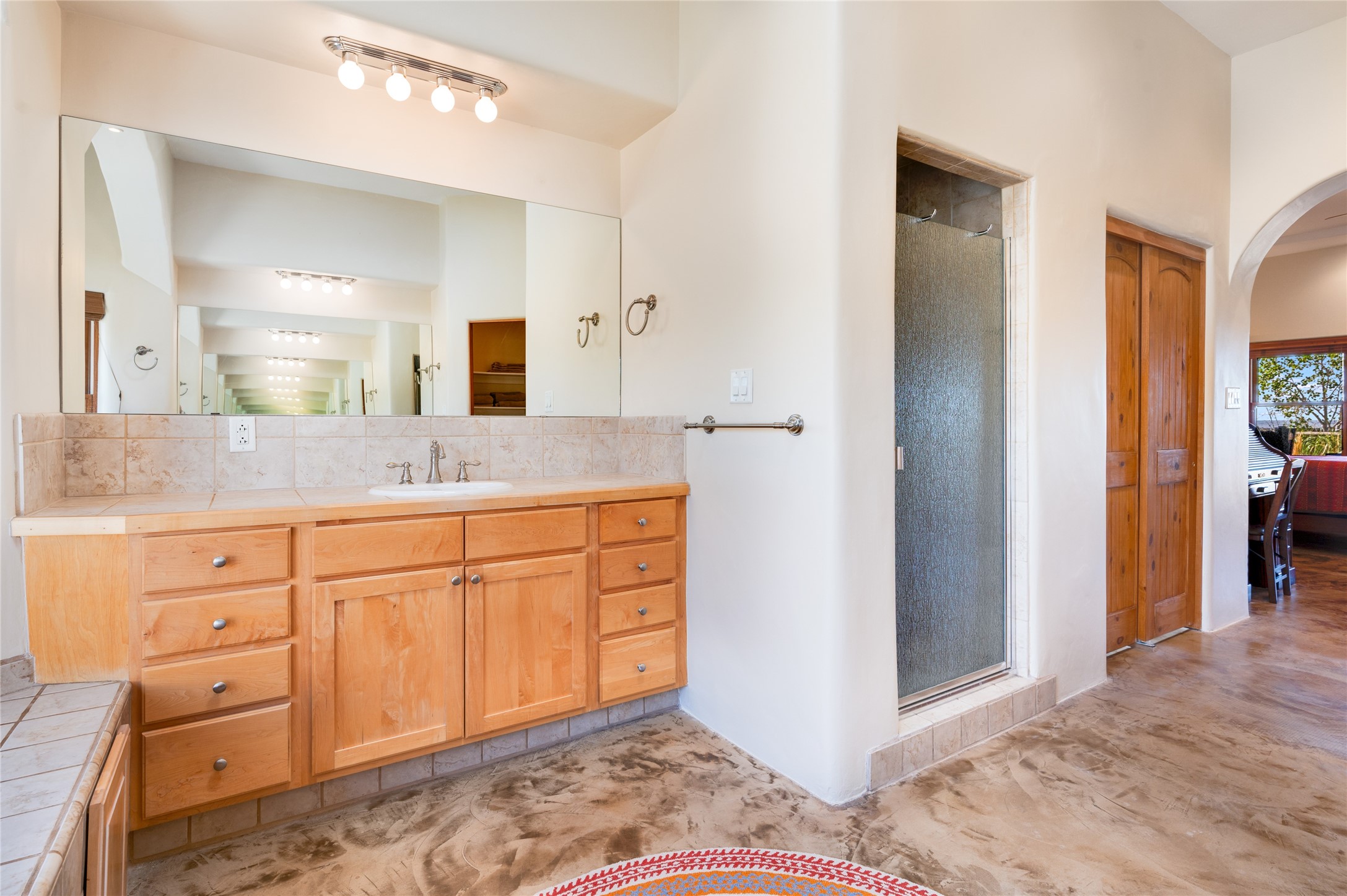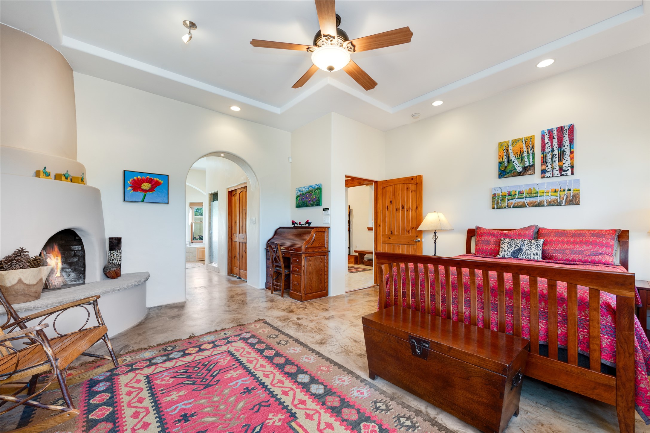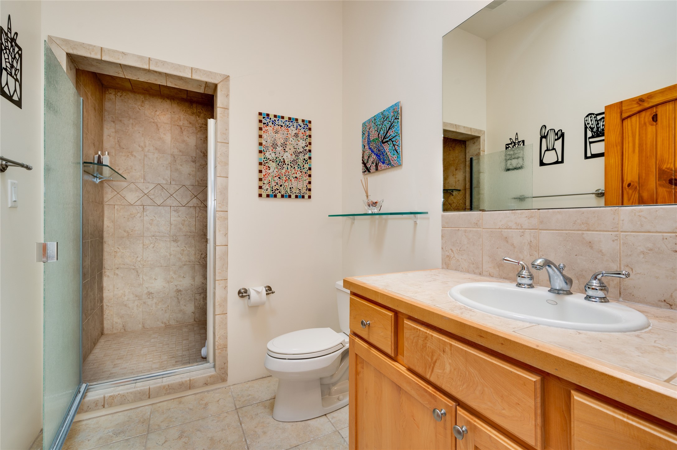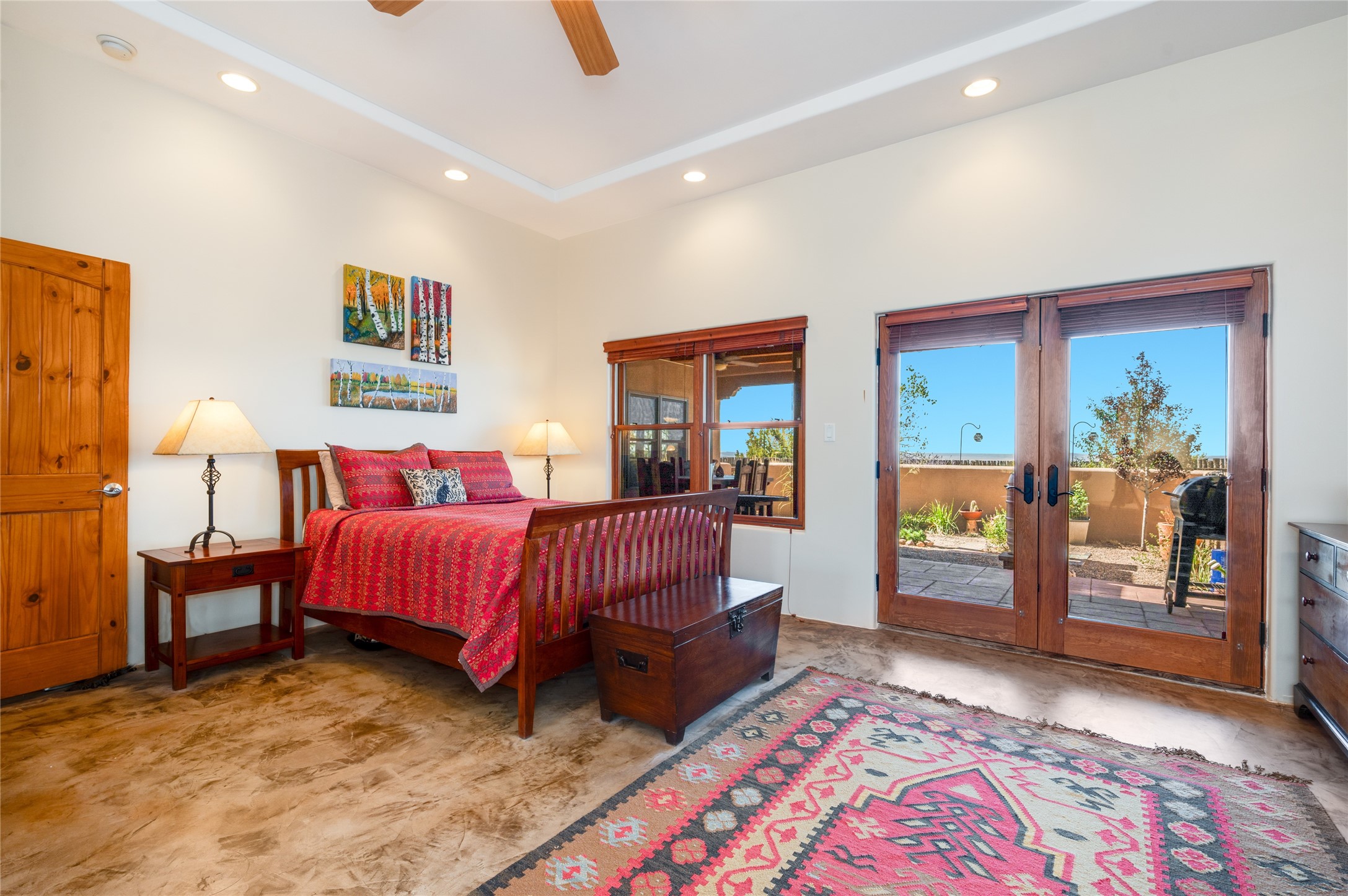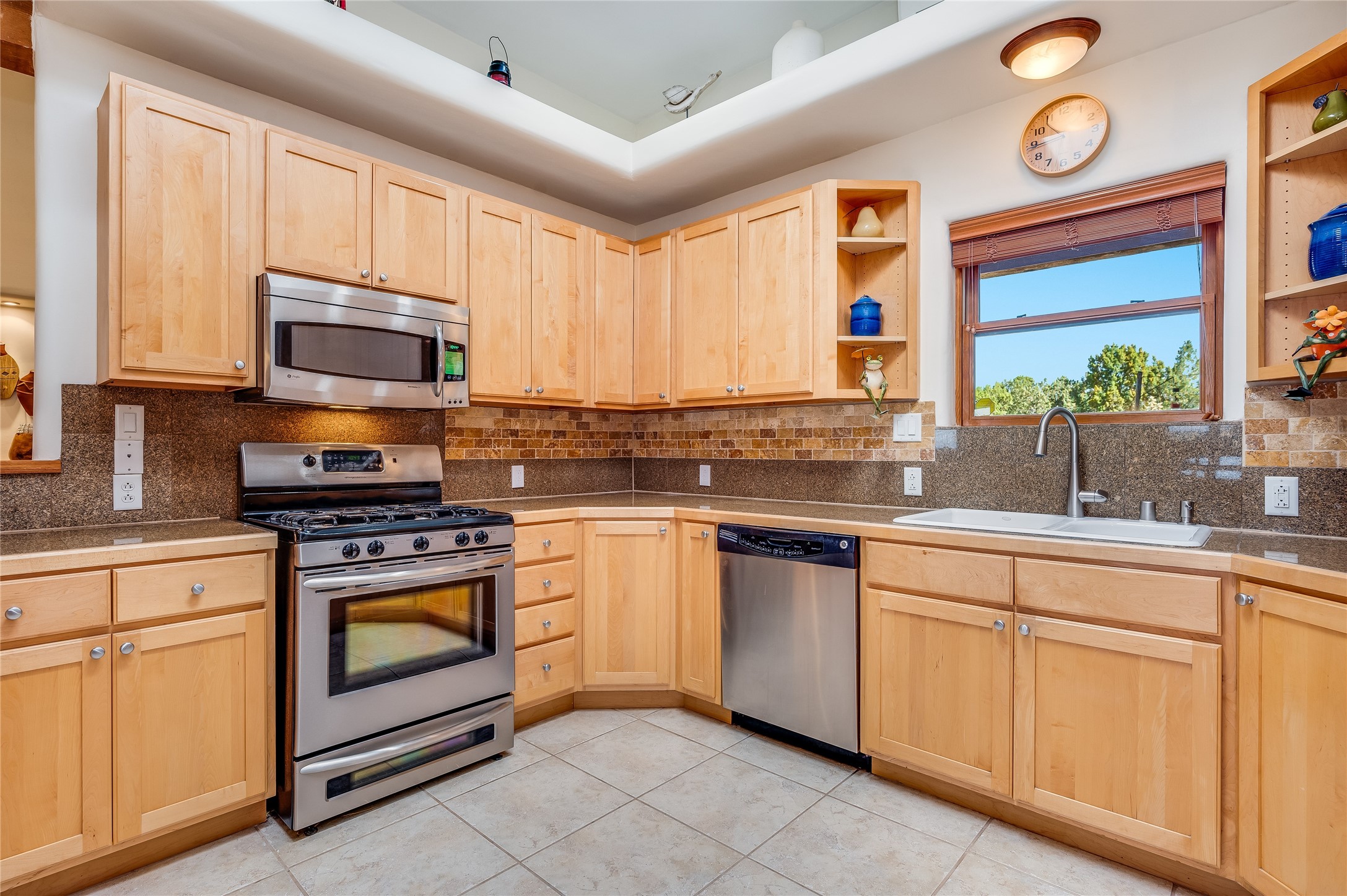 Enjoy the views of the mountains and Cerro Colorado, and the nearby trails of the Galisteo Basin from this perfect 4 bedroom/3 bathroom home situated on 3.5 lovely acres. The windows offer picturesque views from each room. The open concept living is spacious and grand. The home has high ceilings, and nice separation of the primary suite and guest bedrooms. The gourmet kitchen is a delight. The home features New Mexican accents throughout. The vigas, fireplaces, doors, and picture windows lend to the charm of this home. There is a 12X16 Tuff Shed with power and a two car garage. Many items have been upgraded throughout the home to include; a new TPO roof, Kuma wood stove, mini-splits, new refrigerator, water softener, irrigation, 50 trees and drought tolerant plants. These are just some of the wonderful offerings of this property. The portals, patios, and outdoor spaces surrounding the home are divine places to enjoy the beautiful New Mexico blue skies. Close to shopping, restaurants and Santa Fe, but with the serene country feel of your own paradise. Come see what this unique property has to offer in Lamy, which is a close-by Gem. This property truly has it all!