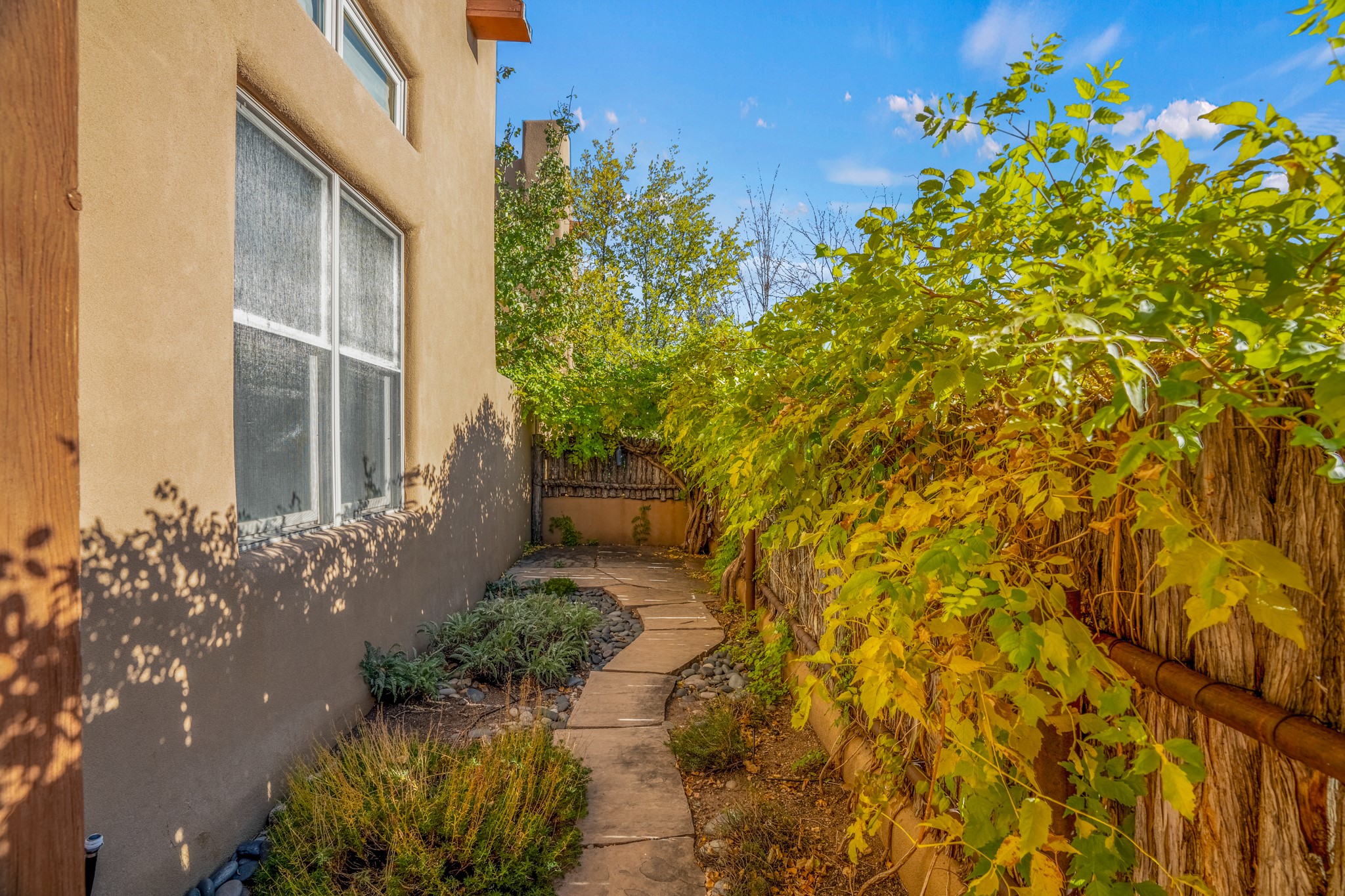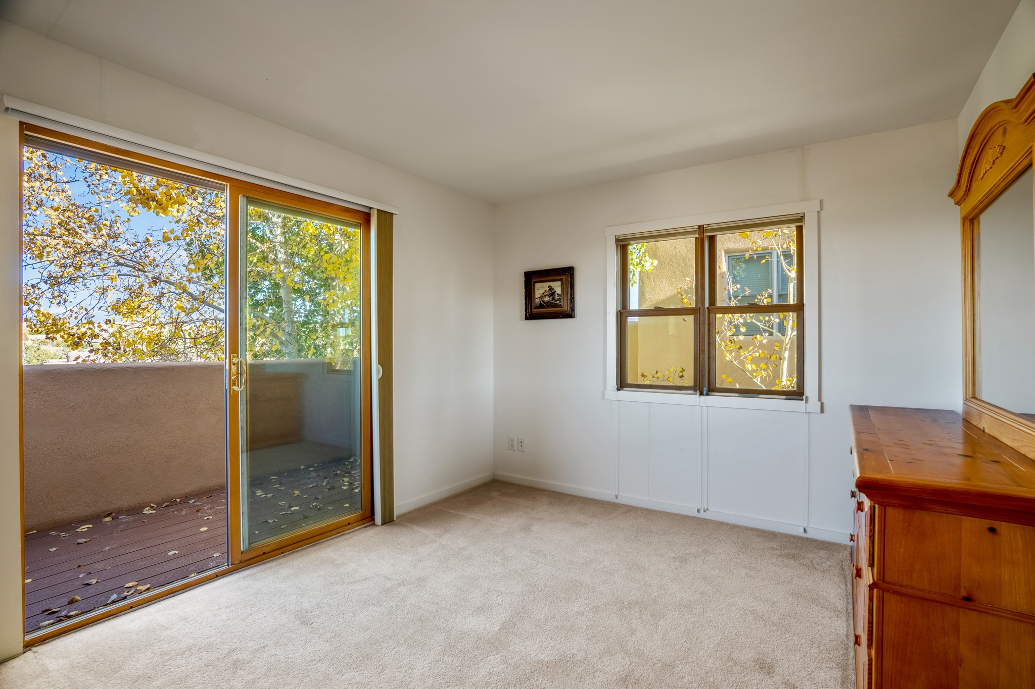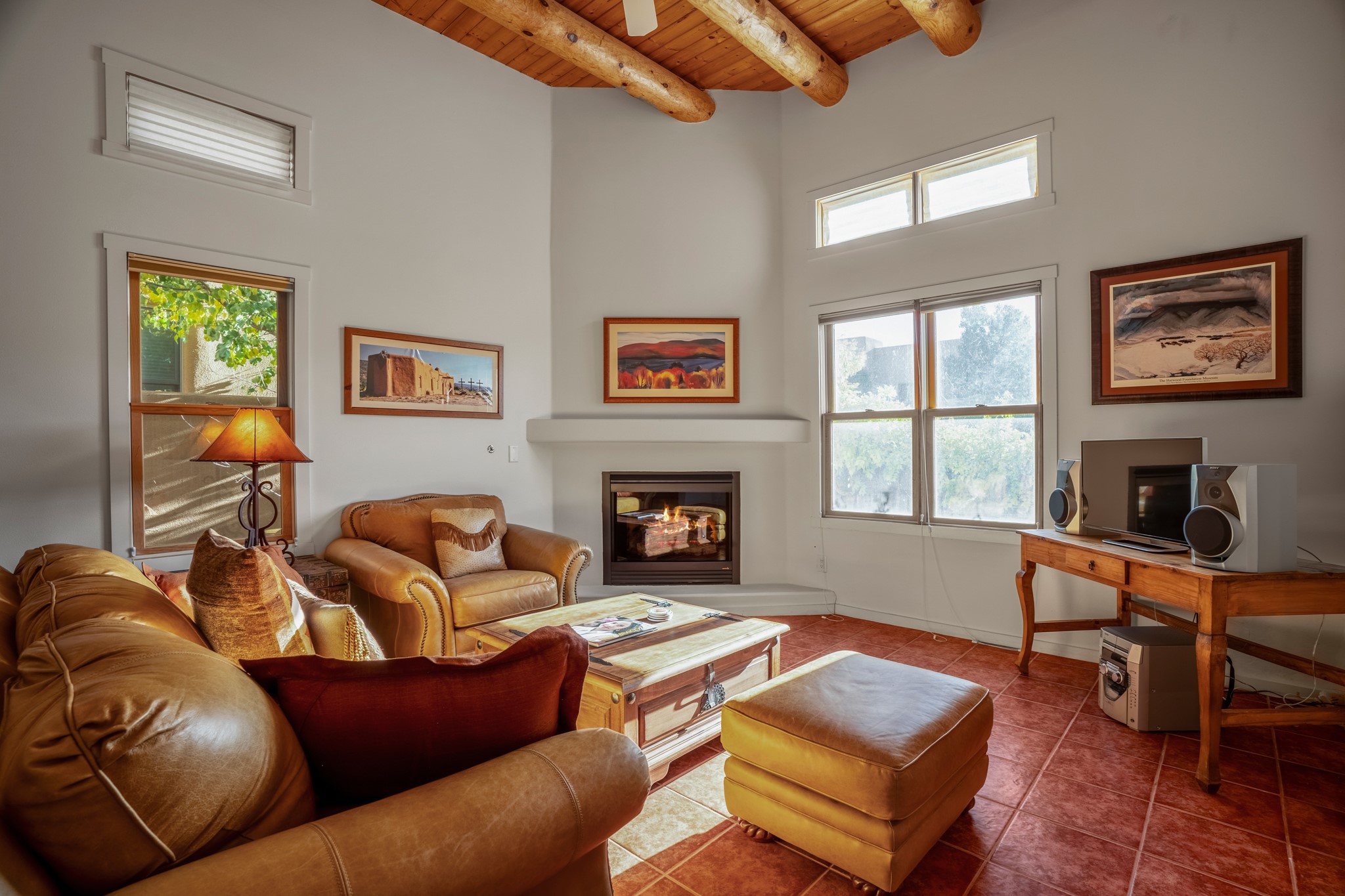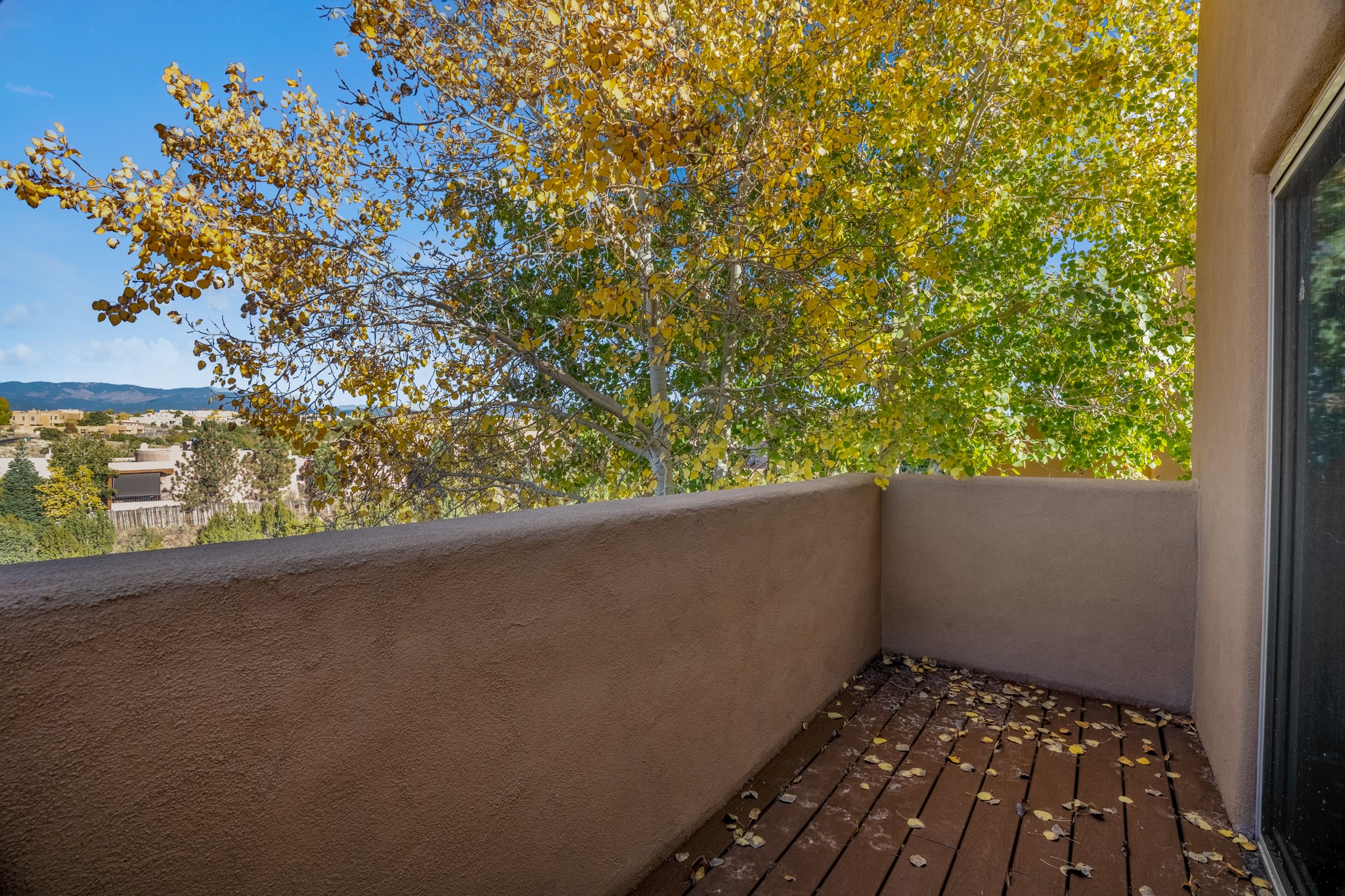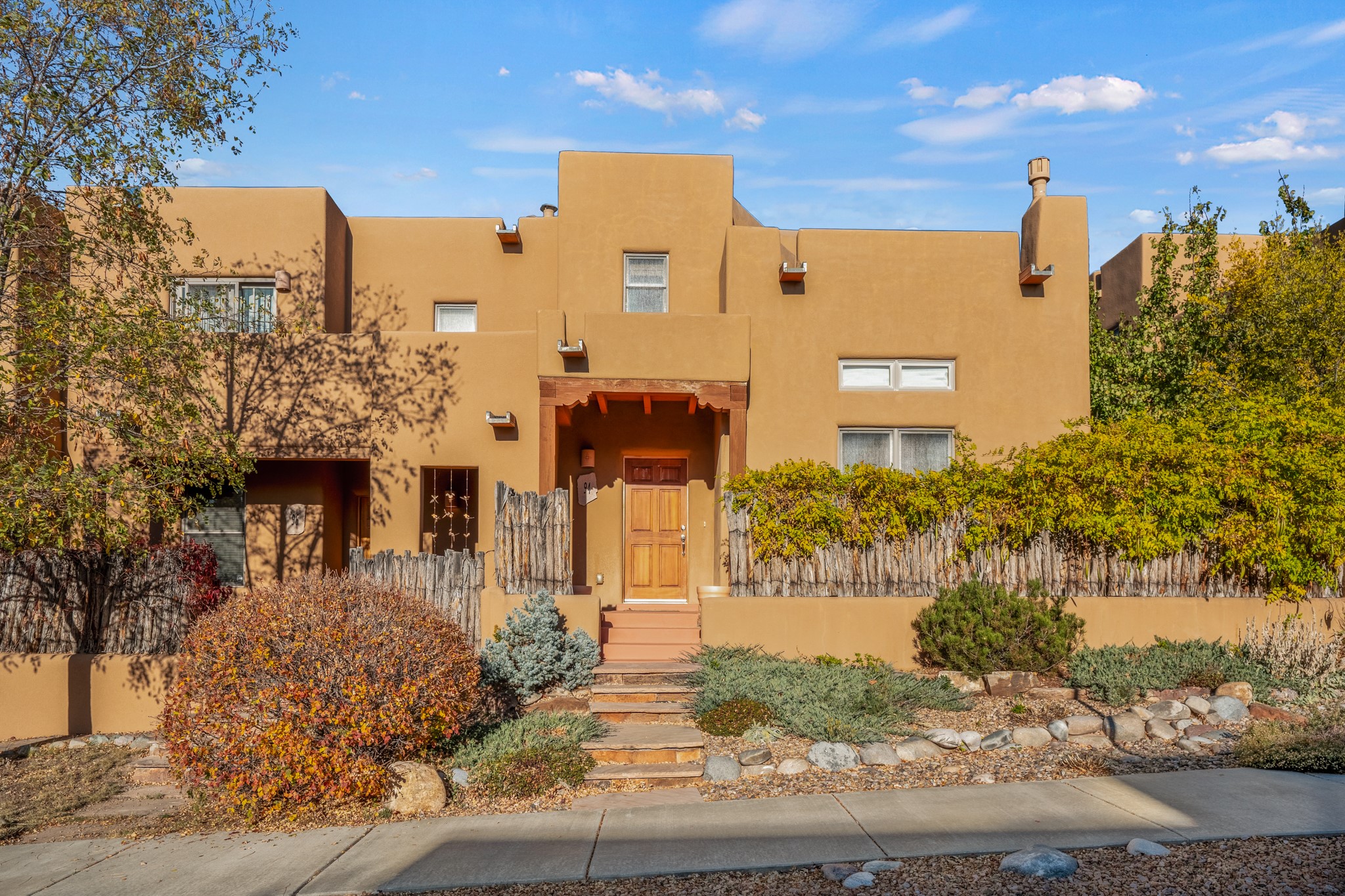 This lovely townhouse is situated in Aldea de Santa Fe, a popular area known for its lifestyle and attractiveness. The property boasts stunning views of the ski basin, providing a picturesque backdrop. The front door leads to a cozy living room equipped with a gas fireplace. The living room features soaring ceilings and large windows that allow an abundance of natural light to flood the space. The open floor plan seamlessly connects the living room to a spacious dining room, creating a welcoming and inclusive atmosphere. The well-Equipped Kitchen is generously sized and offers ample counter space and cabinets for storage. This is ideal for those who enjoy cooking or need plenty of kitchen space. Adjacent to the kitchen, there is a private patio where you can enjoy your morning coffee or outdoor relaxation. On the main floor, there is a bedroom and a bathroom, which can be used for guests or as an office space, providing versatility in its use. The upper floor features two more bedrooms. The primary bedroom suite is particularly spacious, providing room for a sitting area, and it offers a generous closet for storage. The primary bedroom includes an ensuite bathroom with dual sinks, a tub, and a shower, offering convenience and comfort.Behind the house, there is alley access to a spacious two-car garage making parking and storage convenient. Overall, this townhouse is an inviting and well-appointed property, offering a comfortable living space with great natural light, scenic views, and practical features for daily living.Aldea is an active new-urbanist community with 13 miles of walking trails, many parks including one with a playground, tennis, basketball and bocce ball courts. There is a plaza with community center, coffee shop and doctors office.