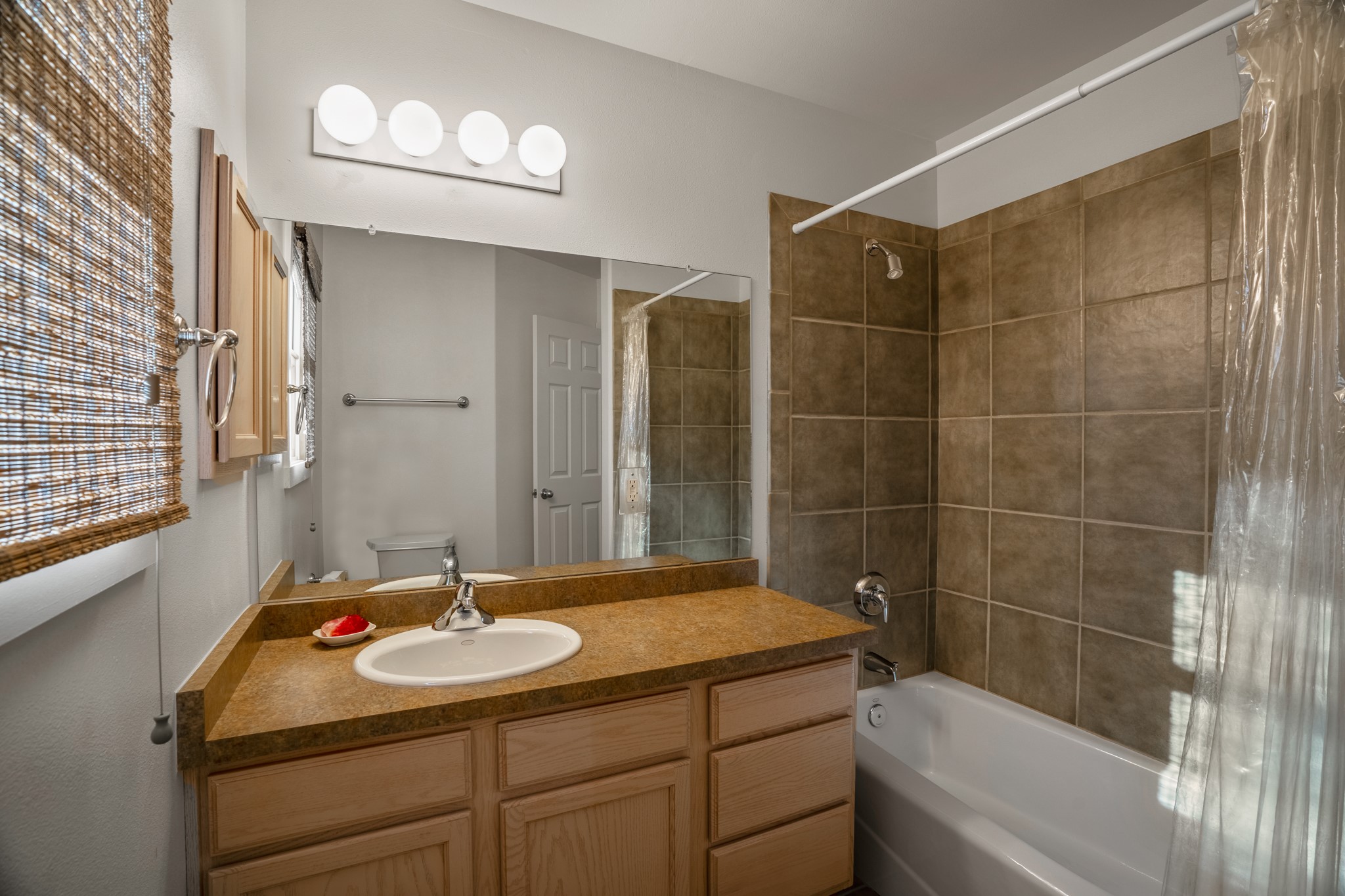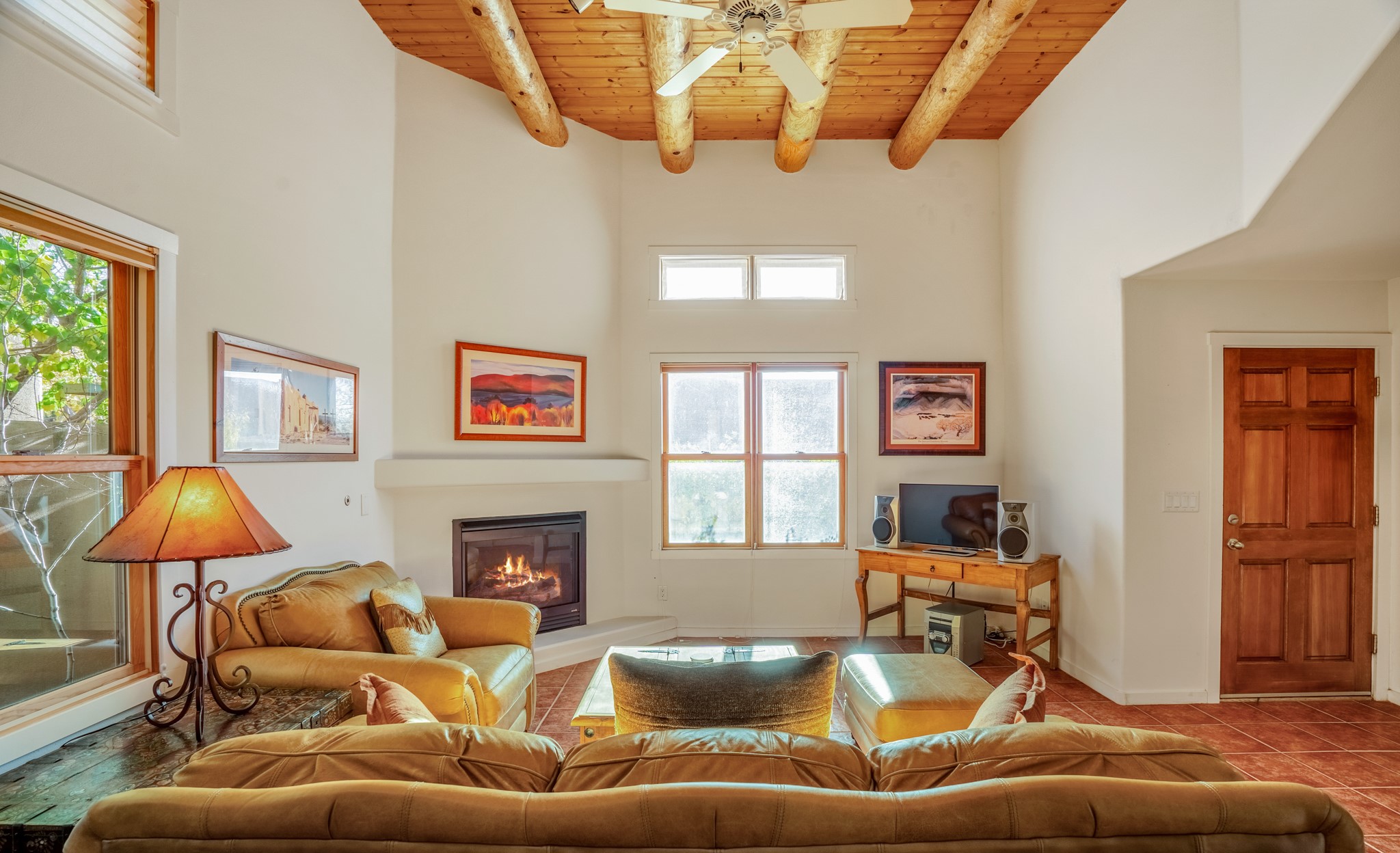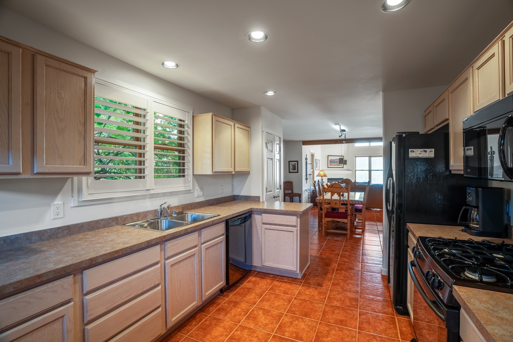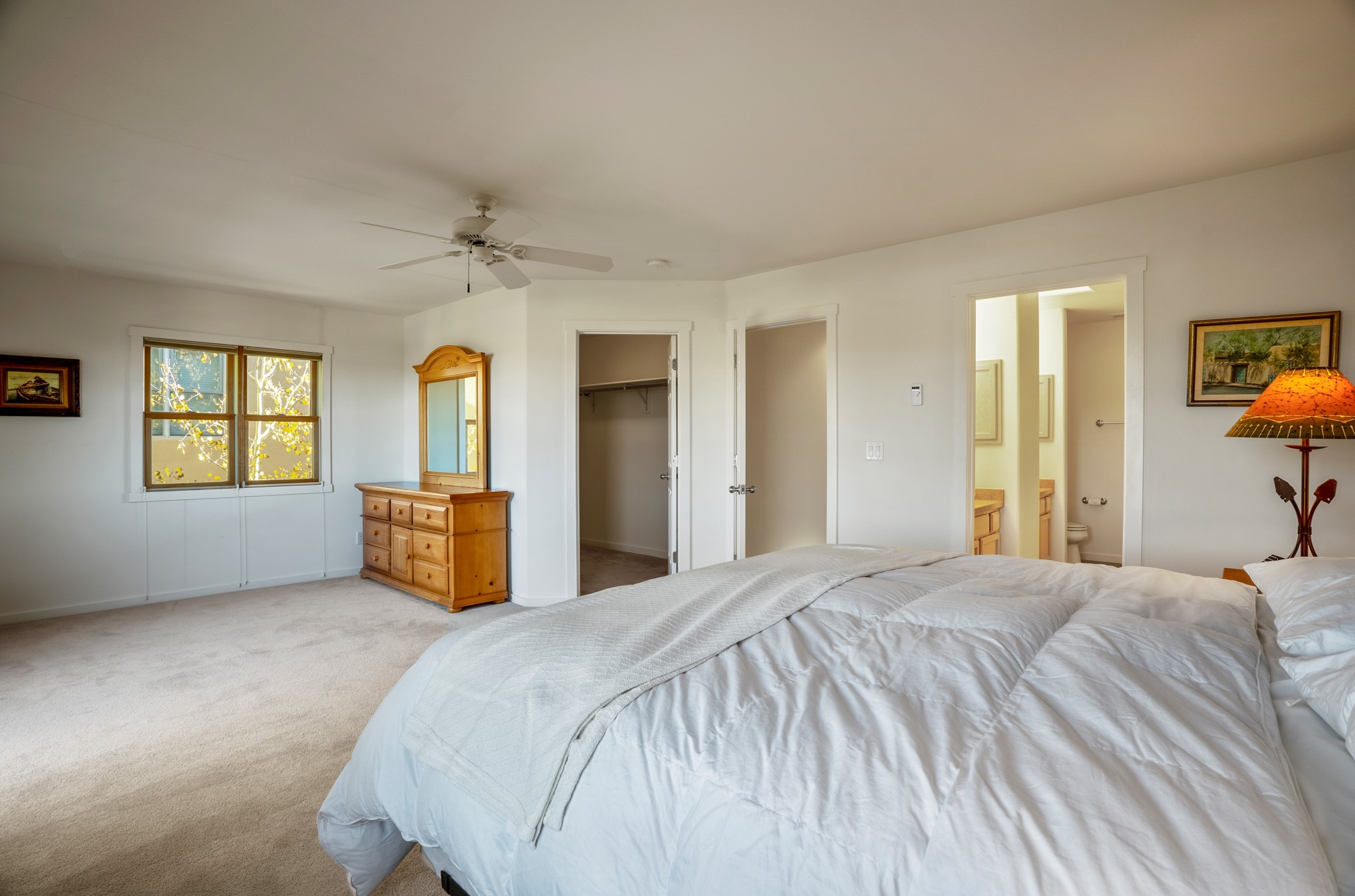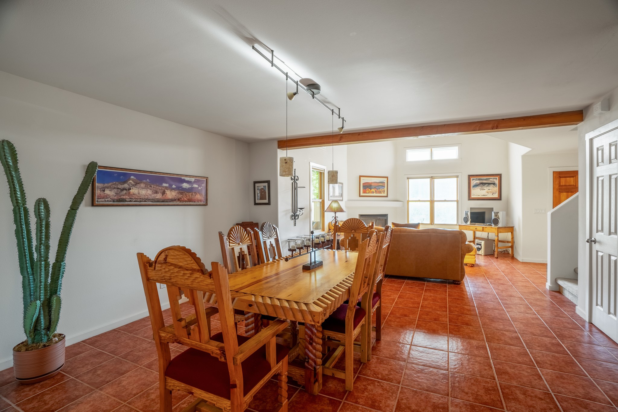 This lovely townhouse is situated in Aldea de Santa Fe, a popular area known for its lifestyle and attractiveness. The property boasts stunning views of the ski basin, providing a picturesque backdrop. The front door leads to a cozy living room equipped with a gas fireplace. The living room features soaring ceilings and large windows that allow an abundance of natural light to flood the space. The open floor plan seamlessly connects the living room to a spacious dining room, creating a welcoming and inclusive atmosphere. The well-Equipped Kitchen is generously sized and offers ample counter space and cabinets for storage. This is ideal for those who enjoy cooking or need plenty of kitchen space. Adjacent to the kitchen, there is a private patio where you can enjoy your morning coffee or outdoor relaxation. On the main floor, there is a bedroom and a bathroom, which can be used for guests or as an office space, providing versatility in its use. The upper floor features two more bedrooms. The primary bedroom suite is particularly spacious, providing room for a sitting area, and it offers a generous closet for storage. The primary bedroom includes an ensuite bathroom with dual sinks, a tub, and a shower, offering convenience and comfort.Behind the house, there is alley access to a spacious two-car garage making parking and storage convenient. Overall, this townhouse is an inviting and well-appointed property, offering a comfortable living space with great natural light, scenic views, and practical features for daily living.Aldea is an active new-urbanist community with 13 miles of walking trails, many parks including one with a playground, tennis, basketball and bocce ball courts. There is a plaza with community center, coffee shop and doctors office.