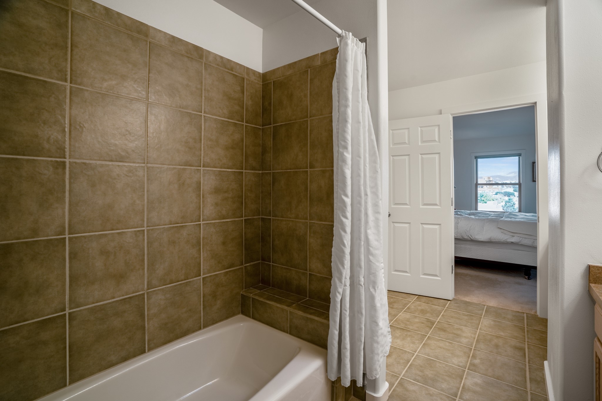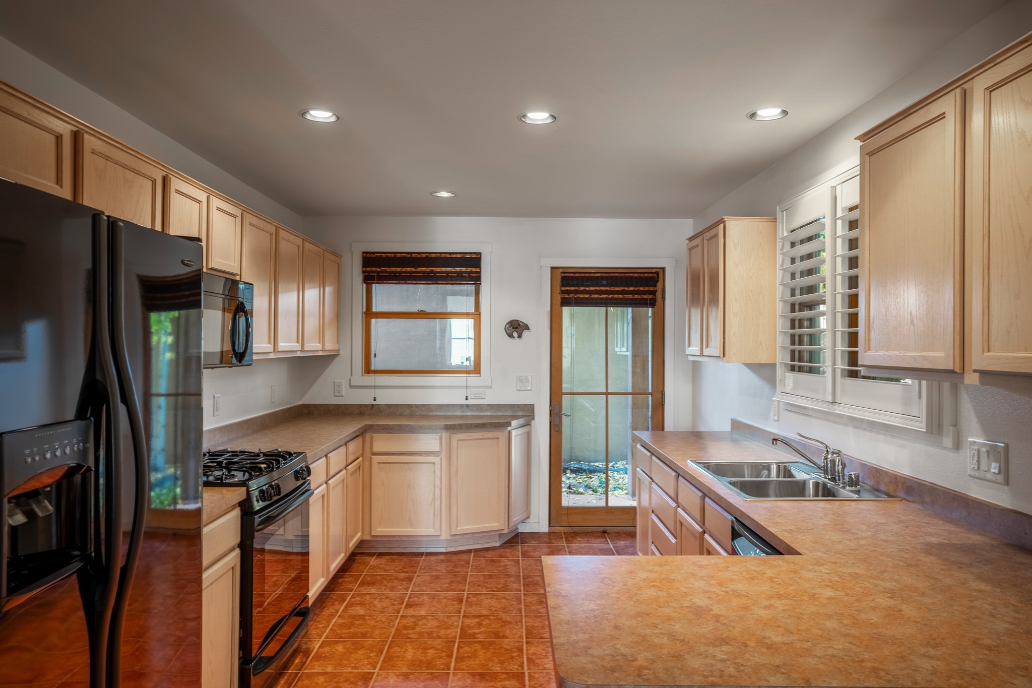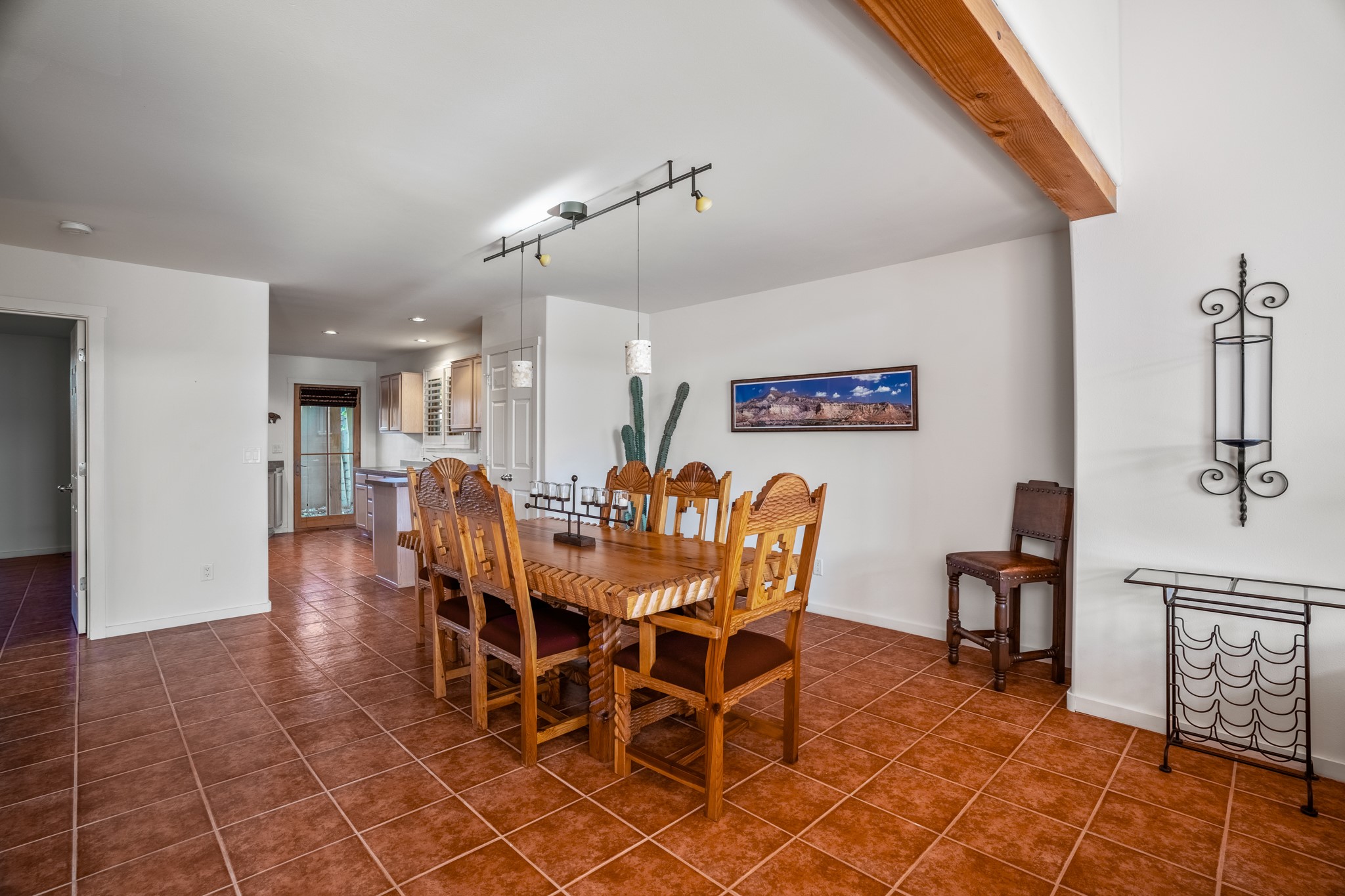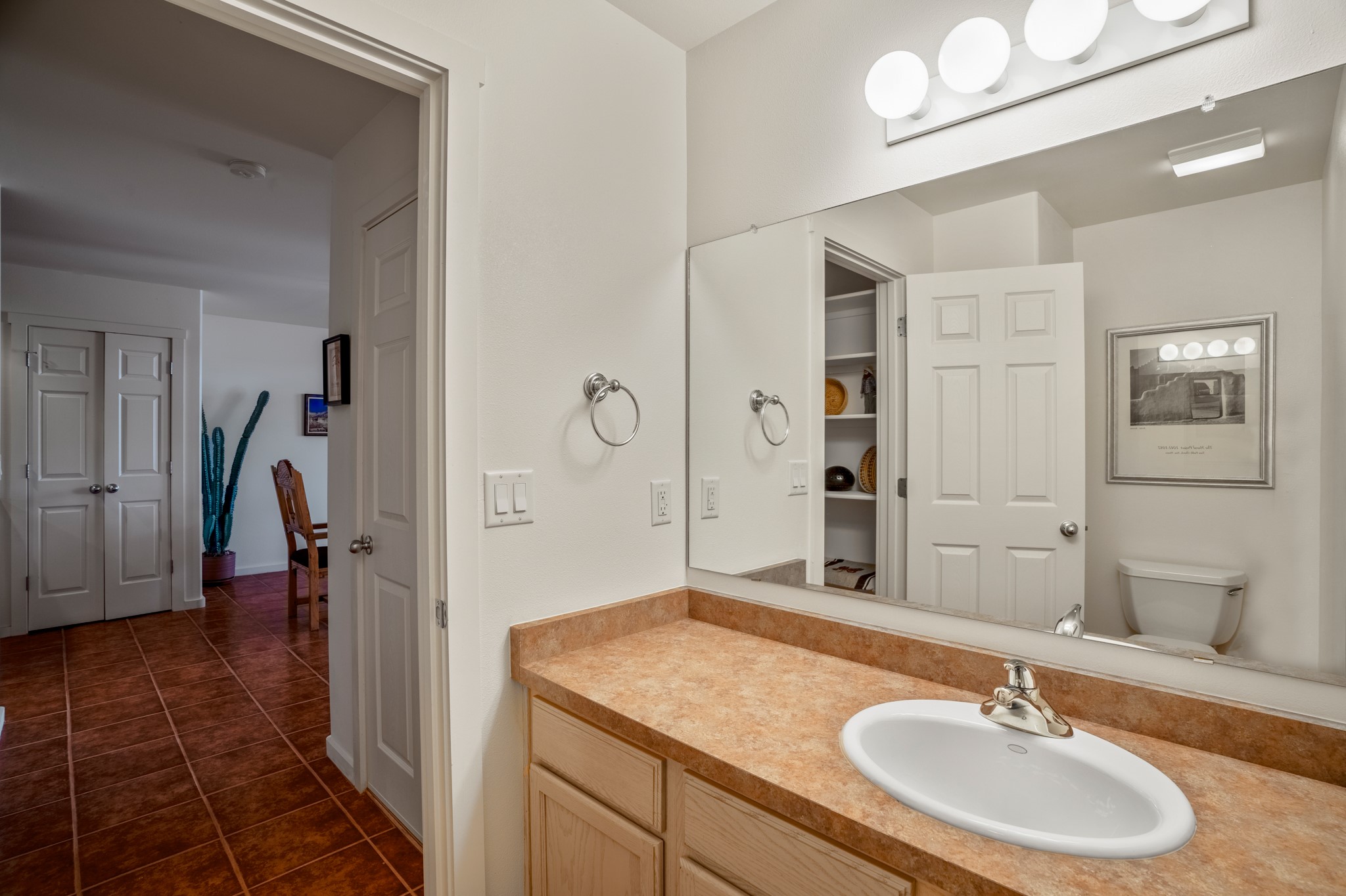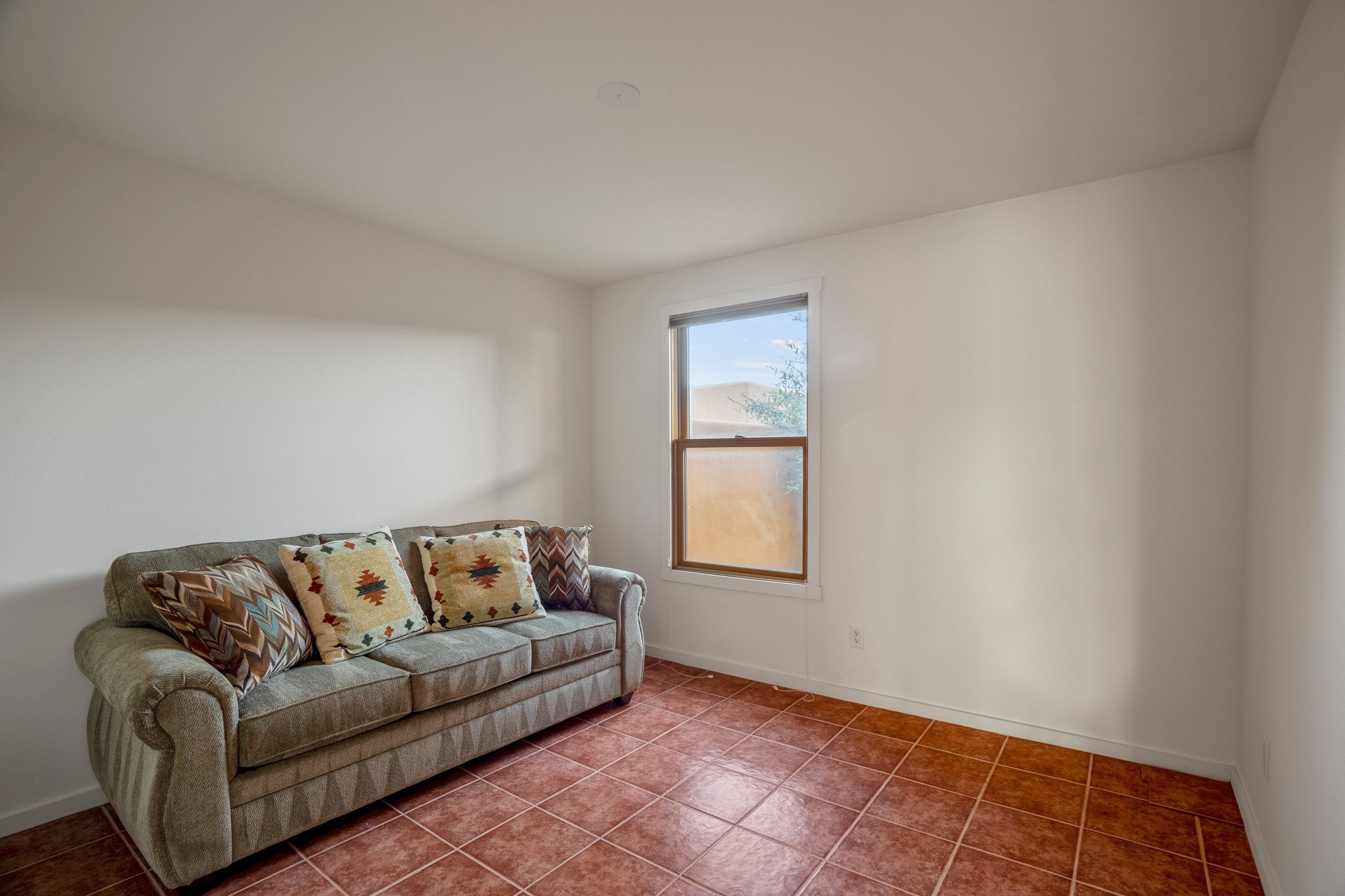 This lovely townhouse is situated in Aldea de Santa Fe, a popular area known for its lifestyle and attractiveness. The property boasts stunning views of the ski basin, providing a picturesque backdrop. The front door leads to a cozy living room equipped with a gas fireplace. The living room features soaring ceilings and large windows that allow an abundance of natural light to flood the space. The open floor plan seamlessly connects the living room to a spacious dining room, creating a welcoming and inclusive atmosphere. The well-Equipped Kitchen is generously sized and offers ample counter space and cabinets for storage. This is ideal for those who enjoy cooking or need plenty of kitchen space. Adjacent to the kitchen, there is a private patio where you can enjoy your morning coffee or outdoor relaxation. On the main floor, there is a bedroom and a bathroom, which can be used for guests or as an office space, providing versatility in its use. The upper floor features two more bedrooms. The primary bedroom suite is particularly spacious, providing room for a sitting area, and it offers a generous closet for storage. The primary bedroom includes an ensuite bathroom with dual sinks, a tub, and a shower, offering convenience and comfort.Behind the house, there is alley access to a spacious two-car garage making parking and storage convenient. Overall, this townhouse is an inviting and well-appointed property, offering a comfortable living space with great natural light, scenic views, and practical features for daily living.Aldea is an active new-urbanist community with 13 miles of walking trails, many parks including one with a playground, tennis, basketball and bocce ball courts. There is a plaza with community center, coffee shop and doctors office.