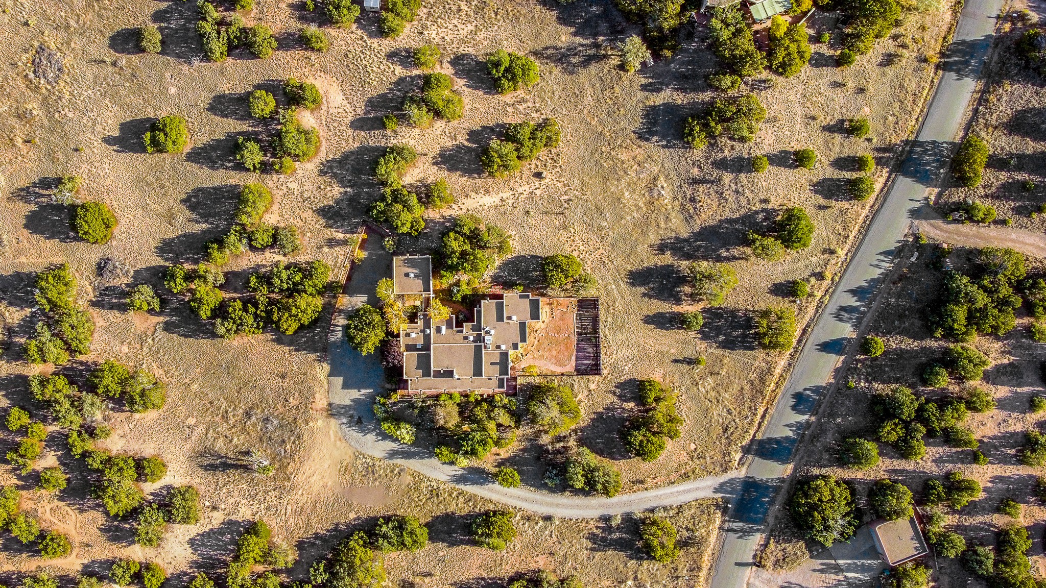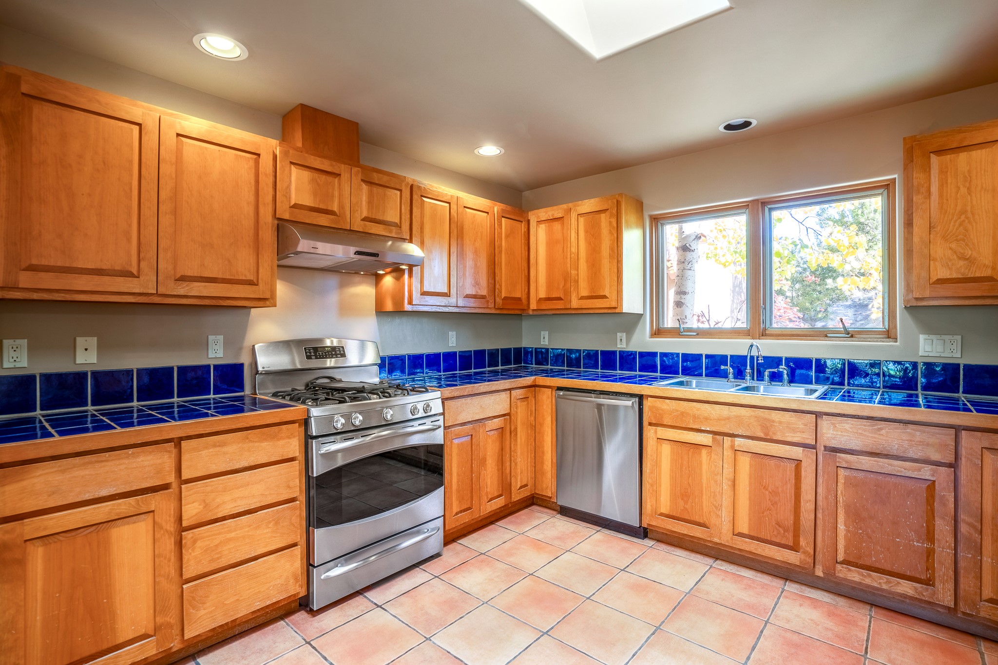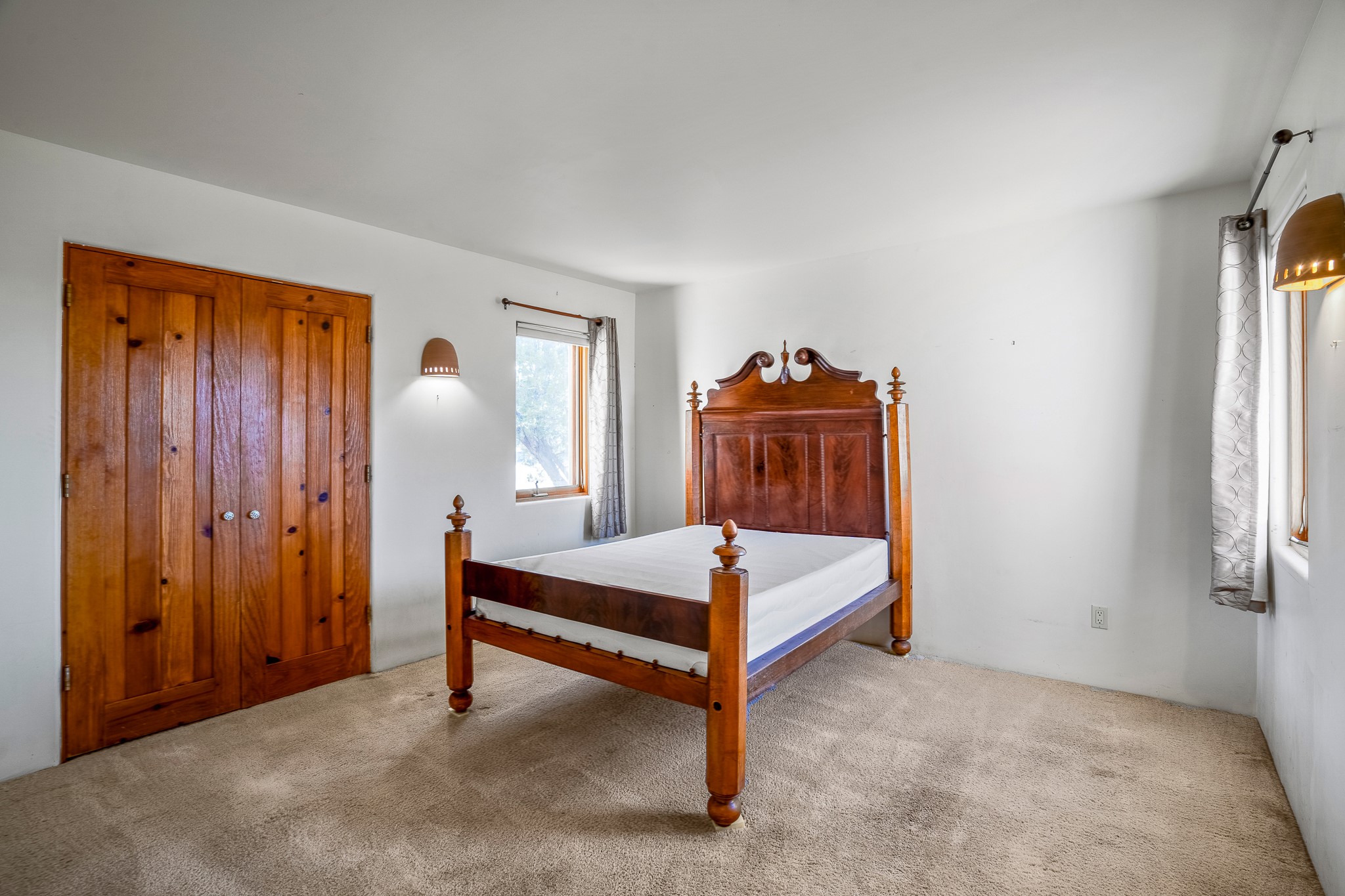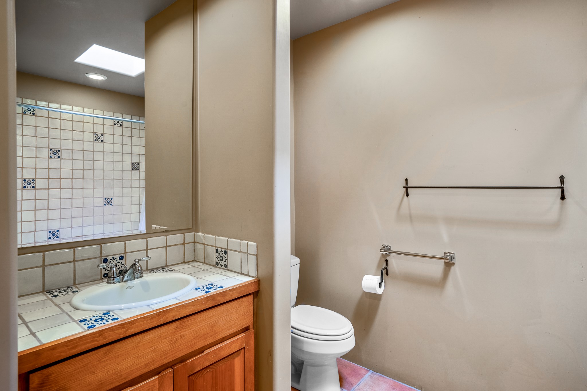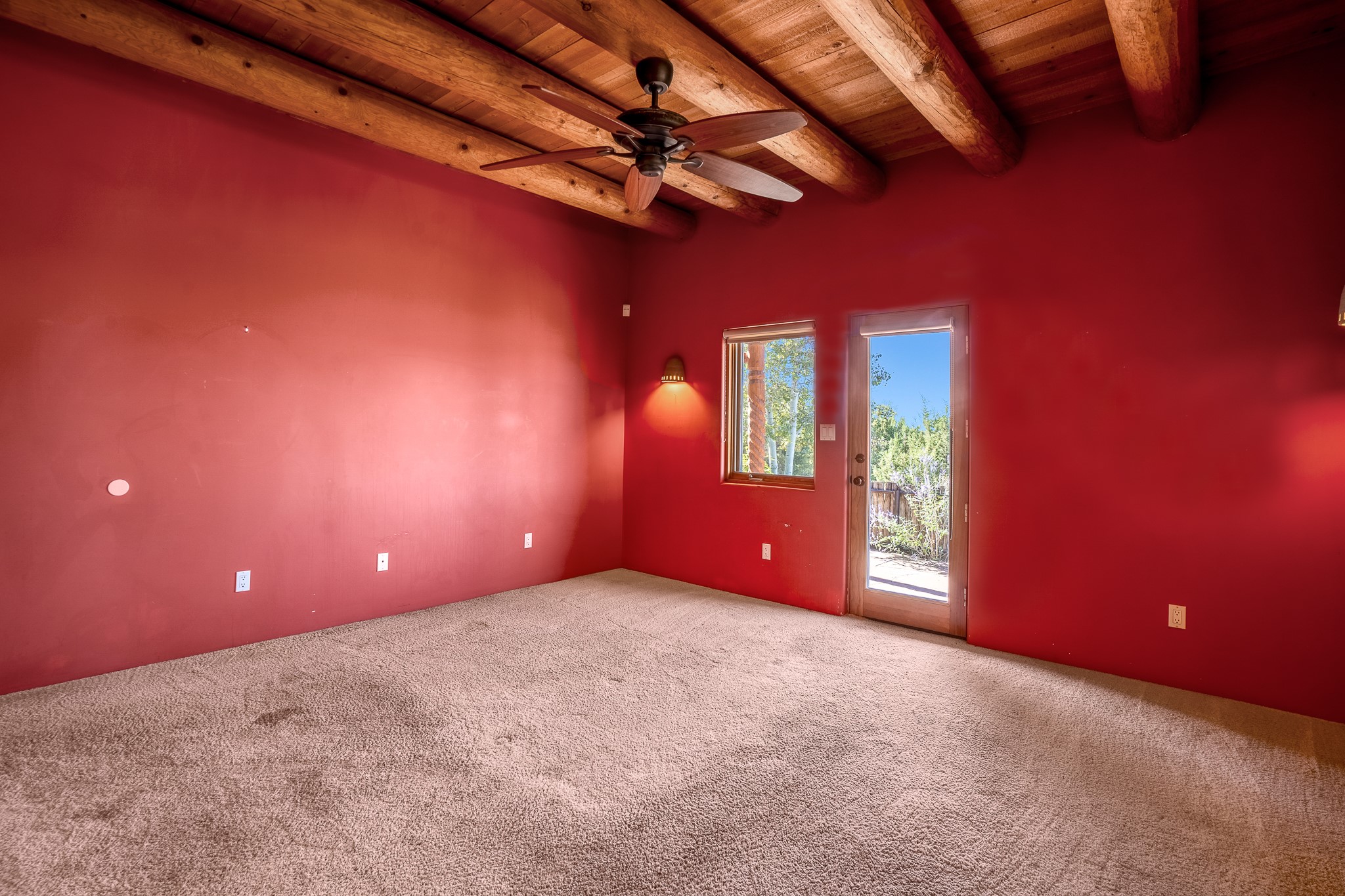 This four bedroom, three bath Adobeworks home, just off a paved road, is located to offer privacy and quiet. There's ample parking, a two car garage, established landscaping (Aspens, Spruce, Crabapple) and hardscaping, and the home is all on one level. Santa Fe features: vigas, two kiva fireplaces, talavera tile, high ceilings, and a media room/library/den/office with built-in shelves, bancos, and separate entrance. The floorplan is open, with good separation of bedrooms; the kitchen has a dining area and stainless appliances. Radiant heat, evaporative cooling, washer/dryer, excellent storage, Murphy Bed in the guest room. Enjoy an outsized front portal and large fenced yard for dogs or just for gardening--there's a drip system. Not far from the many amenities of Eldorado.