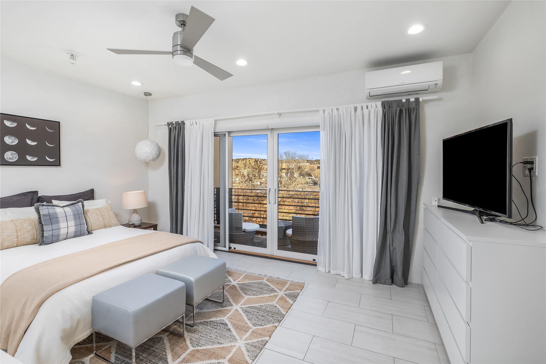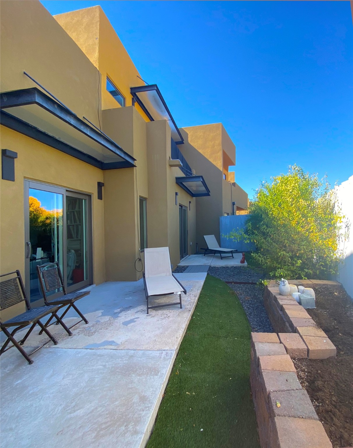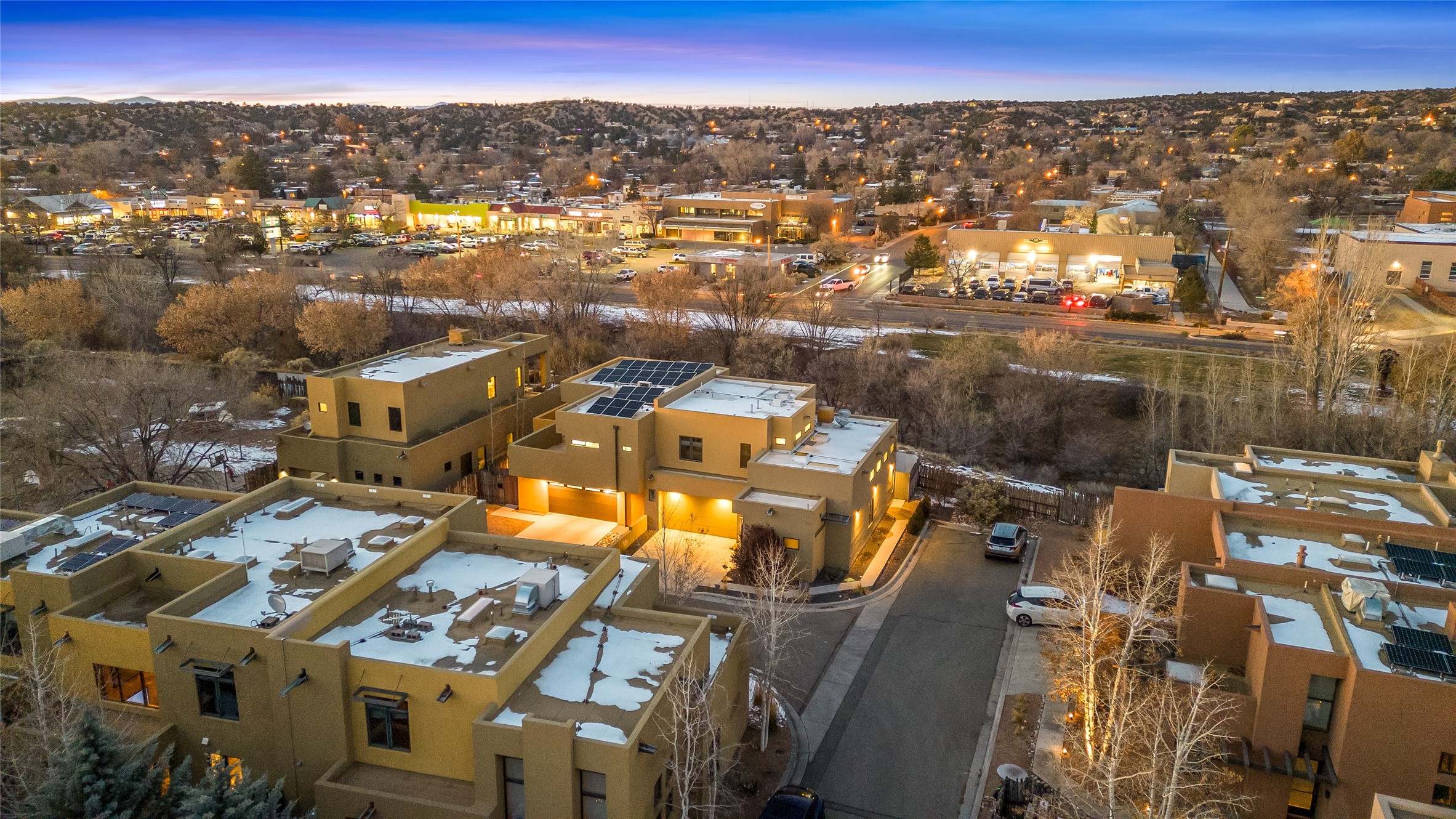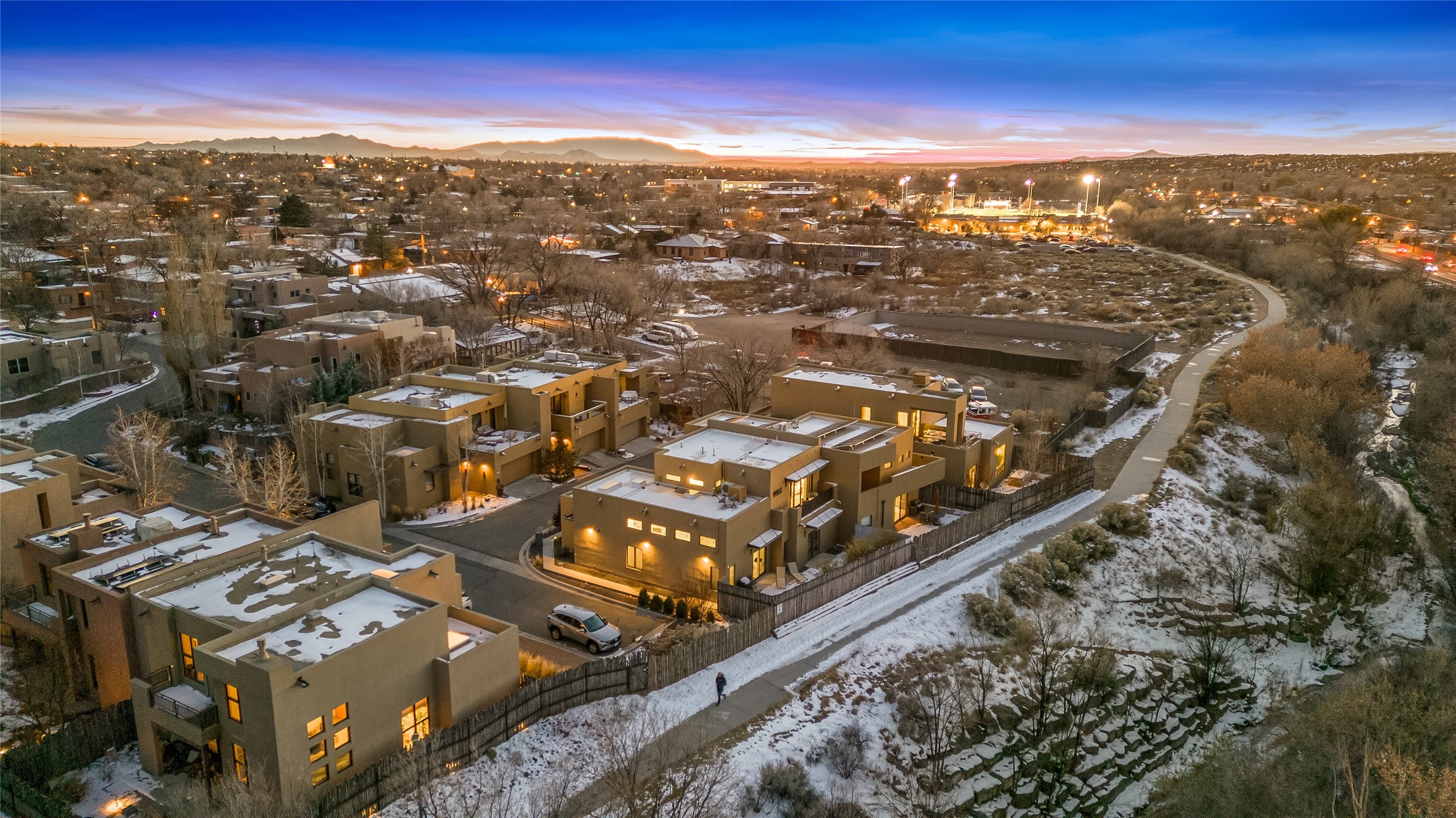 Experience exceptionally stylish Santa Fe living in this contemporary, two-story, 1,914-square-foot condominium that was custom-built for the current owner in 2018. Located in the private, no outlet drive in the desirable Rio Sendero Condo Complex, this 3 bedroom, 3 bath home is nestled against the Santa Fe River Trail that accesses Downtown (1.2 miles) and closely connects to two of Santa Fe's most valued areas: The Santa Fe Railyard Area with its world-class galleries, and the vibrant, ever-popular Santa Fe Farmers Market (1.1 miles). For daily needs, the Solano Shopping Center with a co-op grocery store is .05 miles away. At home, the open-plan kitchen and living areas boast beautiful 14-foot ceilings and private patio access. In the kitchen, you will enjoy gathering around a large kitchen island surrounded by luxury custom cabinetry. The downstairs bedroom (currently being used as an artist studio) also opens to a private outdoor space. Upstairs, the larger of the two bedrooms (both ensuite) sports a modern metal balcony with mountain and river views. This eco-friendly Silver-rated Green home features radiant floor heat and 2 Mitsubishi mini-splits units for optimal temperature control. Refined white plaster walls, custom artist-designed lighting, Pella windows, and light grey tile flooring throughout speak of quality construction and remarkable attention to detail. Too many upgrades to list here, see the Buyer Instructions for more features. This end unit is a must-see! Pre-inspected. Neither Listing Brokers nor Seller warrants the square footage of the home or lot. If the size of the home or lot is of material consideration to the Buyer, then the Buyer should have them measured. Tax Levy is from the Assessor website.