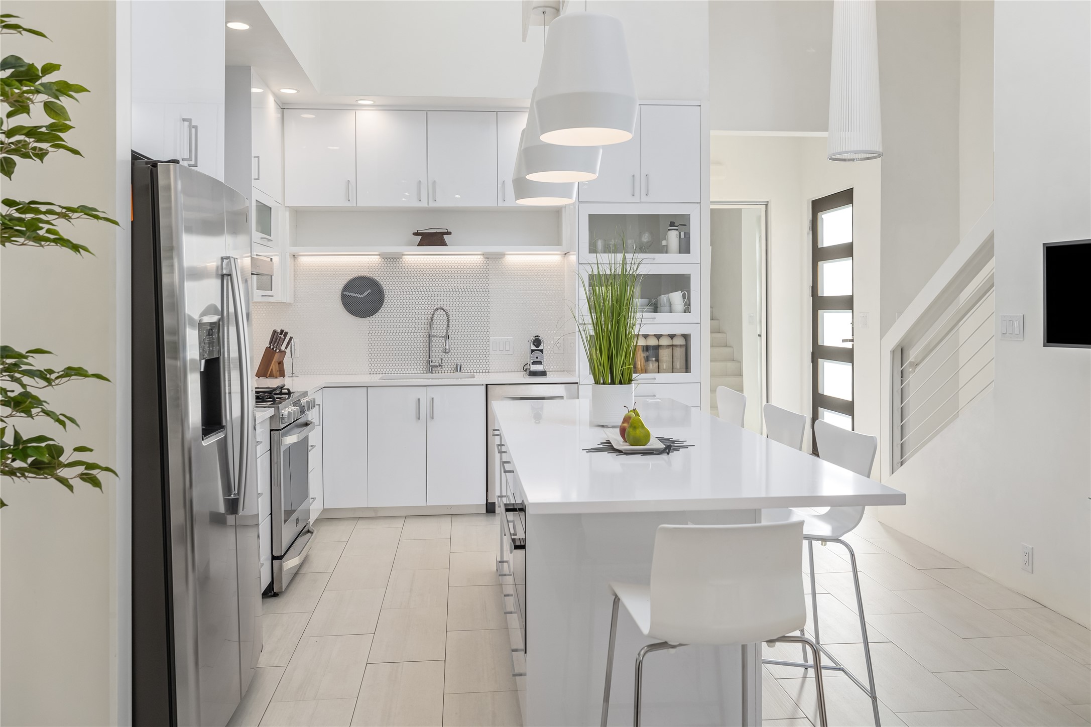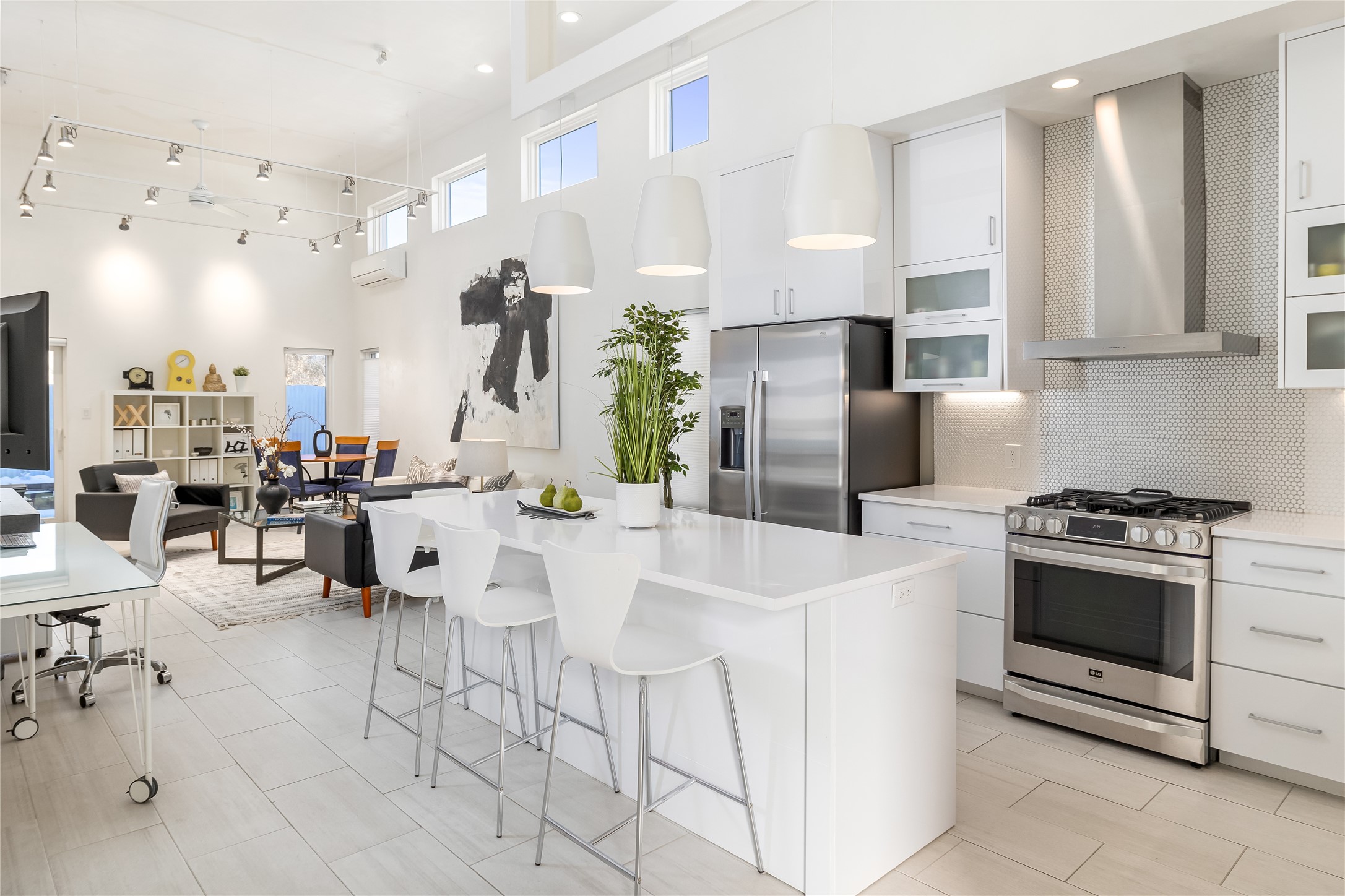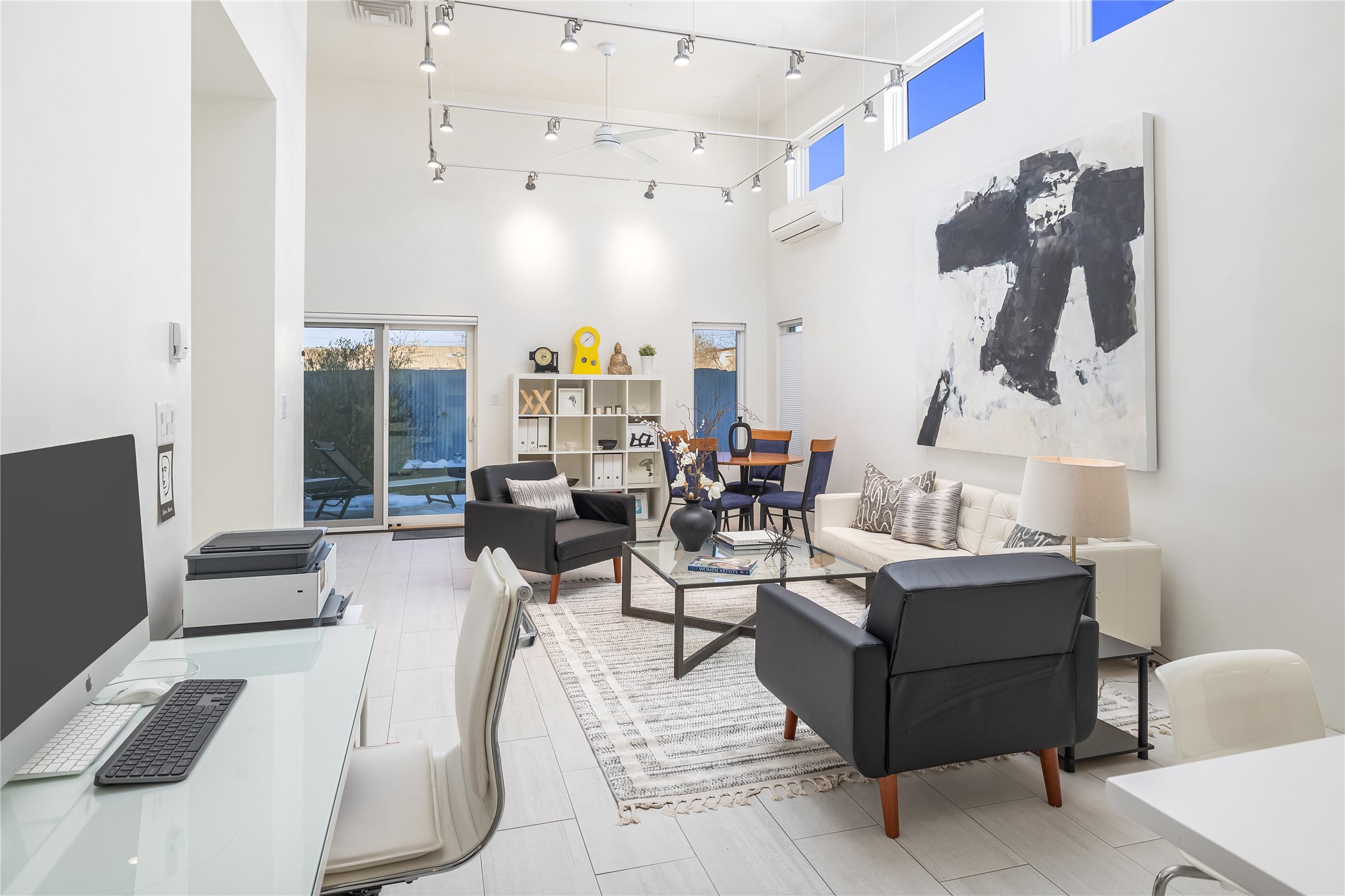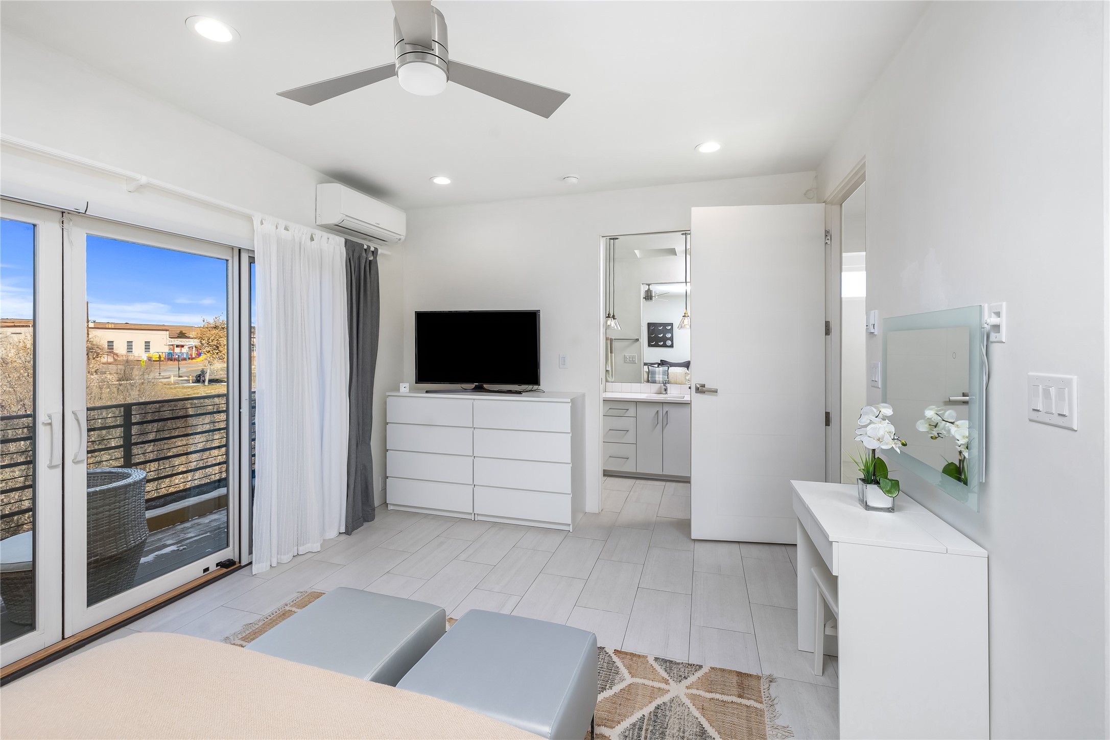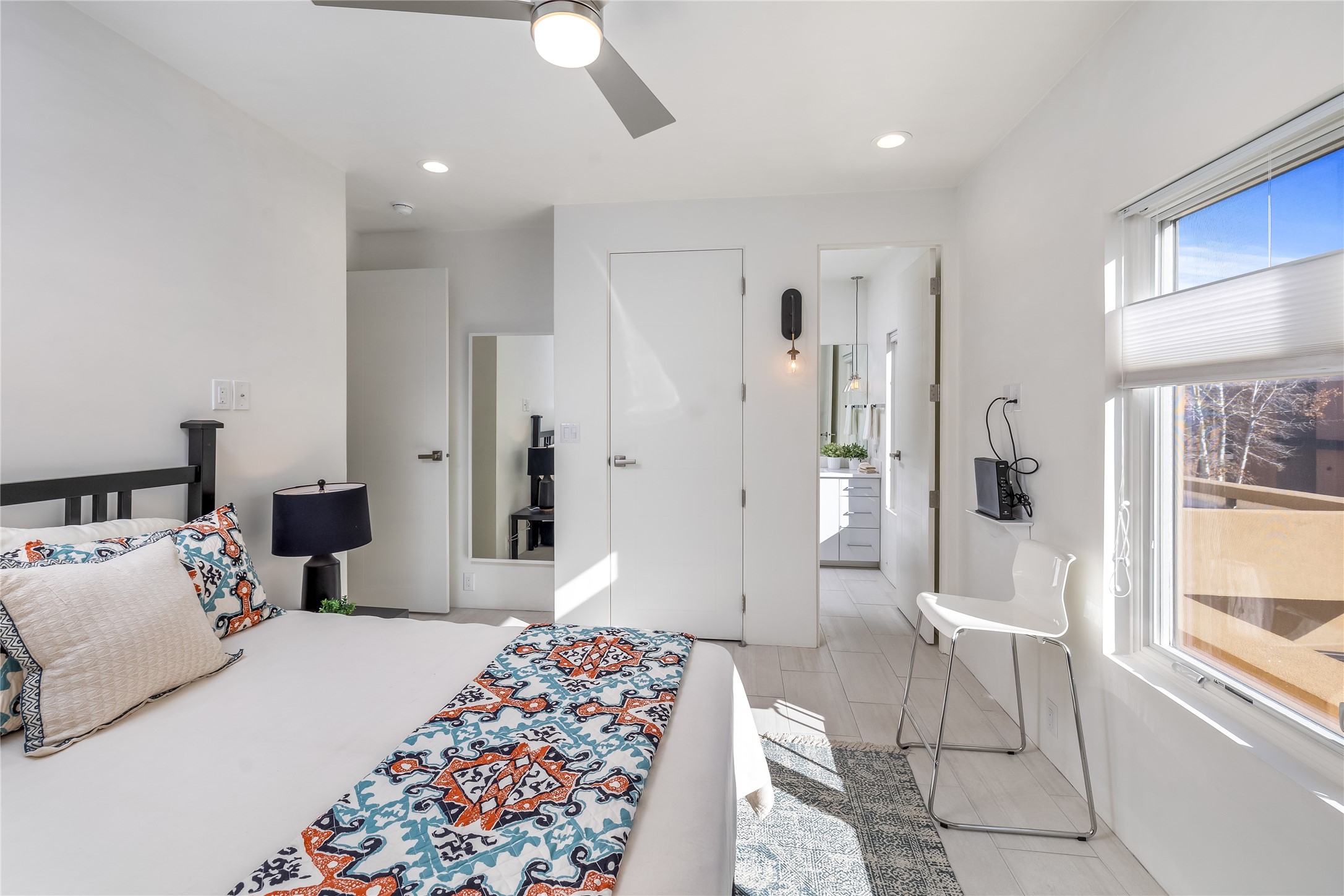Experience exceptionally stylish Santa Fe living in this contemporary, two-story, 1,914-square-foot condominium that was custom-built for the current owner in 2018. Located in the private, no outlet drive in the desirable Rio Sendero Condo Complex, this 3 bedroom, 3 bath home is nestled against the Santa Fe River Trail that accesses Downtown (1.2 miles) and closely connects to two of Santa Fe's most valued areas: The Santa Fe Railyard Area with its world-class galleries, and the vibrant, ever-popular Santa Fe Farmers Market (1.1 miles). For daily needs, the Solano Shopping Center with a co-op grocery store is .05 miles away. At home, the open-plan kitchen and living areas boast beautiful 14-foot ceilings and private patio access. In the kitchen, you will enjoy gathering around a large kitchen island surrounded by luxury custom cabinetry. The downstairs bedroom (currently being used as an artist studio) also opens to a private outdoor space. Upstairs, the larger of the two bedrooms (both ensuite) sports a modern metal balcony with mountain and river views. This eco-friendly Silver-rated Green home features radiant floor heat and 2 Mitsubishi mini-splits units for optimal temperature control. Refined white plaster walls, custom artist-designed lighting, Pella windows, and light grey tile flooring throughout speak of quality construction and remarkable attention to detail. Too many upgrades to list here, see the Buyer Instructions for more features. This end unit is a must-see! Pre-inspected. Neither Listing Brokers nor Seller warrants the square footage of the home or lot. If the size of the home or lot is of material consideration to the Buyer, then the Buyer should have them measured. Tax Levy is from the Assessor website.