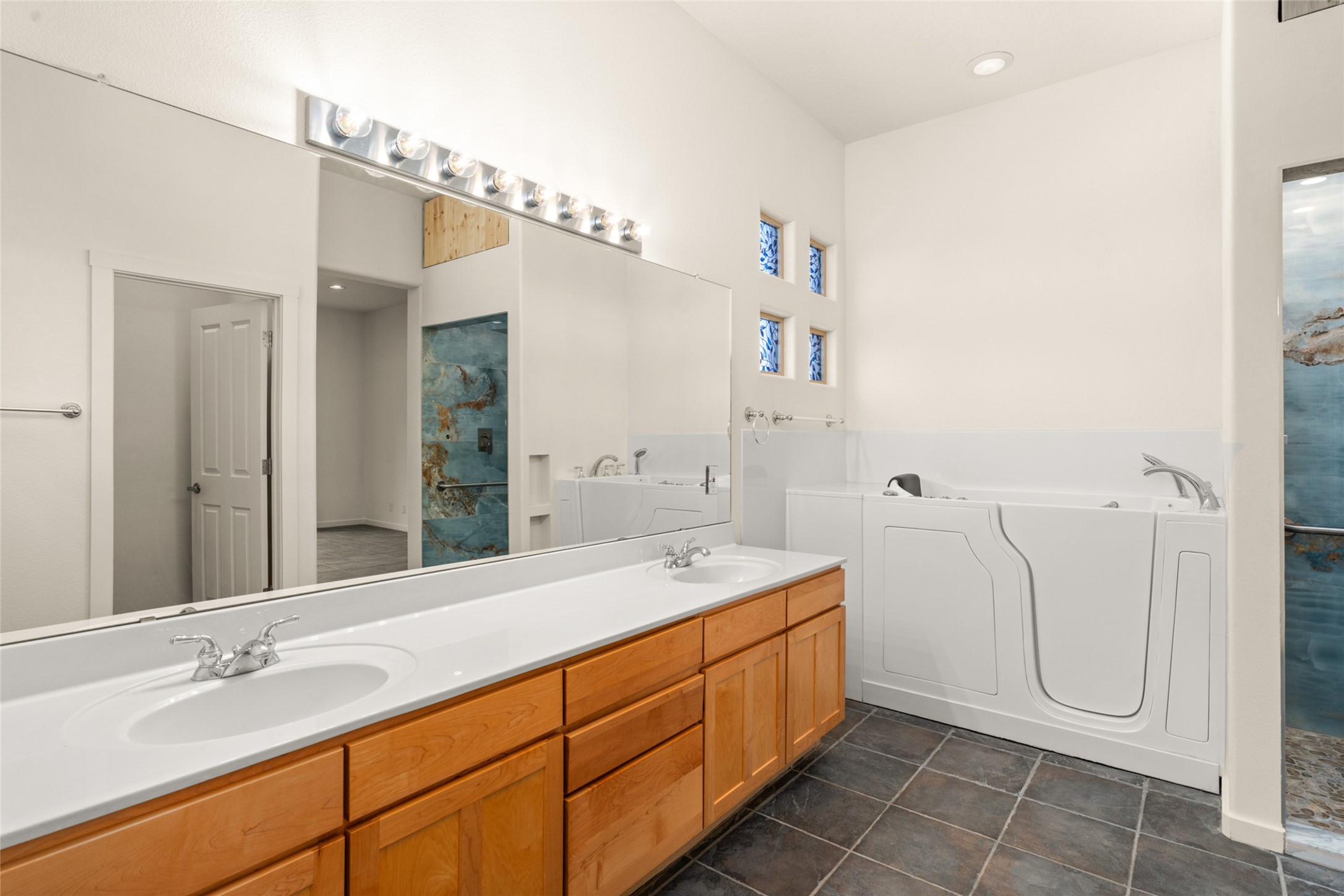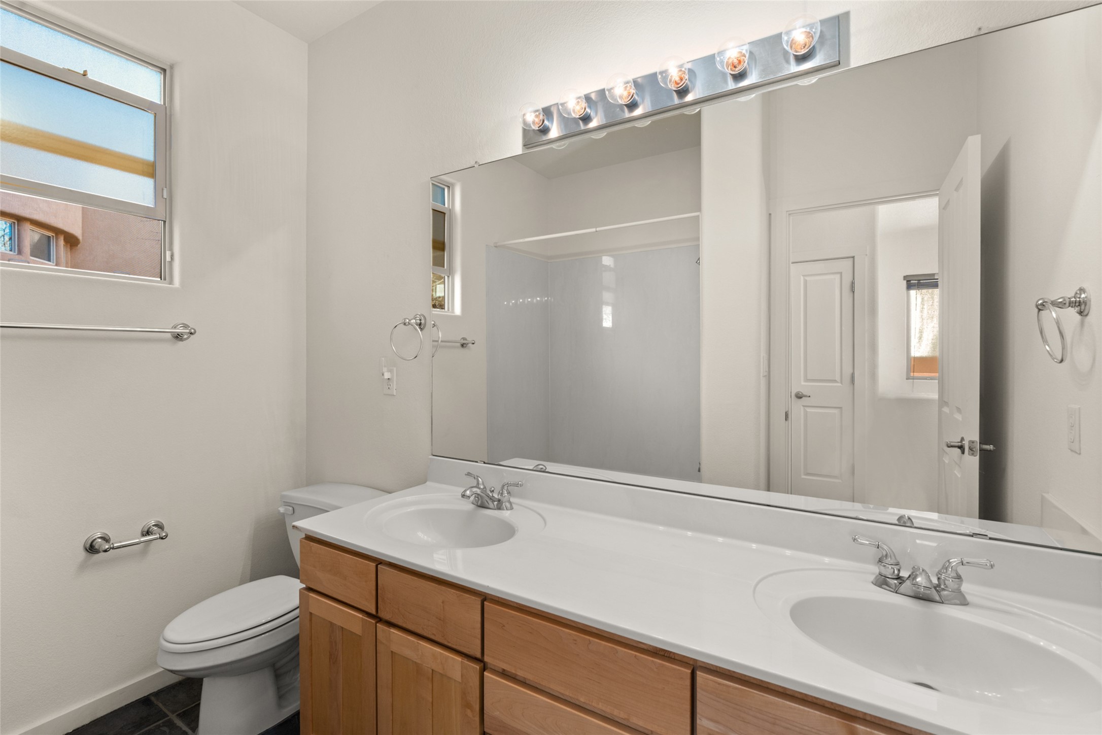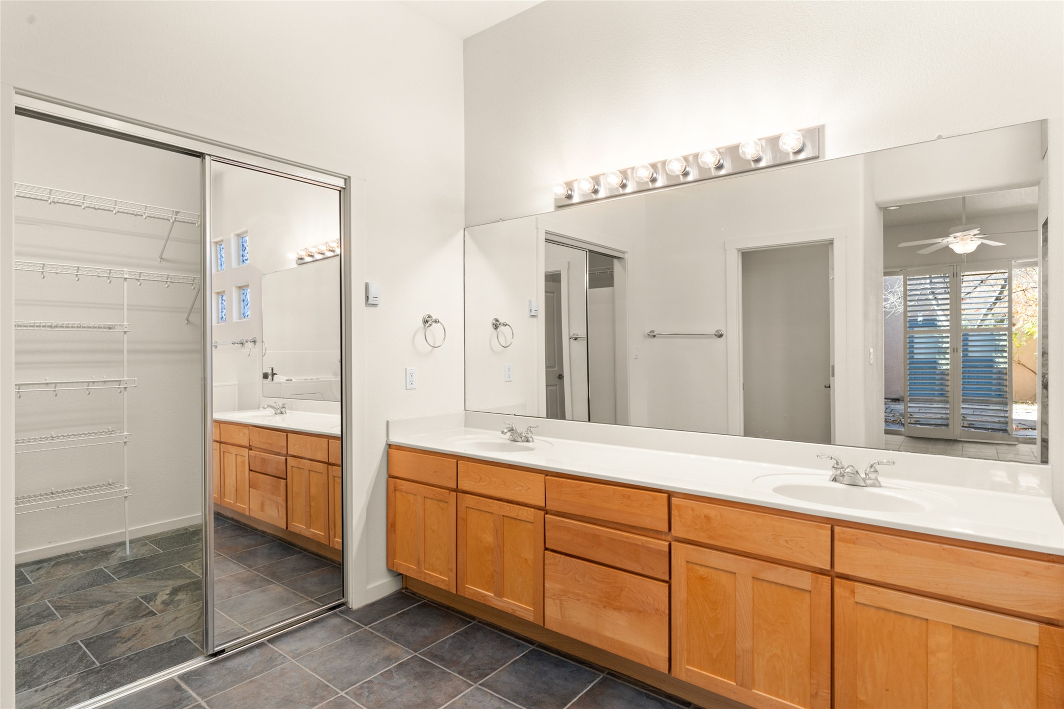 Set on a corner lot with its twin benefits of extra light and land, this bright, beautiful Luminaria model is a cut above. Custom-built wood display shelves, slate-look tiles and a new coat of creamy paint throughout create a feeling of refinement. The dazzling new steam shower and colorful, contemporary lighting speak to the seller's whimsical, artistic eye. Carpet in the two back bedrooms--the only rooms without hard-surface flooring--is brand new. A subtle ramp to the side courtyard and walk-in shower make this single-level home a bit more welcome for aging in place. Located in much-prized Windmill Ridge, this lovely home is an elegant treasure close to Rancho Viejo's many parks and walking trails.