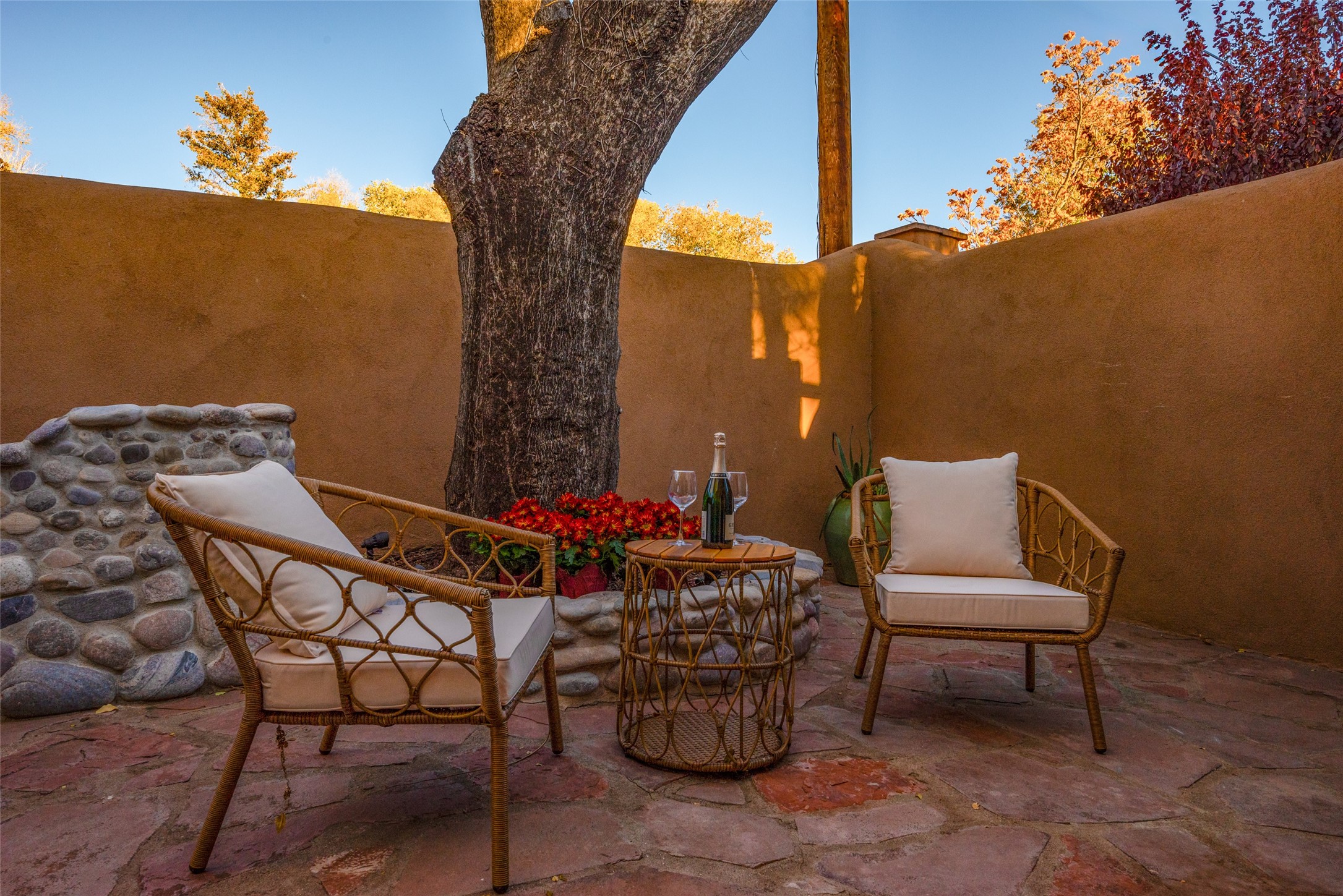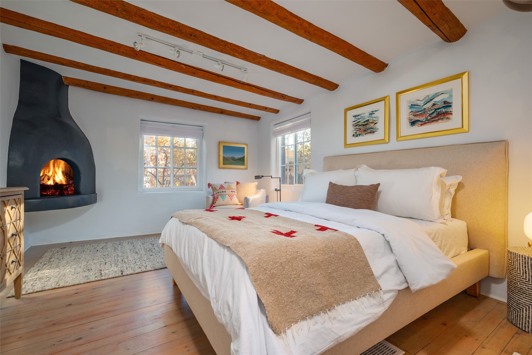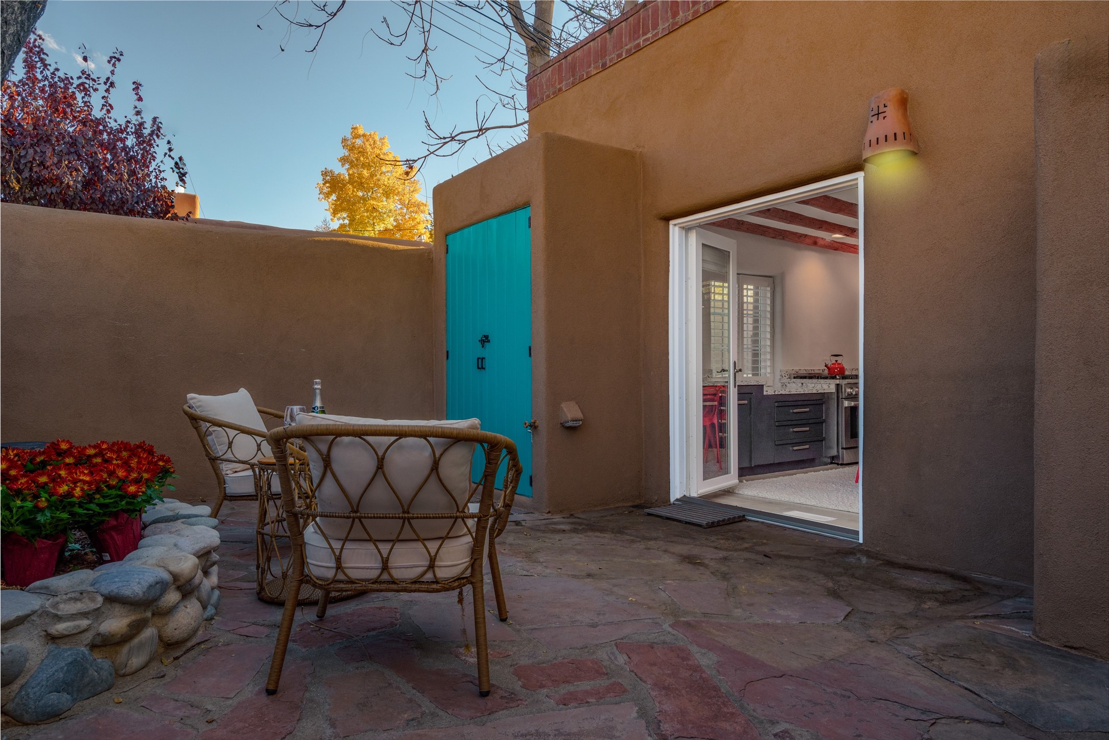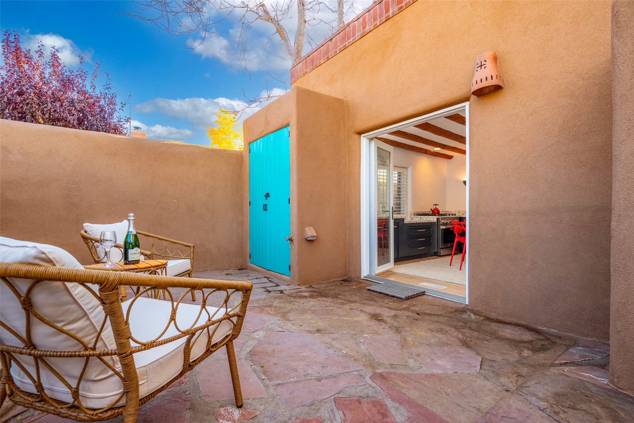 Charming retreat in the Heart of Santa Fe! Welcome to 840 Palace Ave #6, a hidden gem nestled in the heart of historic Santa Fe. This enchanting residence combines Southwestern charm with modern comfort, offering a unique opportunity to experience the rich cultural tapestry of this vibrant city. ?? Prime Location: Situated on the iconic Palace Avenue, this home provides easy access to Santa Fe's renowned attractions, including the Plaza, museums, art galleries, and exceptional dining options. ??? Cozy Living Spaces: Step inside to discover warm and inviting living spaces adorned with authentic Santa Fe style. Vigas, and 2 fireplaces create a cozy ambiance perfect for relaxation. Gourmet Kitchen: The well-appointed kitchen boasts modern appliances, ample counter space, and a charming breakfast nook. French doors opening onto the spacious courtyard provides space for entertaining or private dining ?? Retreat to the peaceful bedroom, natural light and thoughtful design elements create a soothing atmosphere. Private Courtyard: Step outside to your private courtyard, a secluded oasis where you can enjoy the beauty of Santa Fe's sunny days or stargaze under the New Mexico night sky. Perfect for entertaining or simply unwinding. River rock walls and flagstone Convenience: Assigned tandem parking for 2 cars directly outside Unit #6. Santa Fe, with its distinctive adobe architecture and vibrant arts scene, is a city like no other. Immerse yourself in the rich cultural heritage, from historic landmarks to world-class galleries. Indulge in the flavors of Southwestern cuisine and experience the warmth of the community that makes Santa Fe a truly special place to call home. Don't miss the opportunity to own a piece of Santa Fe's history and create your own story at 840 Palace Ave #6. Schedule a showing today and step into a world where tradition meets modern living.