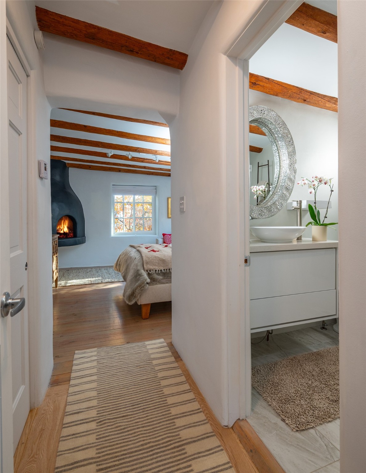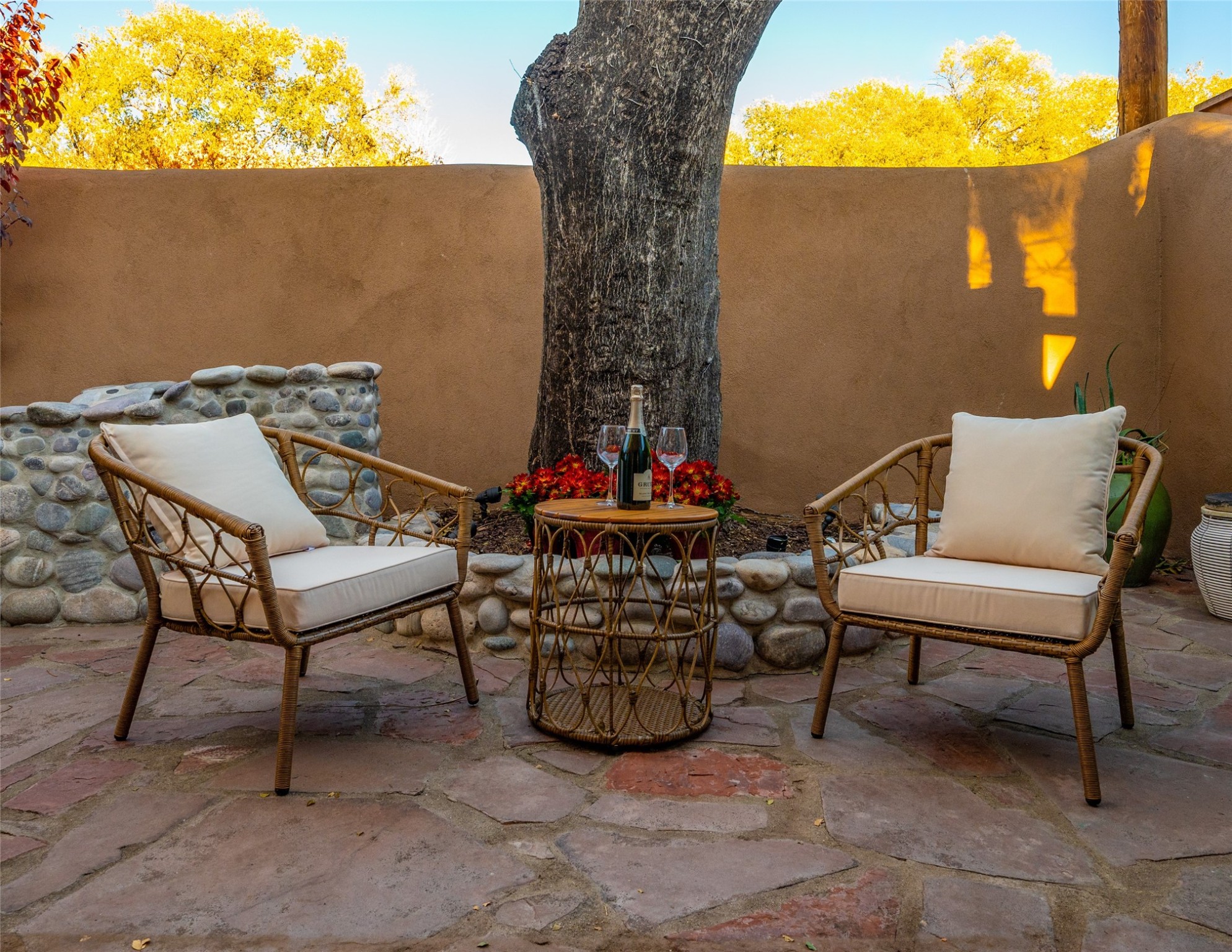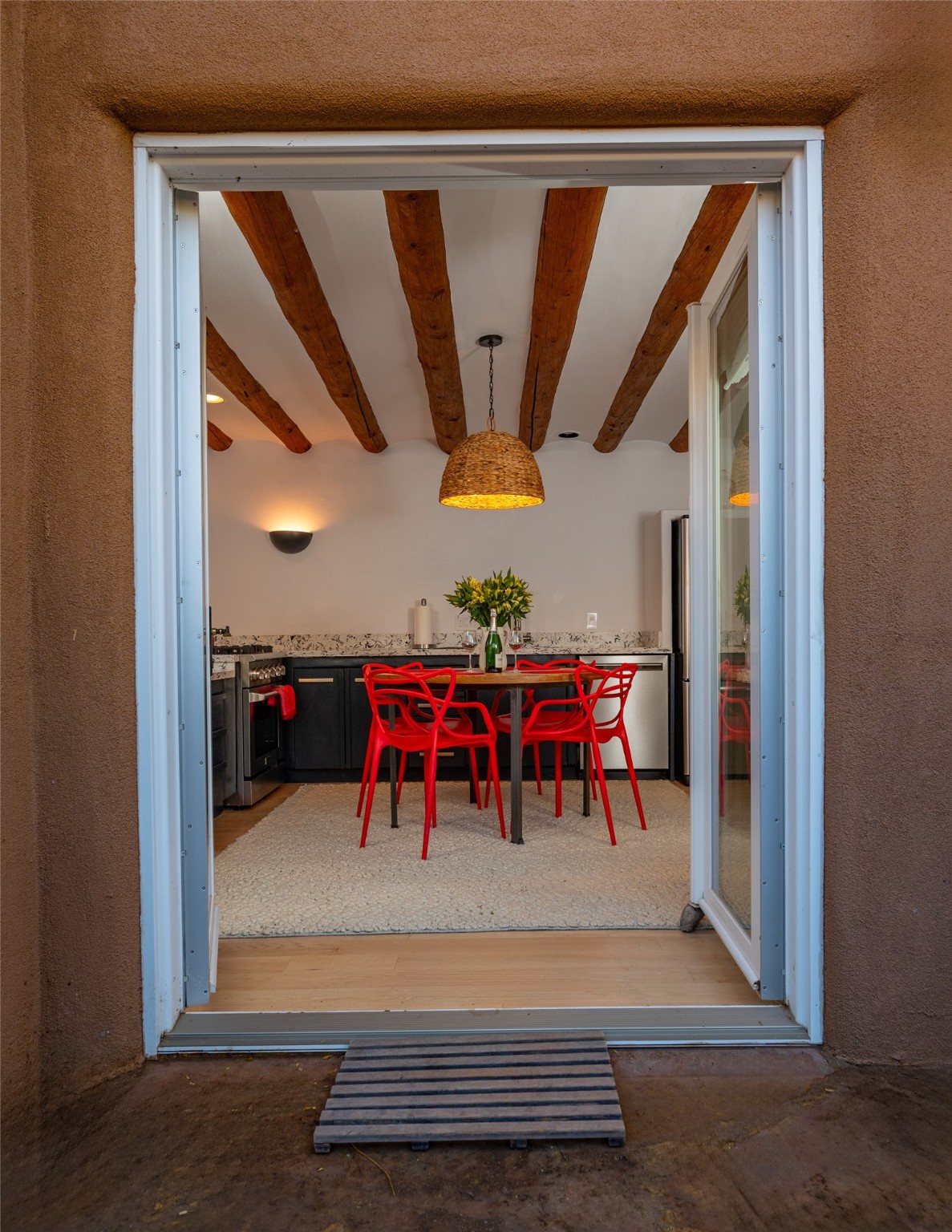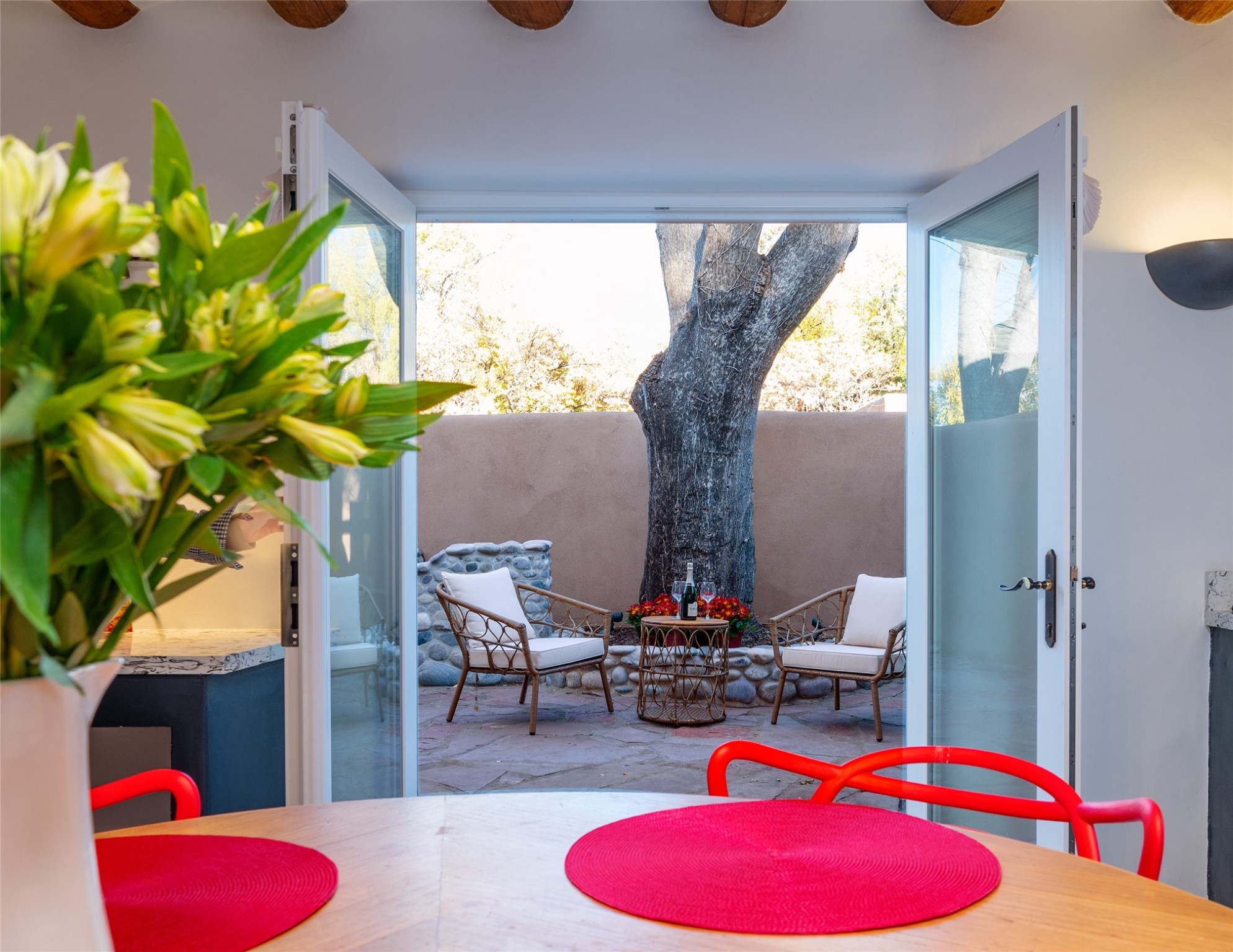 Charming retreat in the Heart of Santa Fe! Welcome to 840 Palace Ave #6, a hidden gem nestled in the heart of historic Santa Fe. This enchanting residence combines Southwestern charm with modern comfort, offering a unique opportunity to experience the rich cultural tapestry of this vibrant city. ?? Prime Location: Situated on the iconic Palace Avenue, this home provides easy access to Santa Fe's renowned attractions, including the Plaza, museums, art galleries, and exceptional dining options. ??? Cozy Living Spaces: Step inside to discover warm and inviting living spaces adorned with authentic Santa Fe style. Vigas, and 2 fireplaces create a cozy ambiance perfect for relaxation. Gourmet Kitchen: The well-appointed kitchen boasts modern appliances, ample counter space, and a charming breakfast nook. French doors opening onto the spacious courtyard provides space for entertaining or private dining ?? Retreat to the peaceful bedroom, natural light and thoughtful design elements create a soothing atmosphere. Private Courtyard: Step outside to your private courtyard, a secluded oasis where you can enjoy the beauty of Santa Fe's sunny days or stargaze under the New Mexico night sky. Perfect for entertaining or simply unwinding. River rock walls and flagstone Convenience: Assigned tandem parking for 2 cars directly outside Unit #6. Santa Fe, with its distinctive adobe architecture and vibrant arts scene, is a city like no other. Immerse yourself in the rich cultural heritage, from historic landmarks to world-class galleries. Indulge in the flavors of Southwestern cuisine and experience the warmth of the community that makes Santa Fe a truly special place to call home. Don't miss the opportunity to own a piece of Santa Fe's history and create your own story at 840 Palace Ave #6. Schedule a showing today and step into a world where tradition meets modern living.