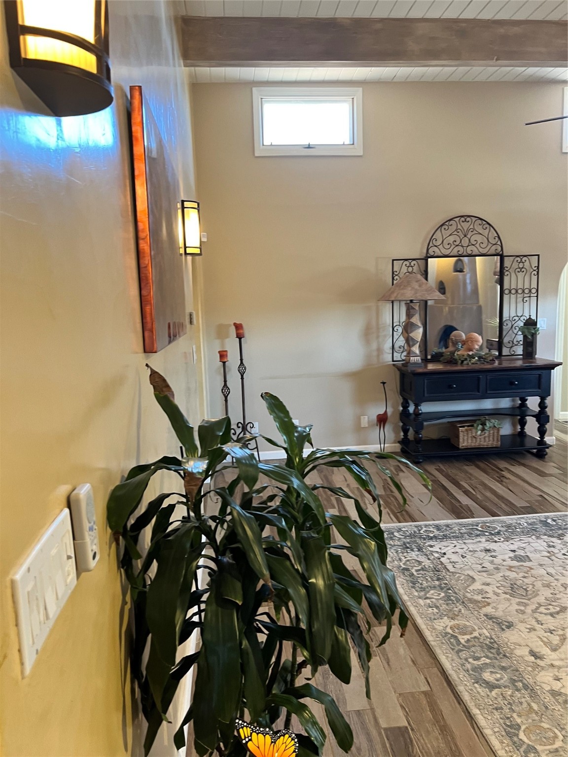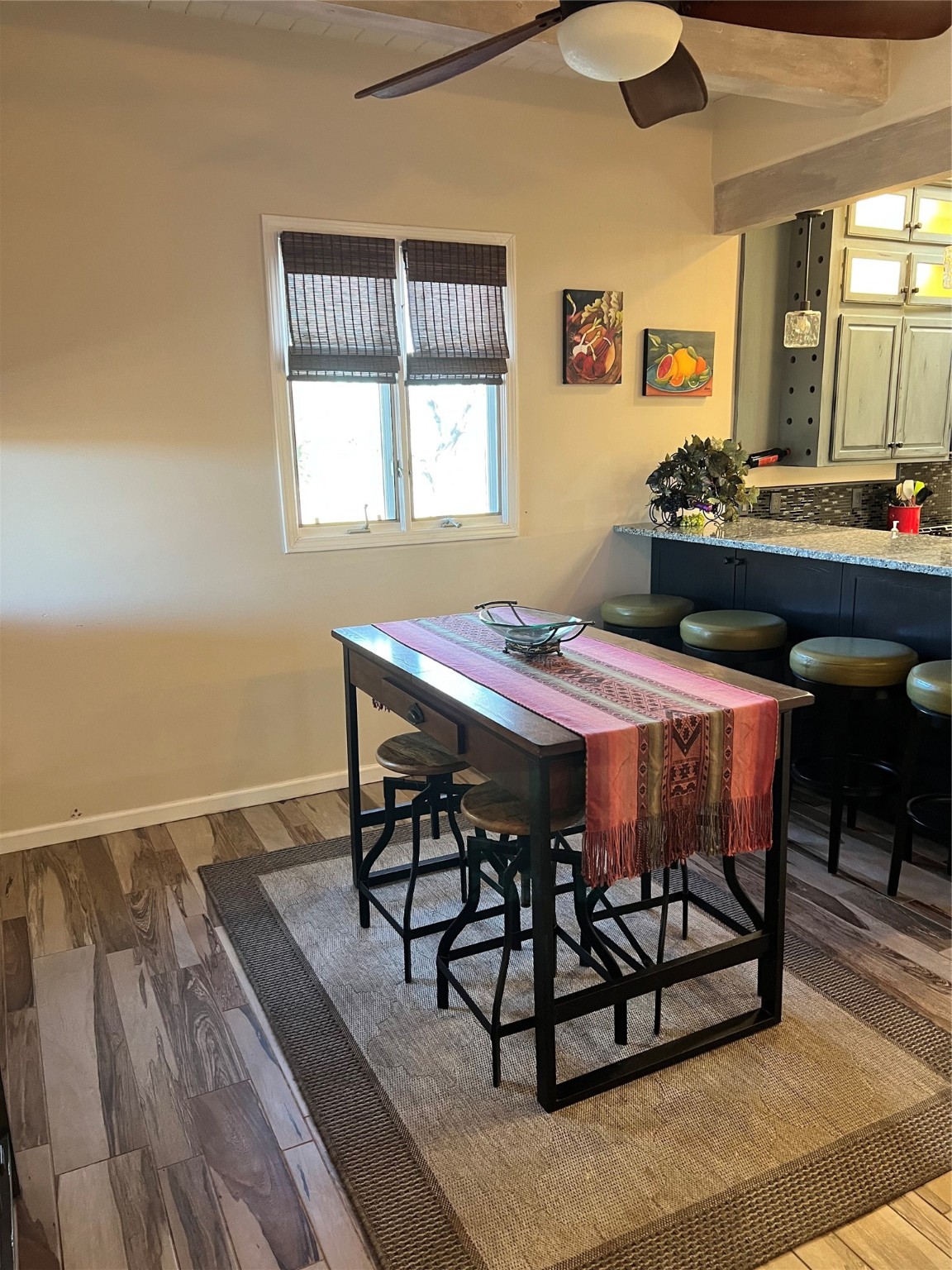 This is a pride of the owner. Well taken care of house that makes everyone feel at home once they walk in the house. Nice walled and gated side courtyard with aspens, flower gardens and rock work. This home has high ceilings, carpet, great bedroom separation, wood tile flooring, a kiva fireplace with beams and TandG, Sangre de Cristo and Jemez views.