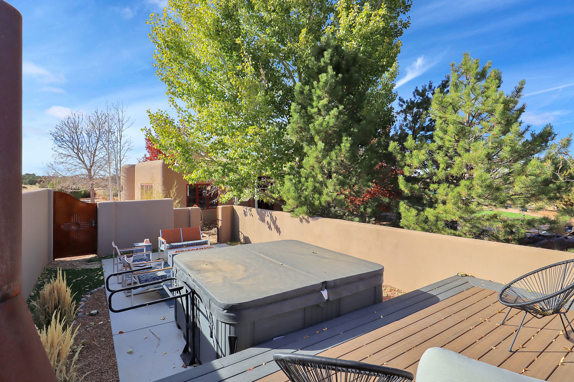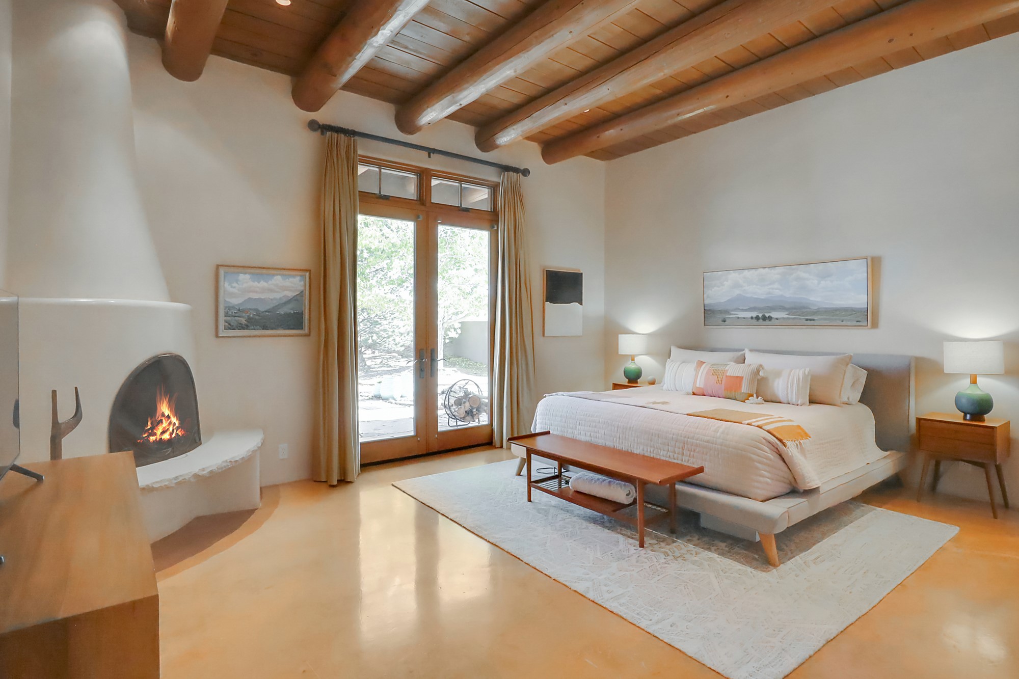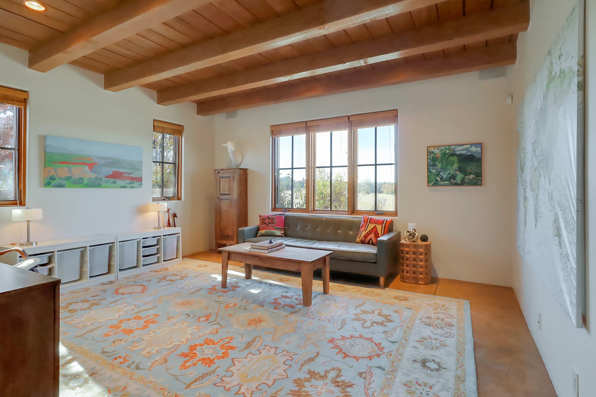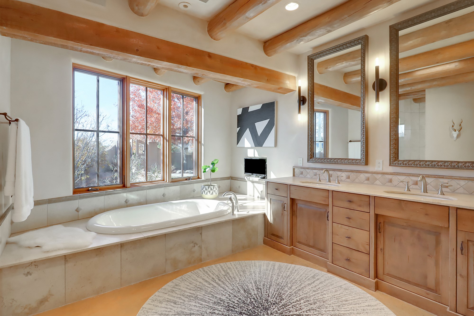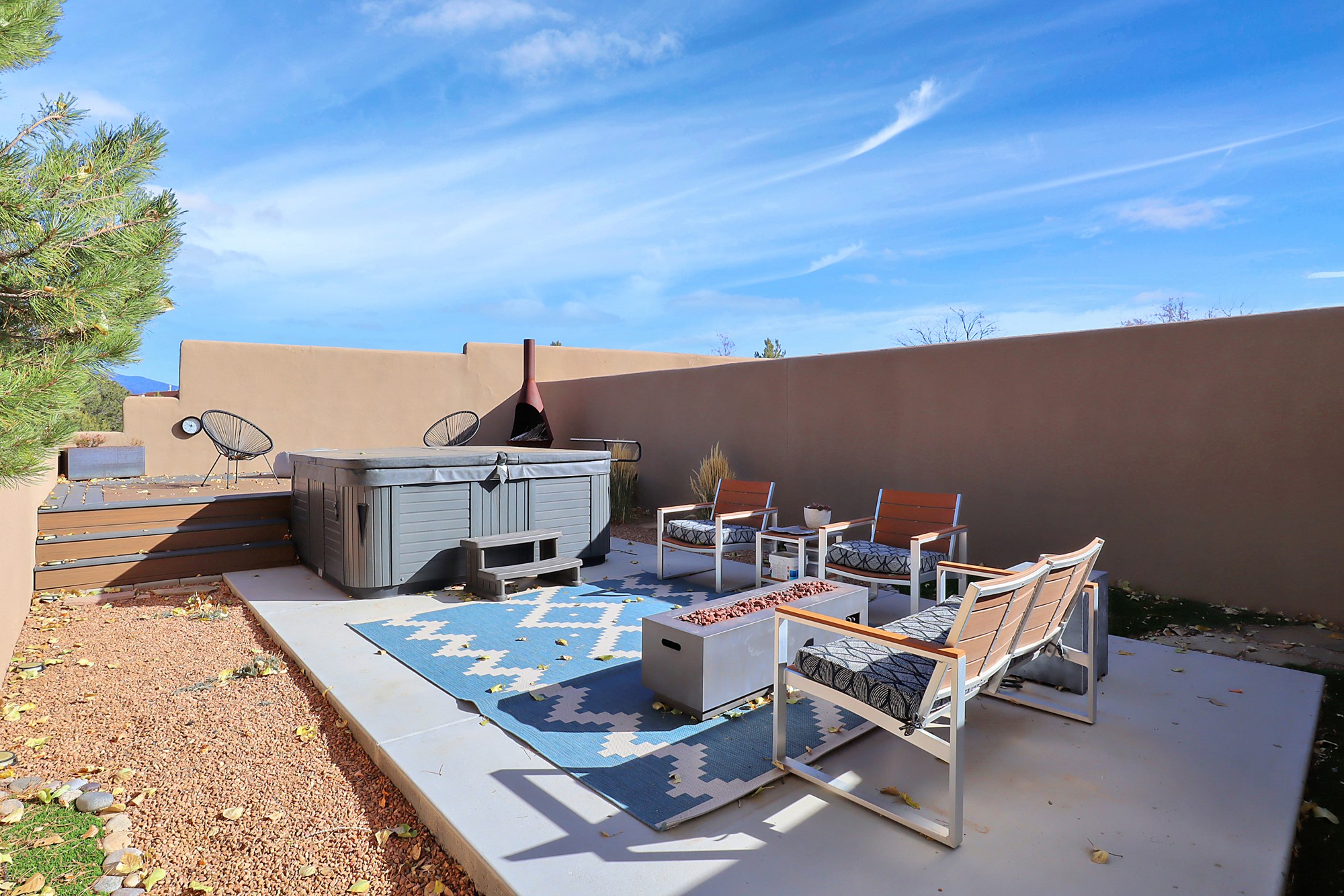 Discover an air of sophistication in this 4-bedroom, 4.5-bathroom residence spanning over 4,000 sq ft, including an executive office and charming attached casita, all nestled on 3 .5 acres in the serene enclave of Tierra Preciosa. Magnificent views of the Sangre de Cristo and Jemez mountains add a touch of splendor throughout the home. A spacious portal beckons you to the backyard oasis with an outdoor kitchen and fireplace that provides an idyllic setting for stylish and comfortable entertaining. Inside, the living room and master bedroom fireplaces, coupled with vigas and beams, infuse the ambiance with warmth and charm. The master suite boasts an adjoining flexible living space with a wet bar, complemented by a spacious master bath and walk-in closet. The generously appointed chef's kitchen, equipped with high-end appliances and a built-in hutch, transforms hosting into a delightful experience. The attached casita includes a full bath and a kiva fireplace to graciously accommodate visitors or serve as an ideal work-at-home space. Throughout the home, a harmonious blend of stone and natural wood textures enhances the overall design, creating an aesthetic of timeless luxury with modern features. Practical amenities abound, including a three-car heated garage, spacious closets, lighted niches, a well-equipped laundry room with plenty of storage and a sink, a walk-in pantry, ensuite bathrooms in every bedroom, integrated stereo speakers throughout. Radiant in-floor heating and central A/C provide year-round comfort. Notably, there are no HOA dues, and road maintenance is handled by a dedicated REUMA board.