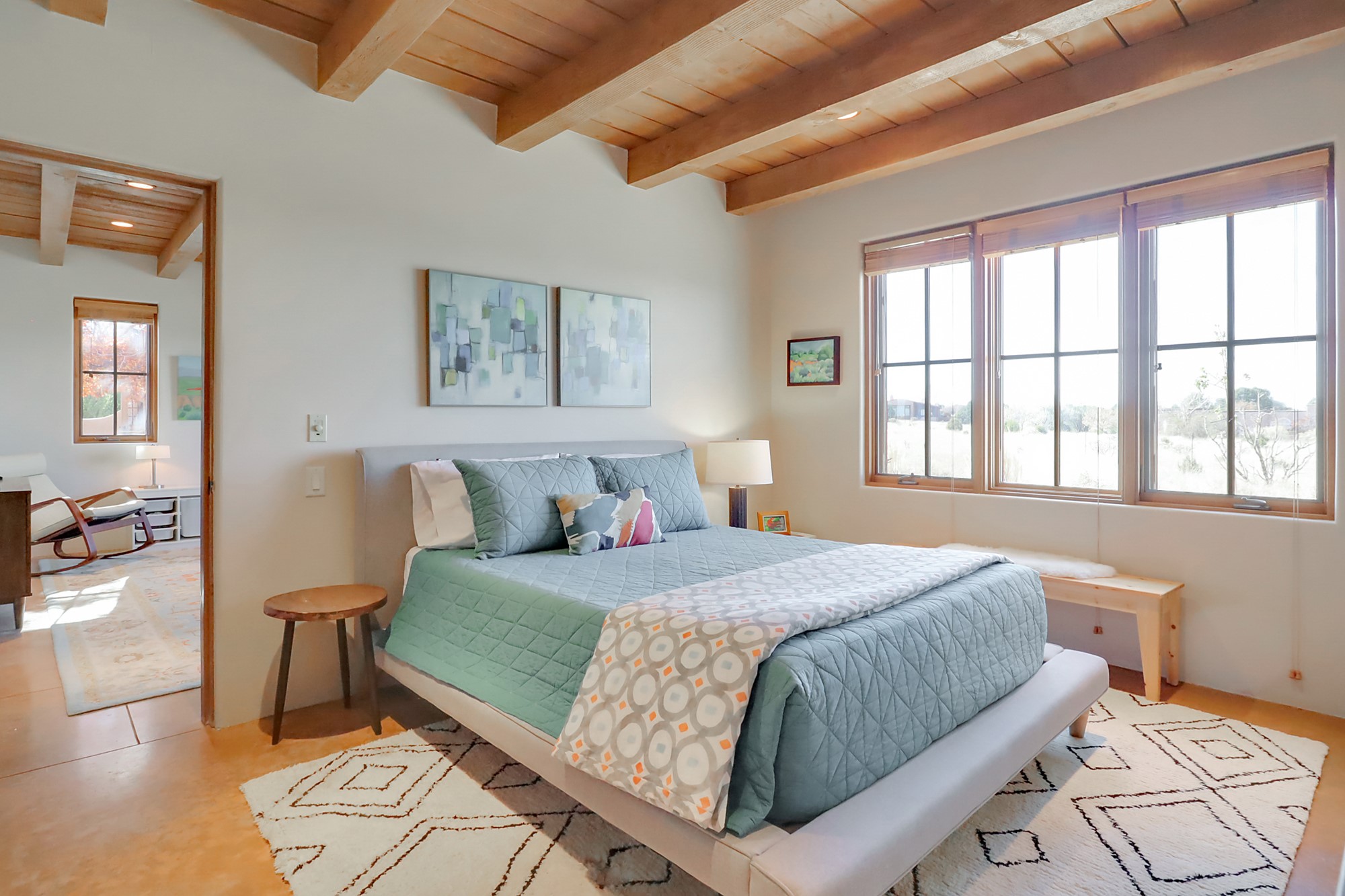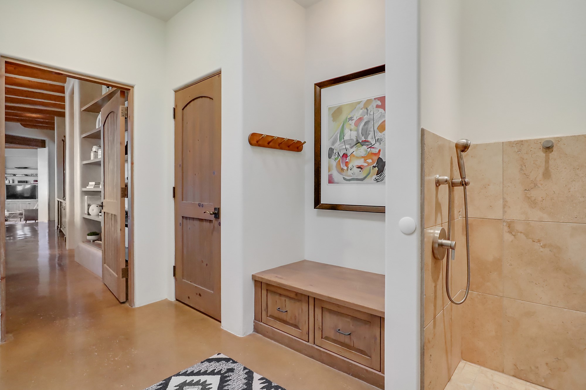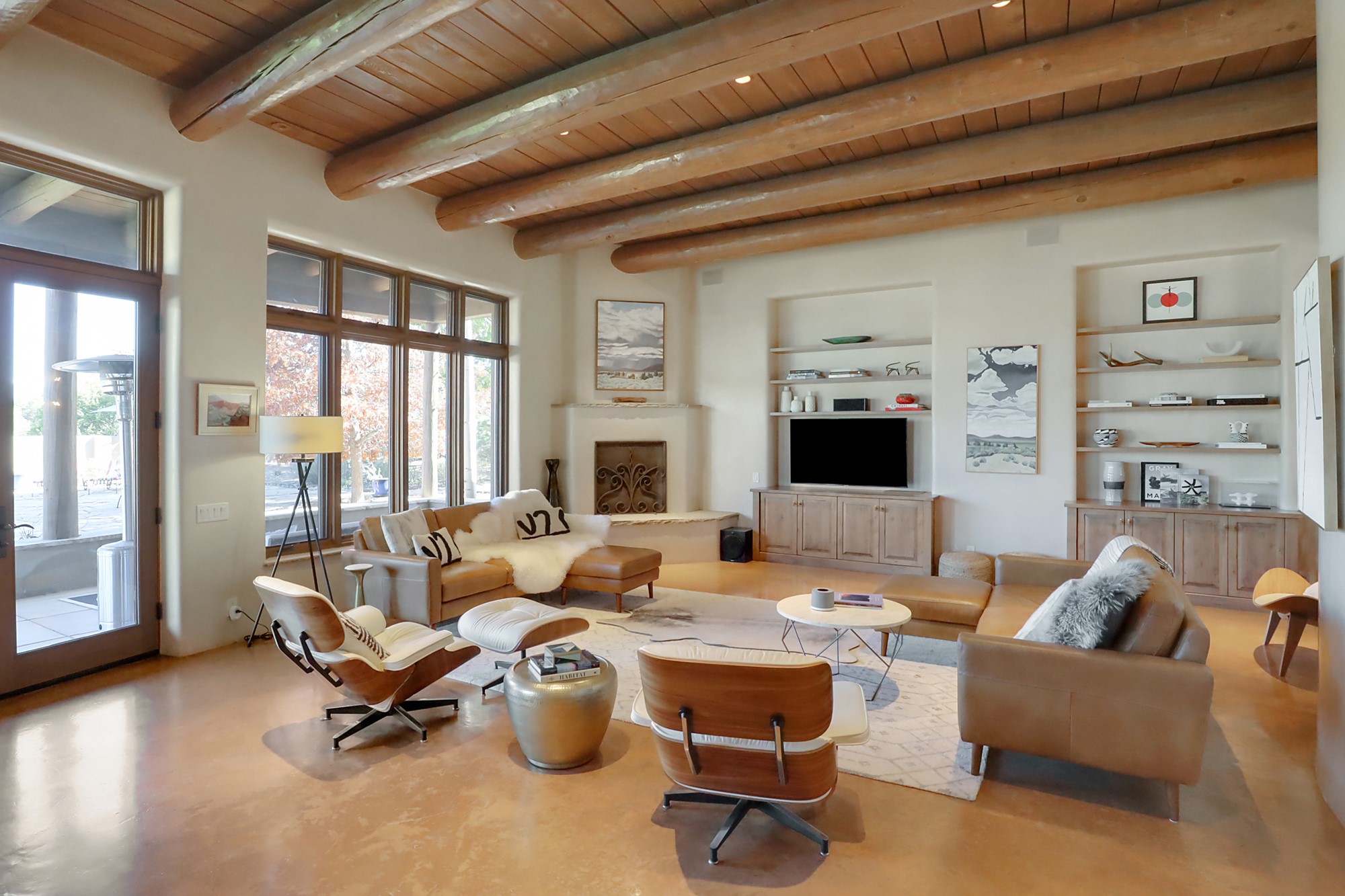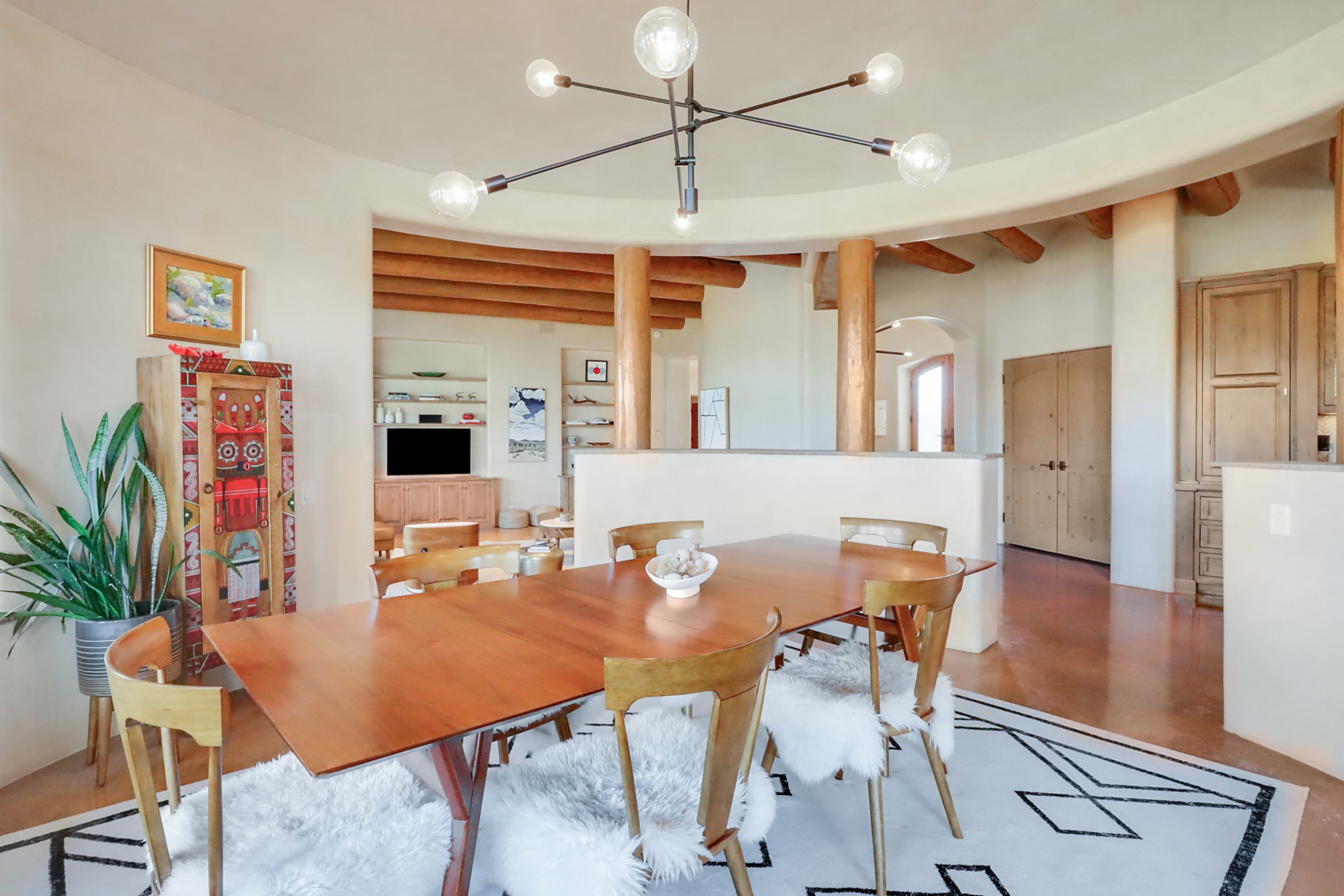 Discover an air of sophistication in this 4-bedroom, 4.5-bathroom residence spanning over 4,000 sq ft, including an executive office and charming attached casita, all nestled on 3 .5 acres in the serene enclave of Tierra Preciosa. Magnificent views of the Sangre de Cristo and Jemez mountains add a touch of splendor throughout the home. A spacious portal beckons you to the backyard oasis with an outdoor kitchen and fireplace that provides an idyllic setting for stylish and comfortable entertaining. Inside, the living room and master bedroom fireplaces, coupled with vigas and beams, infuse the ambiance with warmth and charm. The master suite boasts an adjoining flexible living space with a wet bar, complemented by a spacious master bath and walk-in closet. The generously appointed chef's kitchen, equipped with high-end appliances and a built-in hutch, transforms hosting into a delightful experience. The attached casita includes a full bath and a kiva fireplace to graciously accommodate visitors or serve as an ideal work-at-home space. Throughout the home, a harmonious blend of stone and natural wood textures enhances the overall design, creating an aesthetic of timeless luxury with modern features. Practical amenities abound, including a three-car heated garage, spacious closets, lighted niches, a well-equipped laundry room with plenty of storage and a sink, a walk-in pantry, ensuite bathrooms in every bedroom, integrated stereo speakers throughout. Radiant in-floor heating and central A/C provide year-round comfort. Notably, there are no HOA dues, and road maintenance is handled by a dedicated REUMA board.