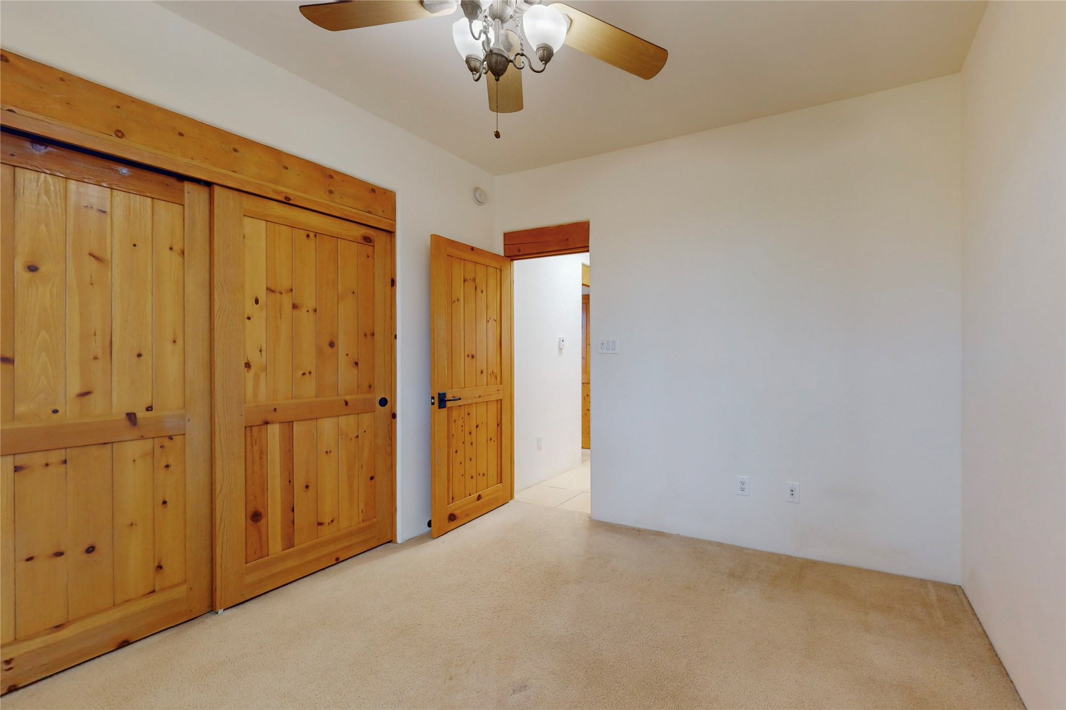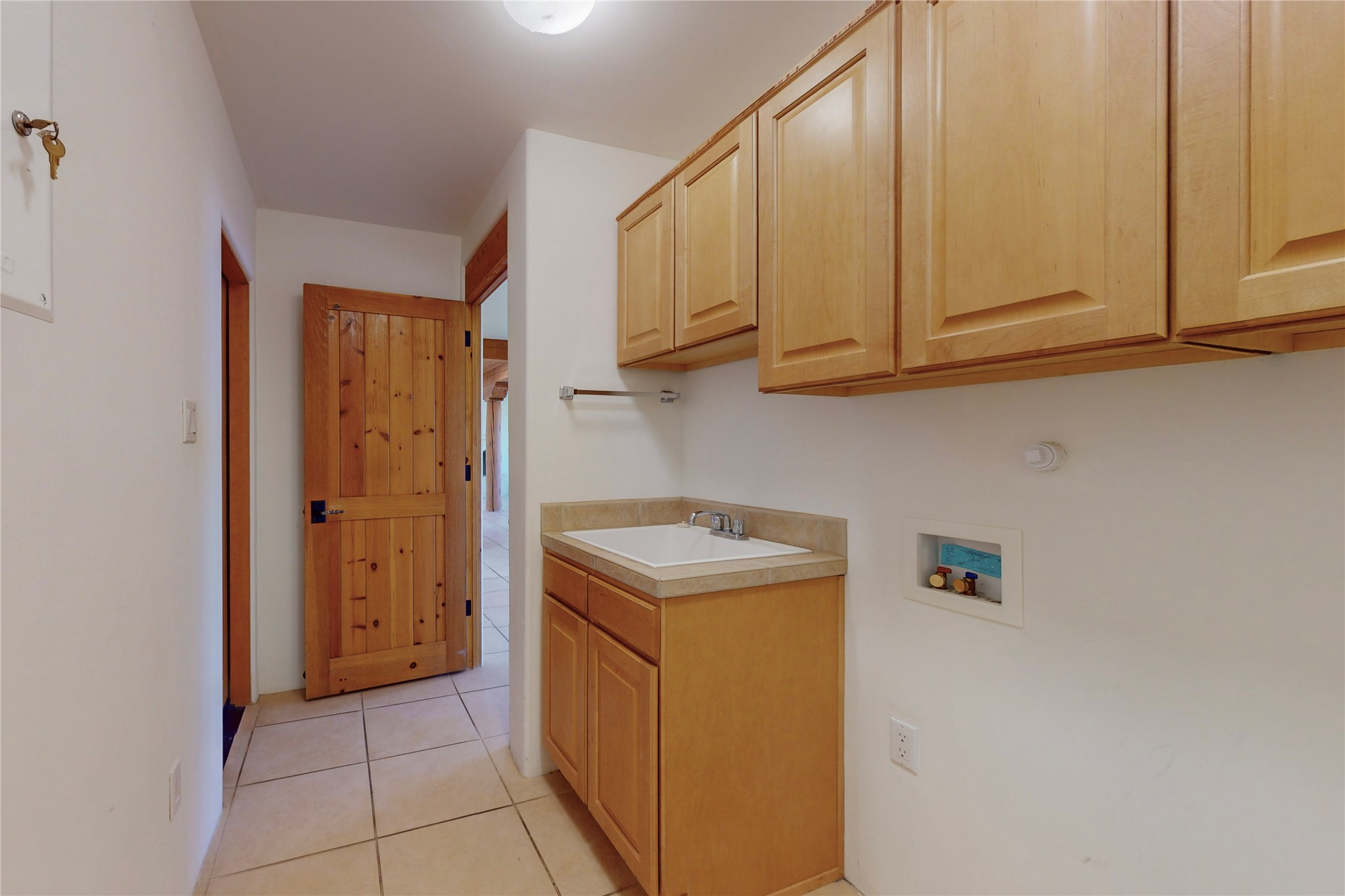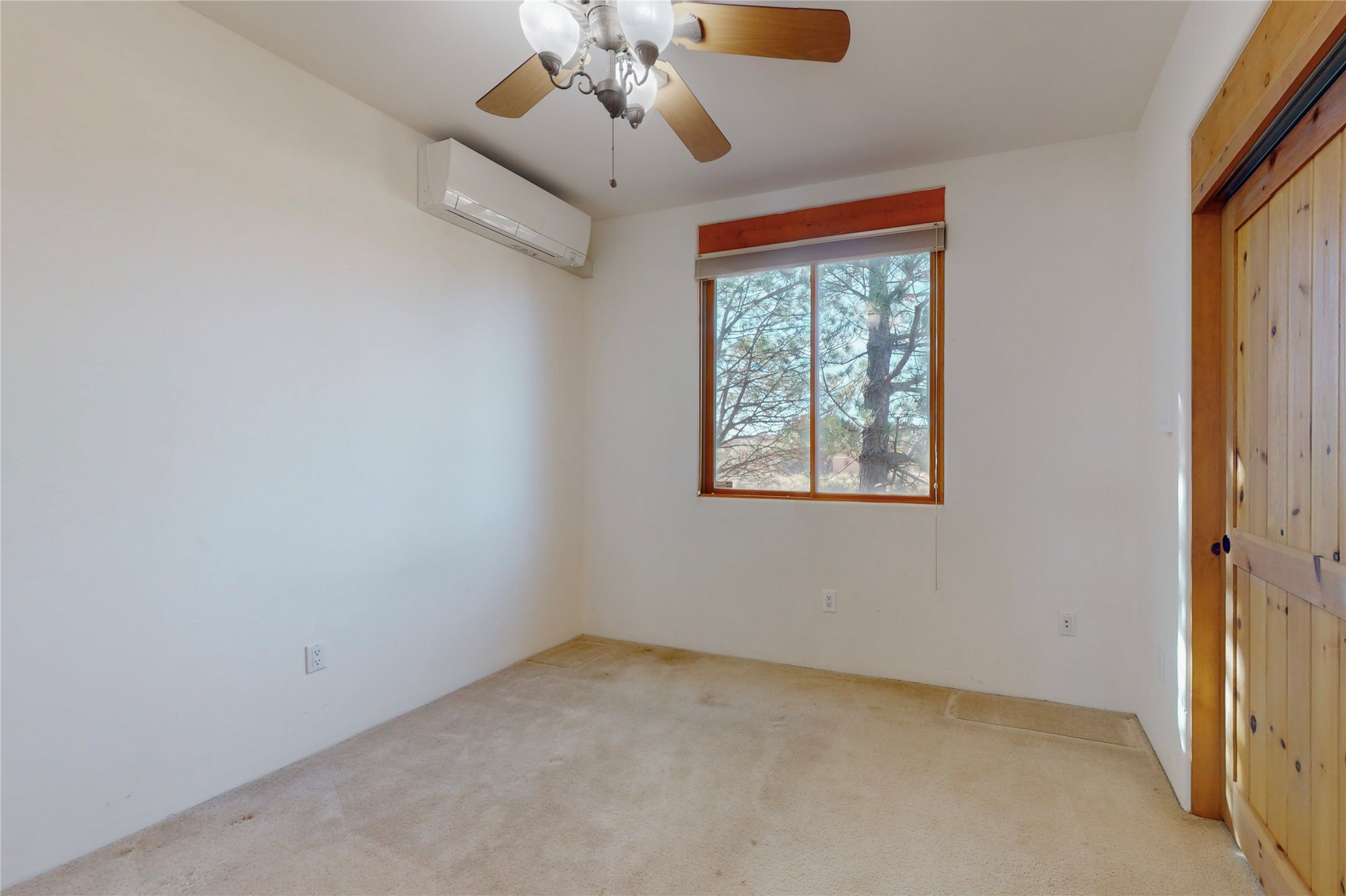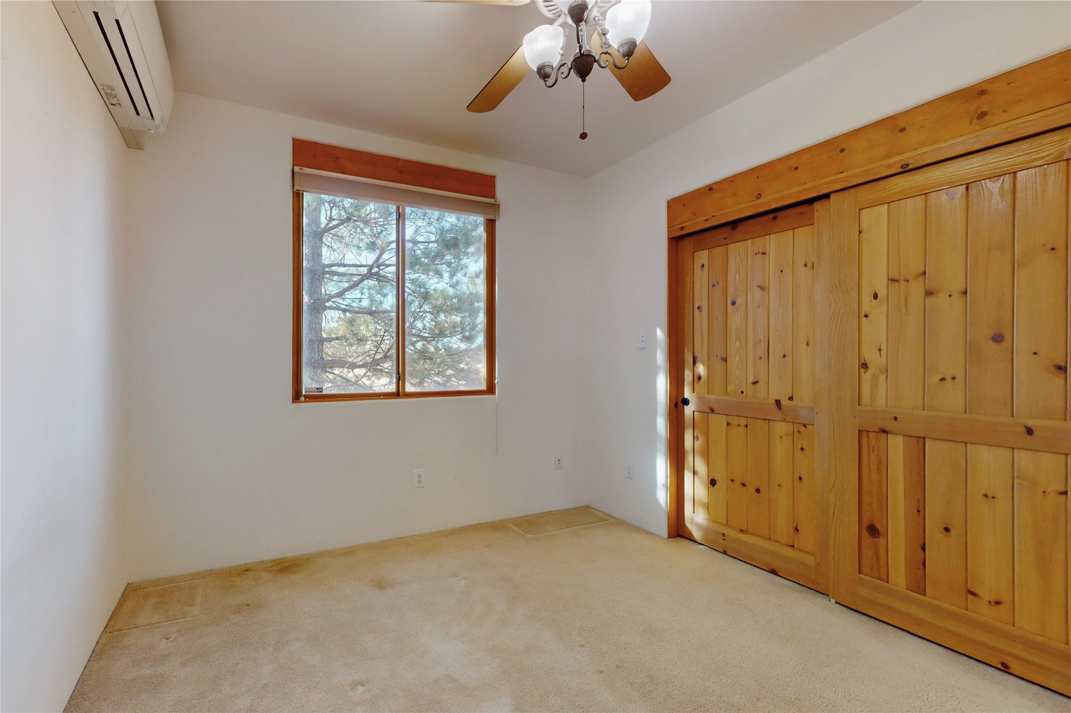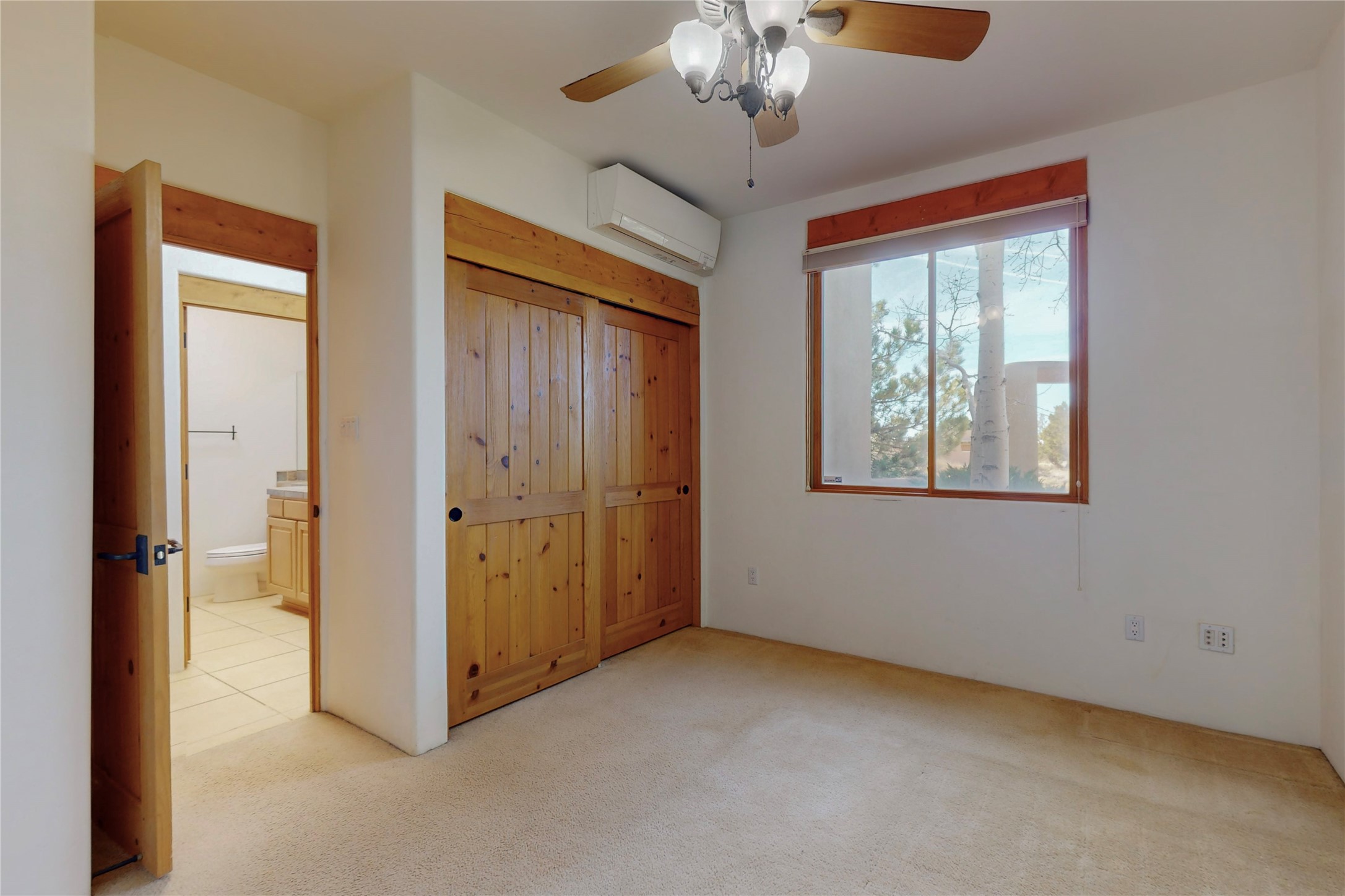 Enter through a private front courtyard with established landscaping and mature trees to this elegant single-level Eldorado home with a generous covered portal and classic Santa Fe details. Open concept living room/dining room with high ceilings, vigas, and plastered kiva fireplace. Cook's kitchen includes a large island, pantry, breakfast area, stainless appliances, granite countertops, and a built-in desk. An outdoor patio with coyote fencing for privacy and securing furry friends is just off the dining area, perfect for entertaining. Built on a 1.7-acre lot, the home includes a second living area off the kitchen with a kiva fireplace, which would make a great media or game room. An office/studio space off this bonus room is very private with endless potential (originally a third garage bay). The primary bathroom has double sinks, tall countertops, a separate shower and tub, as well as a large walk-in closet. Separate laundry room. Lots of storage. Heated garage. Just a 20-minute drive to Downtown Santa Fe. The Eldorado community offers hiking/biking trails, a grocery store, a seasonal pool, a library, a Senior Center, a dog park, restaurants, and many other amenities. Schedule a showing today.
