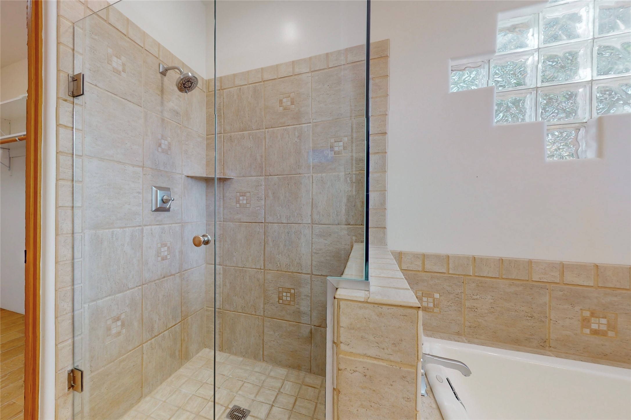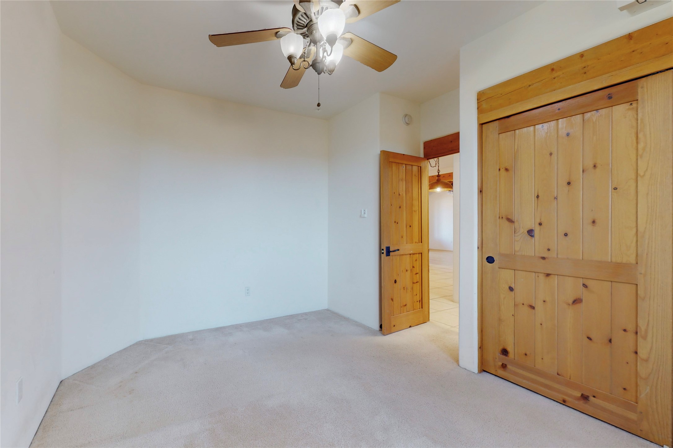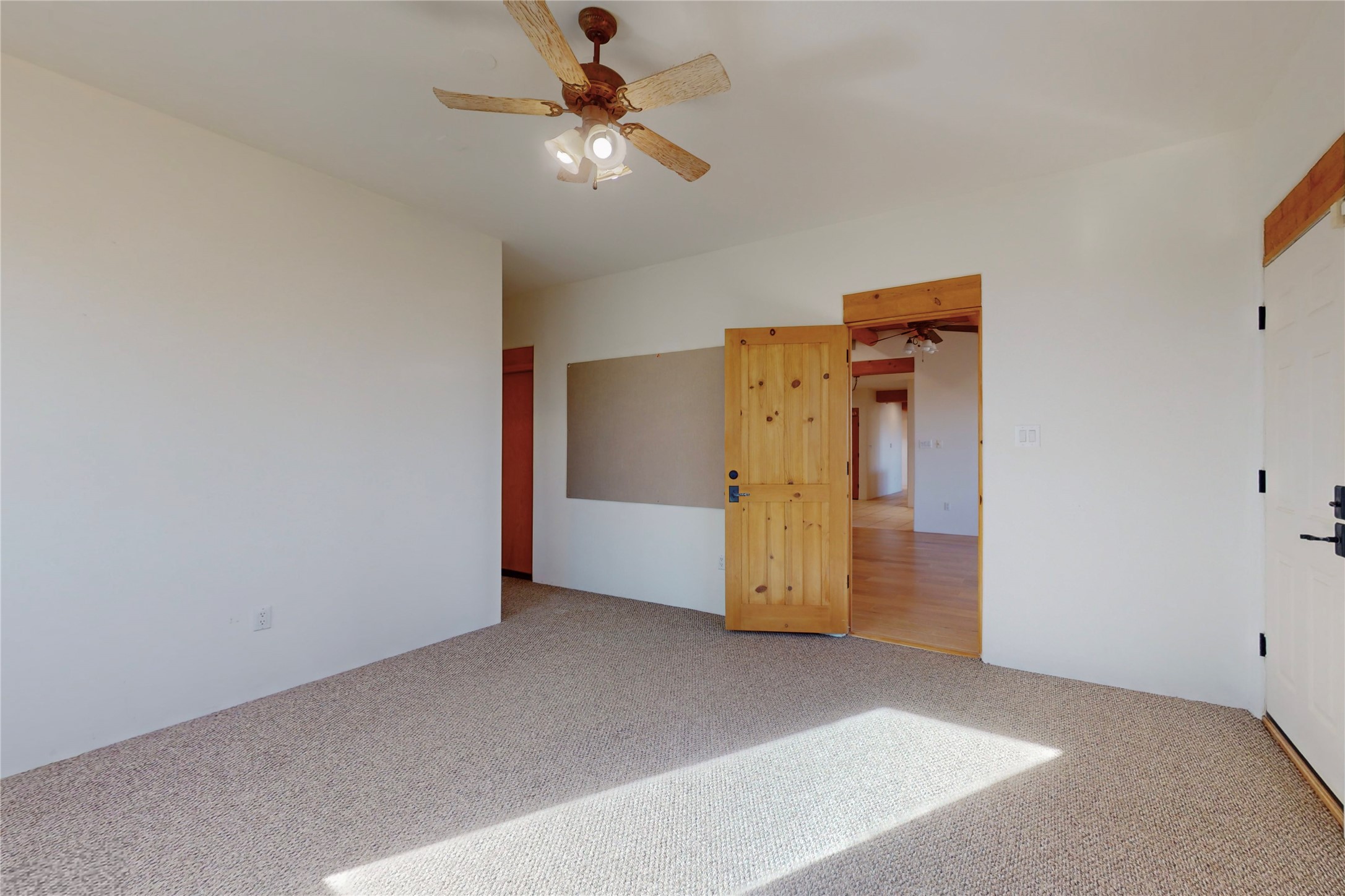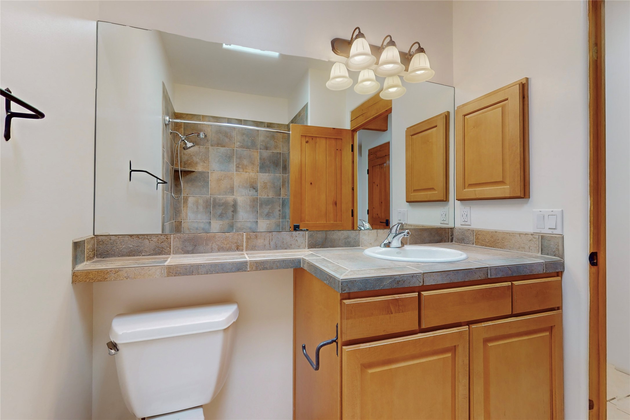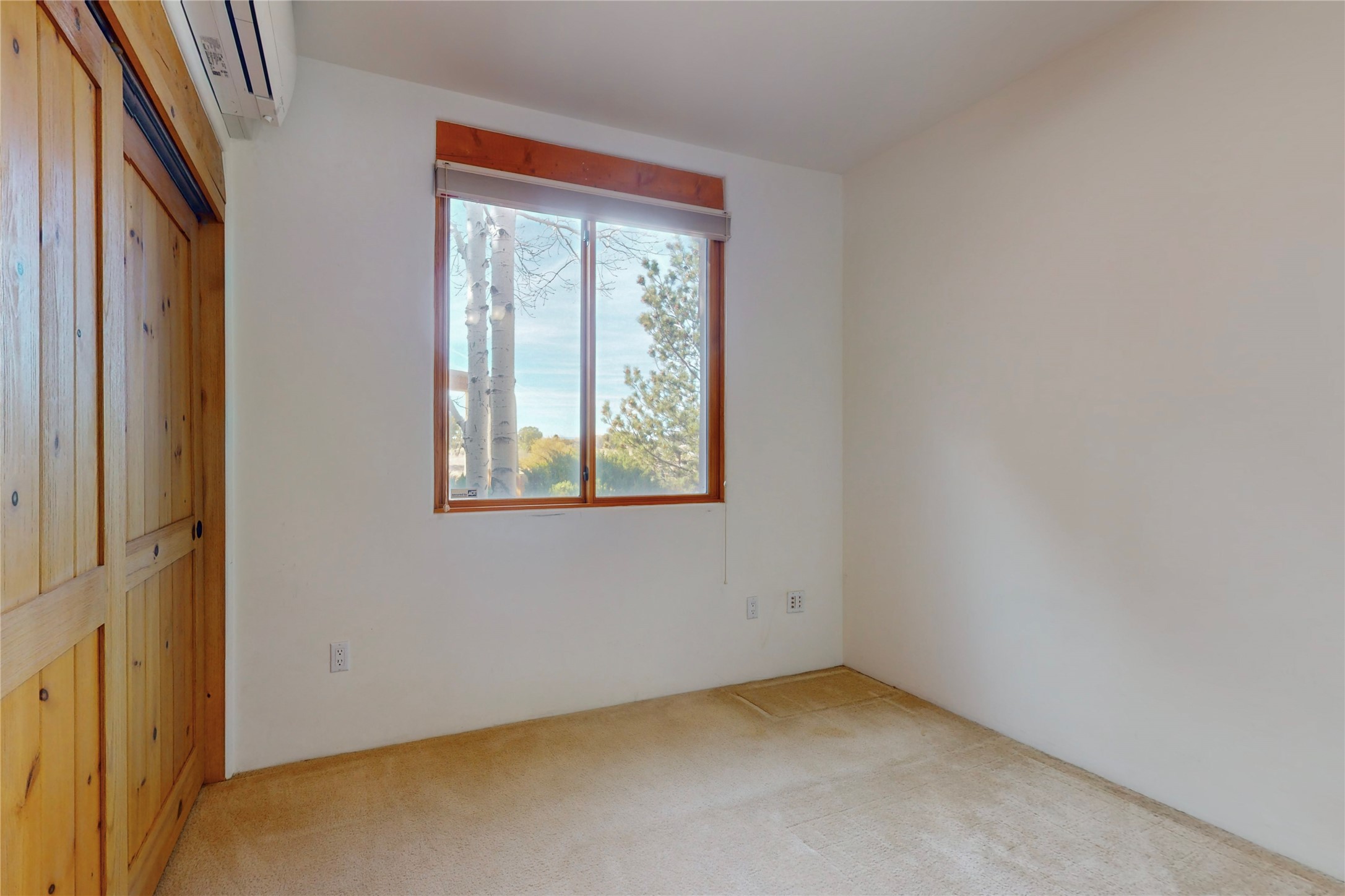 Enter through a private front courtyard with established landscaping and mature trees to this elegant single-level Eldorado home with a generous covered portal and classic Santa Fe details. Open concept living room/dining room with high ceilings, vigas, and plastered kiva fireplace. Cook's kitchen includes a large island, pantry, breakfast area, stainless appliances, granite countertops, and a built-in desk. An outdoor patio with coyote fencing for privacy and securing furry friends is just off the dining area, perfect for entertaining. Built on a 1.7-acre lot, the home includes a second living area off the kitchen with a kiva fireplace, which would make a great media or game room. An office/studio space off this bonus room is very private with endless potential (originally a third garage bay). The primary bathroom has double sinks, tall countertops, a separate shower and tub, as well as a large walk-in closet. Separate laundry room. Lots of storage. Heated garage. Just a 20-minute drive to Downtown Santa Fe. The Eldorado community offers hiking/biking trails, a grocery store, a seasonal pool, a library, a Senior Center, a dog park, restaurants, and many other amenities. Schedule a showing today.