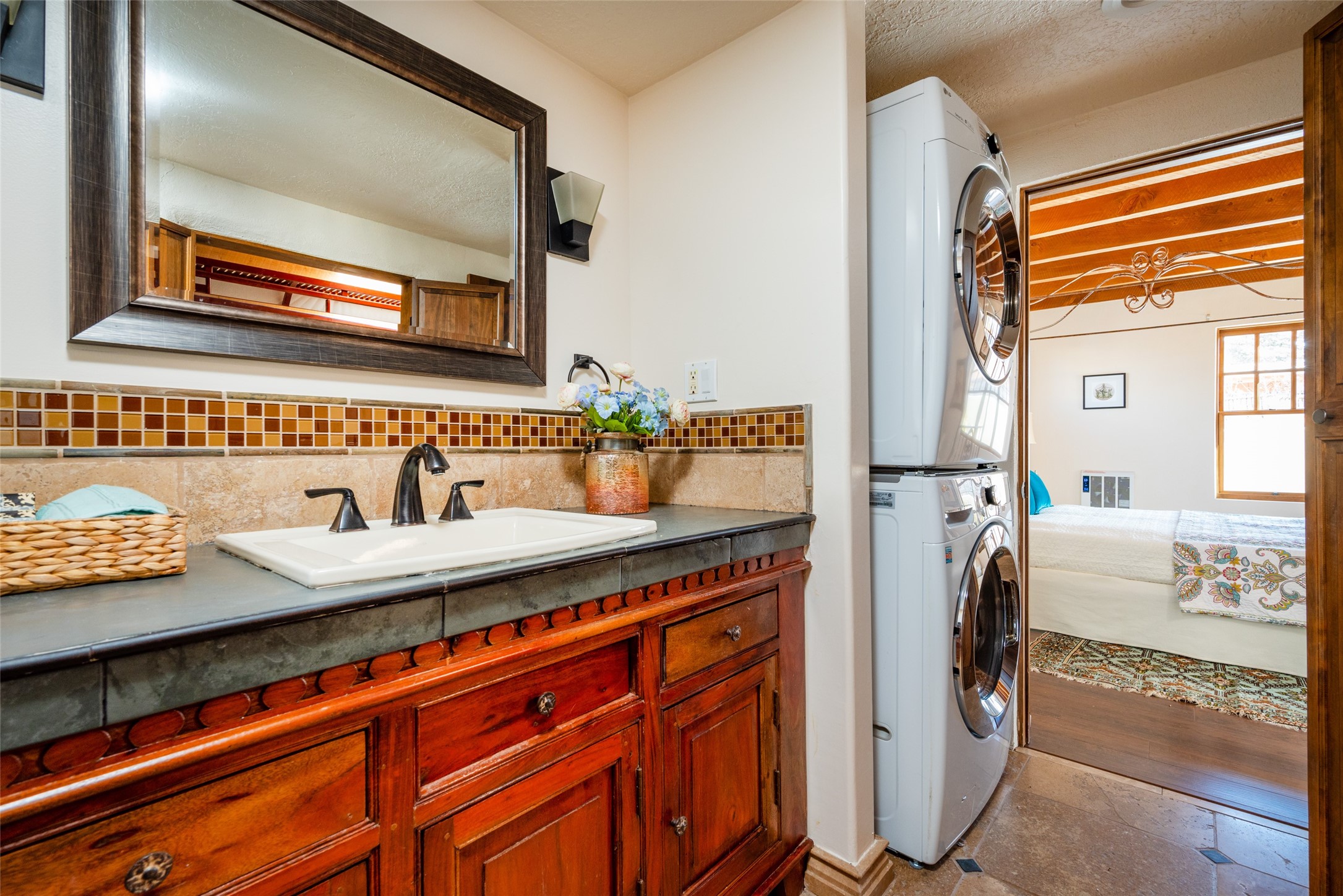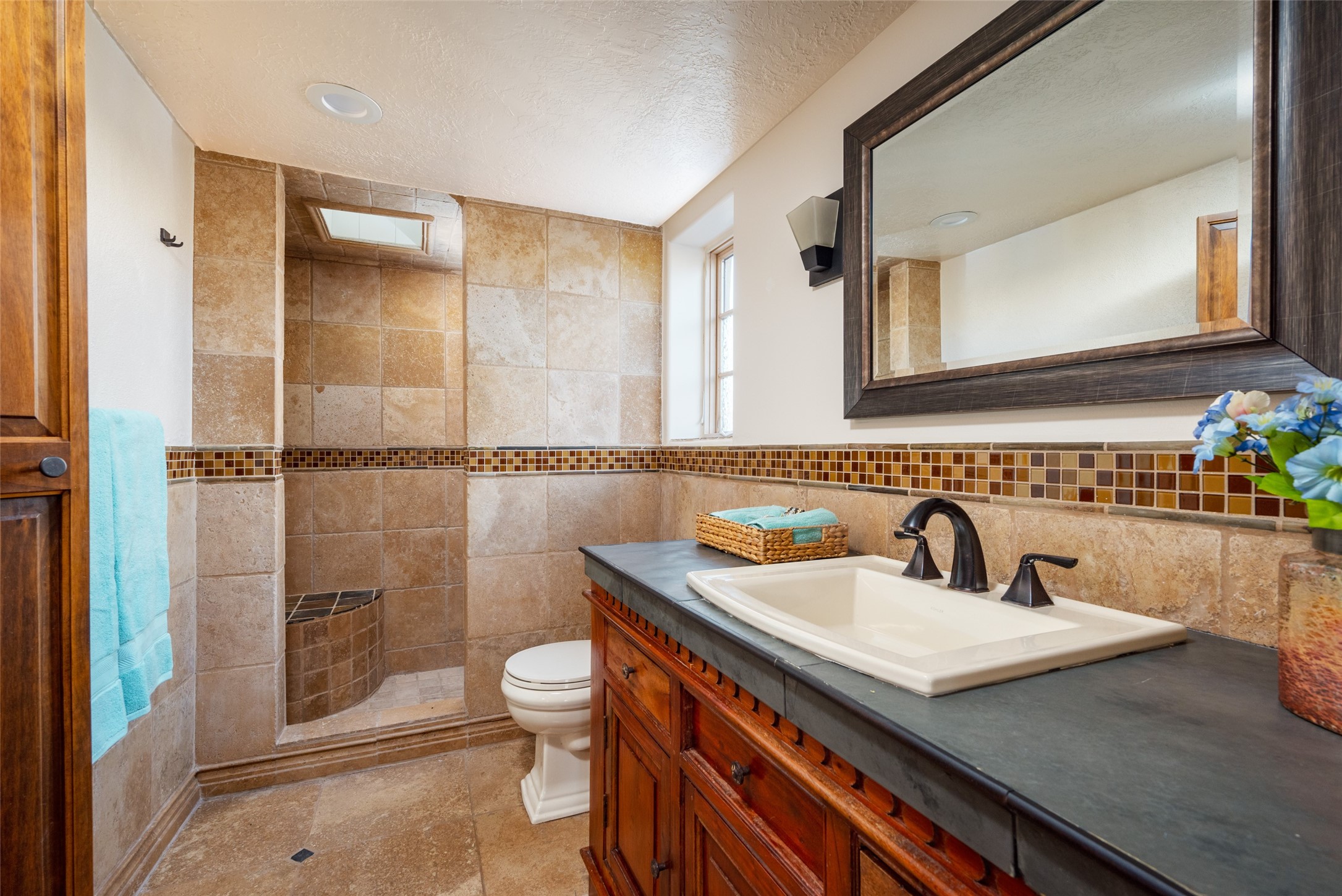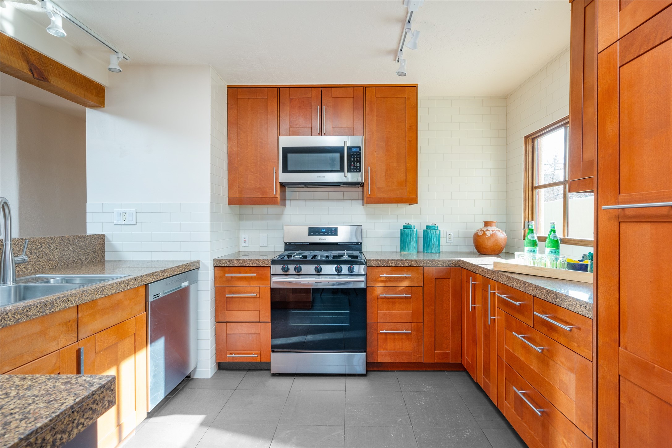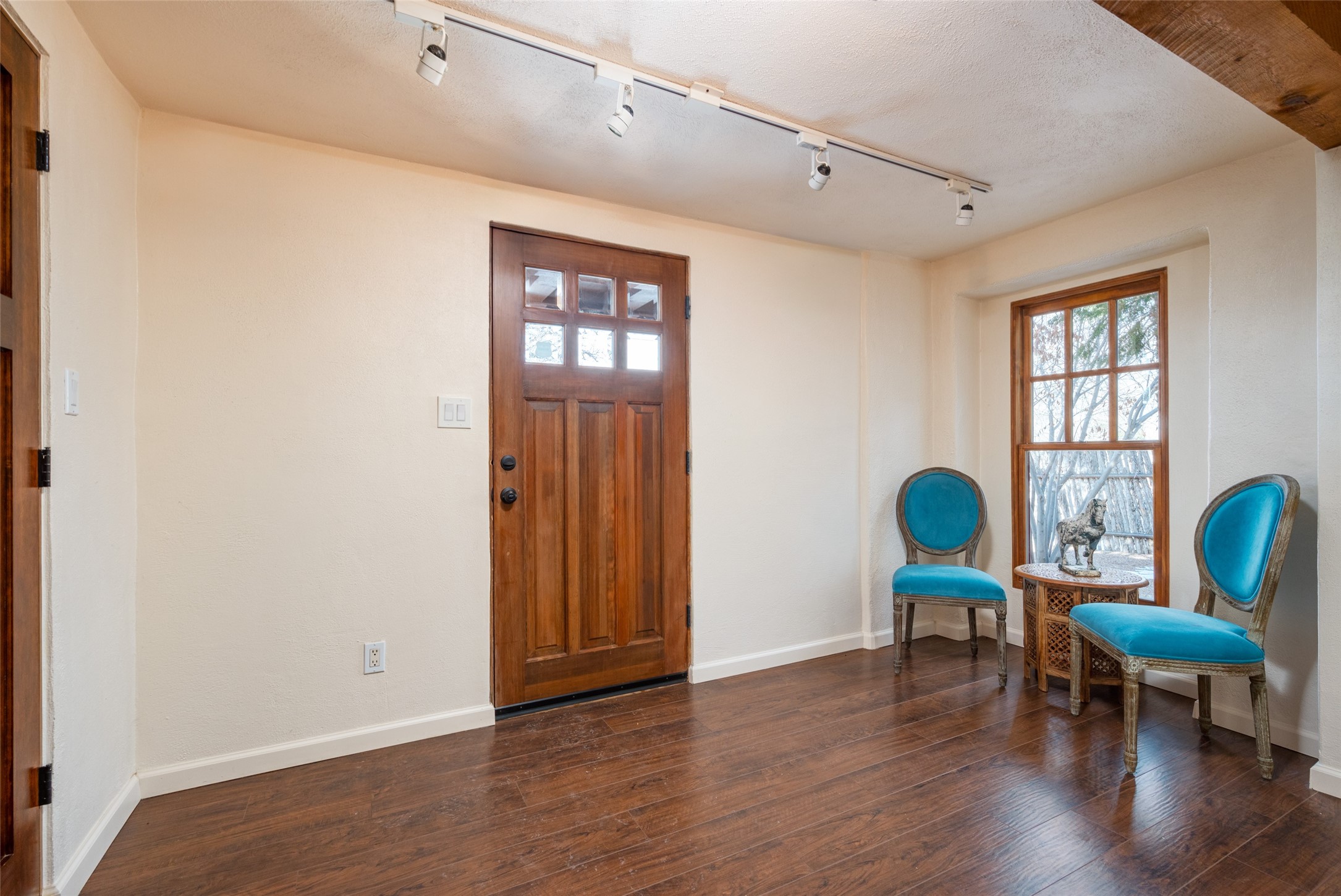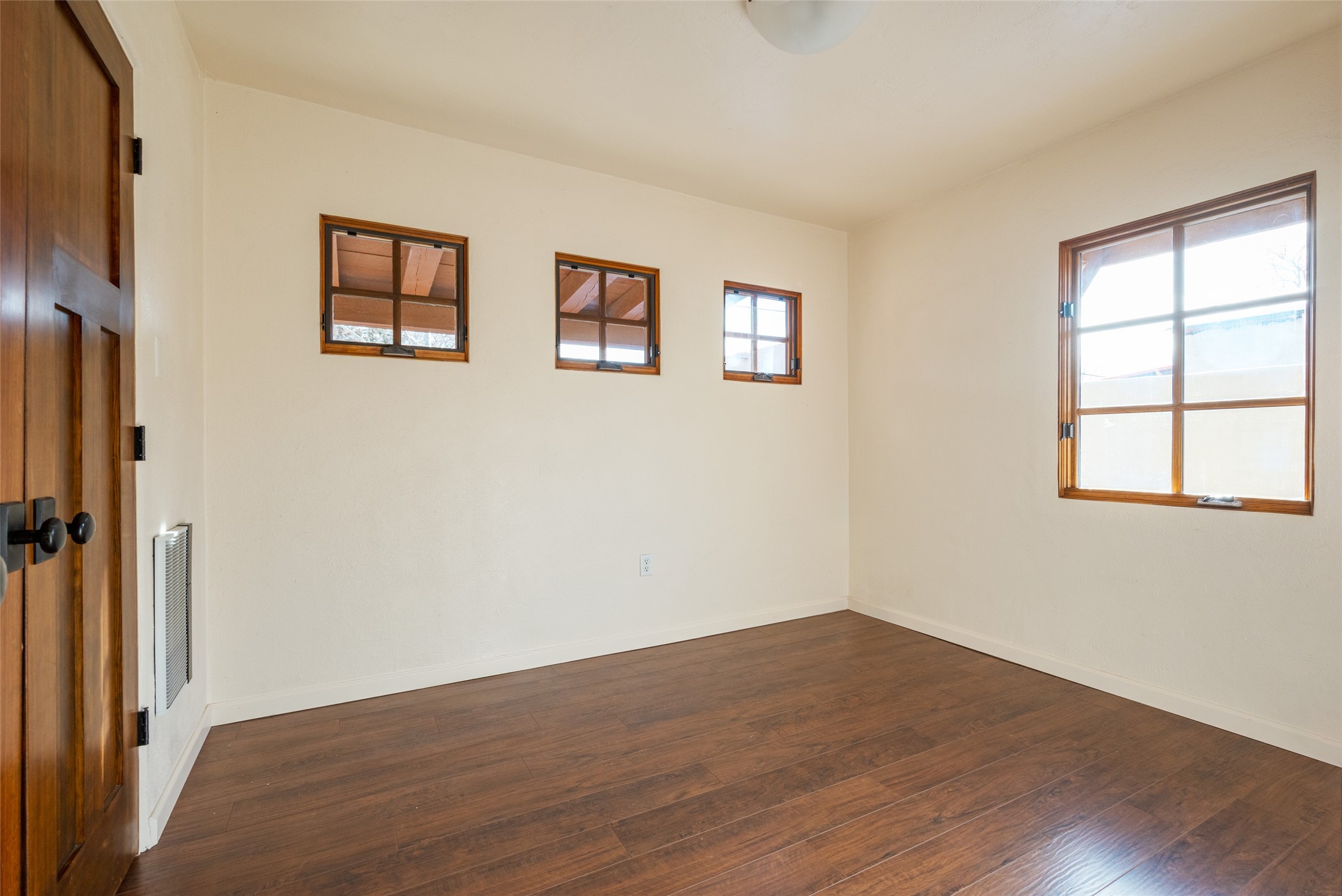 Lovely warm and welcoming home for some lucky Buyer(s). Open floor plan for comfort and ease, with good bedroom separation. The primary bedroom and one of the guest bedrooms have french doors to the backyard covered portal . Superb renovation with chef's kitchen , European style wall mounted electric radiant heaters, dark plank flooring, double paned windows throughout, skylights, and a sweet kiva fireplace to welcome Santa. Completely walled in front and backyards and a direct entry from the garage. Easy low maintenance yard for someone to bring their garden vision to. All this in a central location close to restaurants, shopping and entertainment.