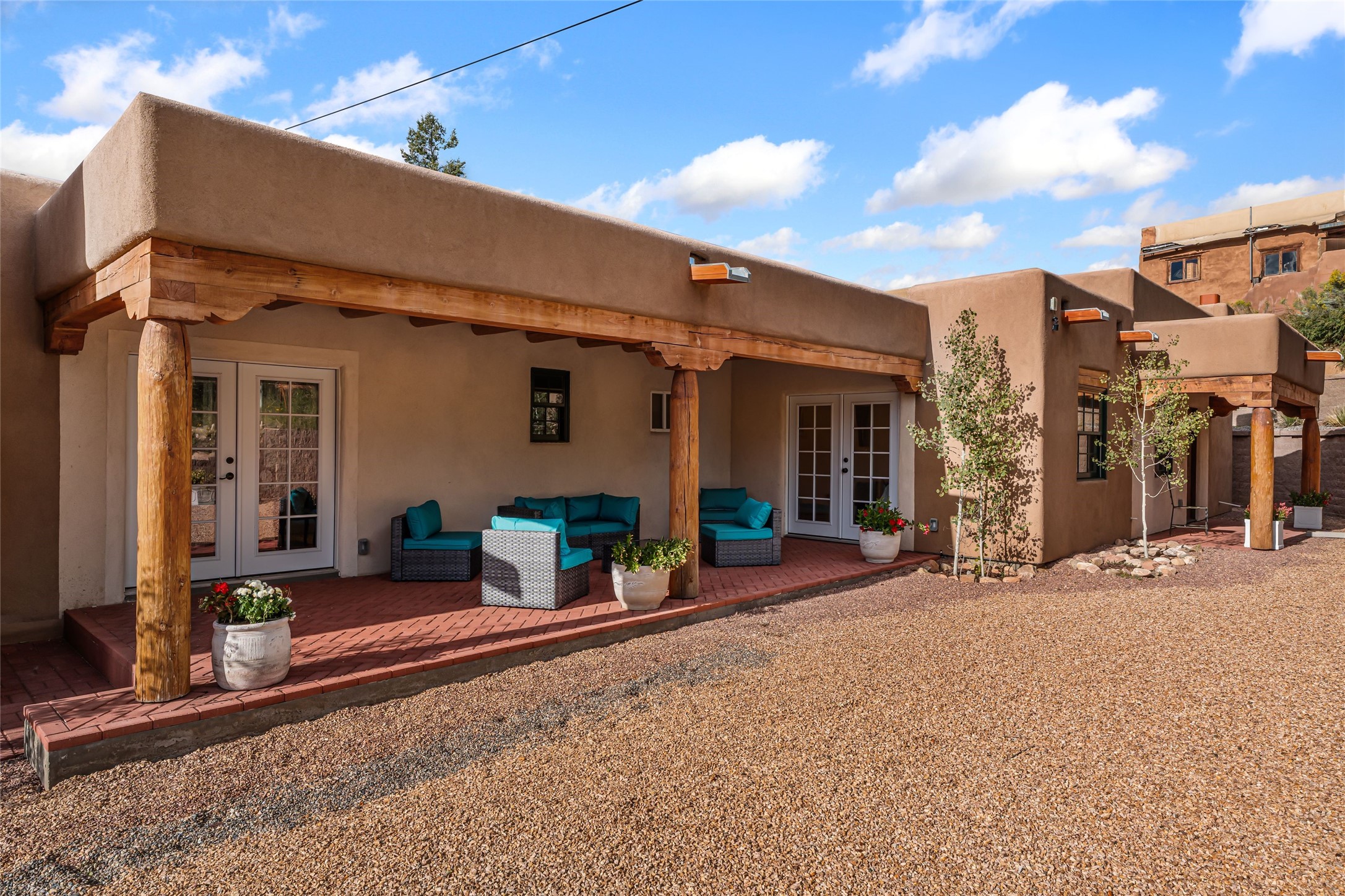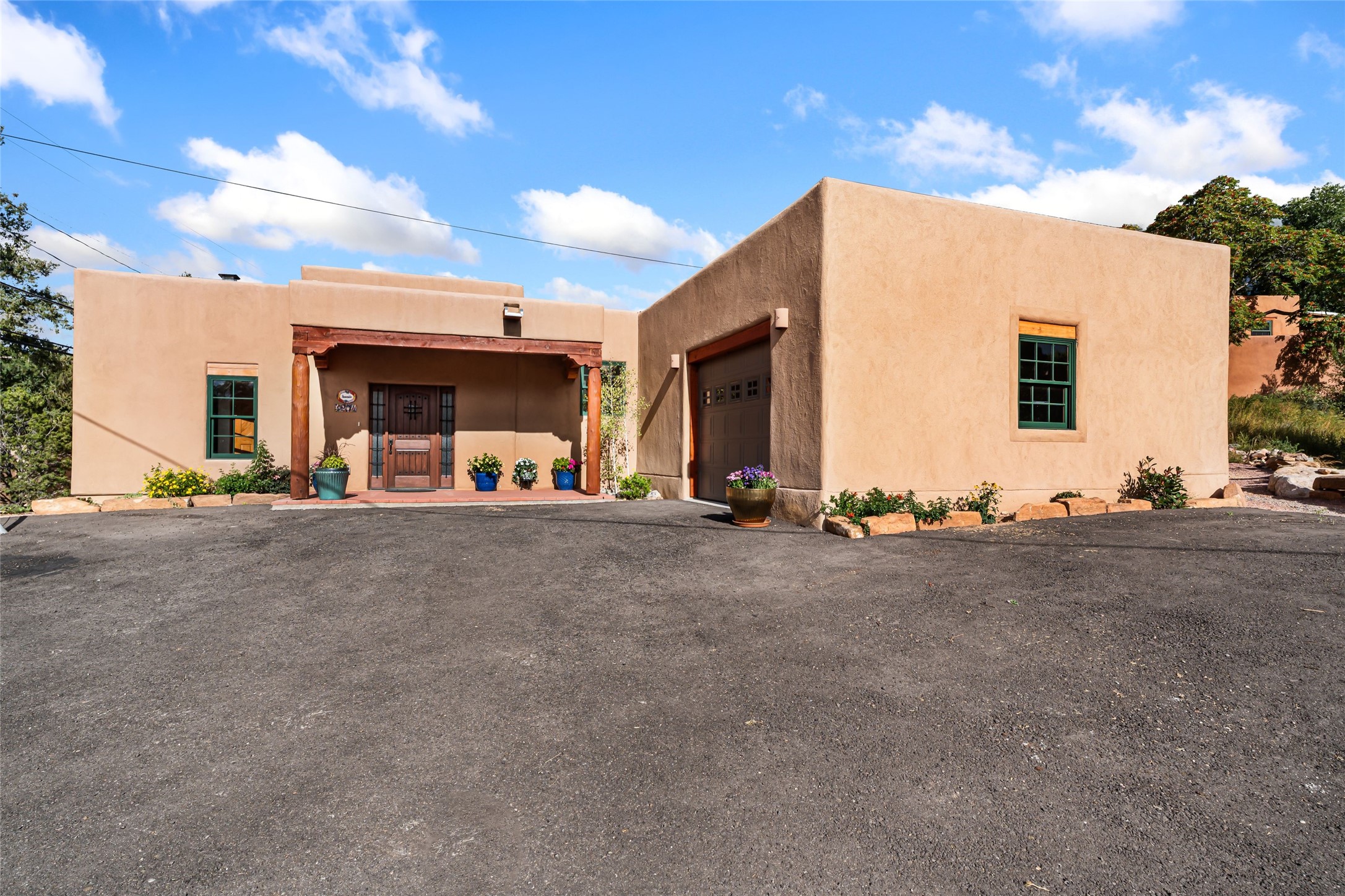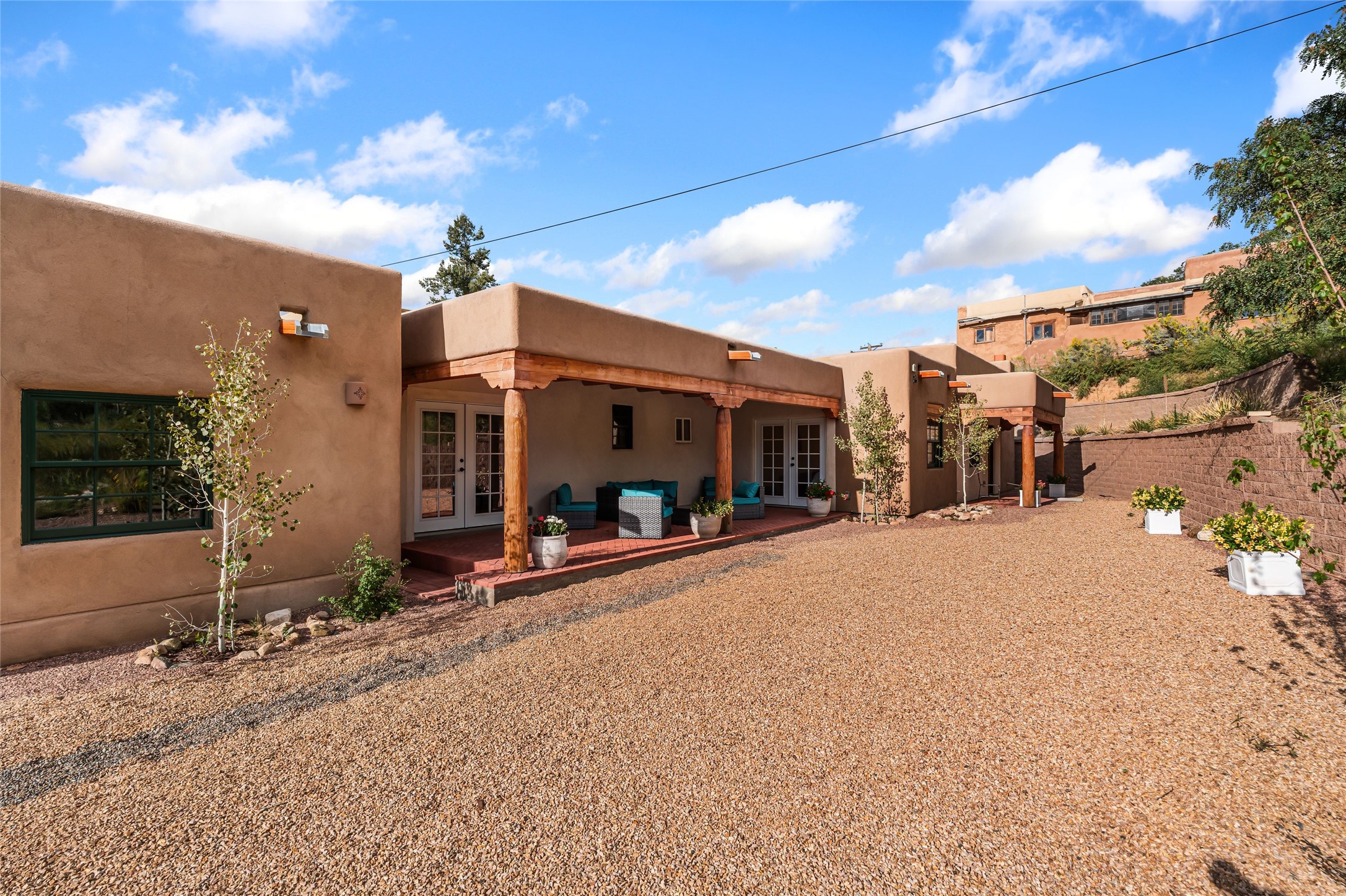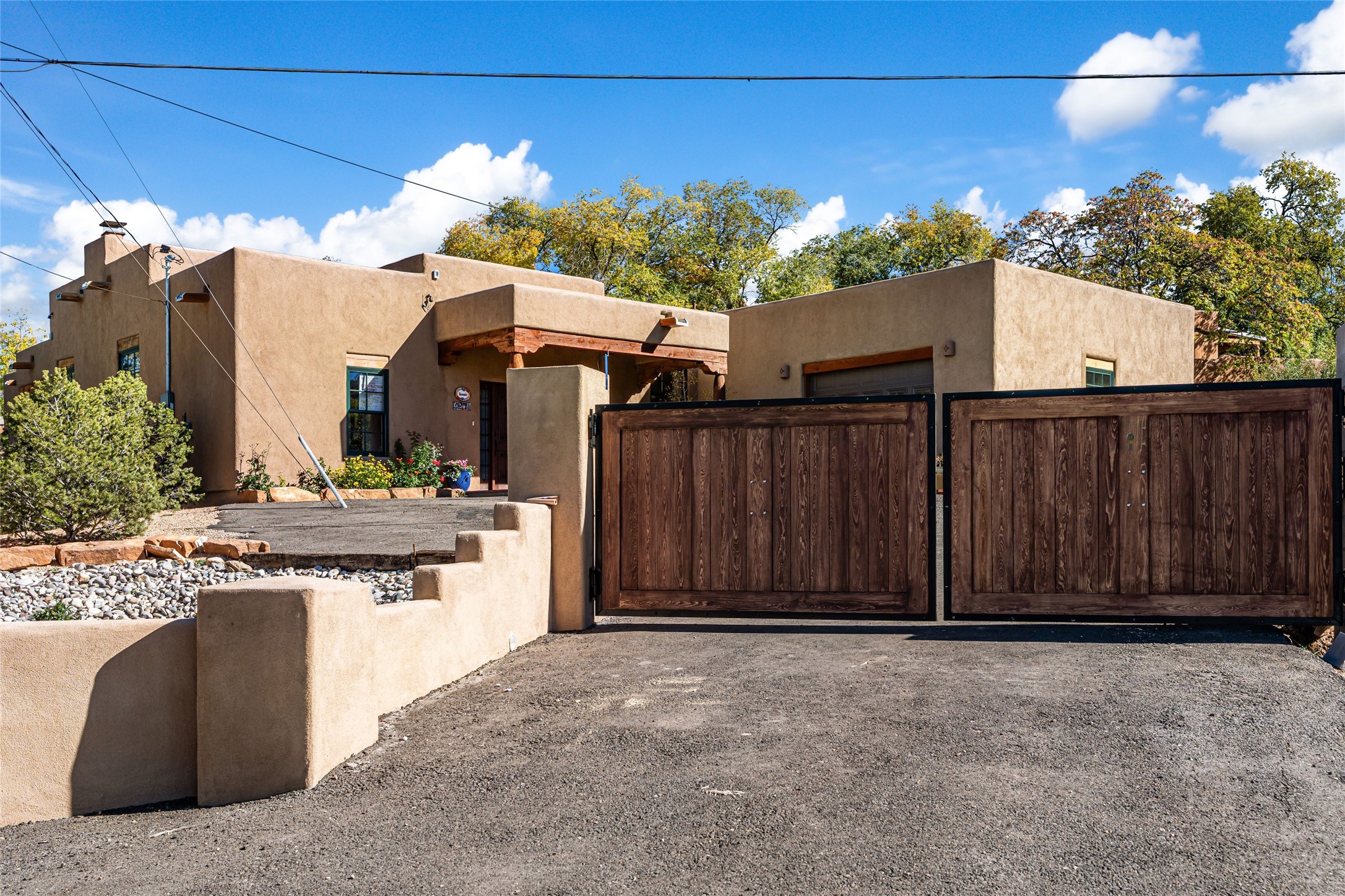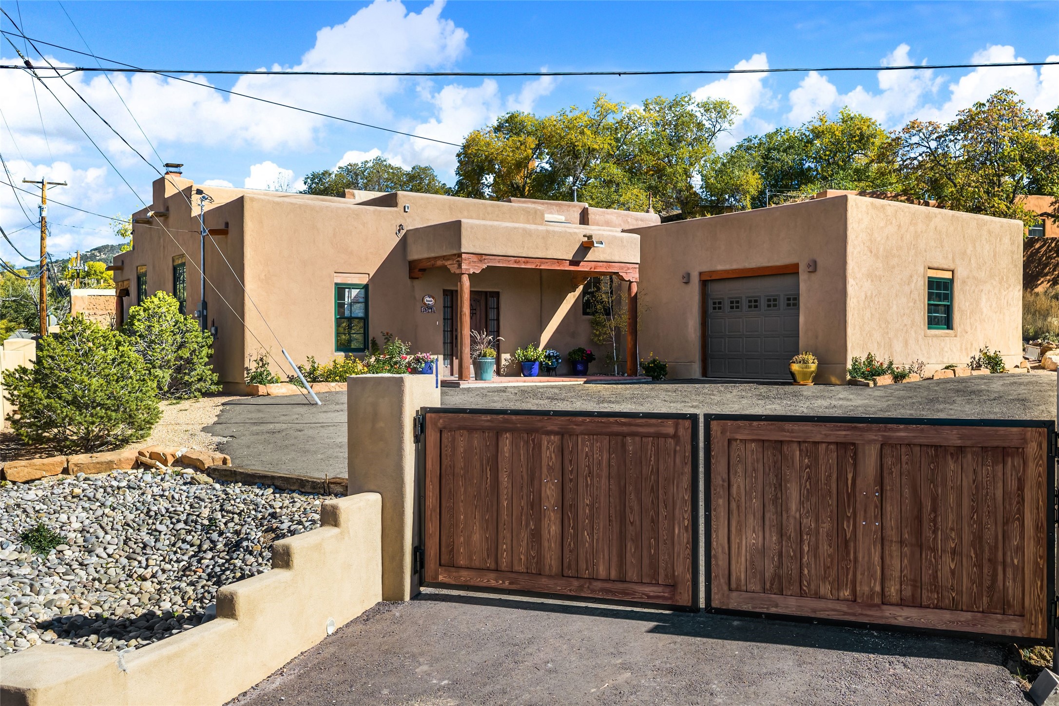 Elegant Eastside Living on Upper Canyon Road - Set in a premier Eastside location across from the tree-lined Santa Fe River Park, this beautifully designed and built 4-bedroom, 4.5-bathroom estate blends timeless Southwestern charm with modern luxury. Offering approximately 3,800 square feet on a 0.45-acre lot, the property includes a 3BD/3BA main residence and a 1BD/1BA guest suite, thoughtfully designed for comfort, privacy, and style. Inside, clean architectural lines meet regional authenticity with vigas, corbels, and nichos, complemented by diamond-finish plaster walls, wide porcelain tile, and rich wood flooring. The open-concept layout flows seamlessly through the home, anchored by a chef's kitchen with custom cabinetry, stainless steel appliances, a farmhouse sink, and an expansive marble center island. The living and dining spaces feature vaulted ceilings, art-worthy wall space, and abundant natural light. A serene primary suite offers a walk-in closet, artisan stained-glass windows, and a spa-like bath with soaking tub and glass-enclosed shower. Radiant heat and mini-split systems (with heat and a/c) throughout ensure year-round comfort. The landscaped grounds invite outdoor living with portals and patios ideal for entertaining or quiet reflection. A privacy wall encloses the property, and an oversized one-car garage offers additional storage. Located near the historic Cristo Rey Church--a landmark by architect John Gaw Meem--this property captures the essence of Santa Fe living: elegant, rooted in history, and surrounded by natural beauty.
