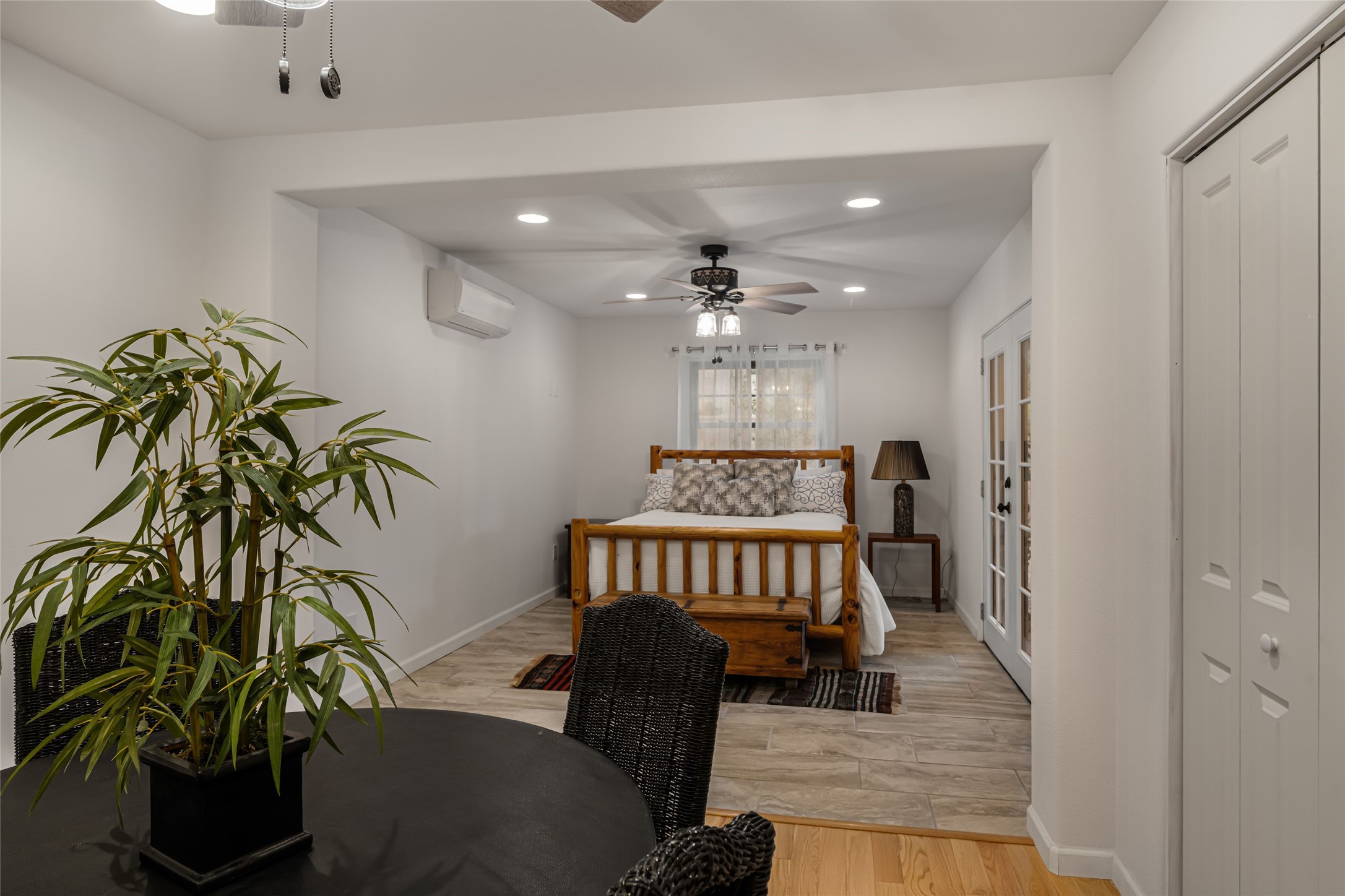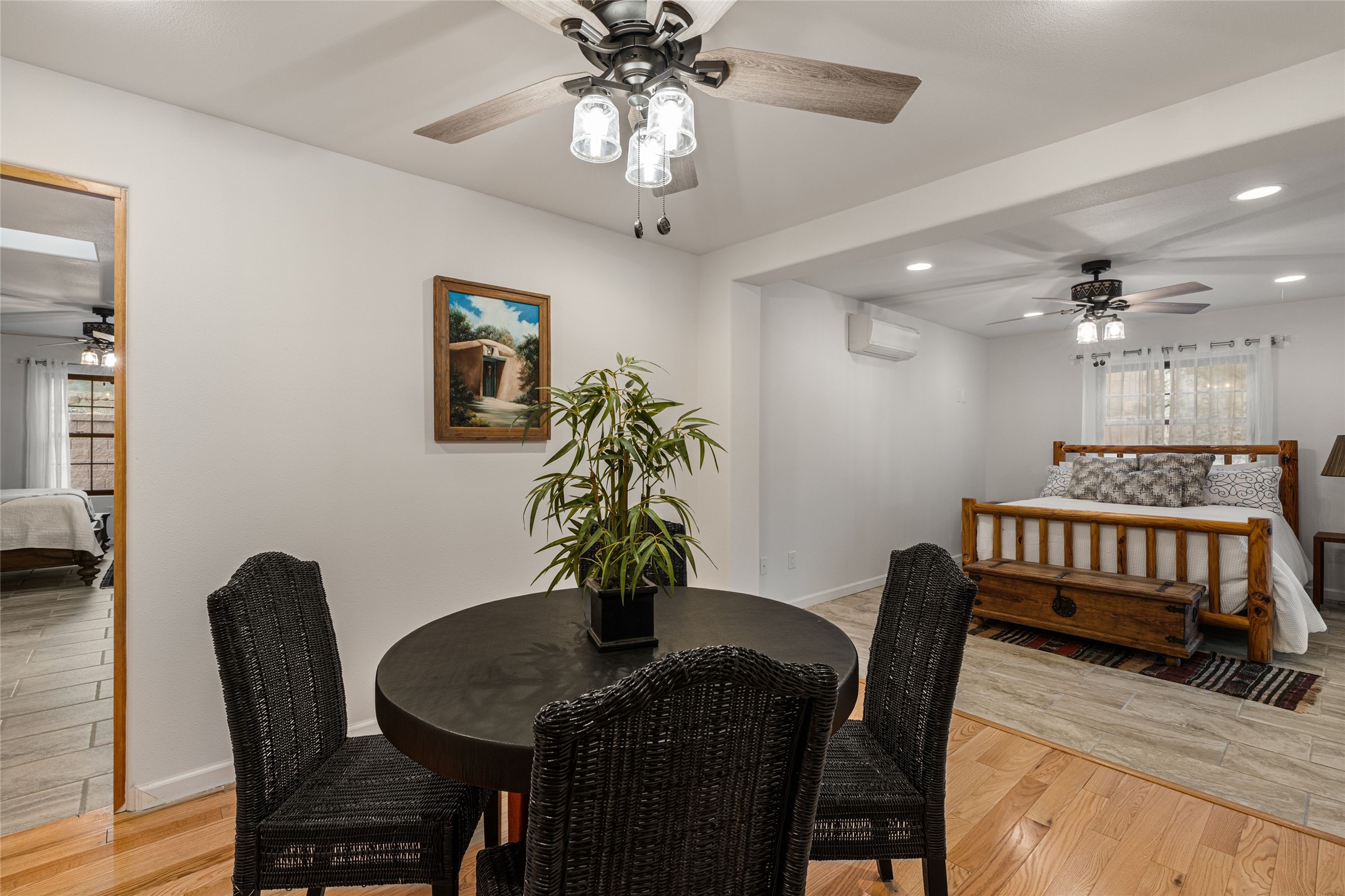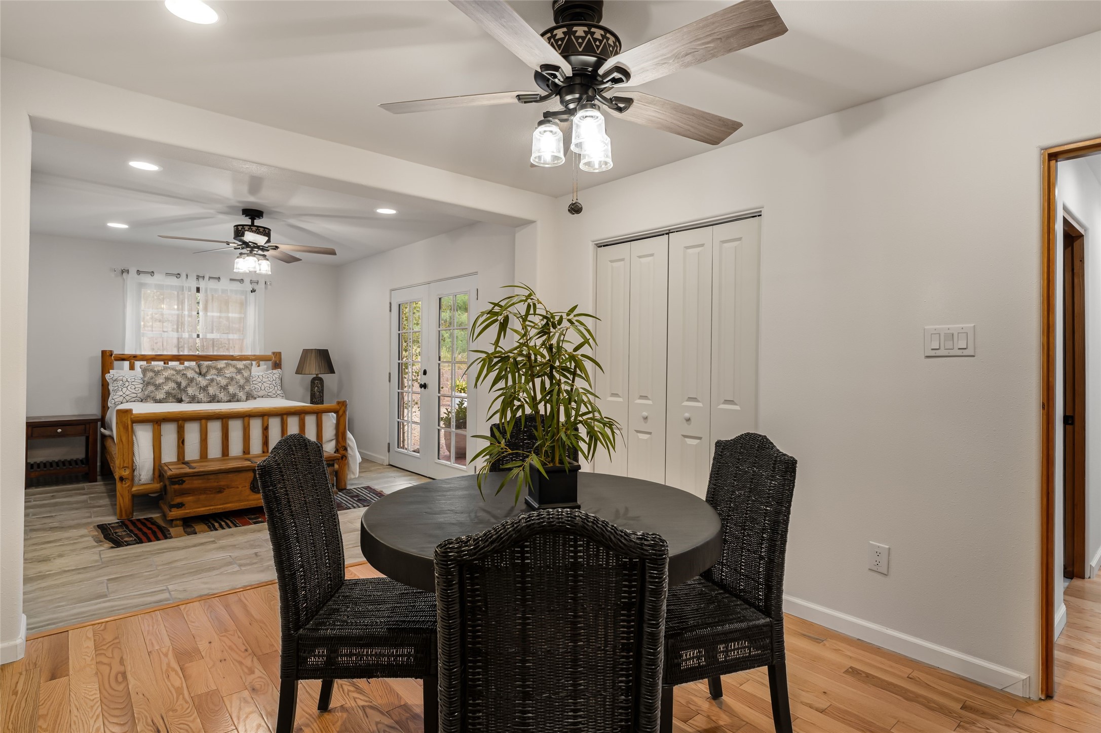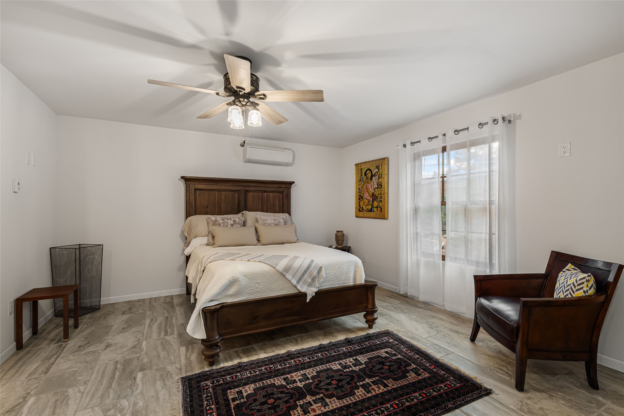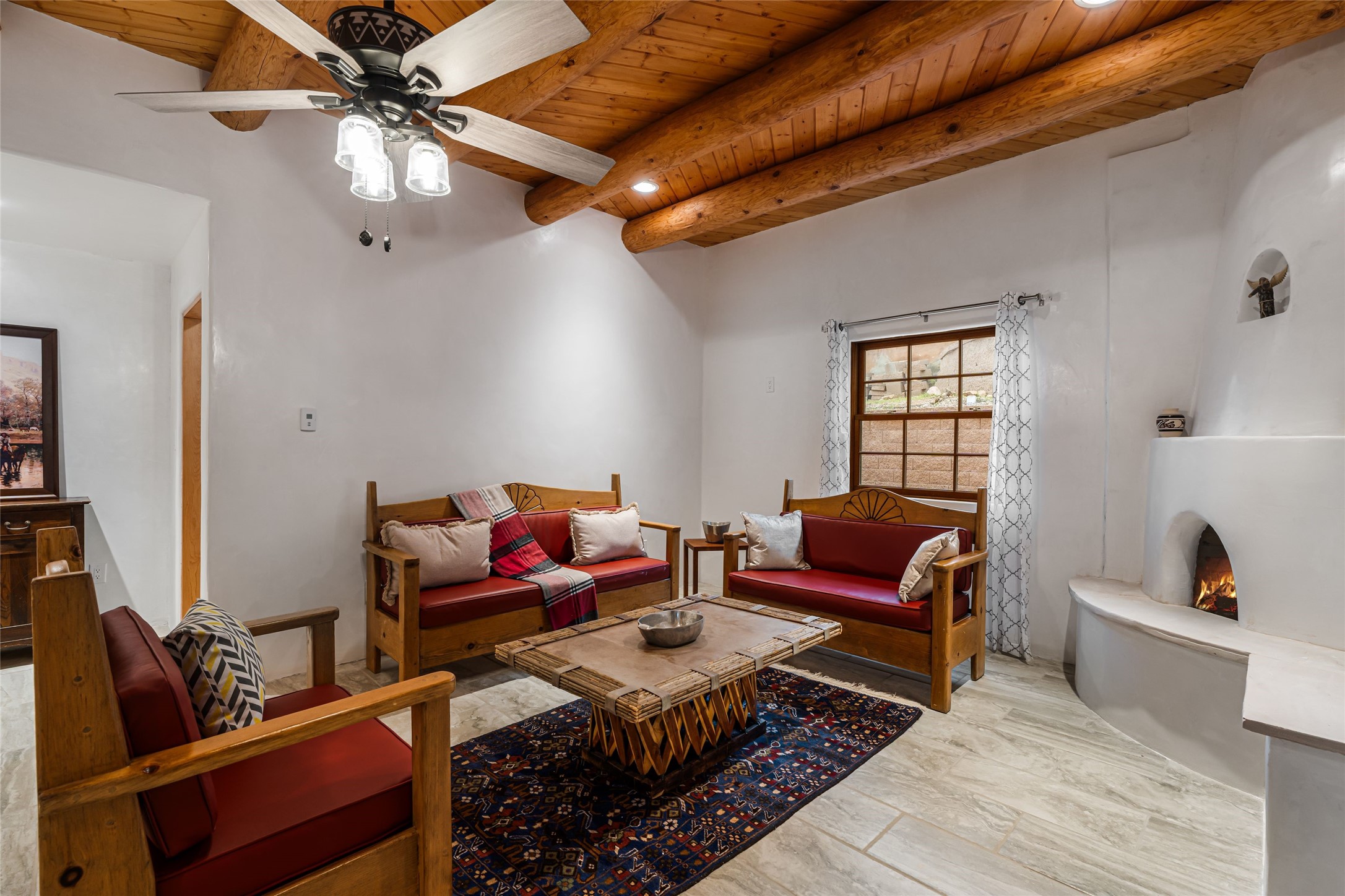 Elegant Eastside Living on Upper Canyon Road - Set in a premier Eastside location across from the tree-lined Santa Fe River Park, this beautifully designed and built 4-bedroom, 4.5-bathroom estate blends timeless Southwestern charm with modern luxury. Offering approximately 3,800 square feet on a 0.45-acre lot, the property includes a 3BD/3BA main residence and a 1BD/1BA guest suite, thoughtfully designed for comfort, privacy, and style. Inside, clean architectural lines meet regional authenticity with vigas, corbels, and nichos, complemented by diamond-finish plaster walls, wide porcelain tile, and rich wood flooring. The open-concept layout flows seamlessly through the home, anchored by a chef's kitchen with custom cabinetry, stainless steel appliances, a farmhouse sink, and an expansive marble center island. The living and dining spaces feature vaulted ceilings, art-worthy wall space, and abundant natural light. A serene primary suite offers a walk-in closet, artisan stained-glass windows, and a spa-like bath with soaking tub and glass-enclosed shower. Radiant heat and mini-split systems (with heat and a/c) throughout ensure year-round comfort. The landscaped grounds invite outdoor living with portals and patios ideal for entertaining or quiet reflection. A privacy wall encloses the property, and an oversized one-car garage offers additional storage. Located near the historic Cristo Rey Church--a landmark by architect John Gaw Meem--this property captures the essence of Santa Fe living: elegant, rooted in history, and surrounded by natural beauty.