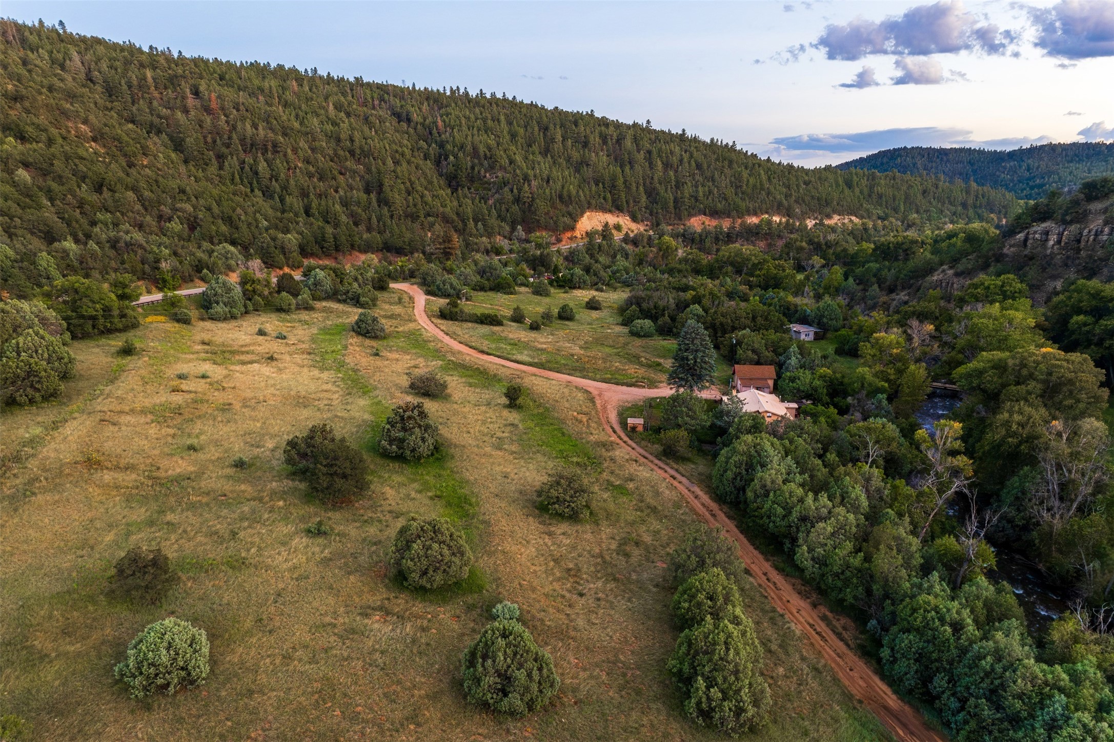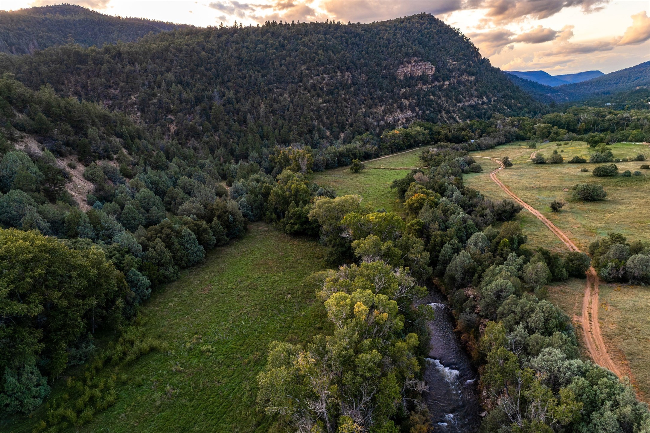 ONE OF A KIND Pecos River front property located in the heart of the Pecos Canyon offered for sale for the first time. The rareness of this listing is profound. The land includes several meadows, dramatic rock outcroppings, at least 856 feet of the Pecos River (both sides), excellent solar gain, first class bridge over the river, and sloping treed hillside adjoining the Santa Fe National Forest. Ideal for quality fishing in one of the premiere New Mexico rivers on your own private stretch. The potential for horses or other livestock is profound with ample space for a barn and or corrals. Additionally there is a modest 2 bedroom, 2 bath house with covered portal, sunroom, private well and oversize 2 car garage. For folks seeking a private, quality destination property less than 30 minutes to Santa Fe consider this listing.