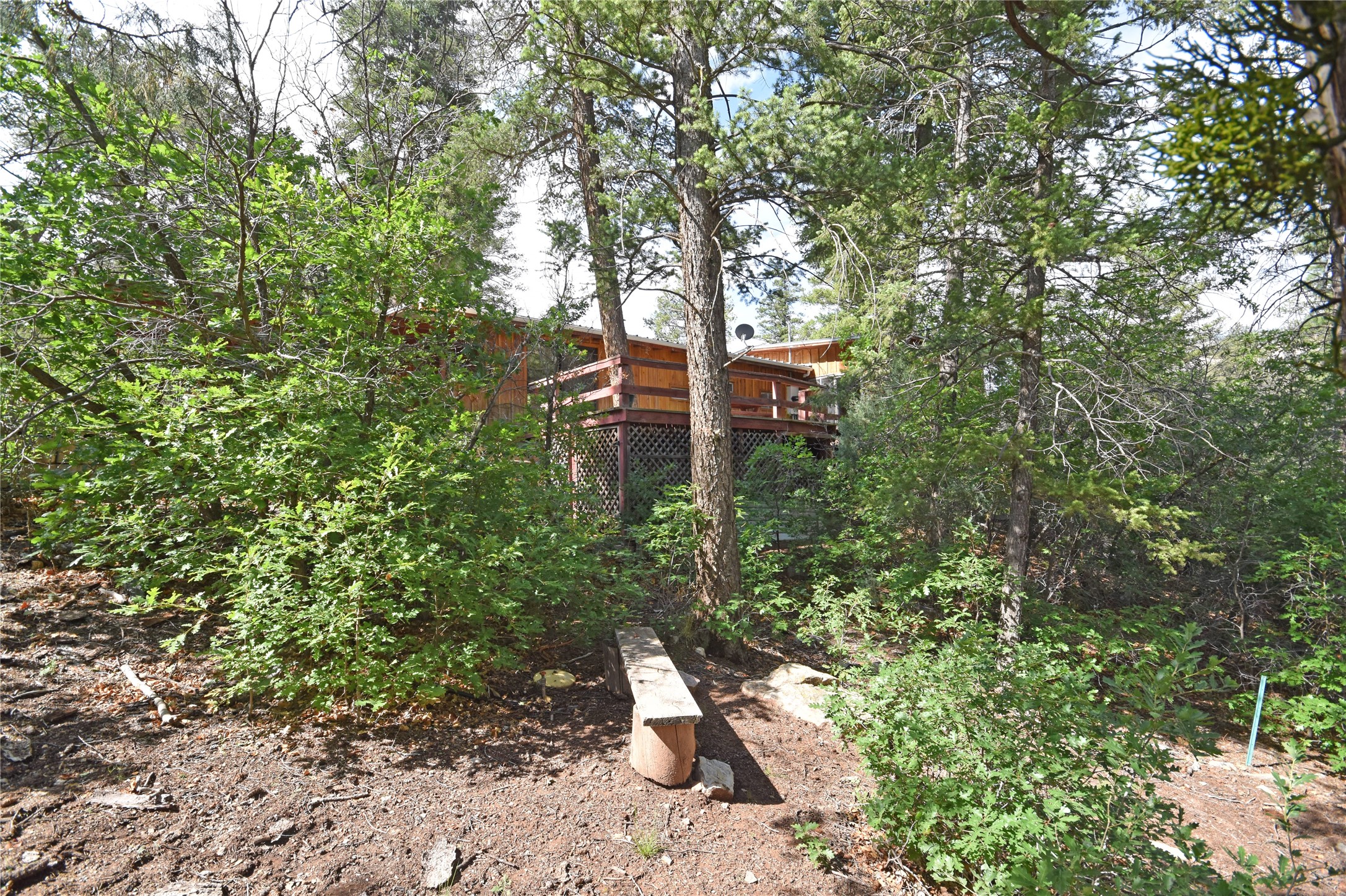 Dreaming of your own cabin in the pines? This one may be just the ticket!! Nestled in the mesa cliffs above the Jemez River, this cozy retreat is ready for you, your family, and friends. Two spacious bedrooms, each with private bathrooms, plus a third that could easily be a workspace or office. Cozy living room with a woodstove for warmth and charm. The super CUTE kitchen is part of the original vintage travel trailer that this family started with for this special getaway place! 2 large decks to soak in the fabulous views and enjoy the Jemez Mountain air. Community water and County maintained road. Don't miss out--call today for more information! Adjoining .60-acre lot with 576 sq/ft garage is also available for purchase with the home (not included in the purchase price)