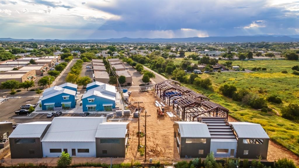 The Studios at Parkway is Santa Fe's newest commercial, industrial, and flex-use condominium development, ideally located in the burgeoning Warehouse and Arts District of Siler/Rufina. Designed to inspire creativity and support growth, the community will total 29 units, with Phase II's 14 units scheduled for completion in Spring 2026. Already home to thriving businesses including Wild Leaven, F1 Cyclery, and 2Faded Barbershop, The Studios offers durable metal buildings with an industrial aesthetic and contemporary design. Each unit features 1,677 heated square feet with soaring 24-foot ceilings, expansive storefront windows, and roll-up aluminum glass garage doors that flood the interiors with natural light. Thoughtful finishes include polished concrete floors, LED lighting, smooth drywall, and handcrafted steel staircases with oak treads, while provisions are stubbed for kitchens and showers to allow flexible use. Wide sidewalks provide opportunities for seating, shipping, and receiving, and the landscaped grounds create an inviting atmosphere for both visitors and tenants. Zoned I-1, the property accommodates a wide range of uses--from offices and galleries to light industry, wellness studios, and artisan workshops--and with solar-ready rooftops and its location within a Federal Opportunity Zone, The Studios at Parkway presents both a dynamic environment for businesses and a compelling opportunity for investors. Multiple units can be combined together for larger spaces.