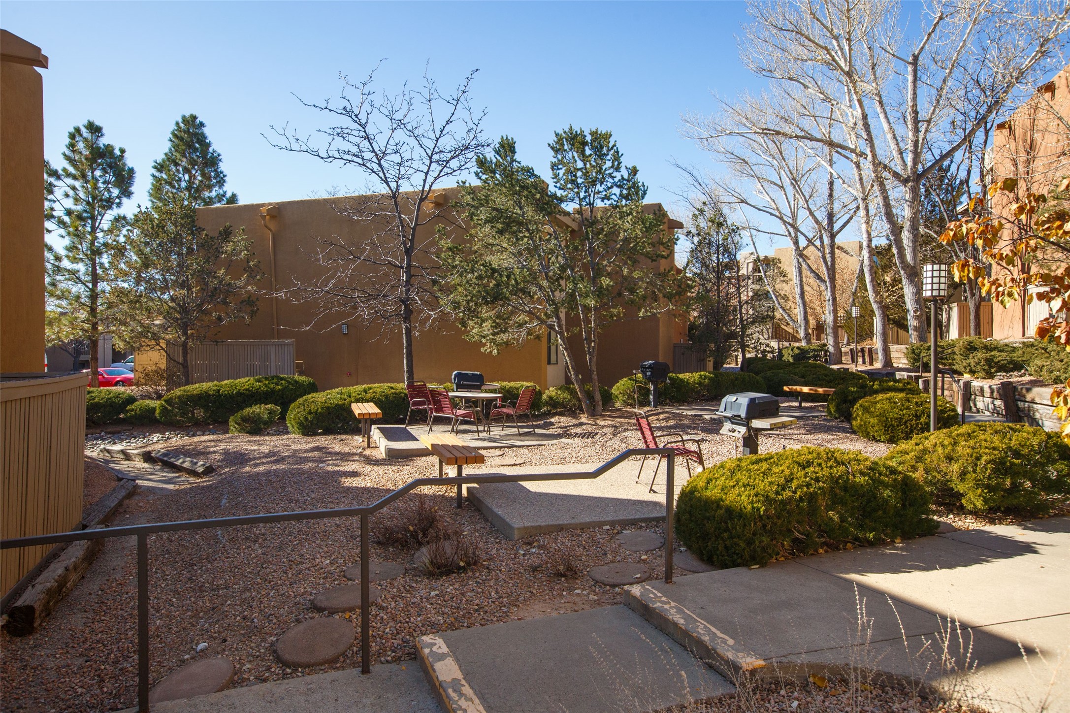 Freshly updated and ready for its new owner! This desirable first-floor condo at The Reserve offers convenient access and a cozy feel. Featuring brand-new carpet, fresh paint, and a new range, this unit is move-in ready. Enjoy an open-concept living area, a spacious bedroom, and a private patio that overlooks the beautifully landscaped community. The Reserve boasts plentiful open space with large shade trees, a year-round heated pool and hot tub, a fitness center, and a laundry facility. Located on the northeast side, it's close to Santa Fe's Plaza, downtown, the railyard, and miles of hiking and biking trails. Whether you're looking for a rental property, a vacation/second home, or a full-time residence, this unit is an excellent choice.